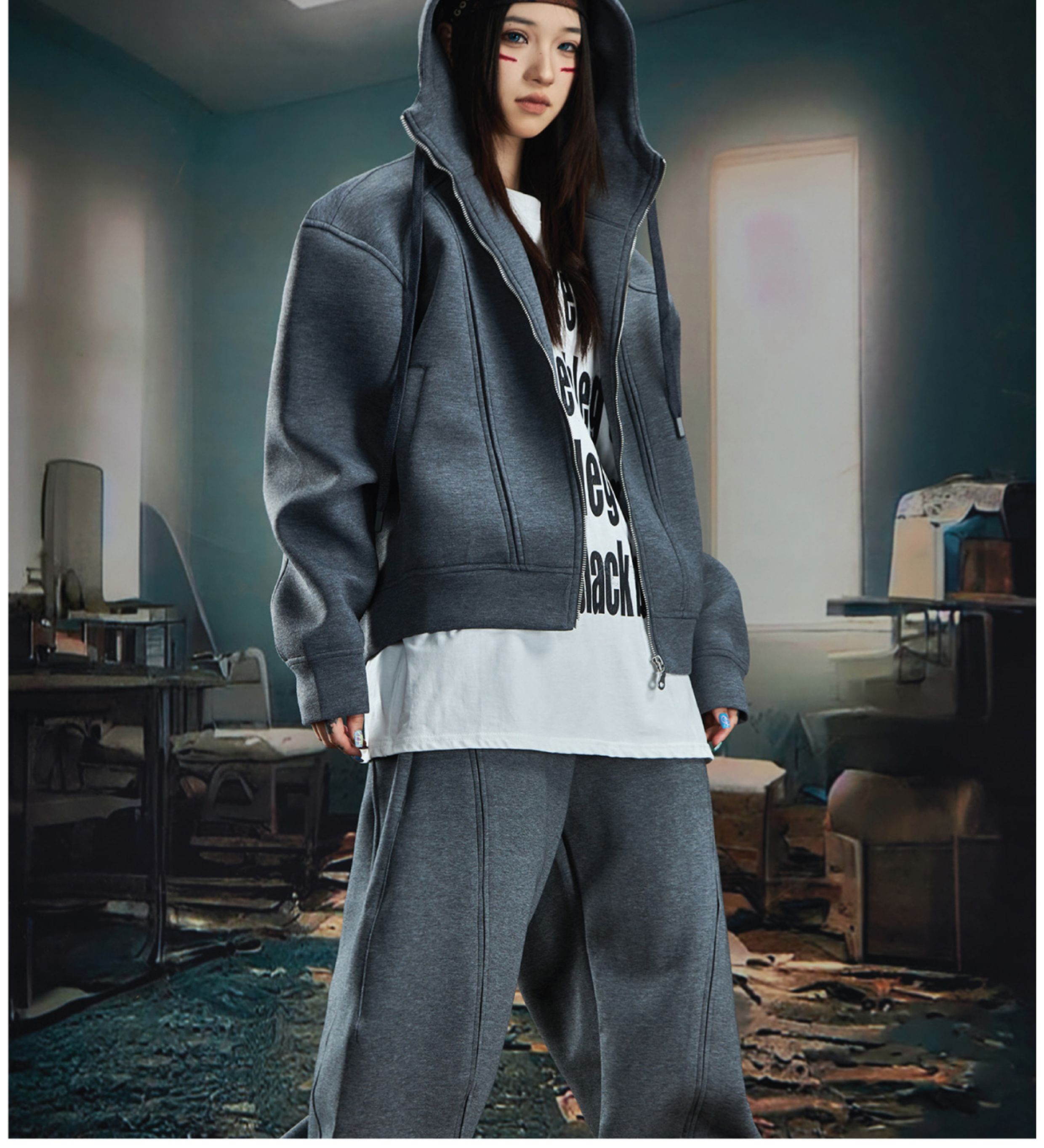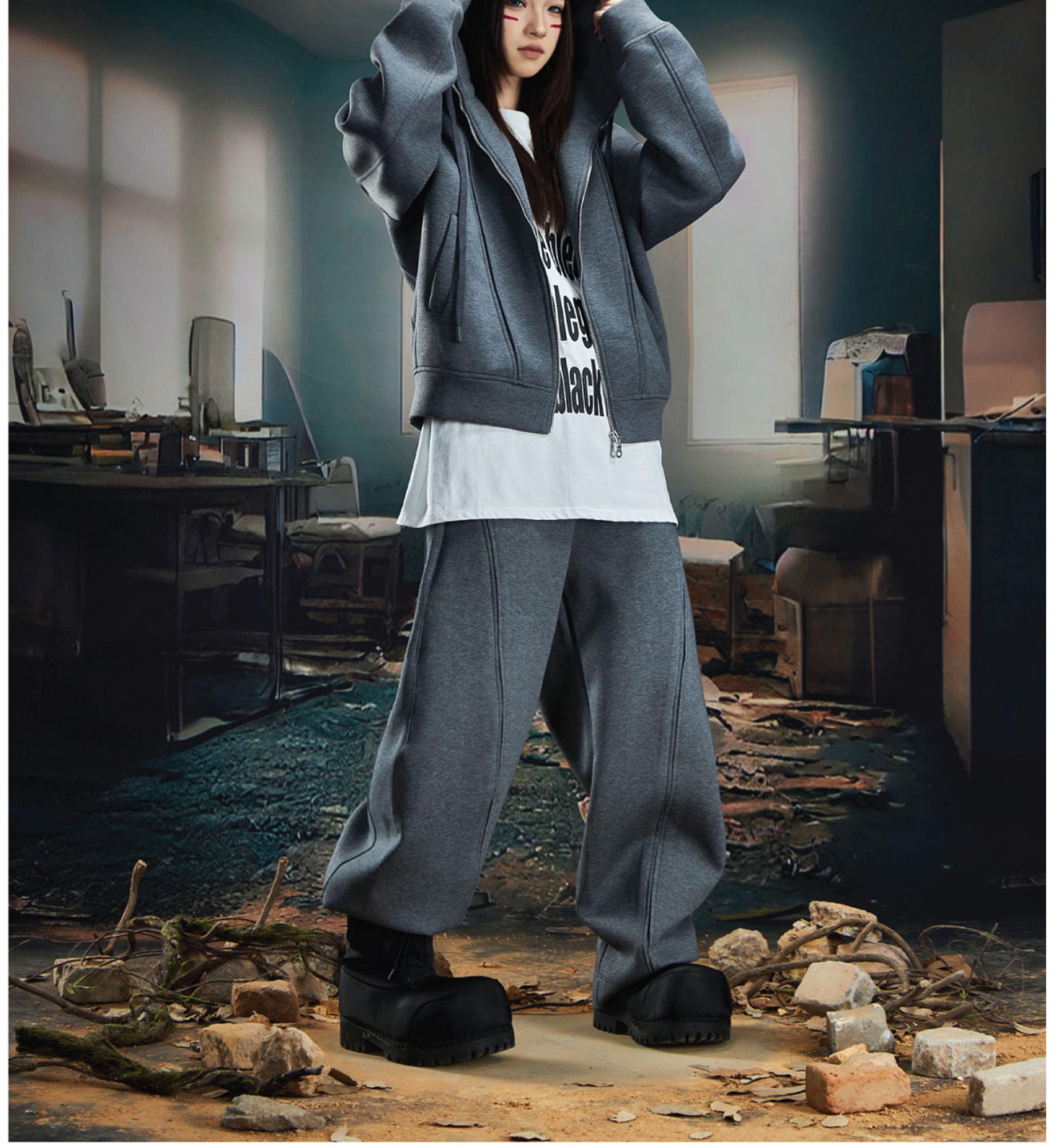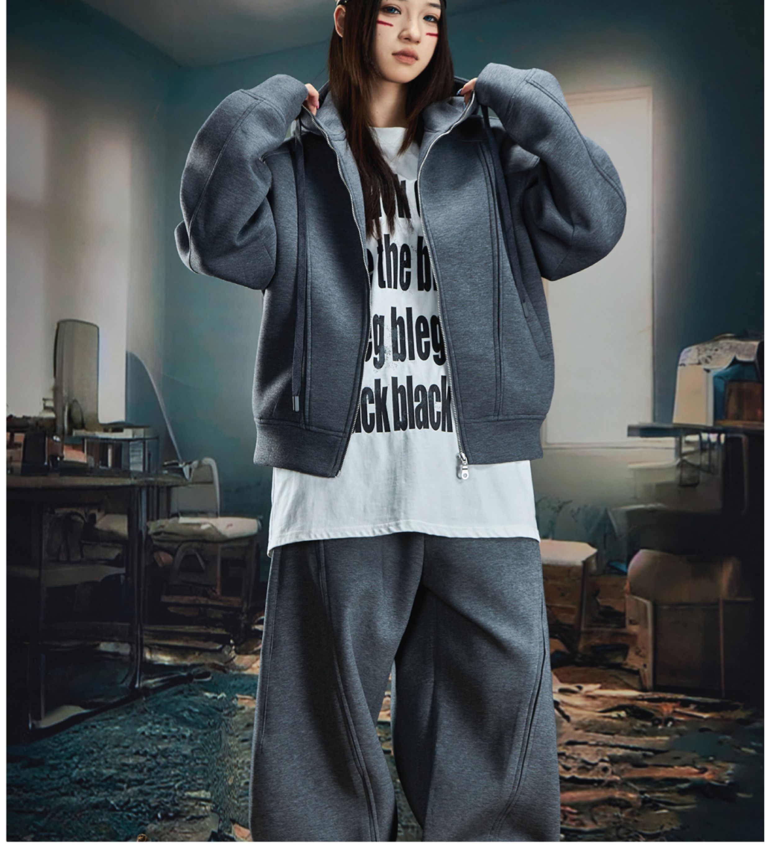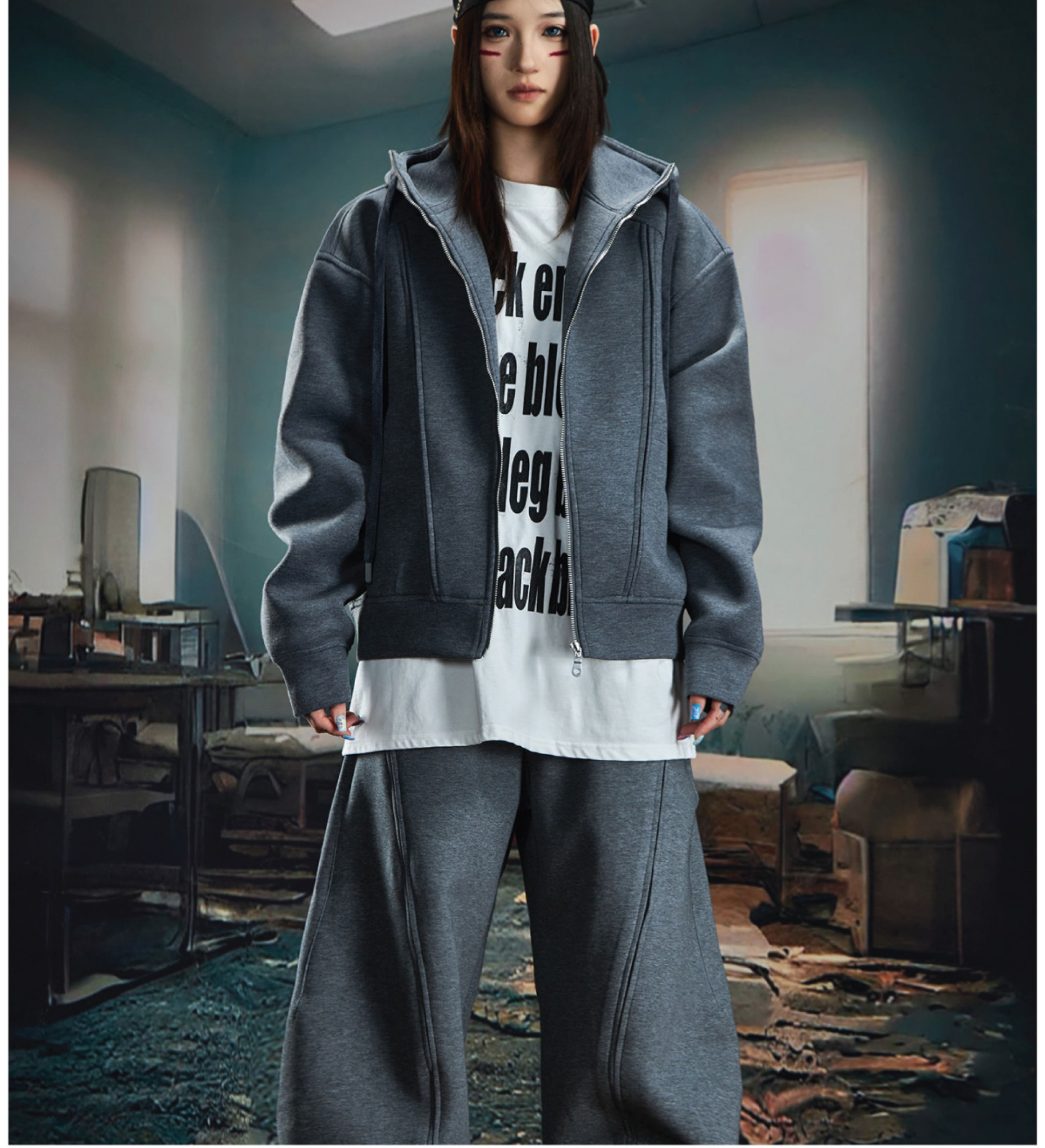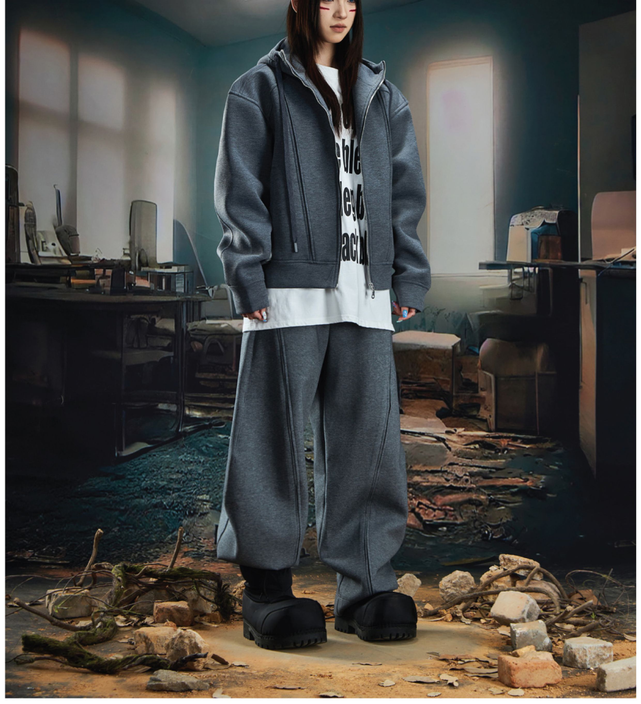 Oversize Simple Zipper Hoodie & Wide Leg Sweatpants Setup WN20581