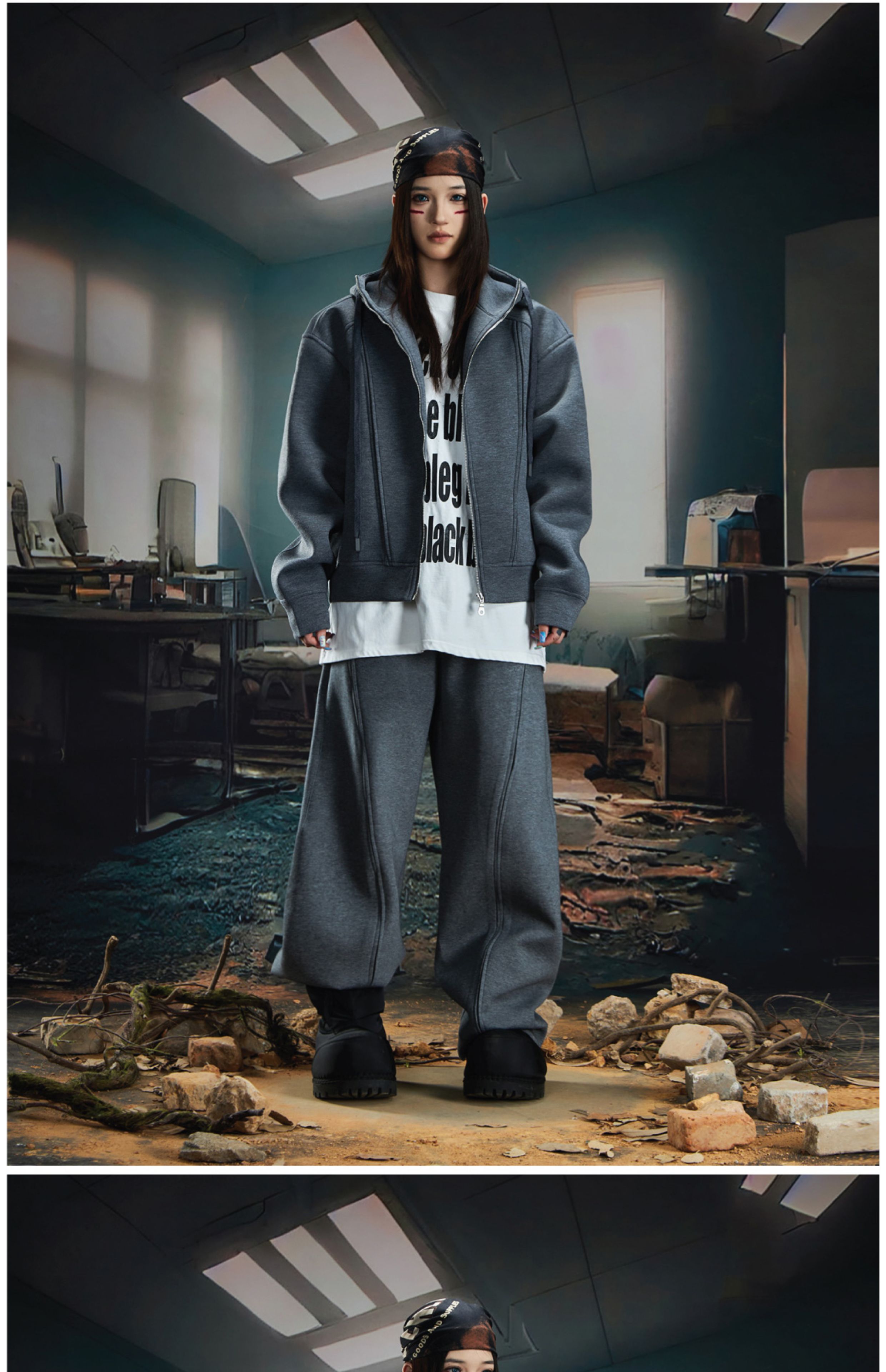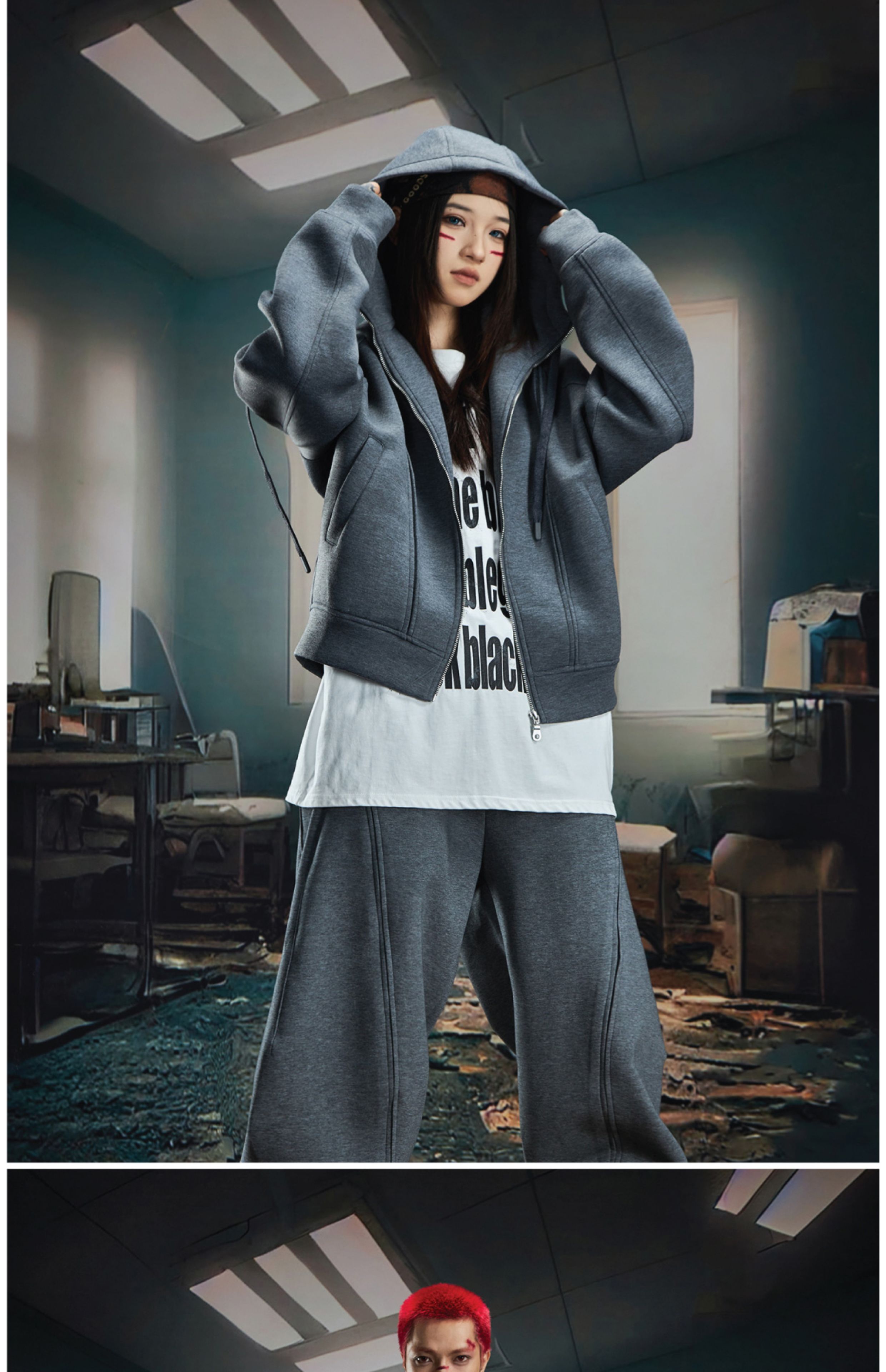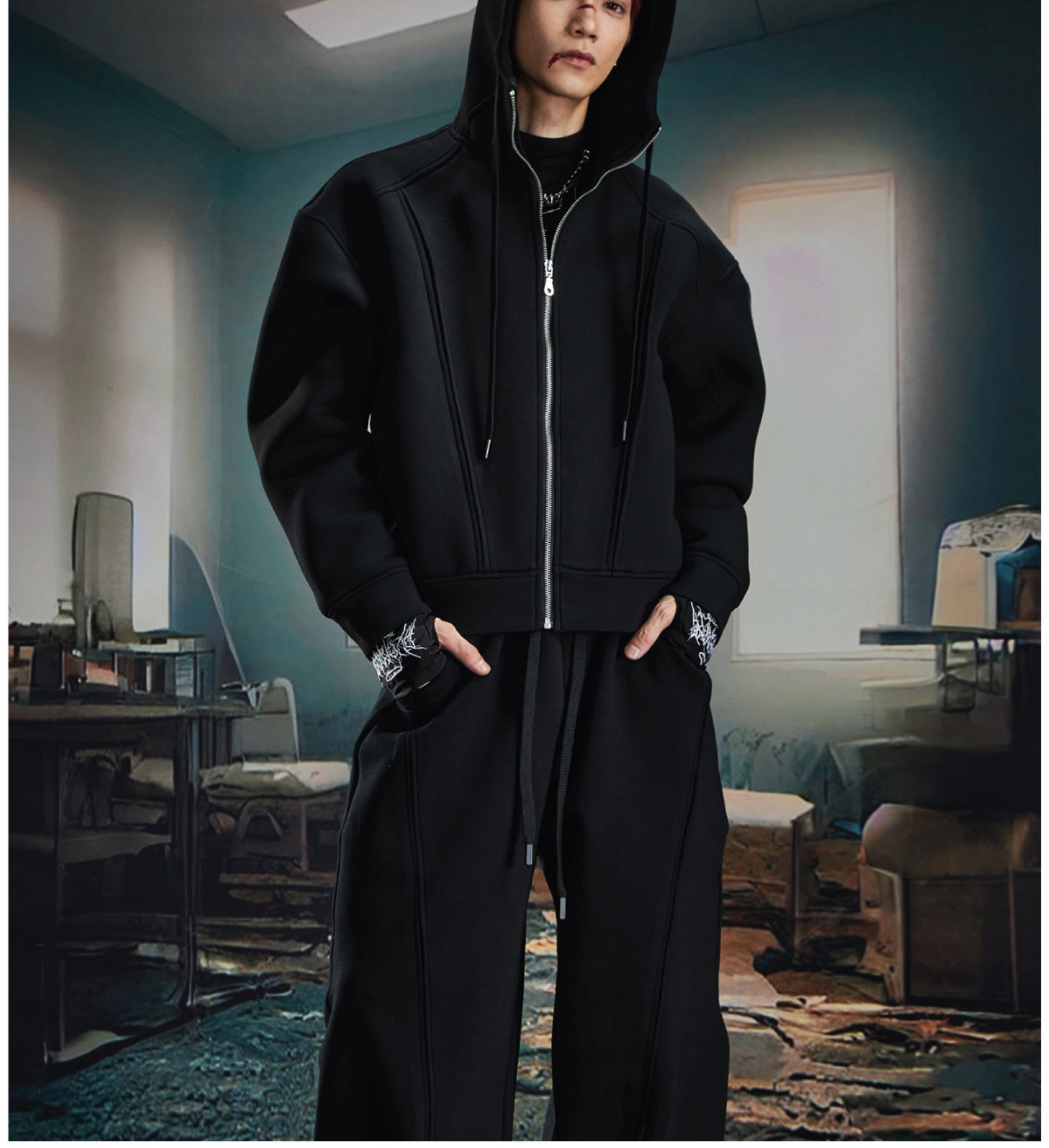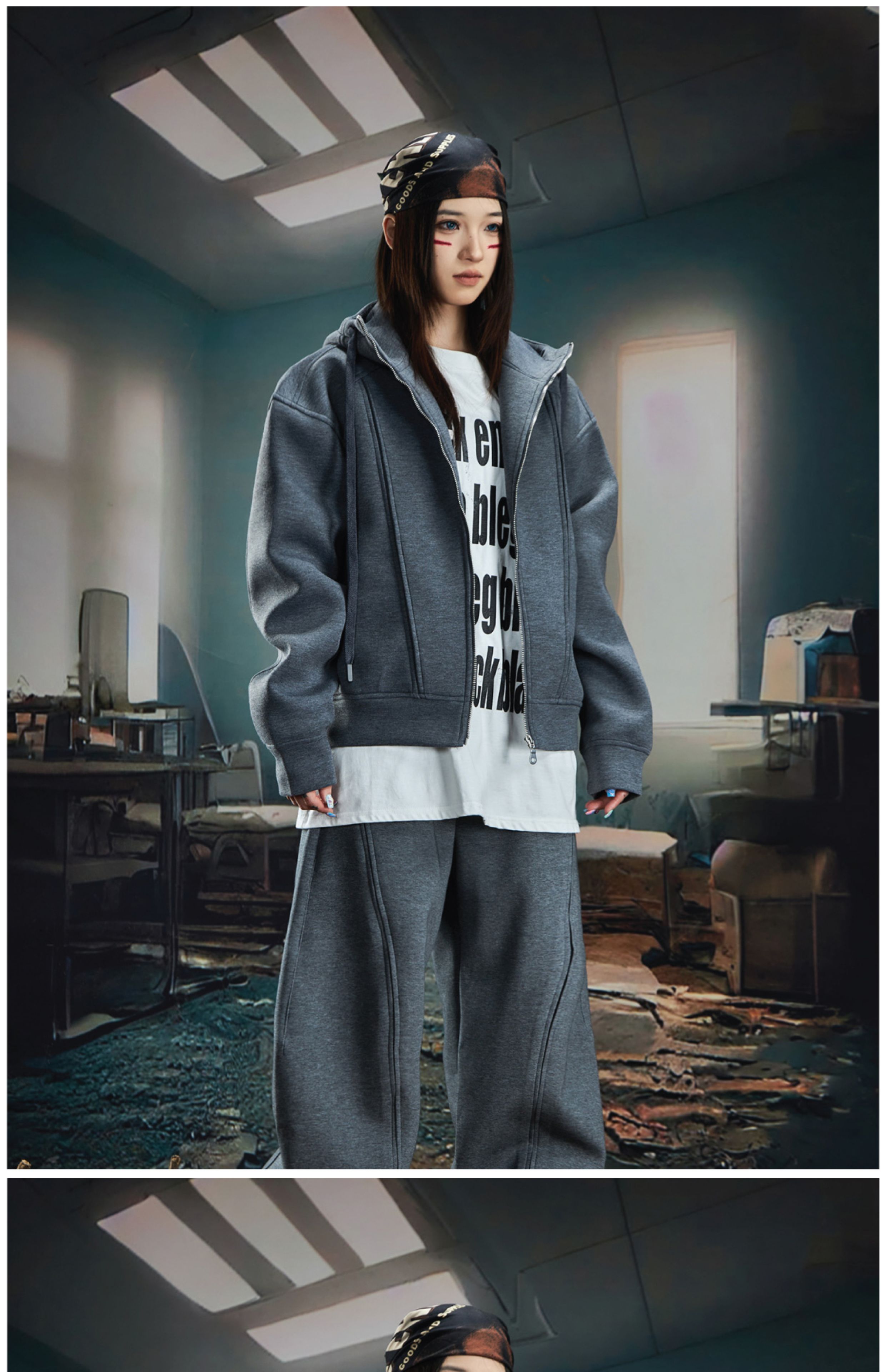 Oversize Simple Zipper Hoodie & Wide Leg Sweatpants Setup WN20581
