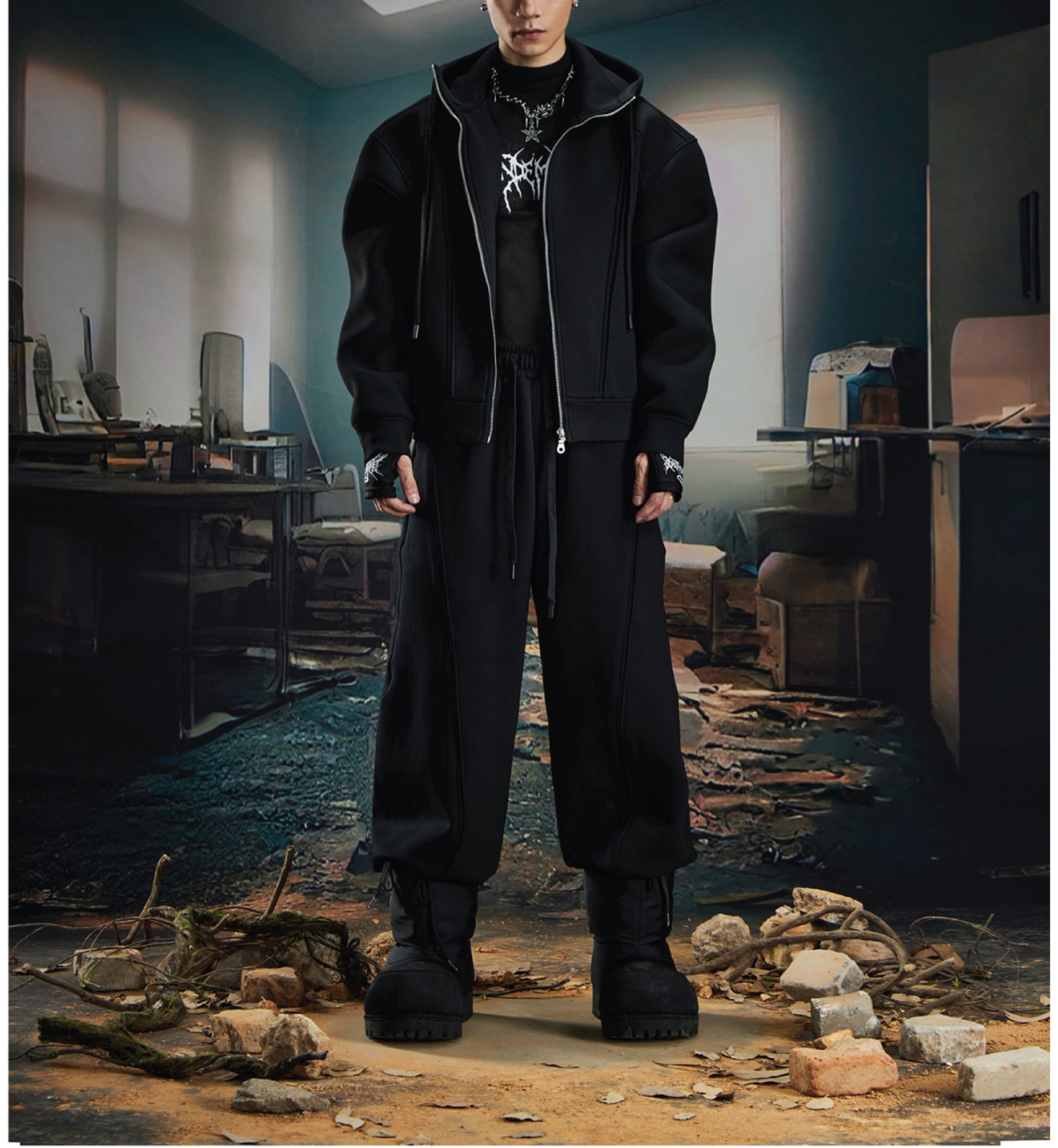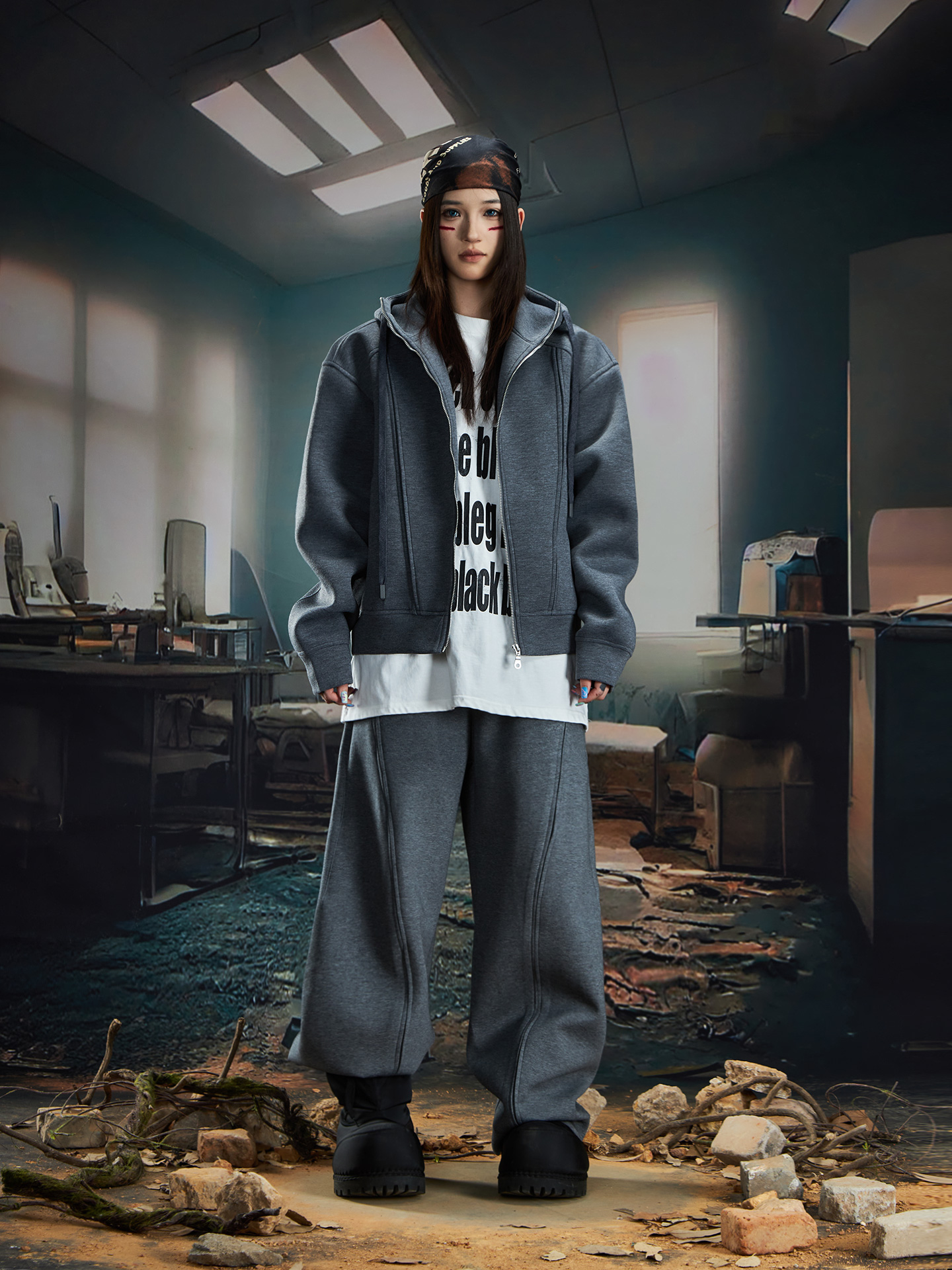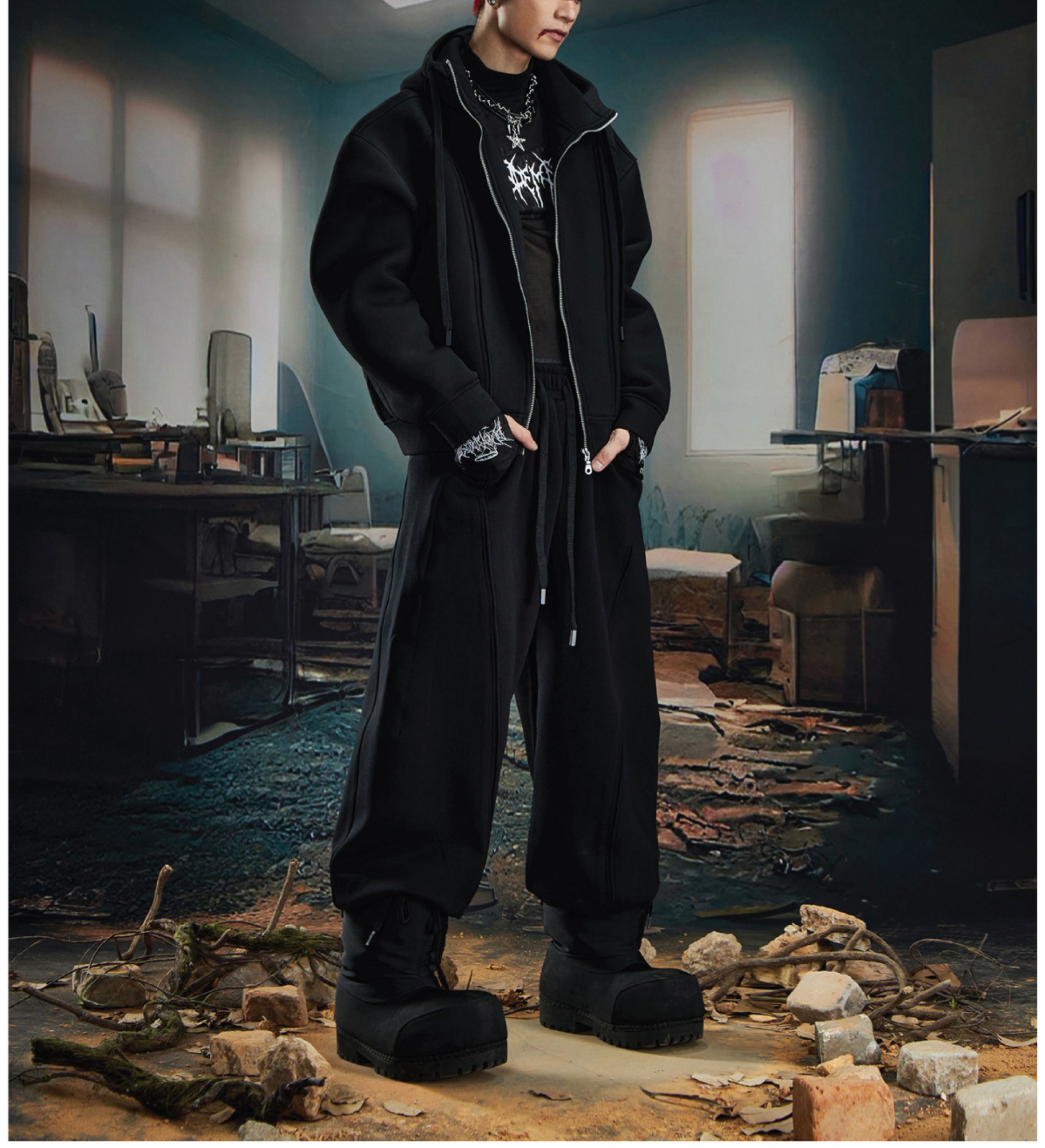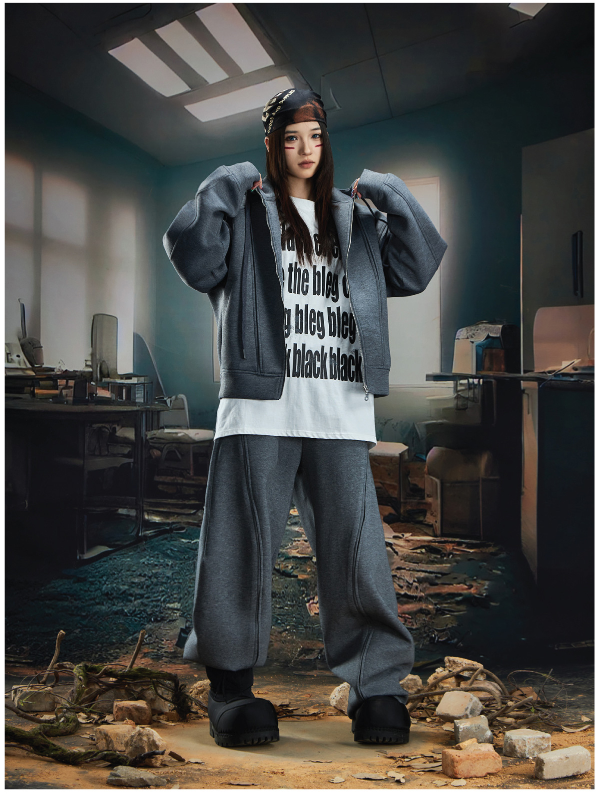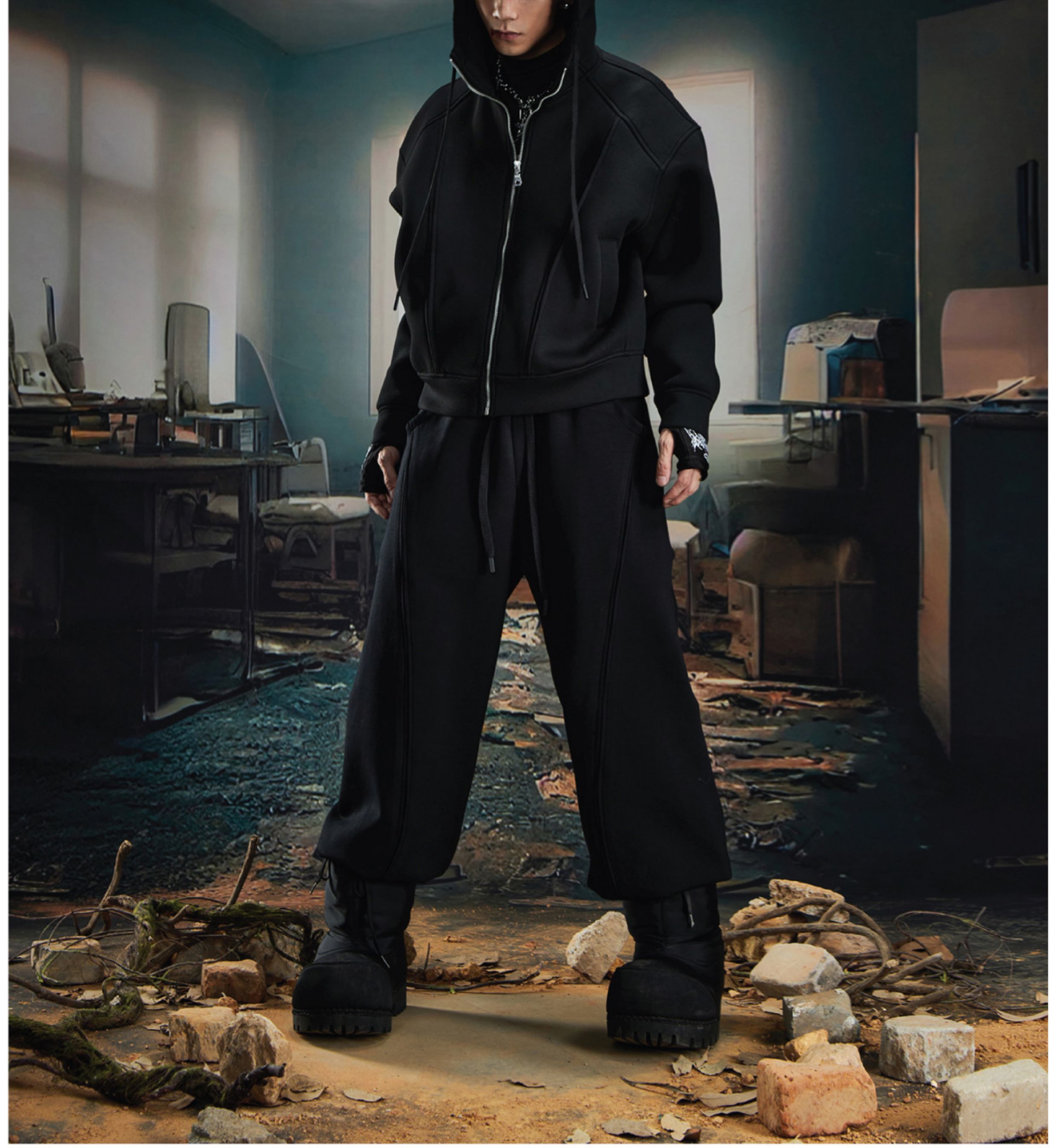 Oversize Simple Zipper Hoodie & Wide Leg Sweatpants Setup WN20581