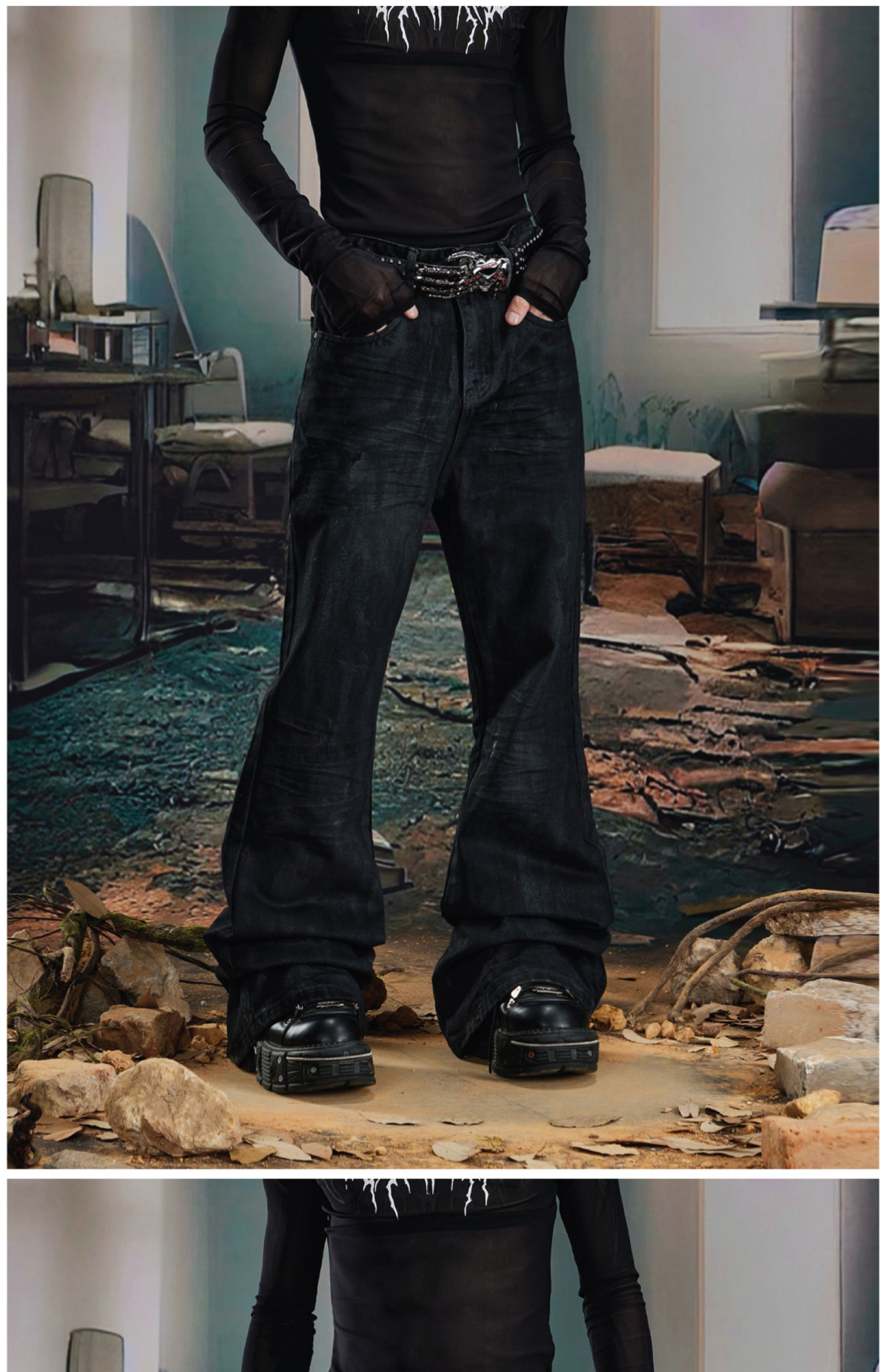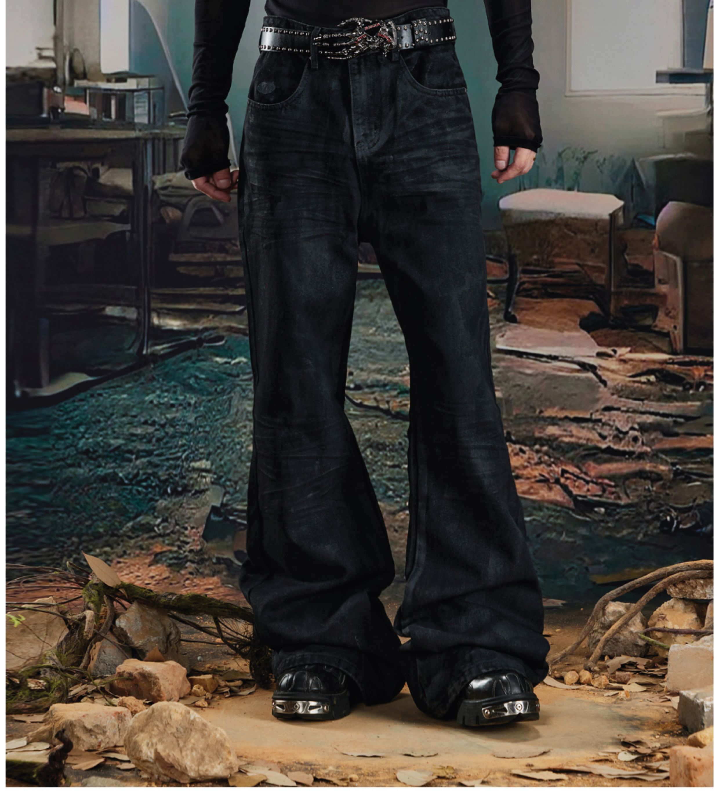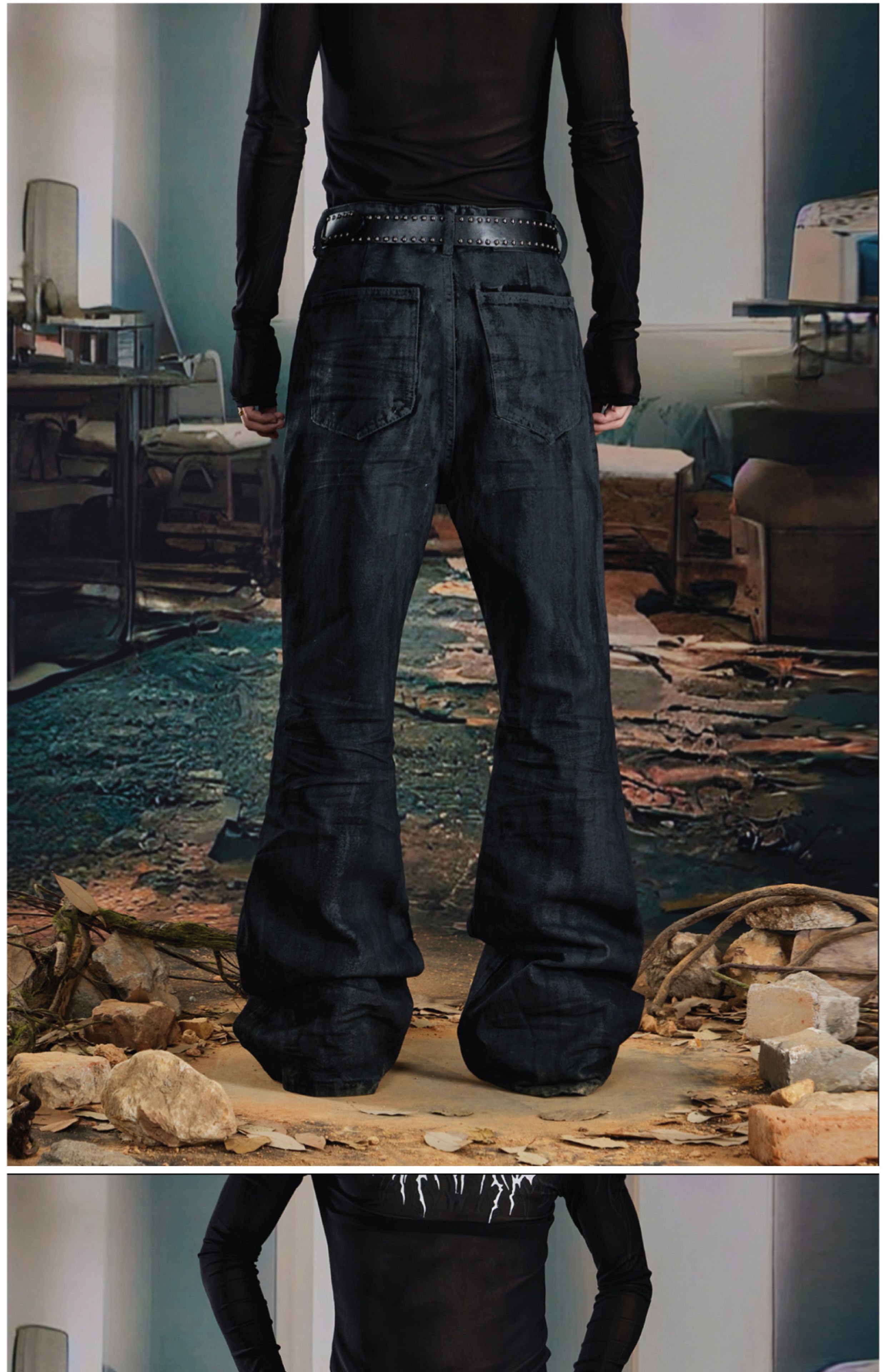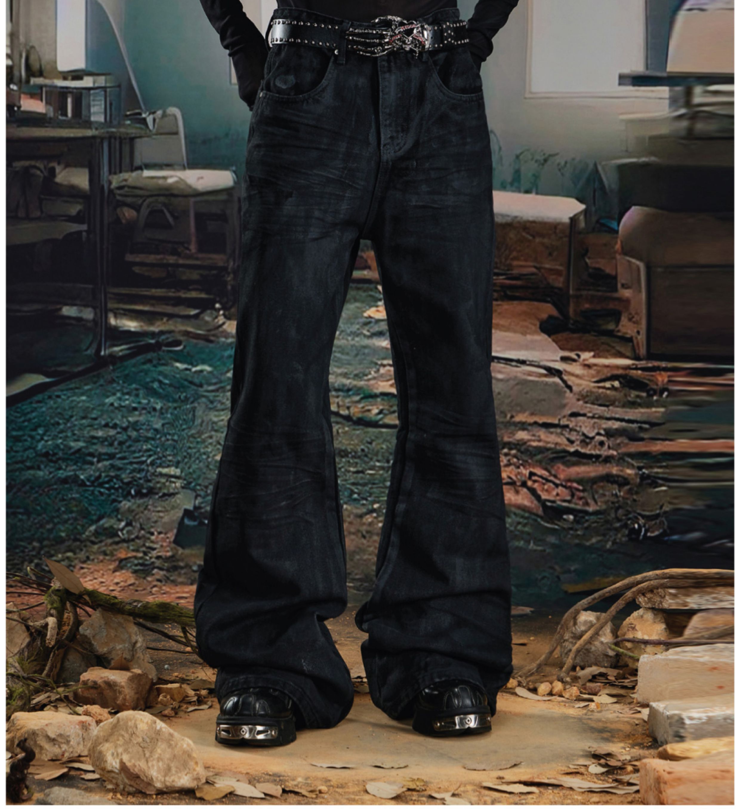 Coated Hand-Rub Long Flare Denim Jeans WN20584