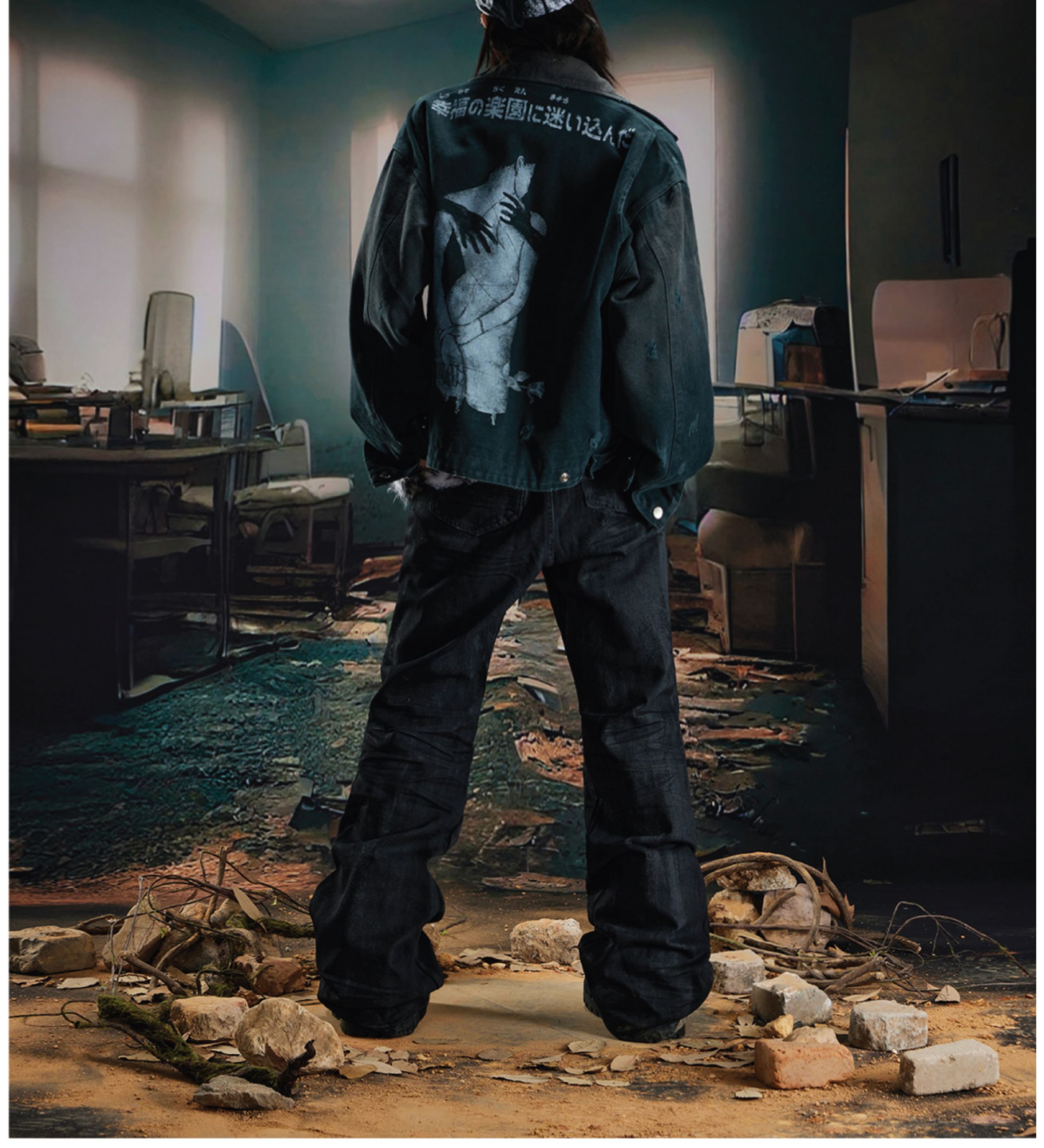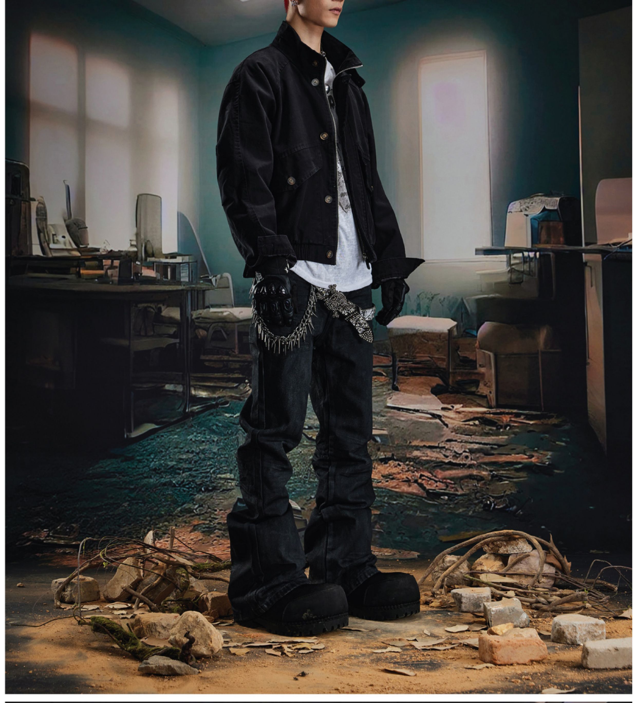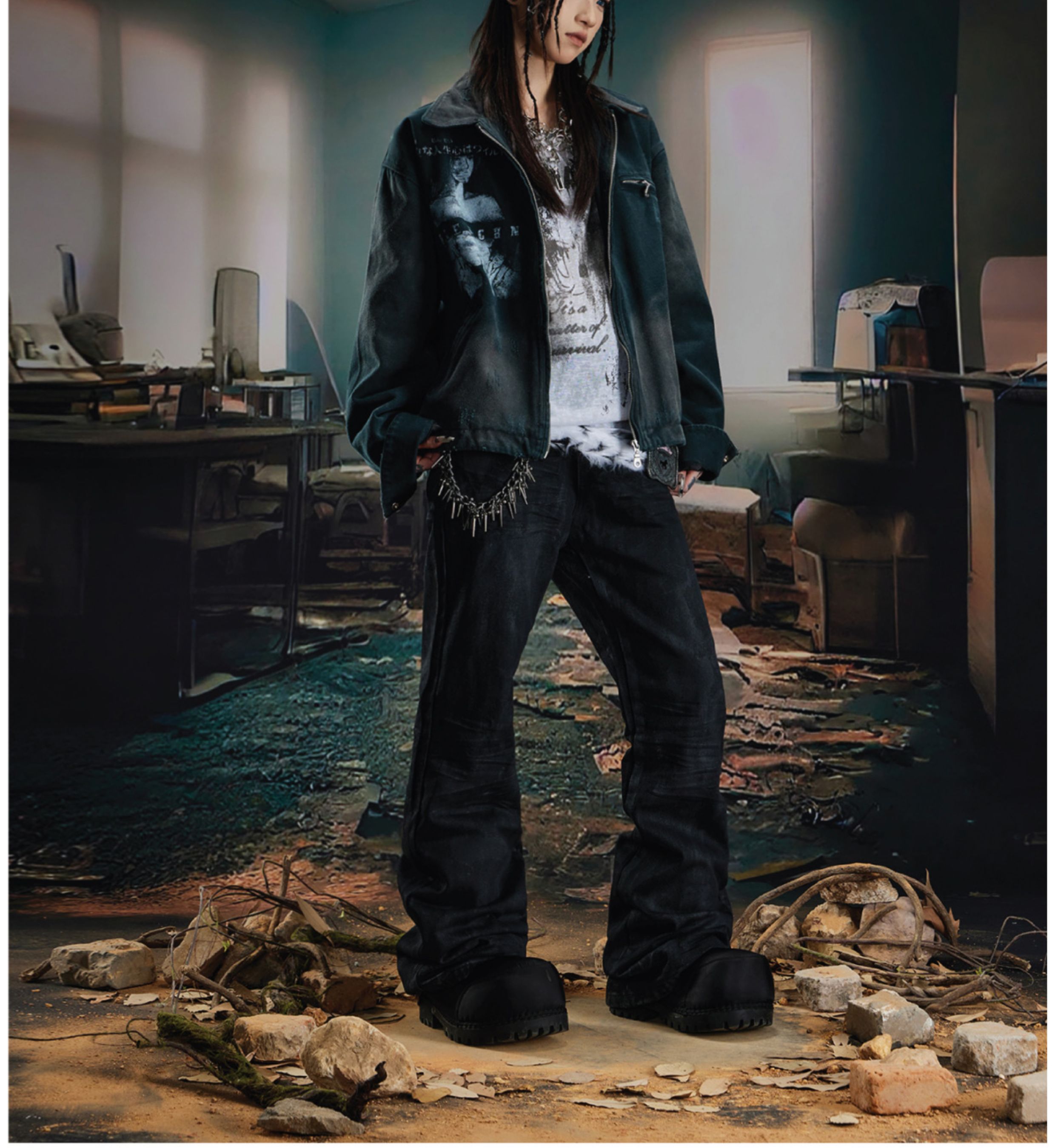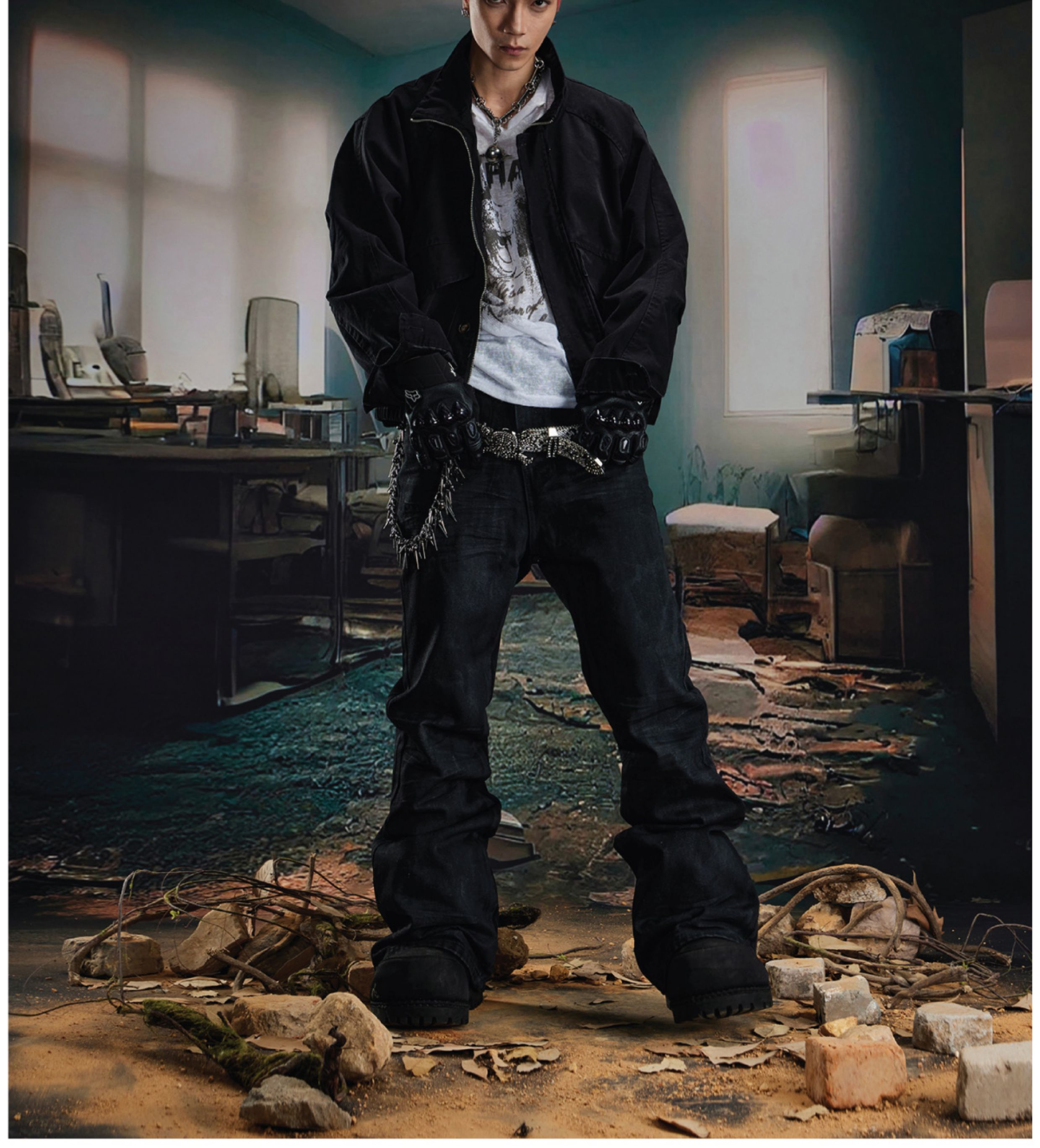 Coated Hand-Rub Long Flare Denim Jeans WN20584