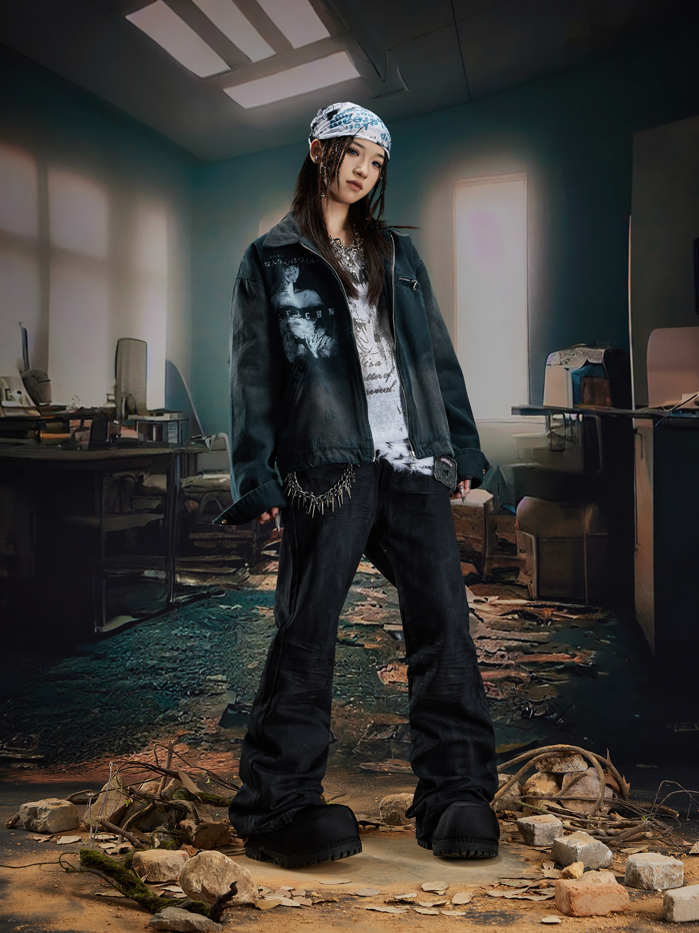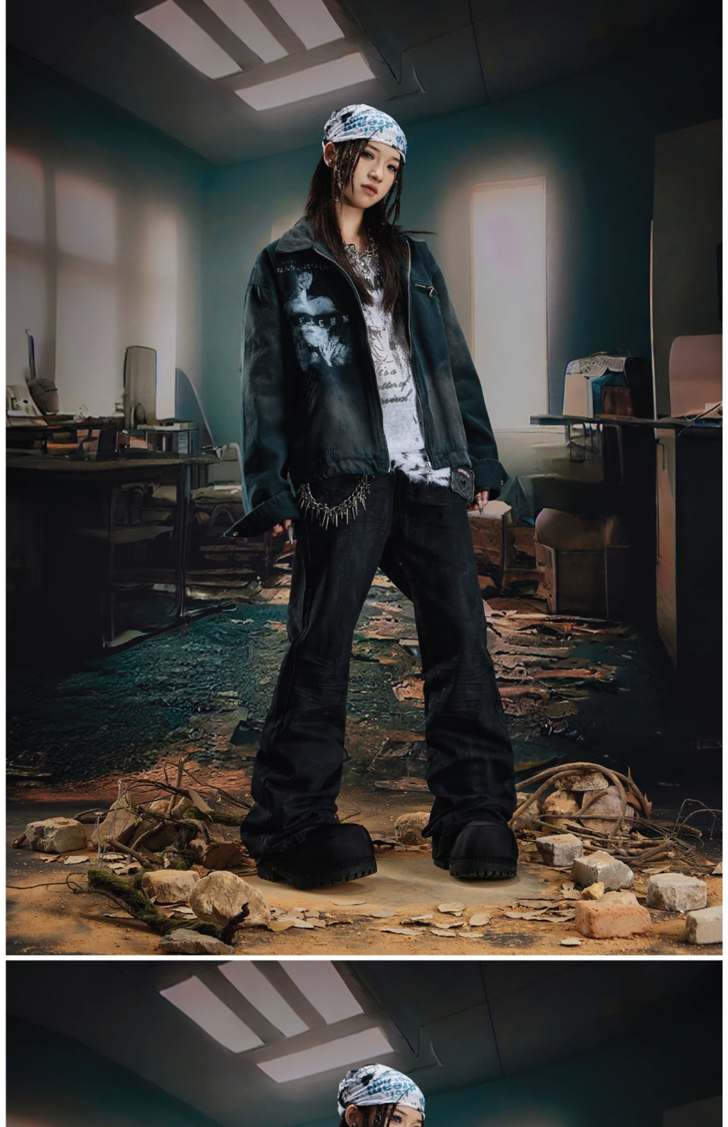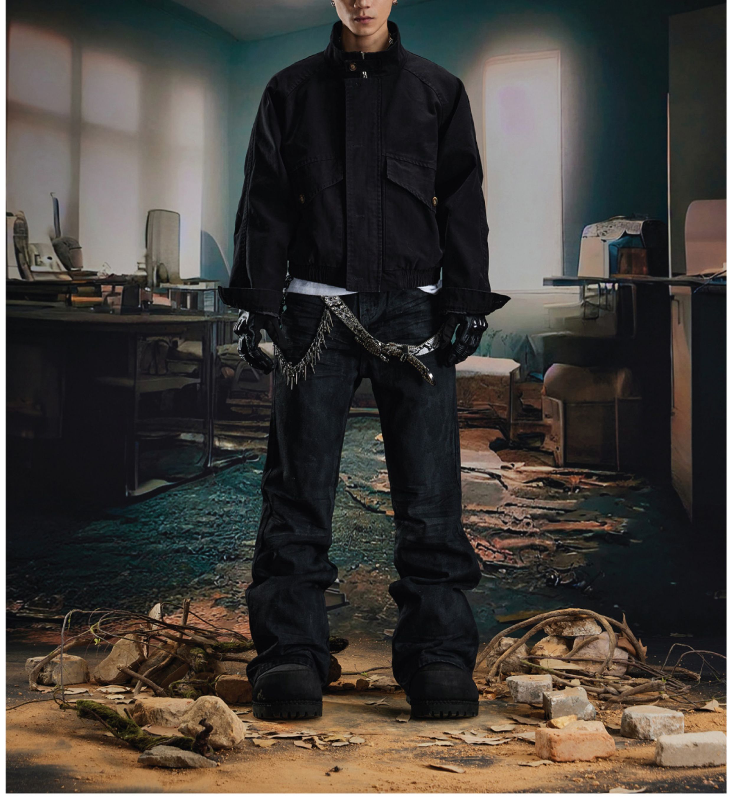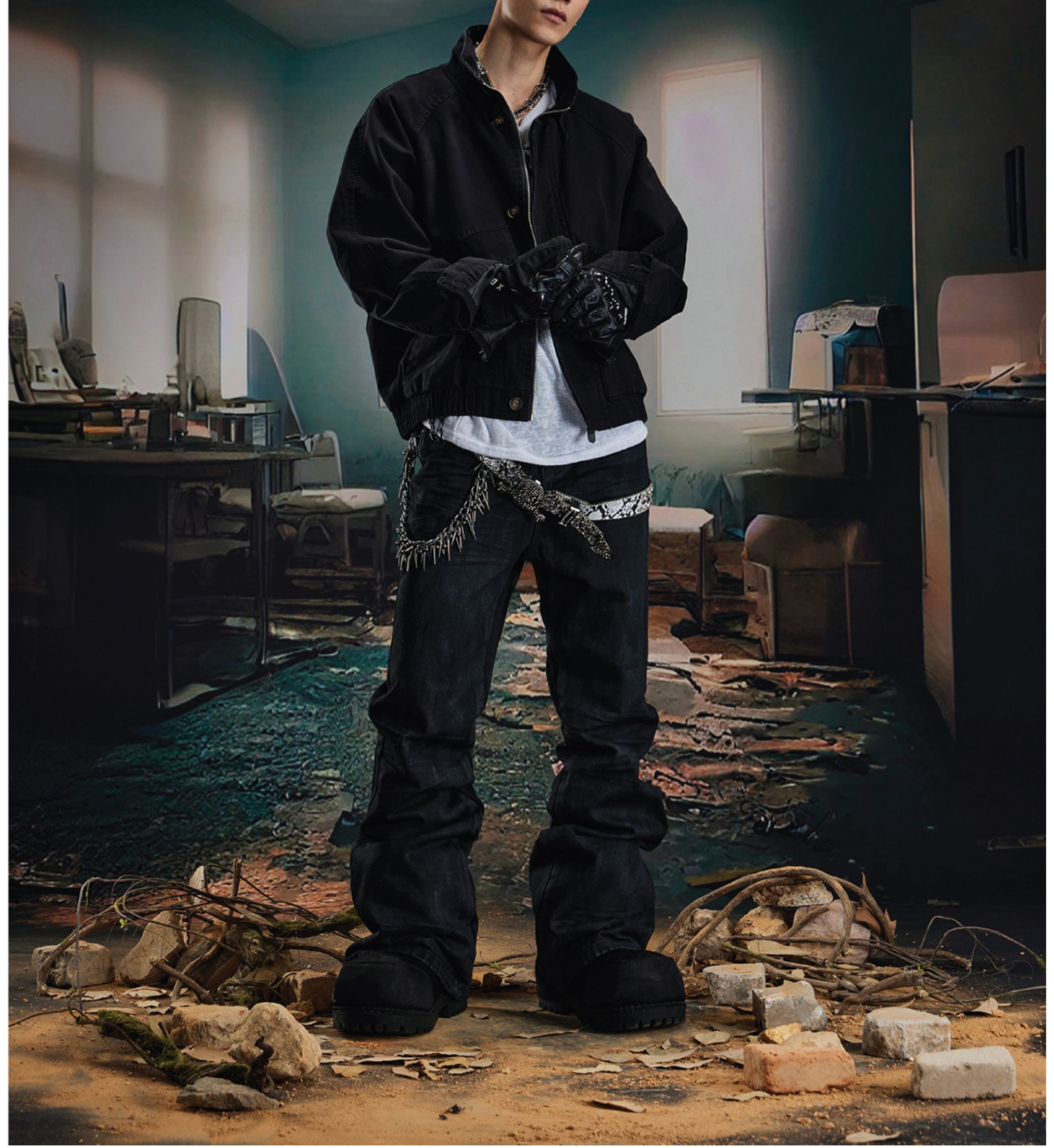 Coated Hand-Rub Long Flare Denim Jeans WN20584
