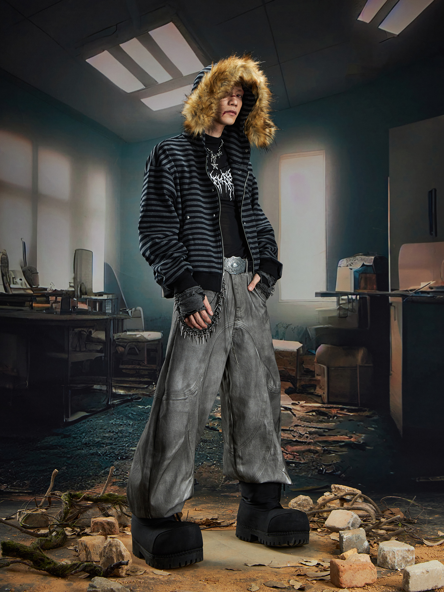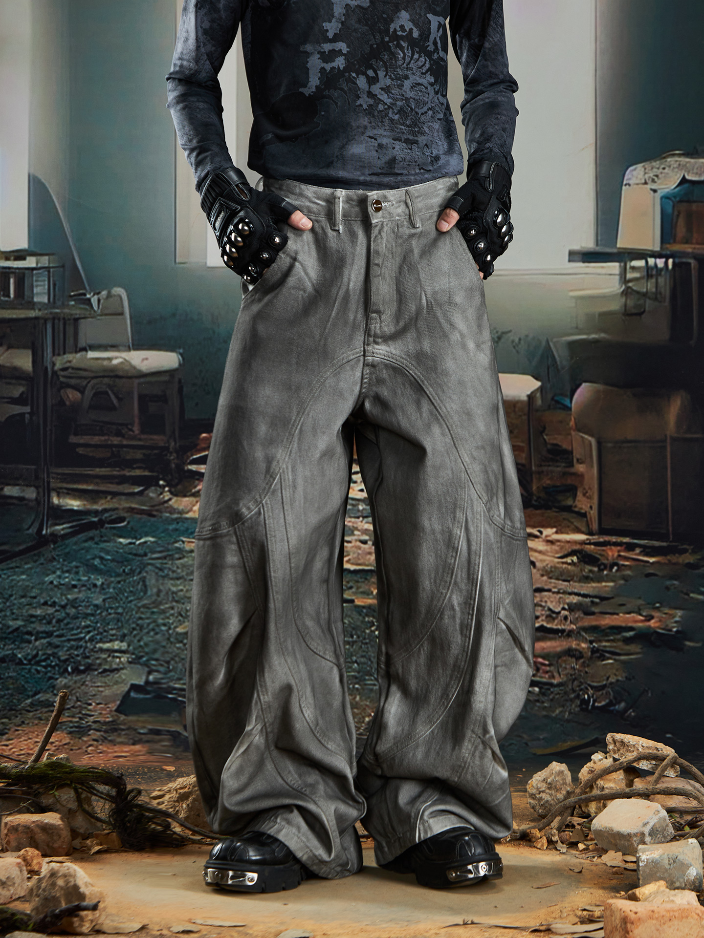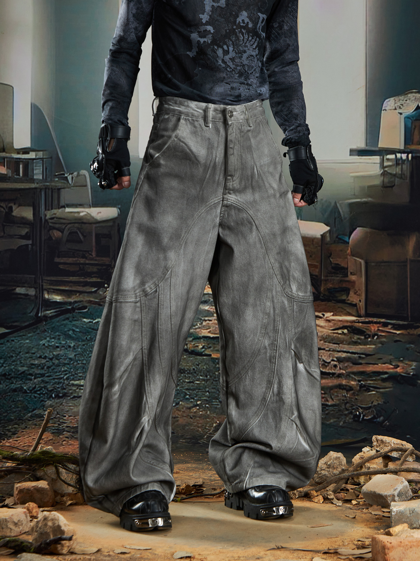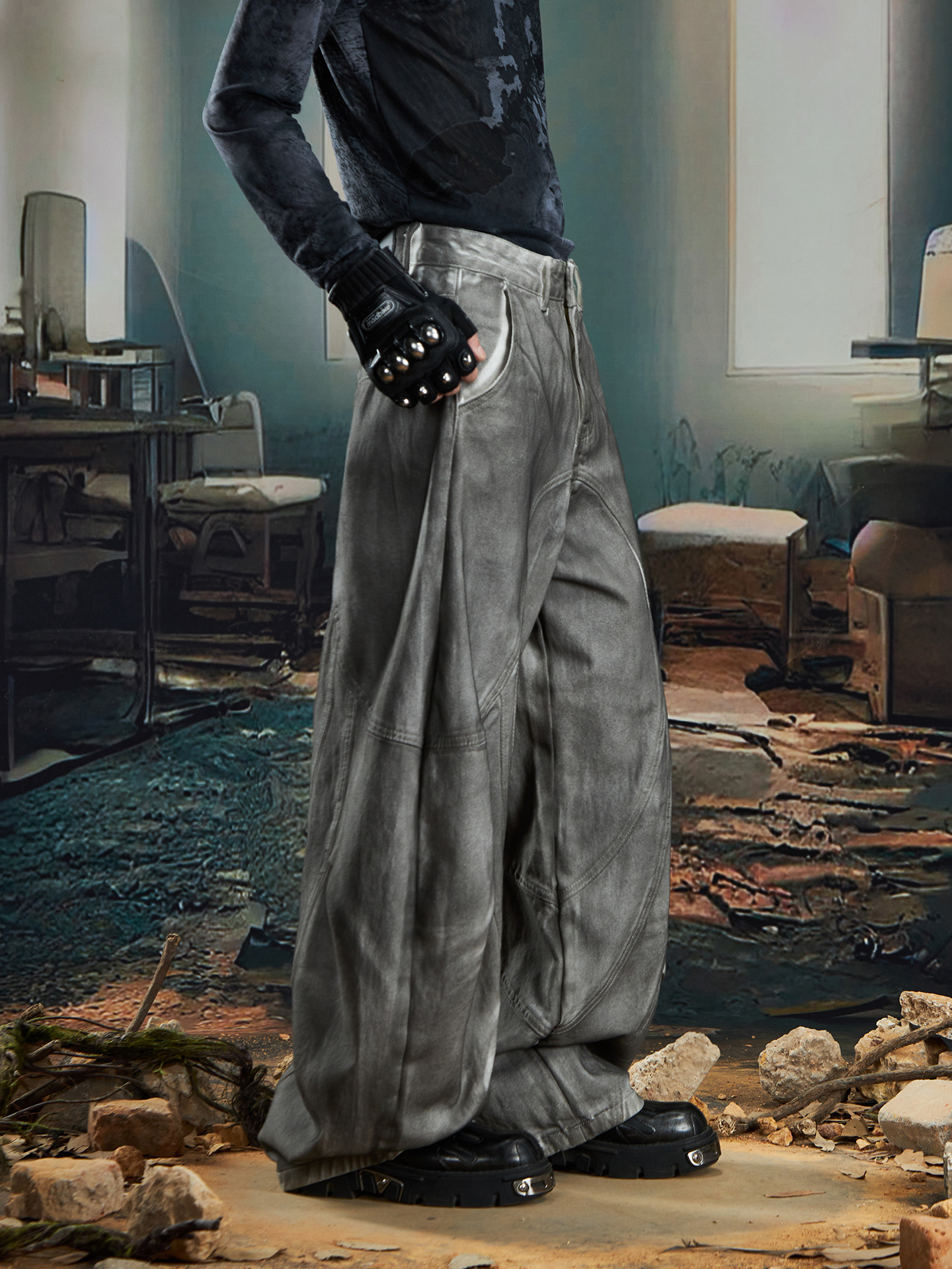 Dirty Wash Curved Wide Leg Denim Jeans WN20590