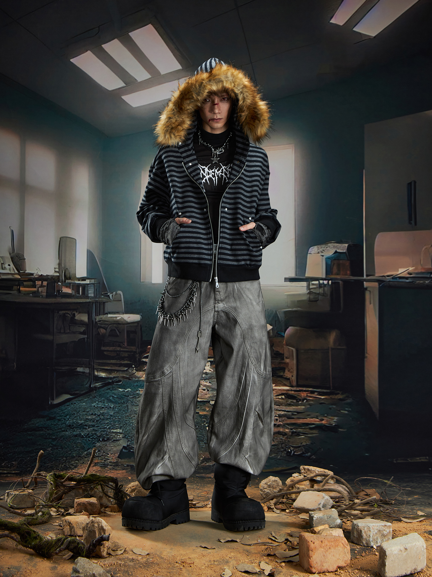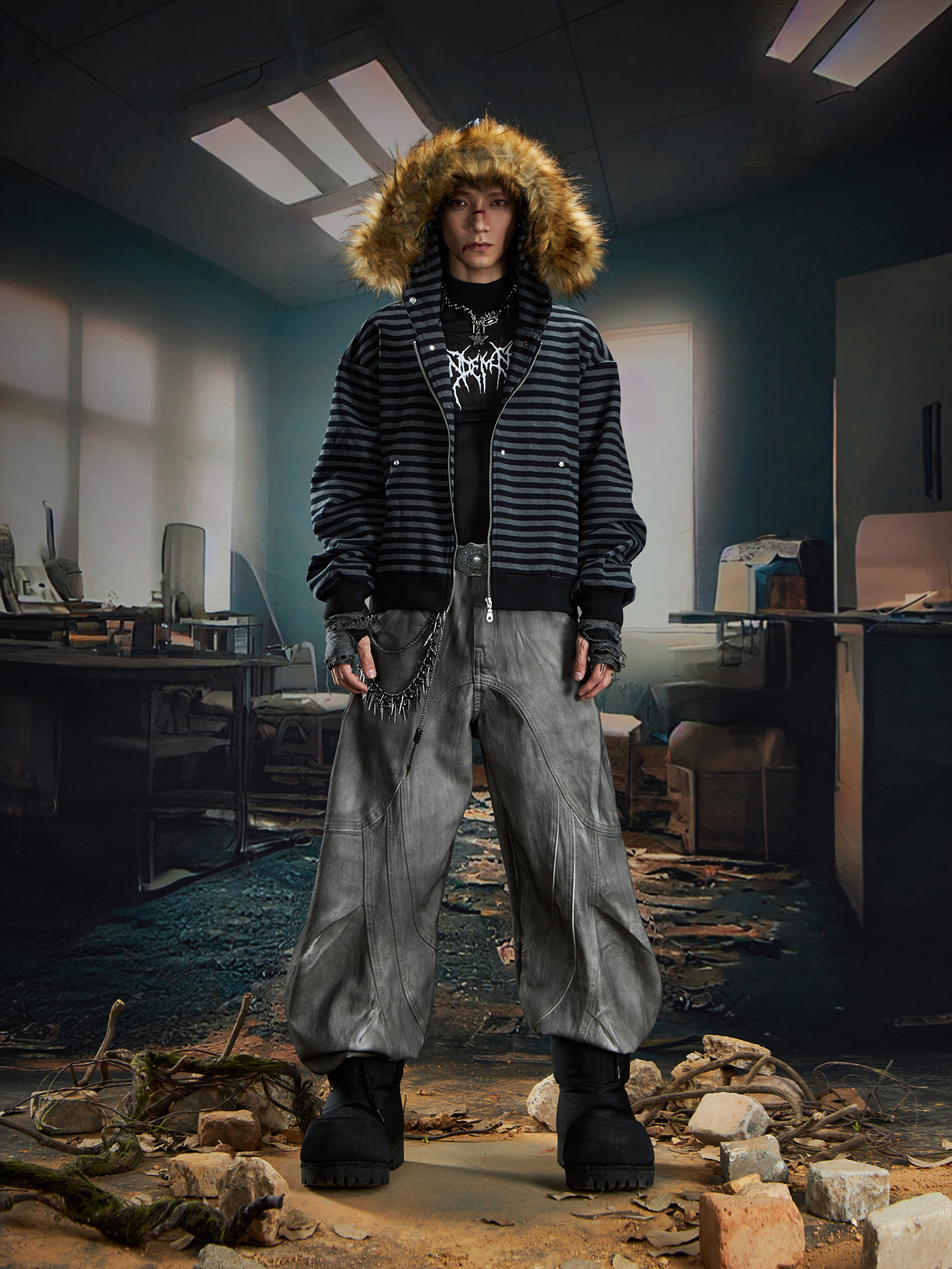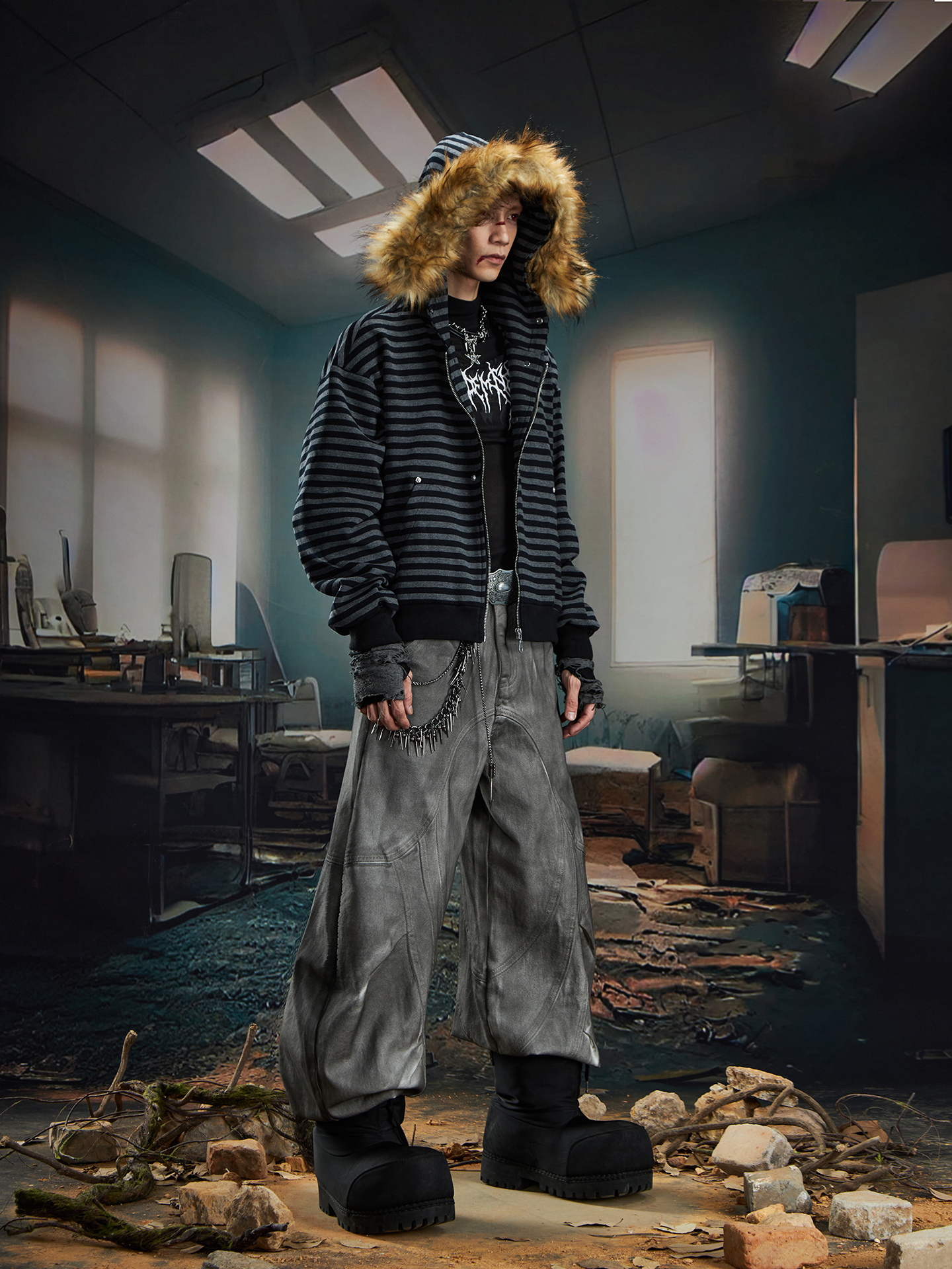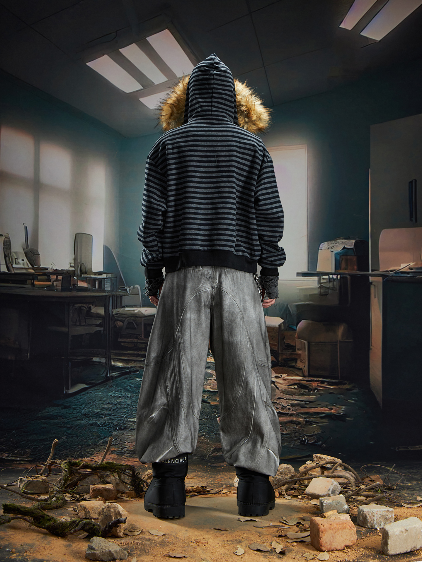 Dirty Wash Curved Wide Leg Denim Jeans WN20590