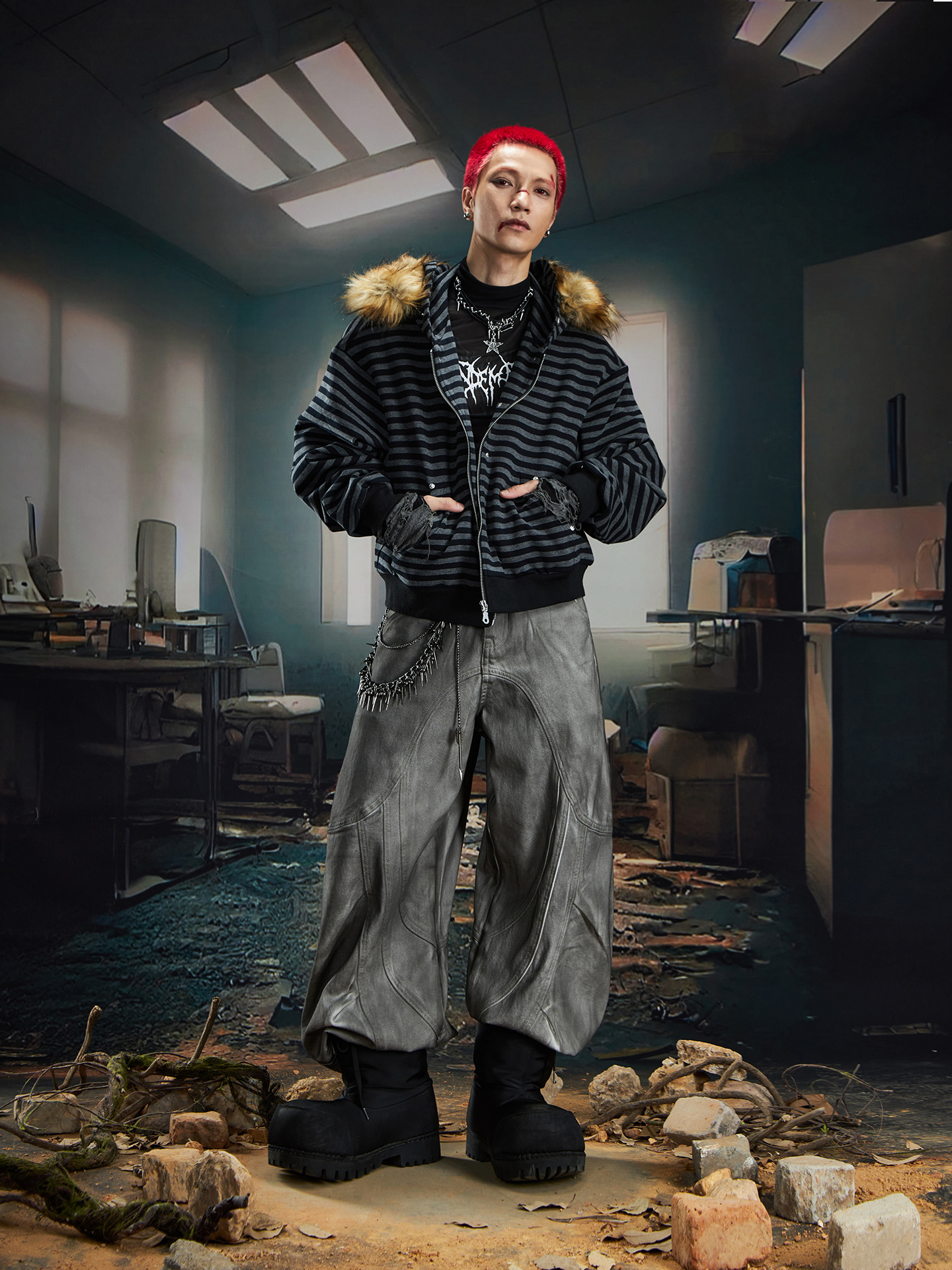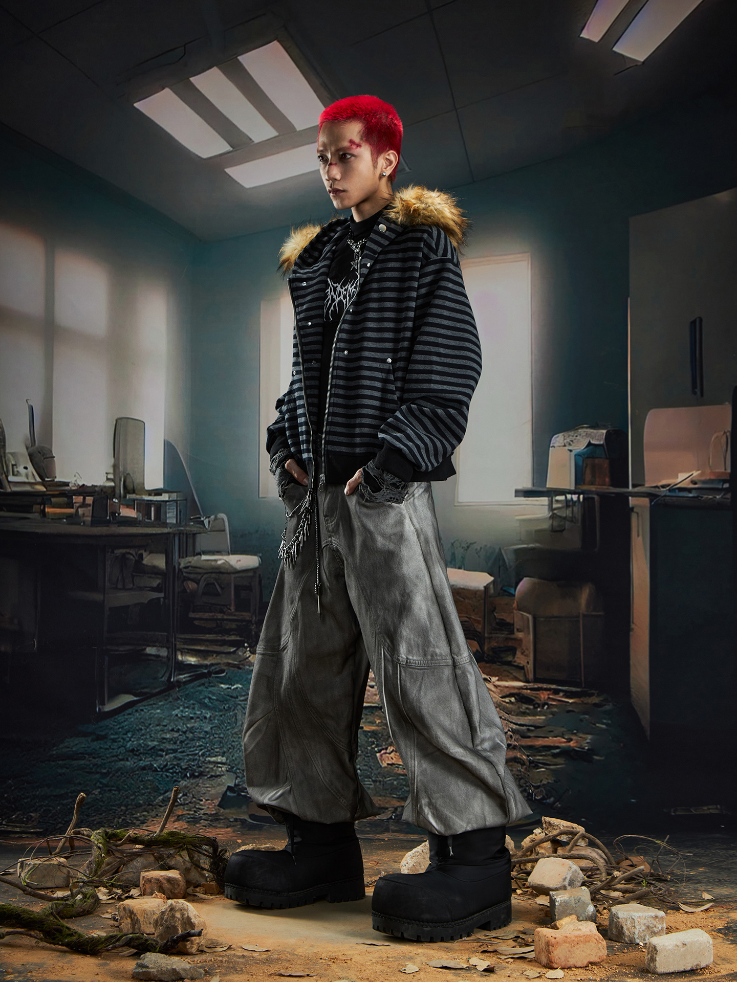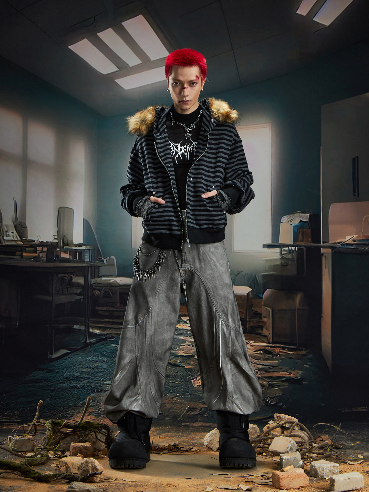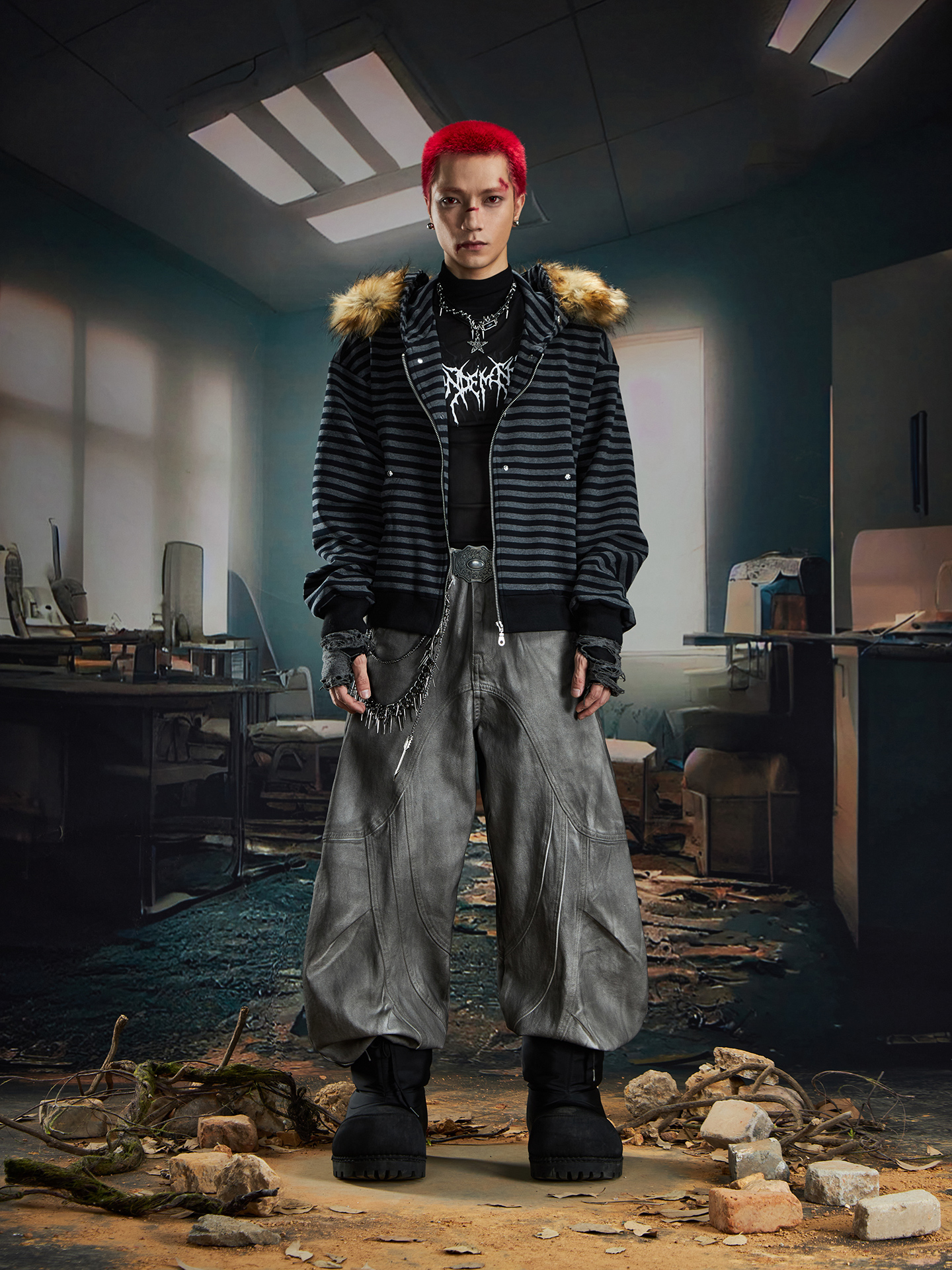 Dirty Wash Curved Wide Leg Denim Jeans WN20590