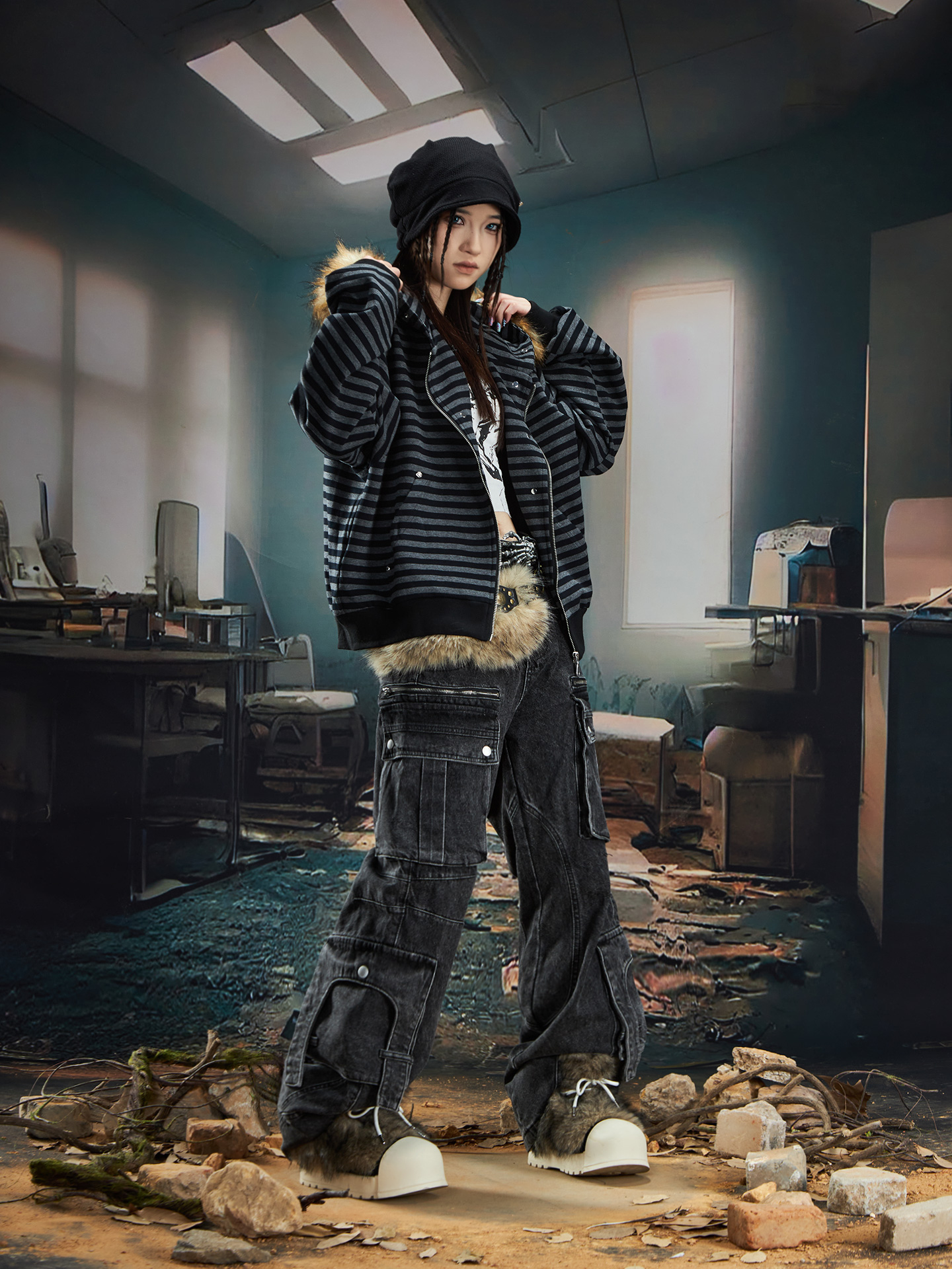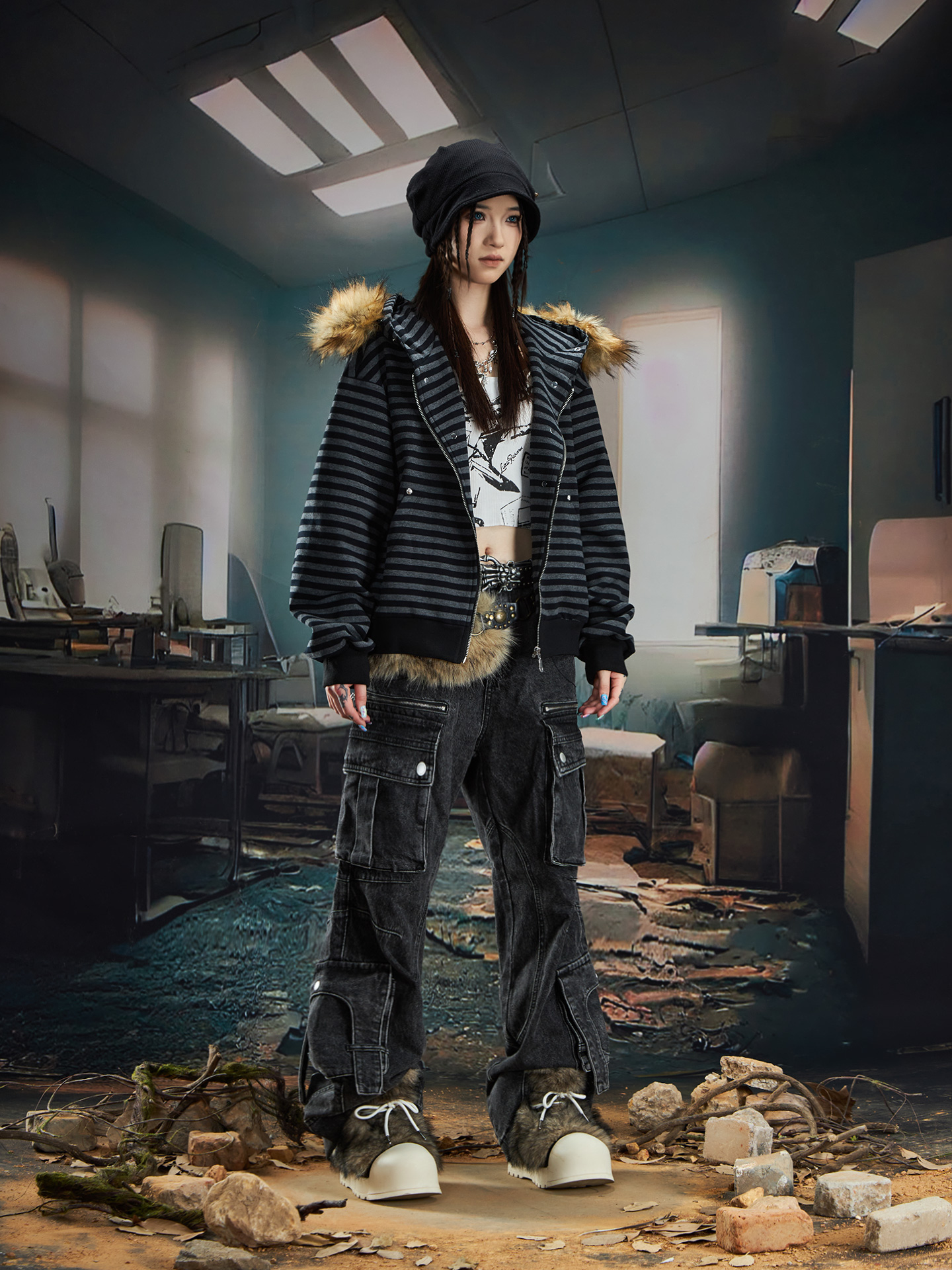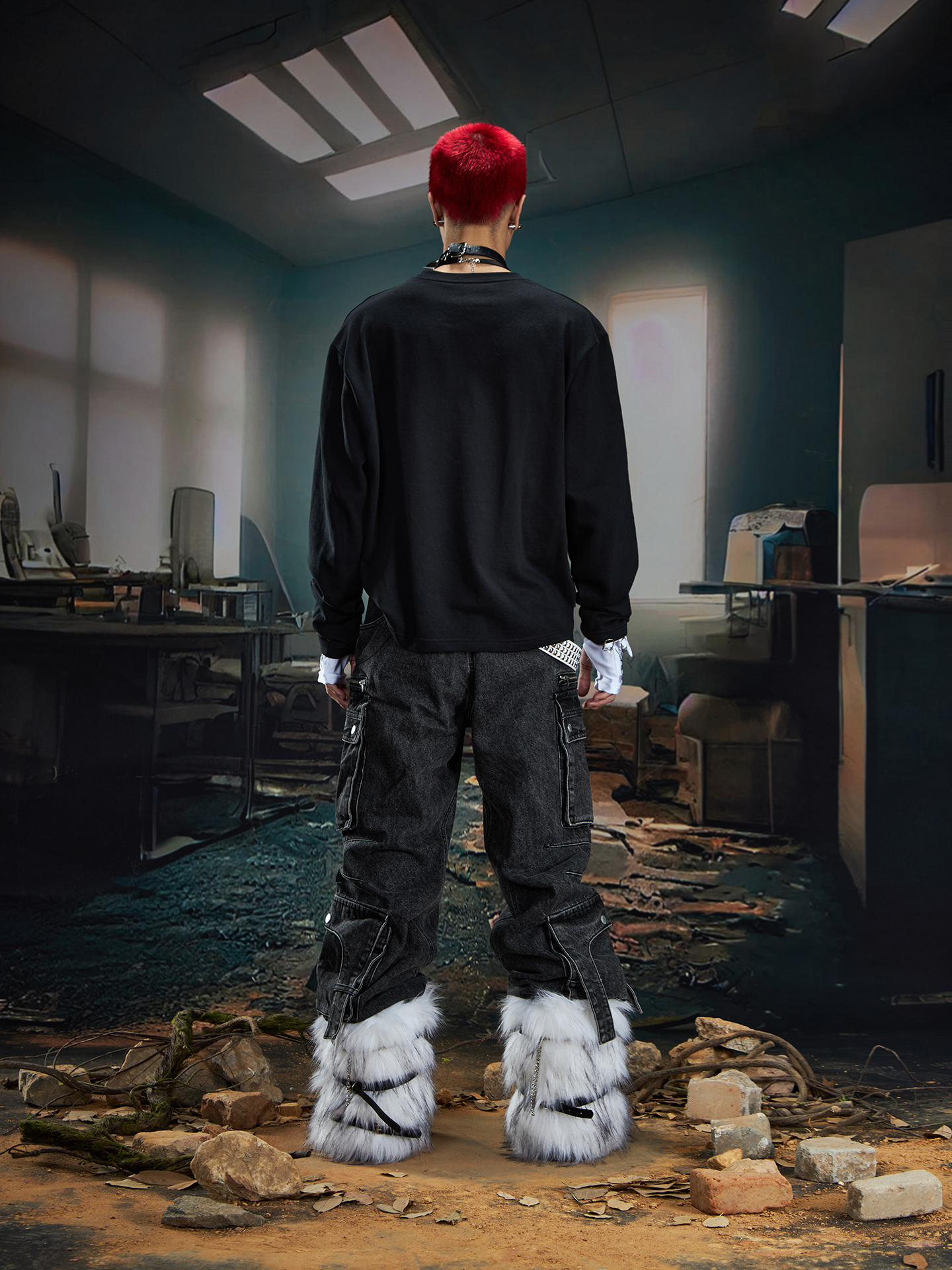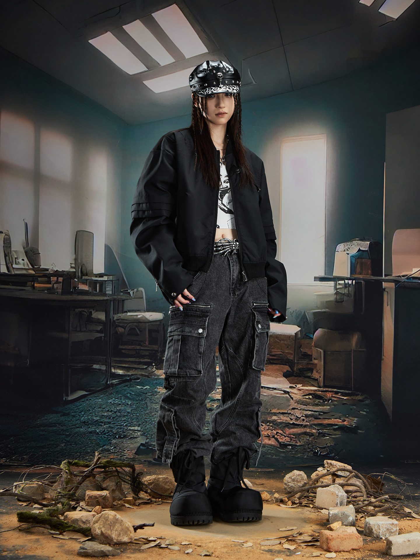 Multi-Pocket Washed Deconstructed 3D Cut Straight Cargo Denim Jeans WN20592