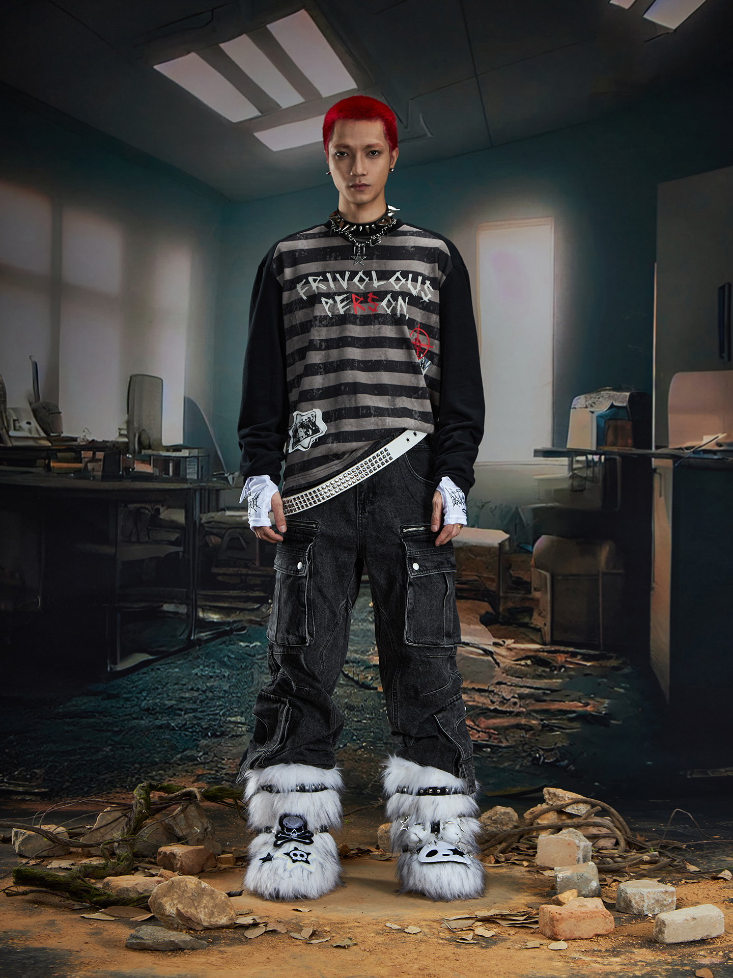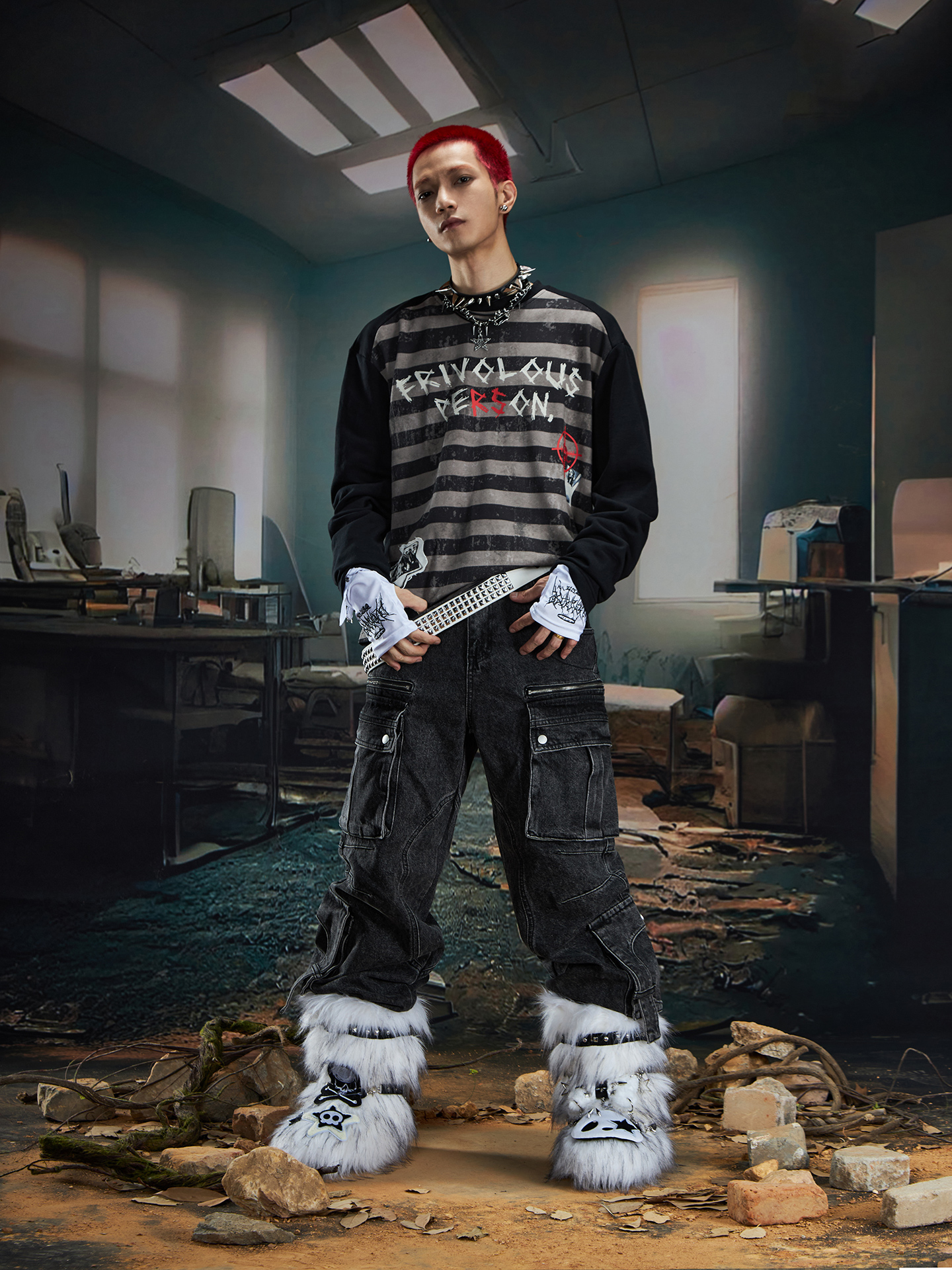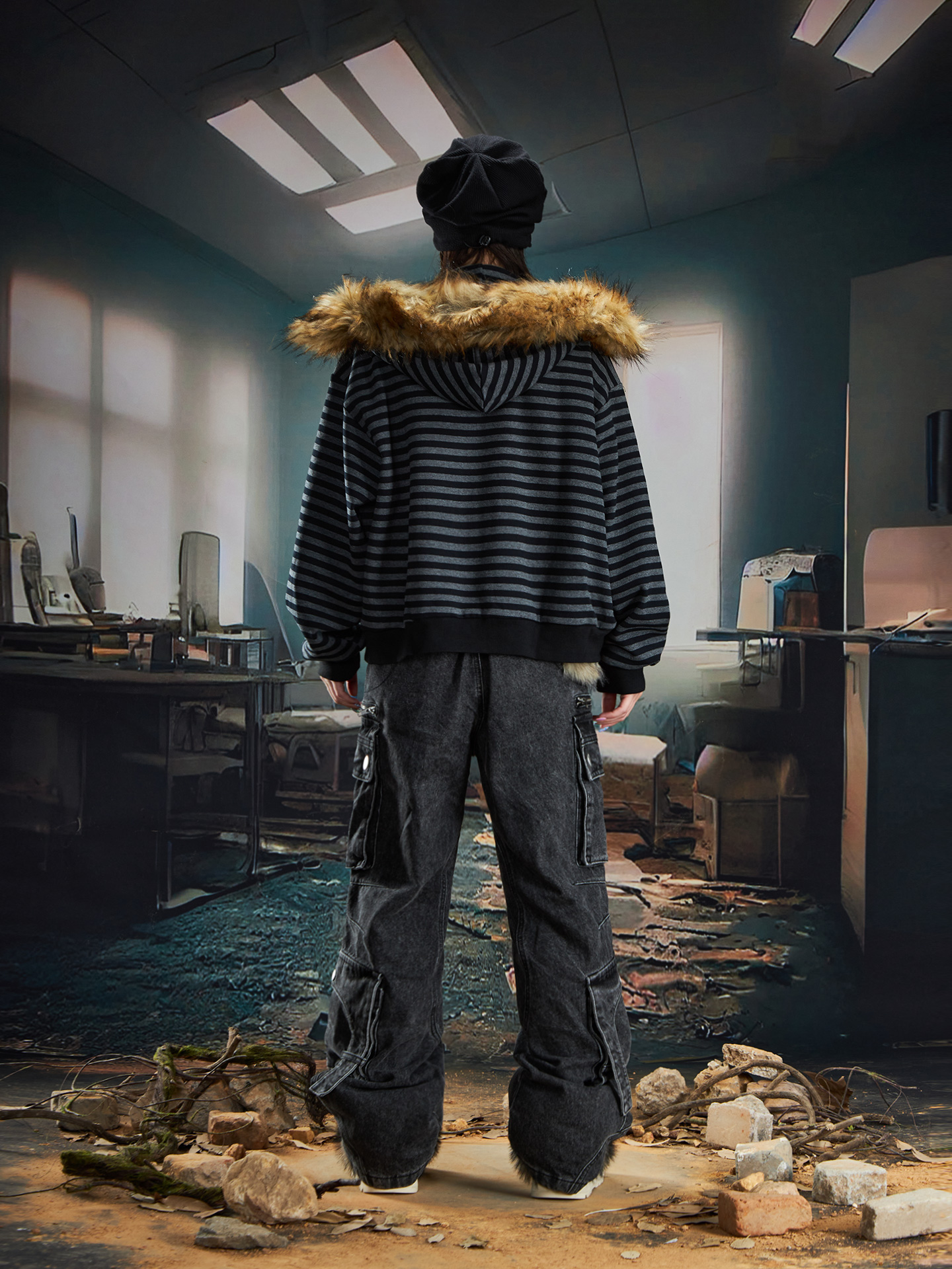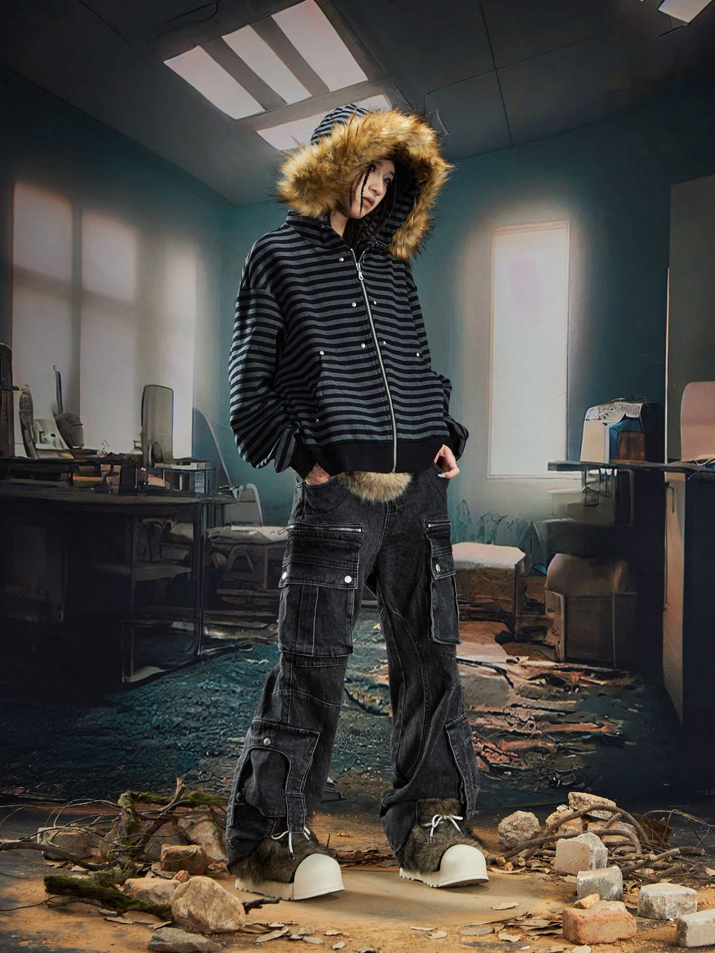 Multi-Pocket Washed Deconstructed 3D Cut Straight Cargo Denim Jeans WN20592