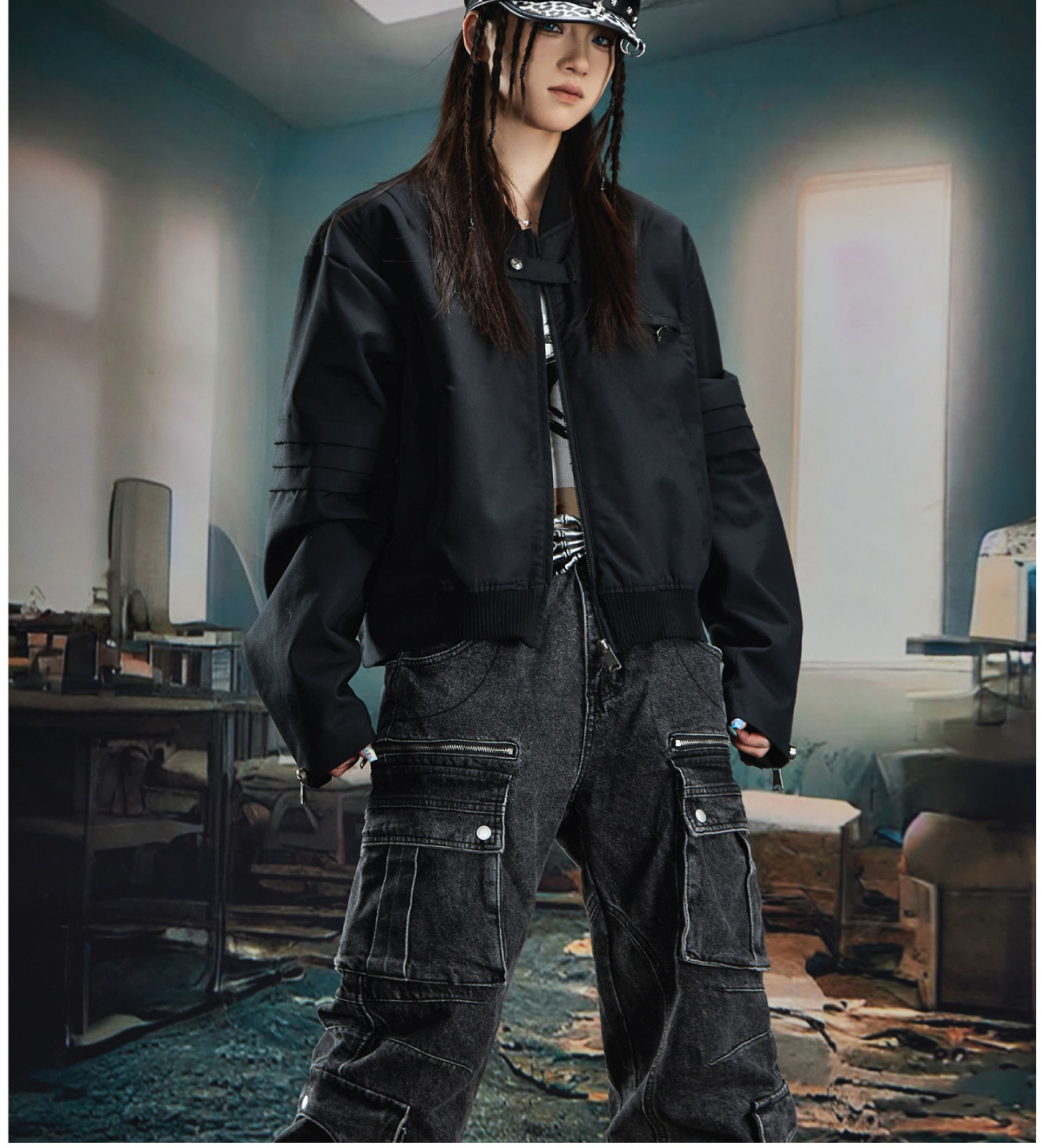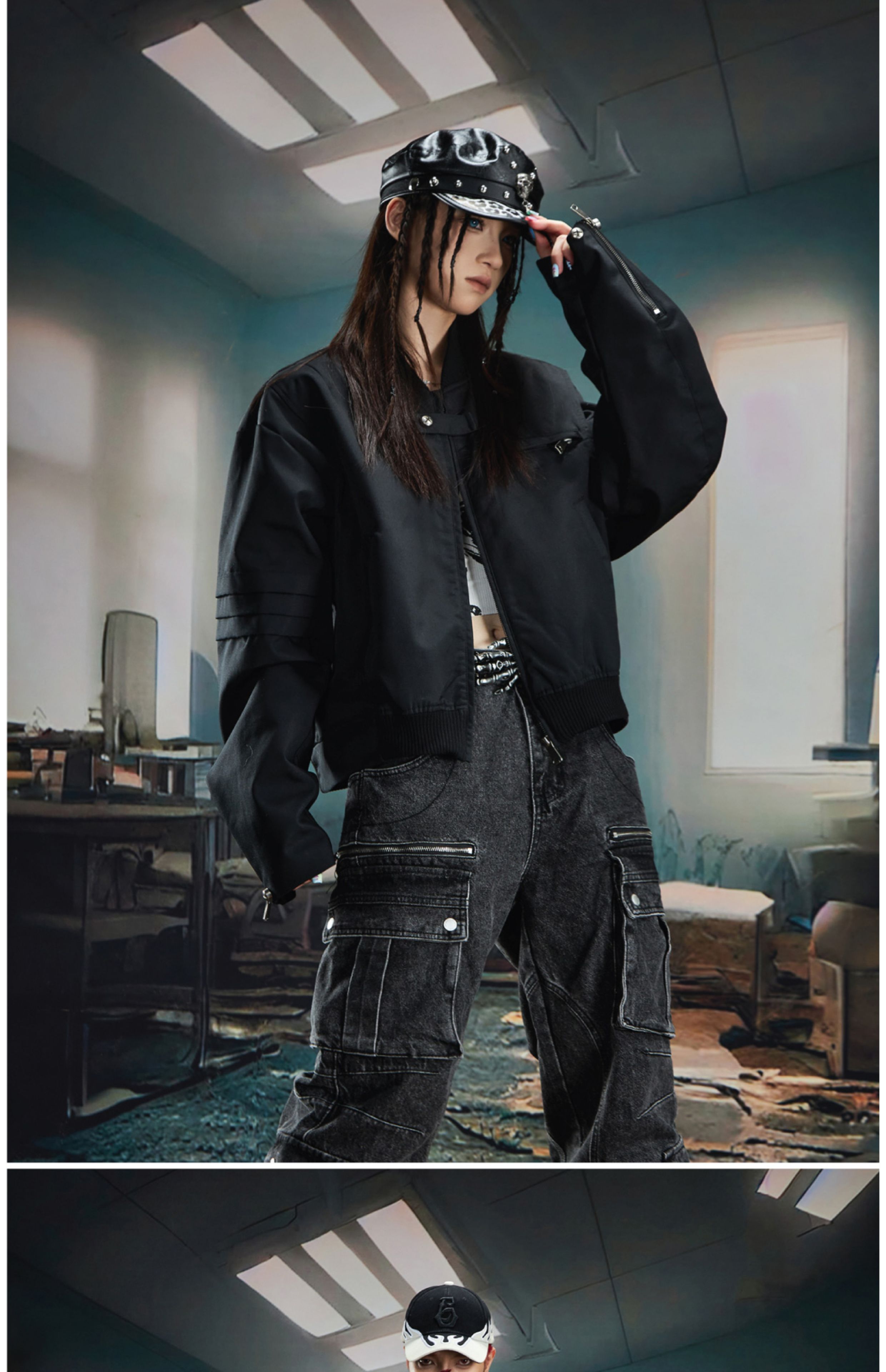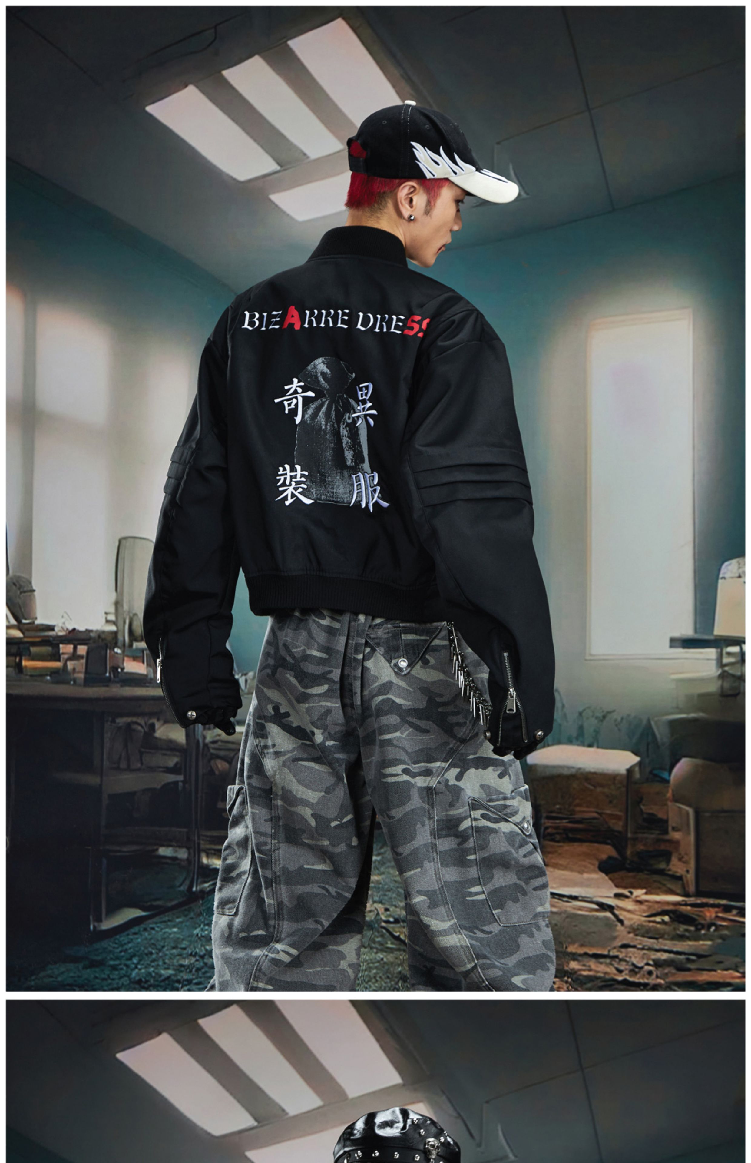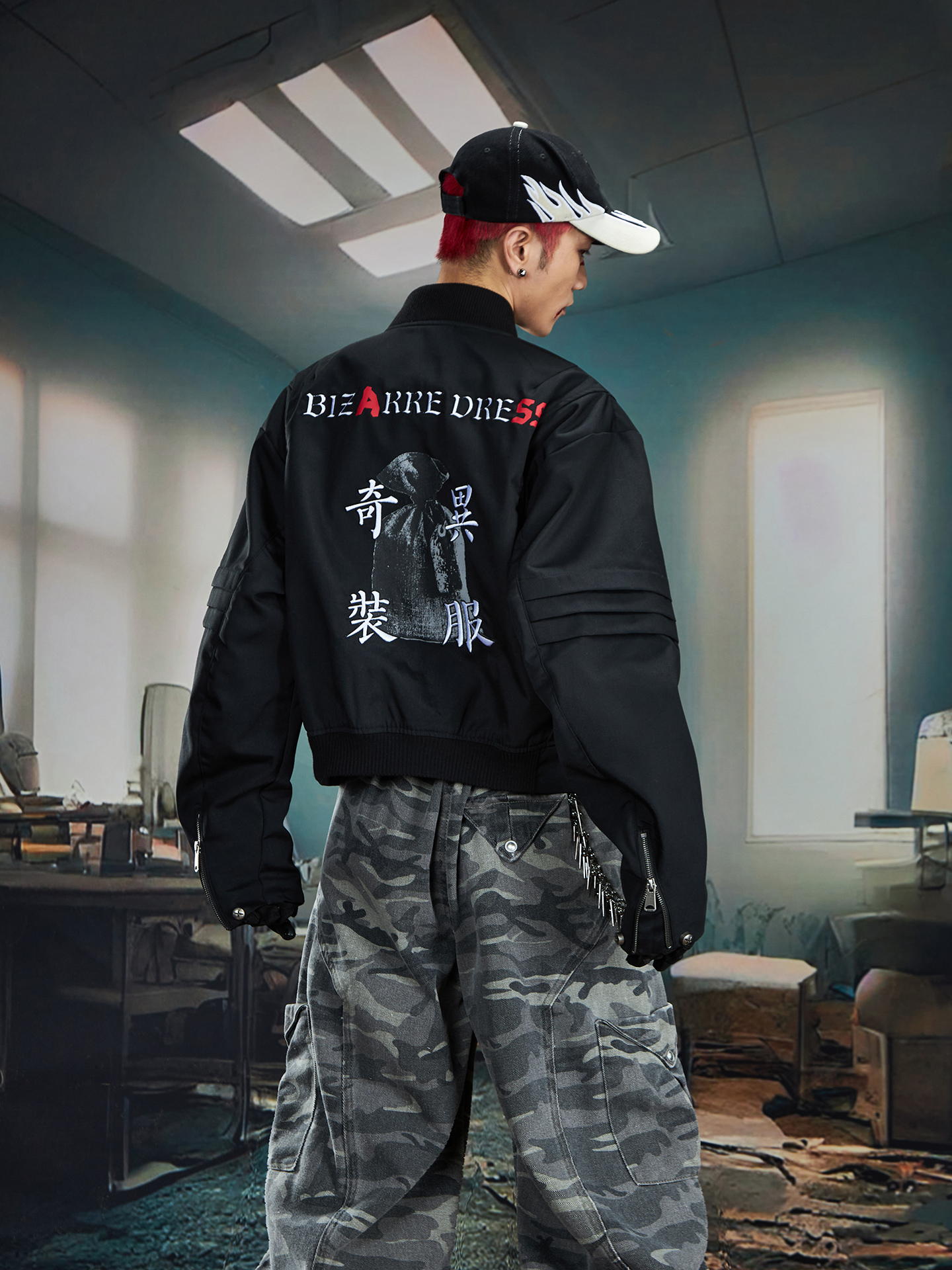3D Cut Embroidery Letter Print Short Jacket WN20597