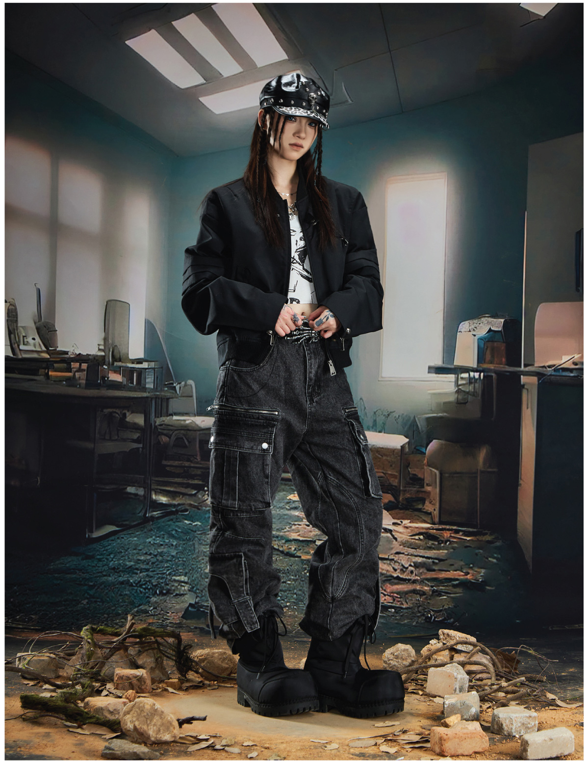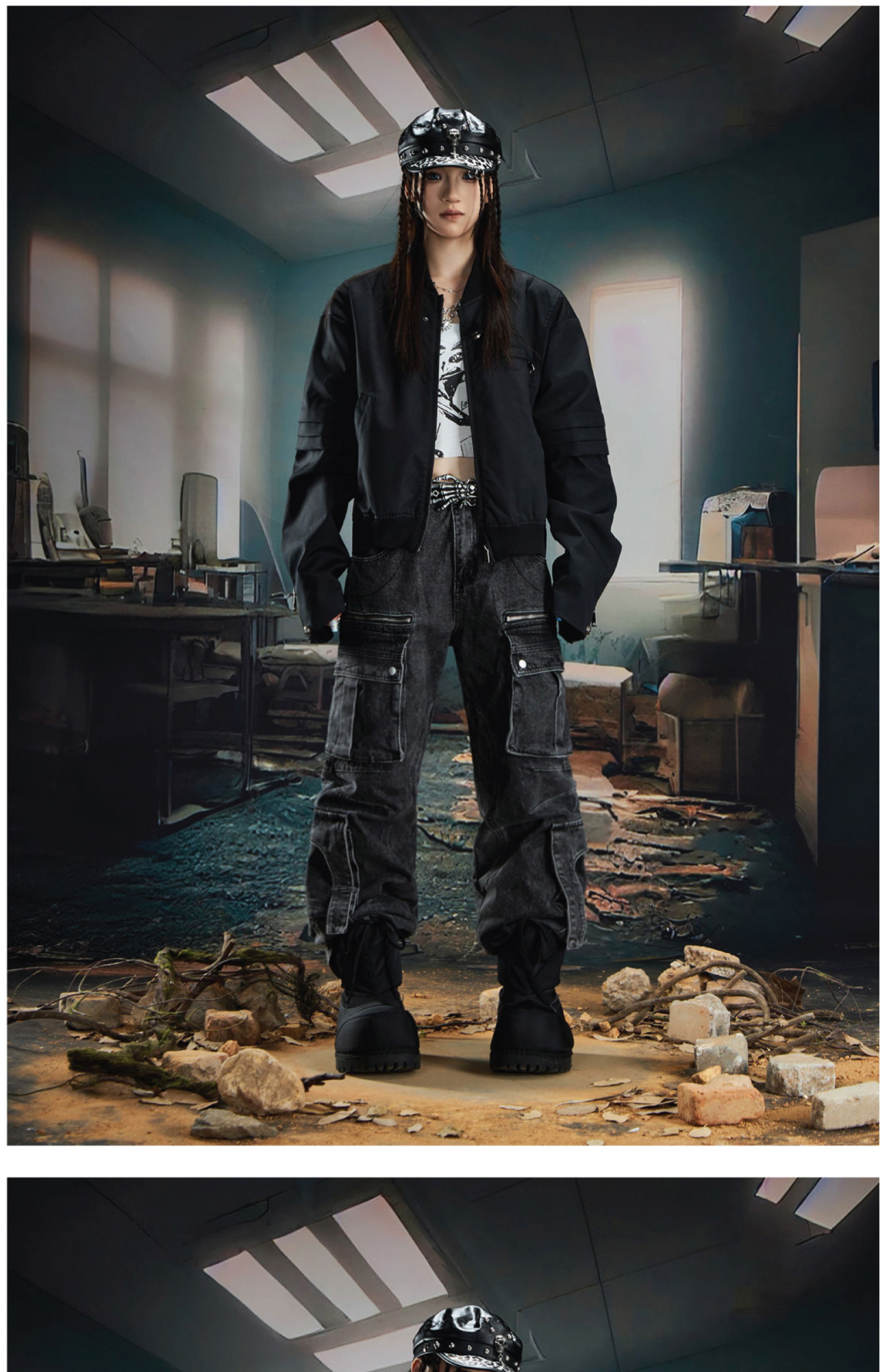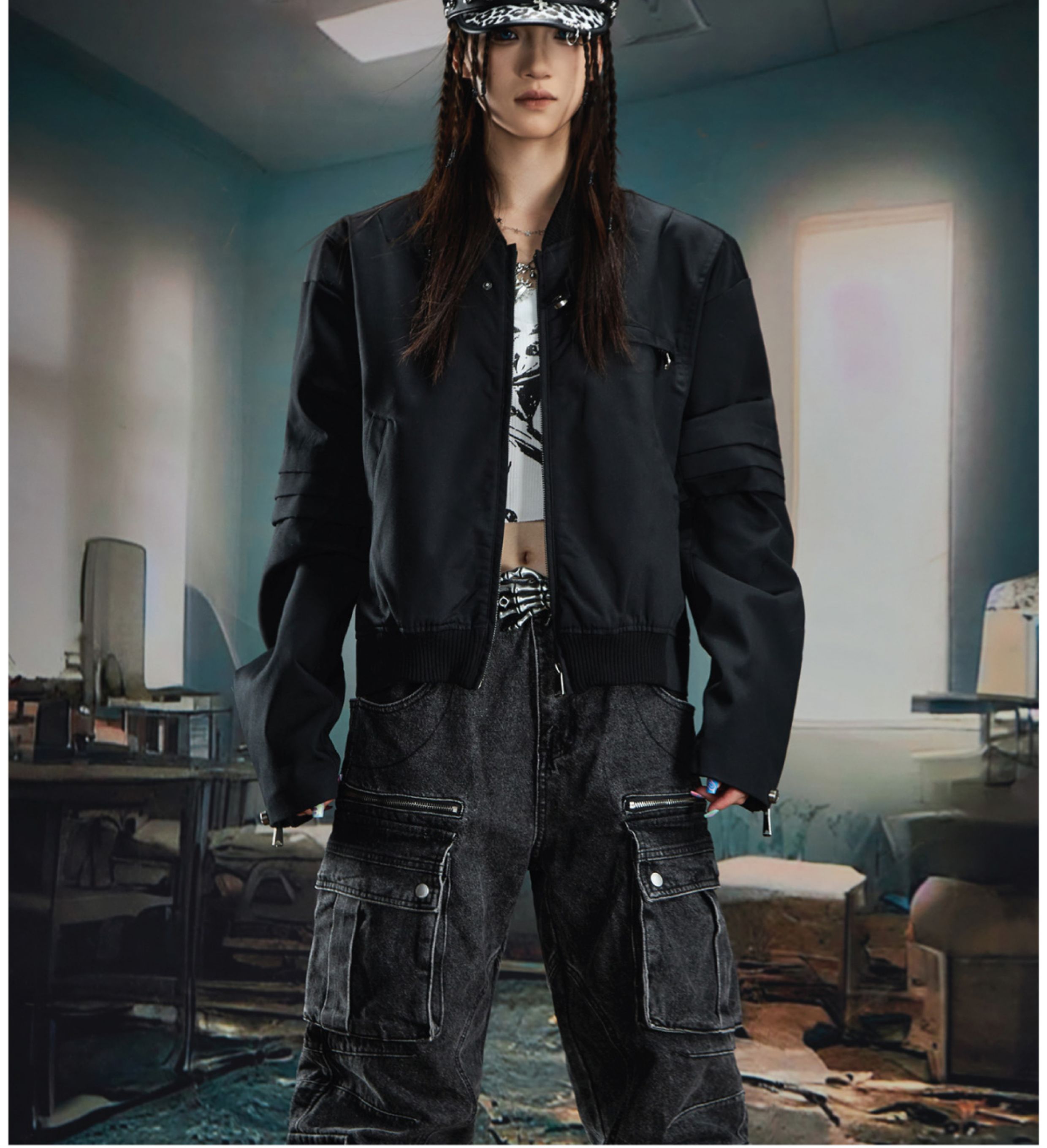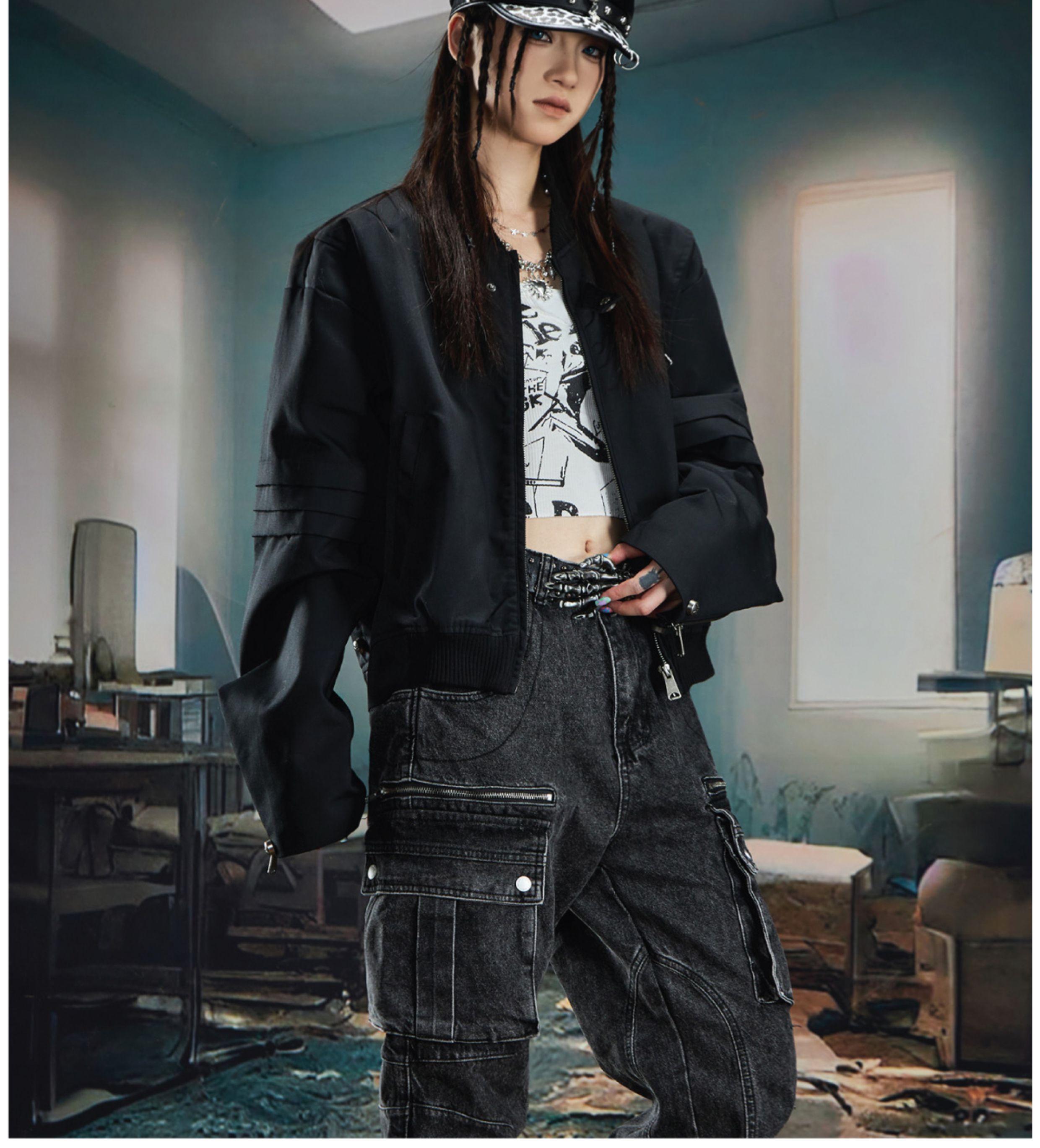 3D Cut Embroidery Letter Print Short Jacket WN20597