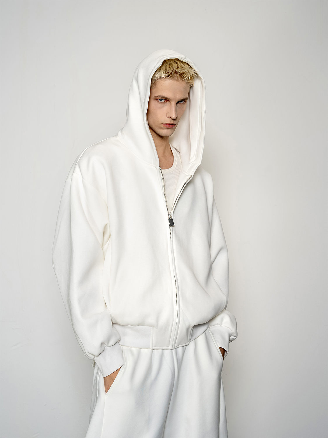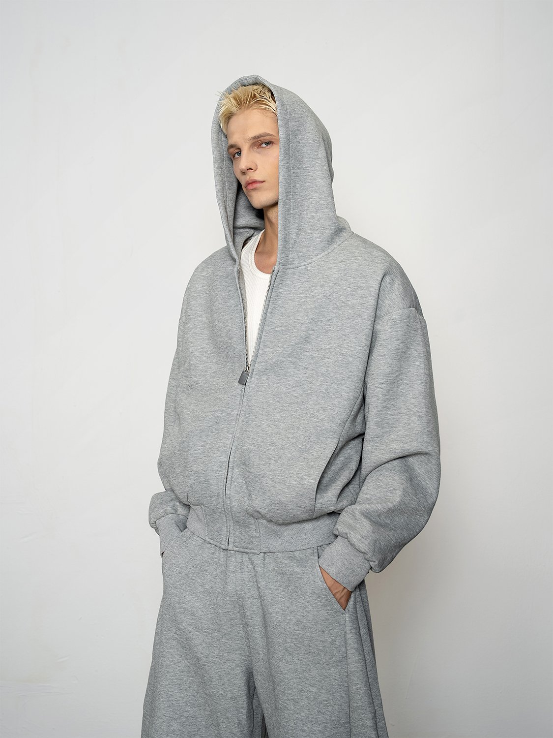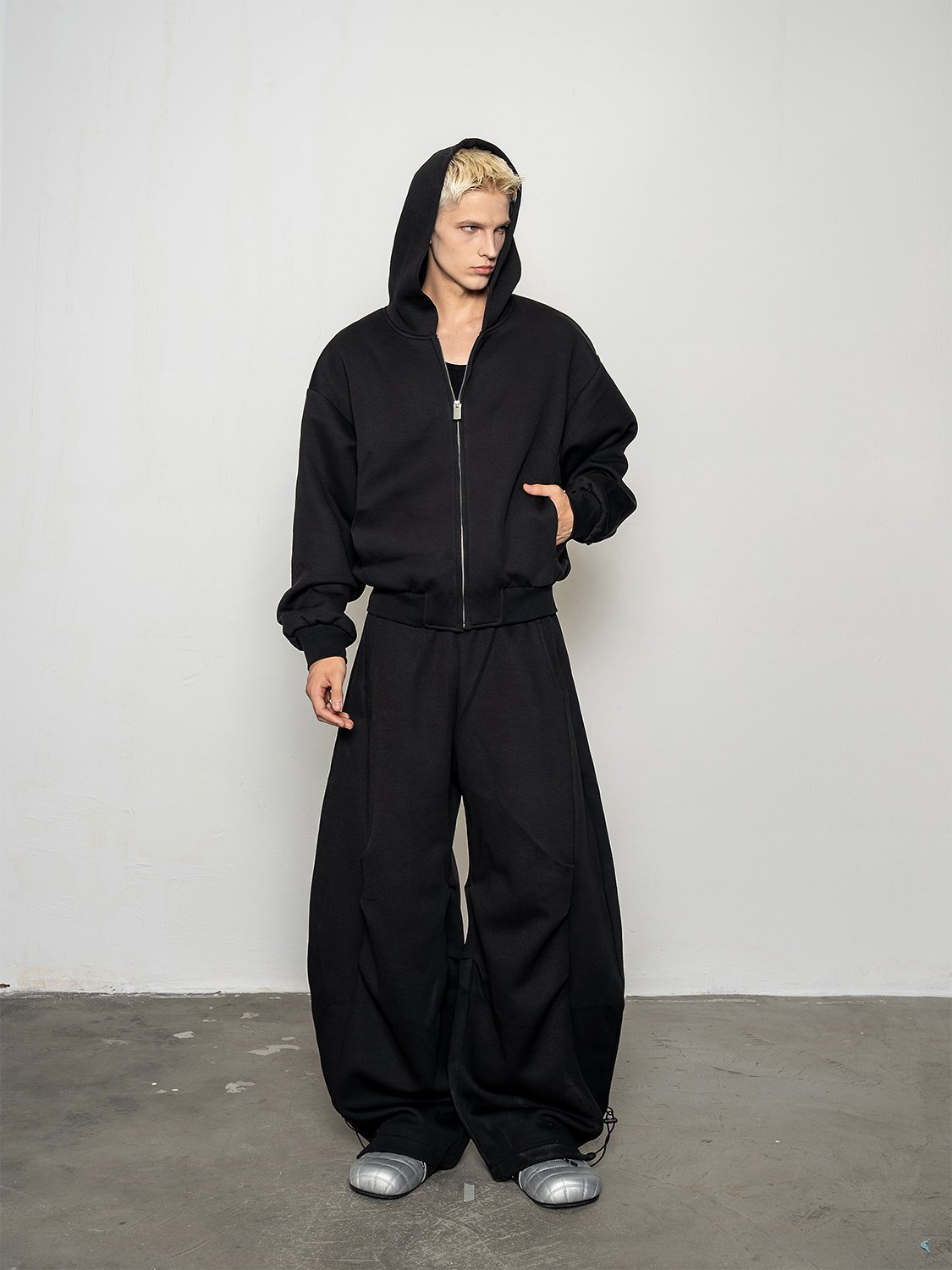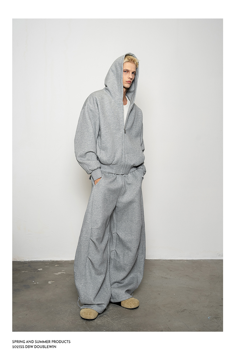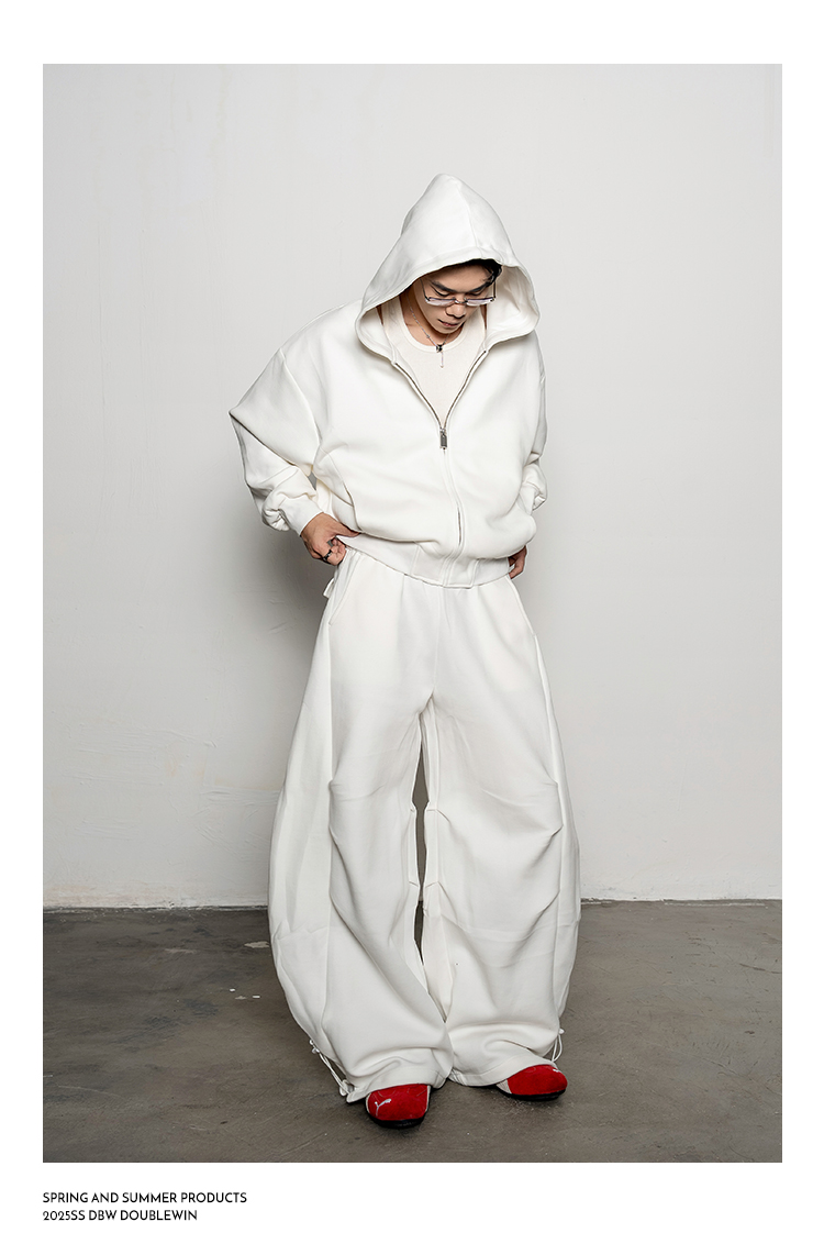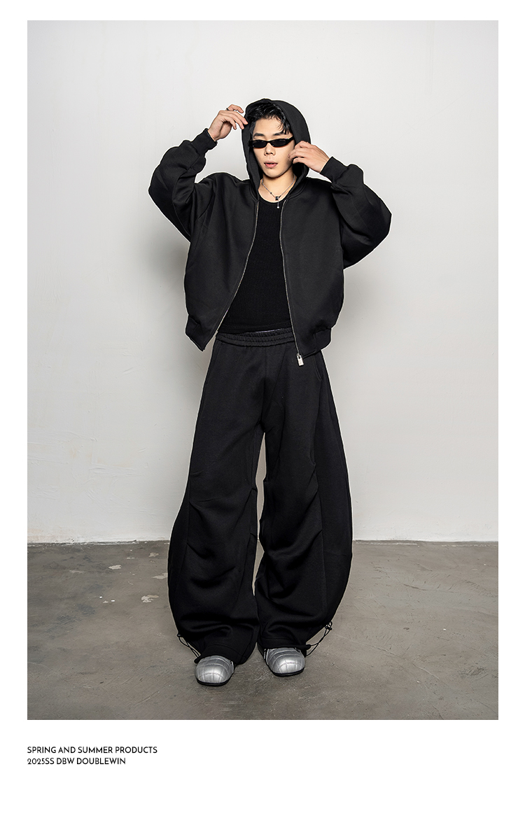 Pleated Zipper Hoodie & Wide Leg Pants Setup WN20877