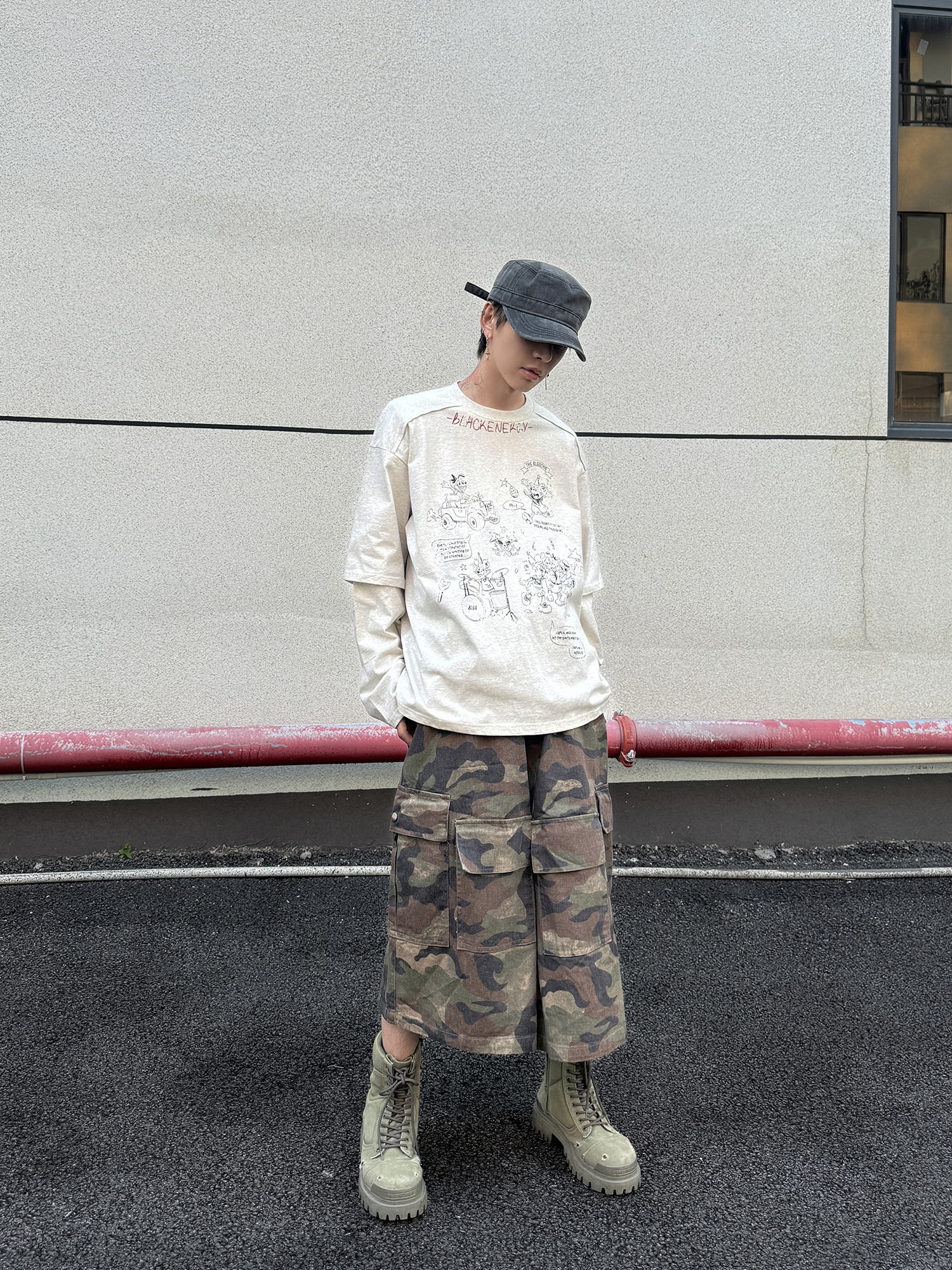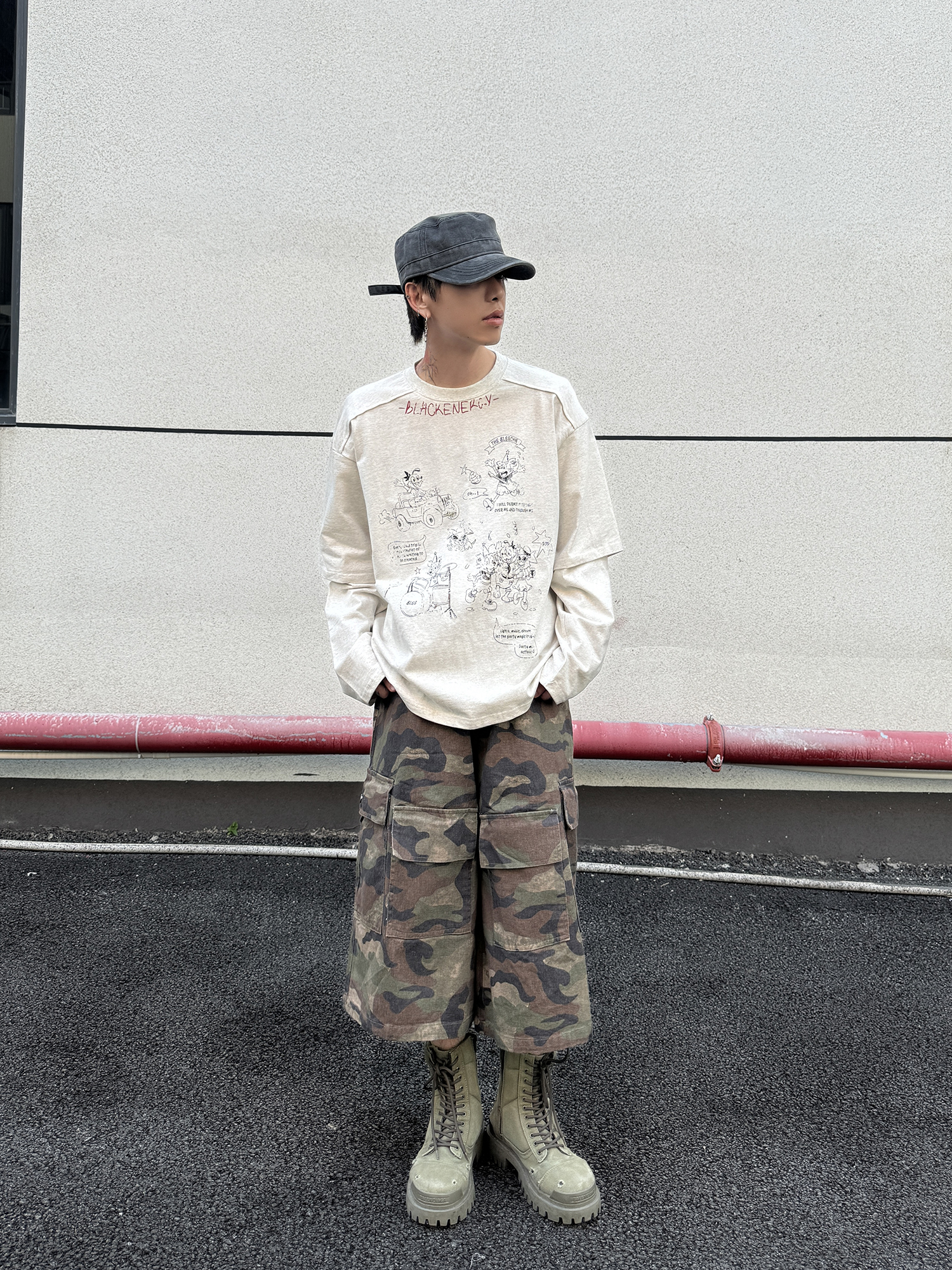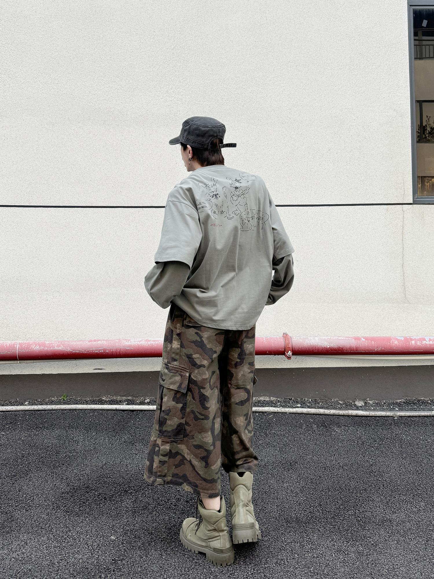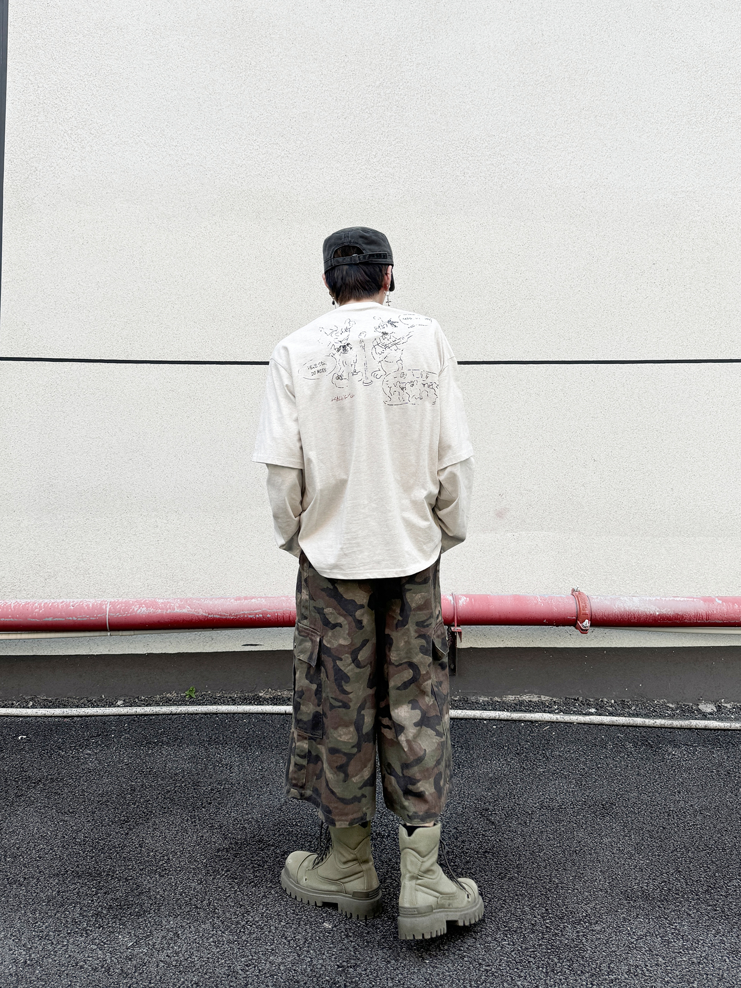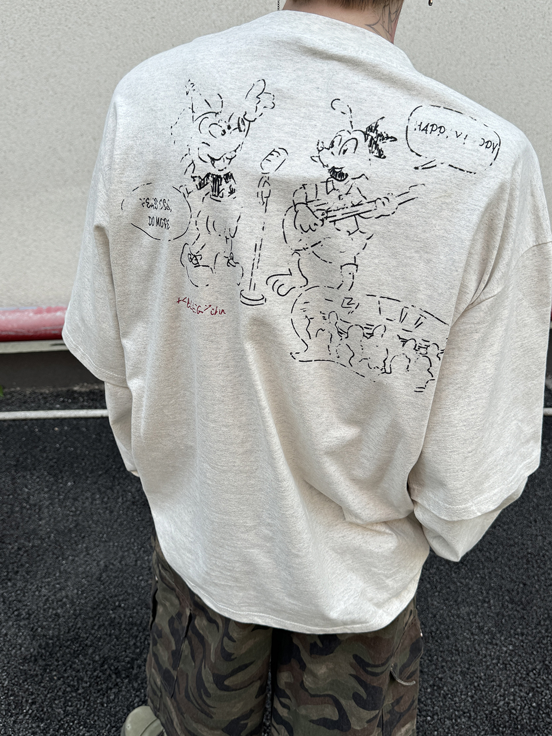 Fake Layered Back Graffiti Print Oversize Long Sleeve T-Shirt WN21154