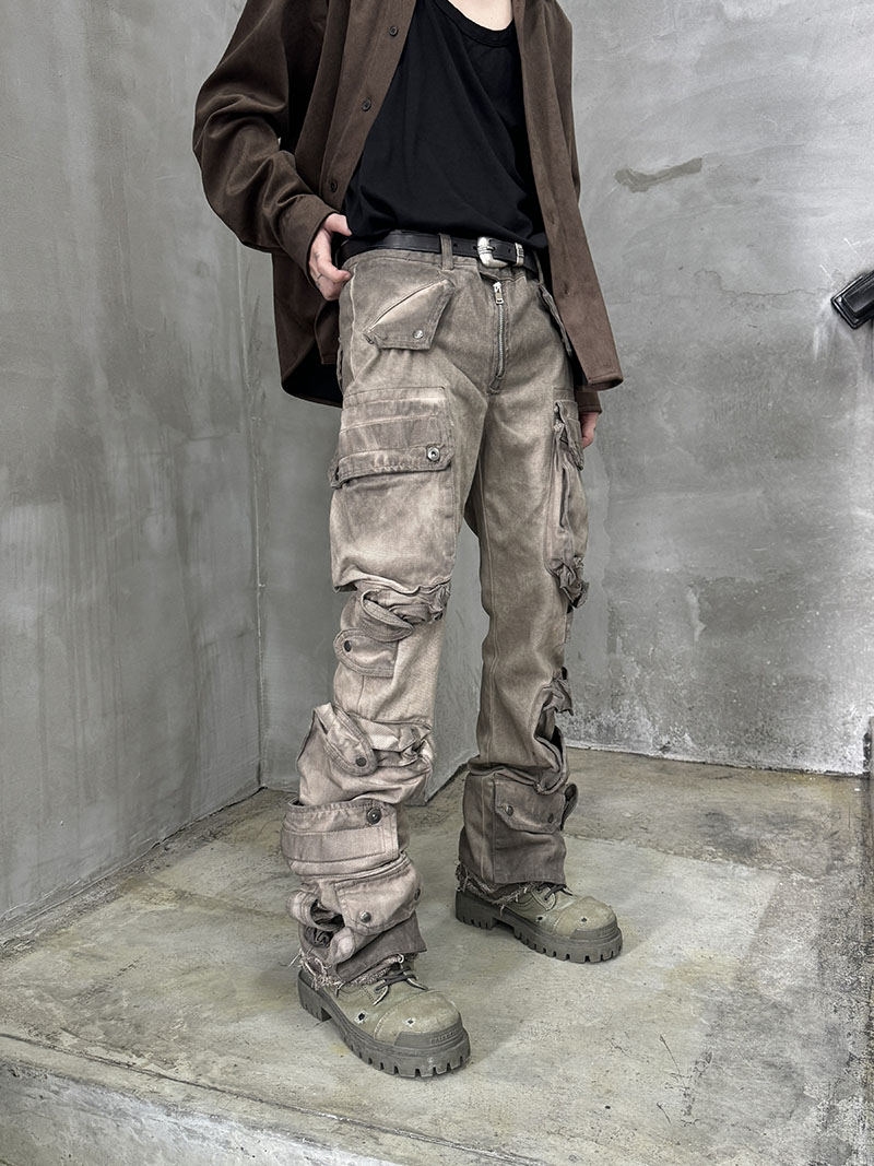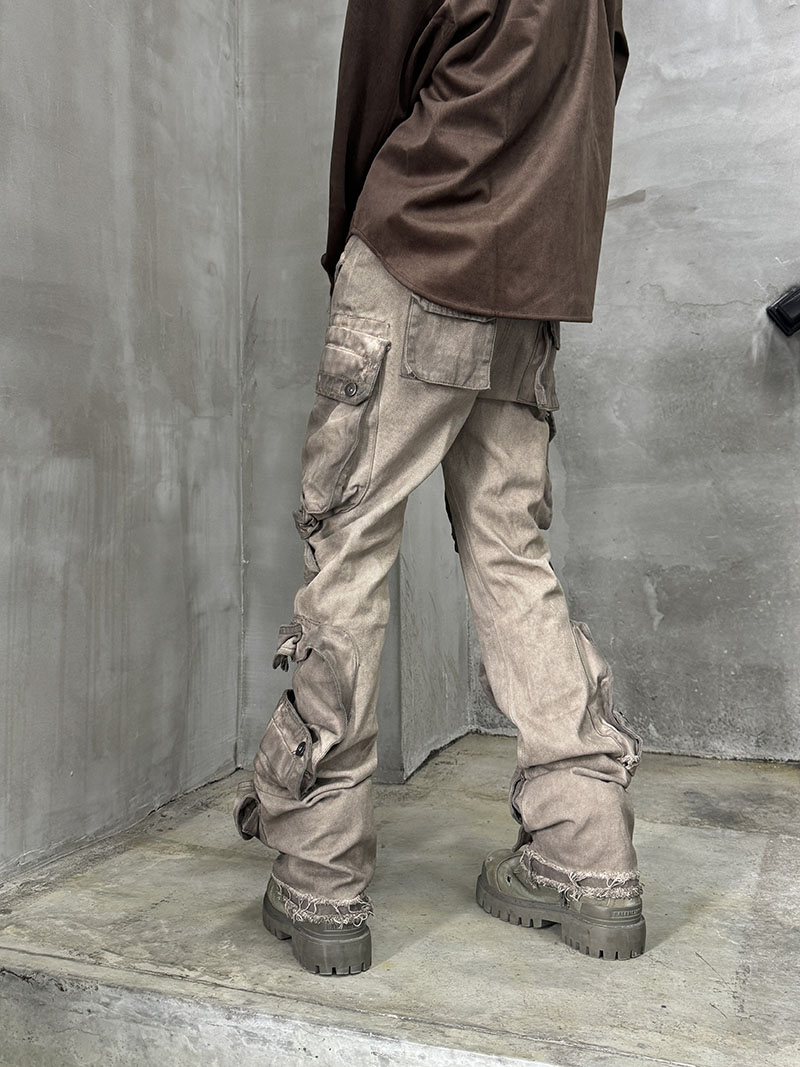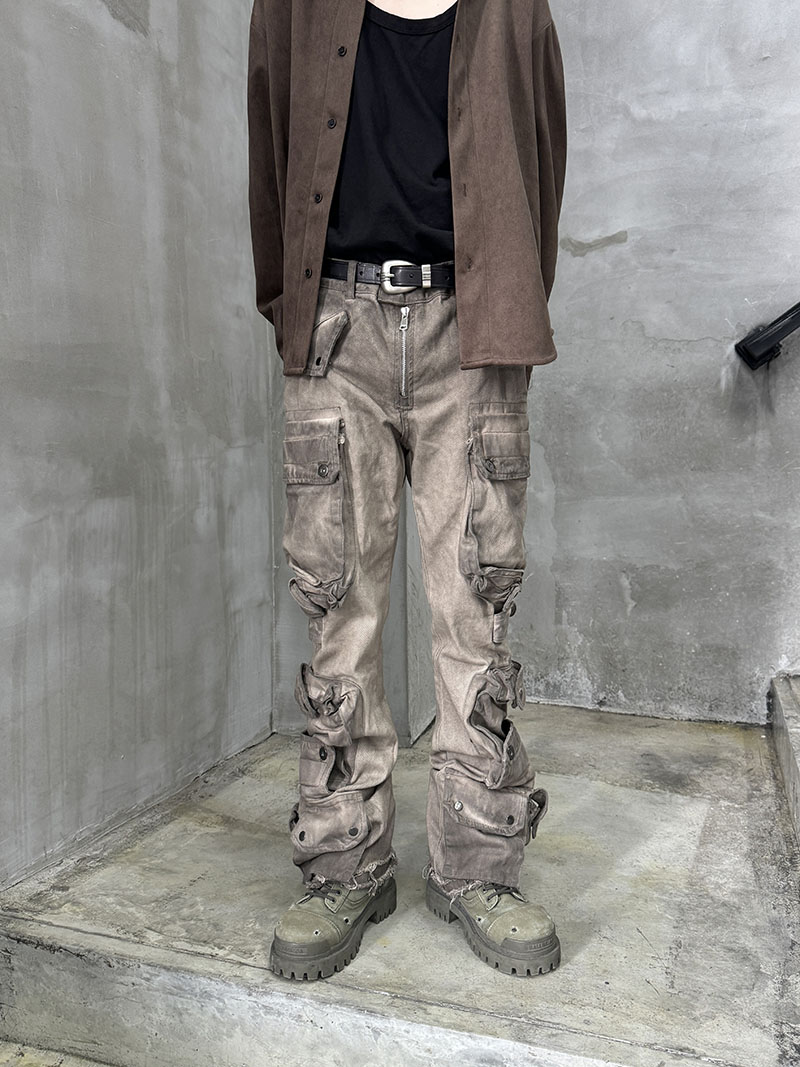 Washed Multi-Pocket Wide Leg Cargo Pants WN21172