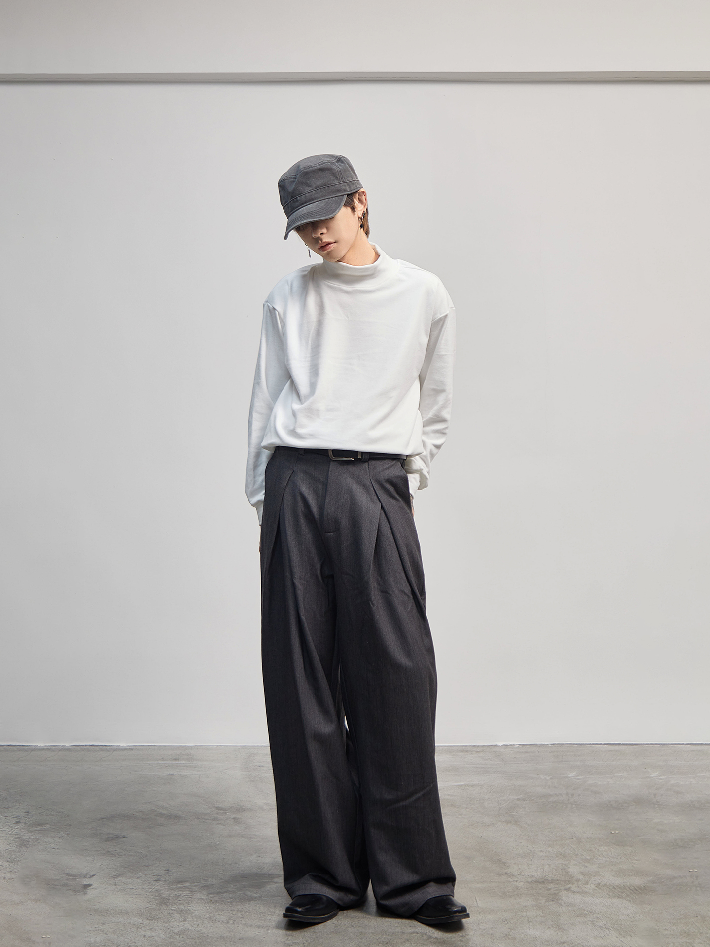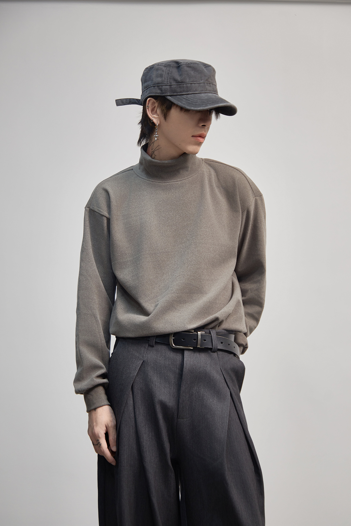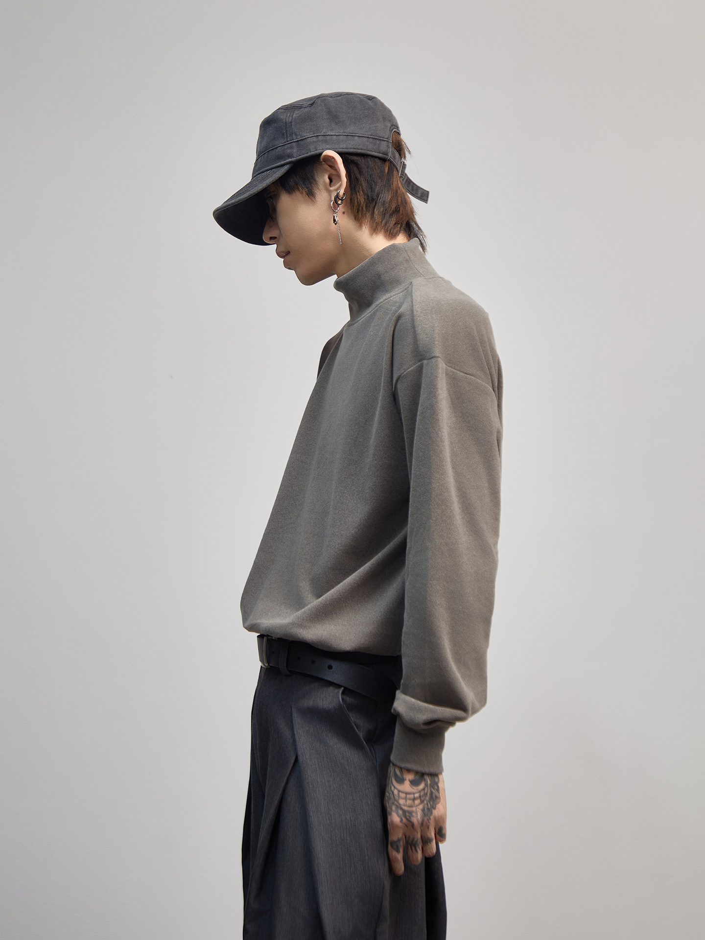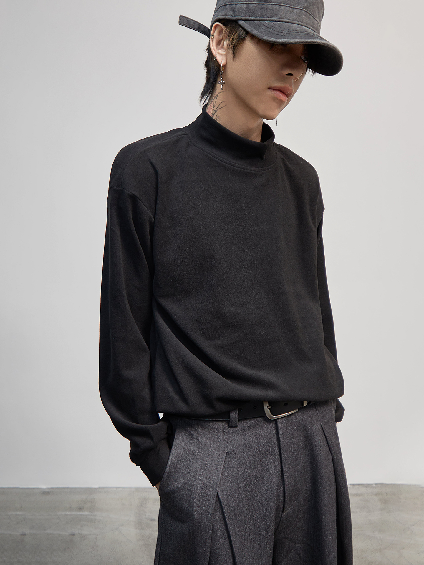 High-Neck Plain Long Sleeve T-Shirt WN21187