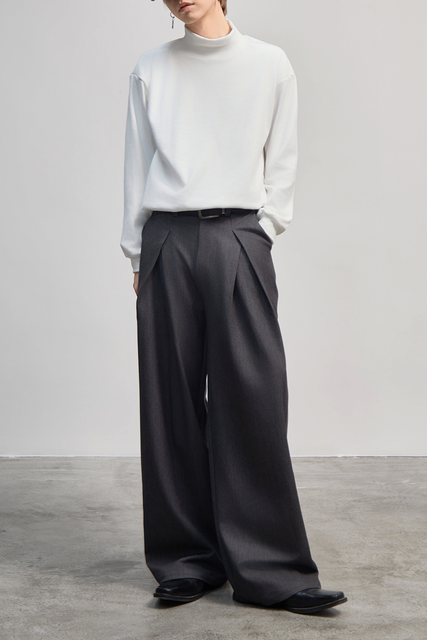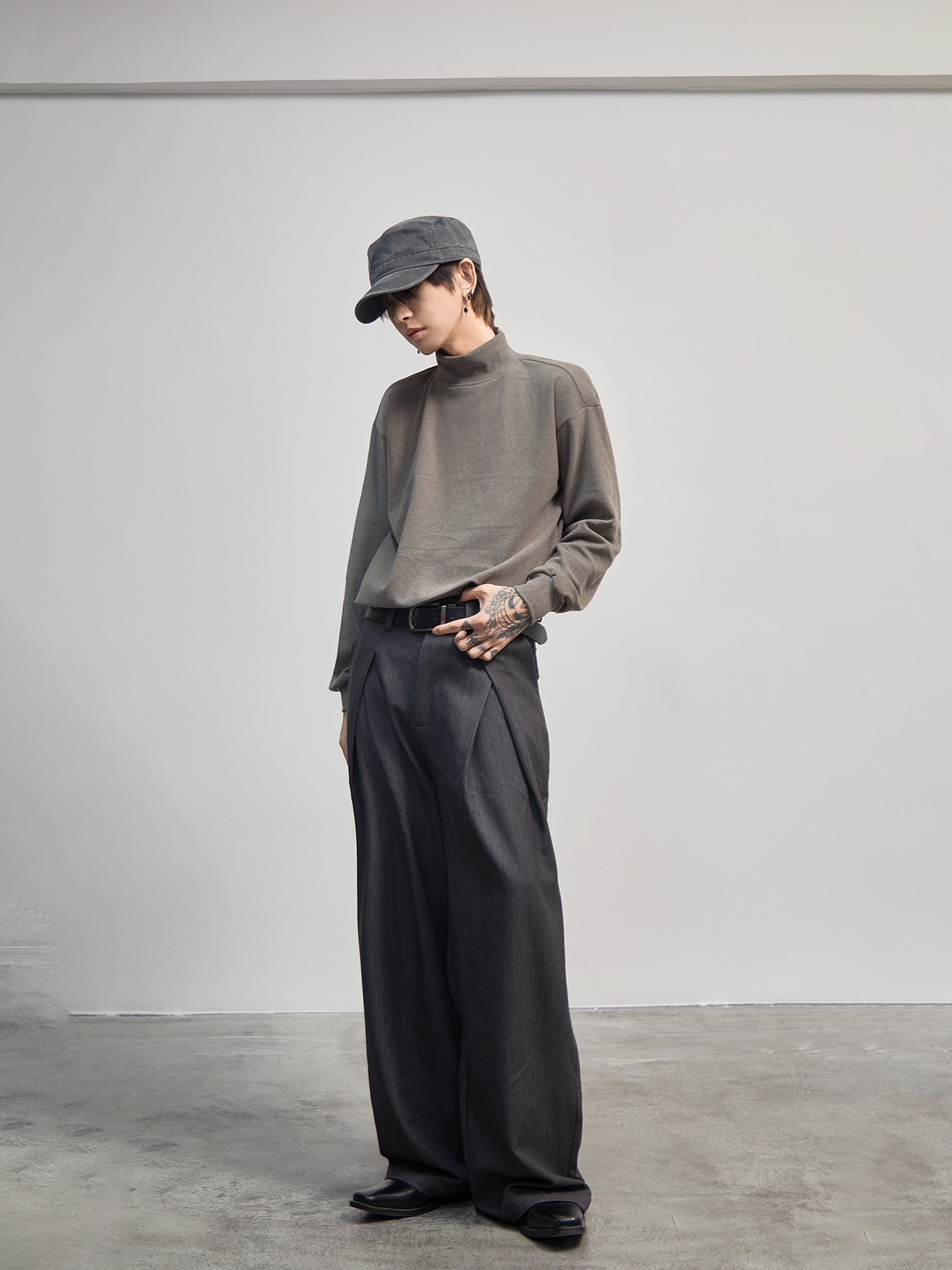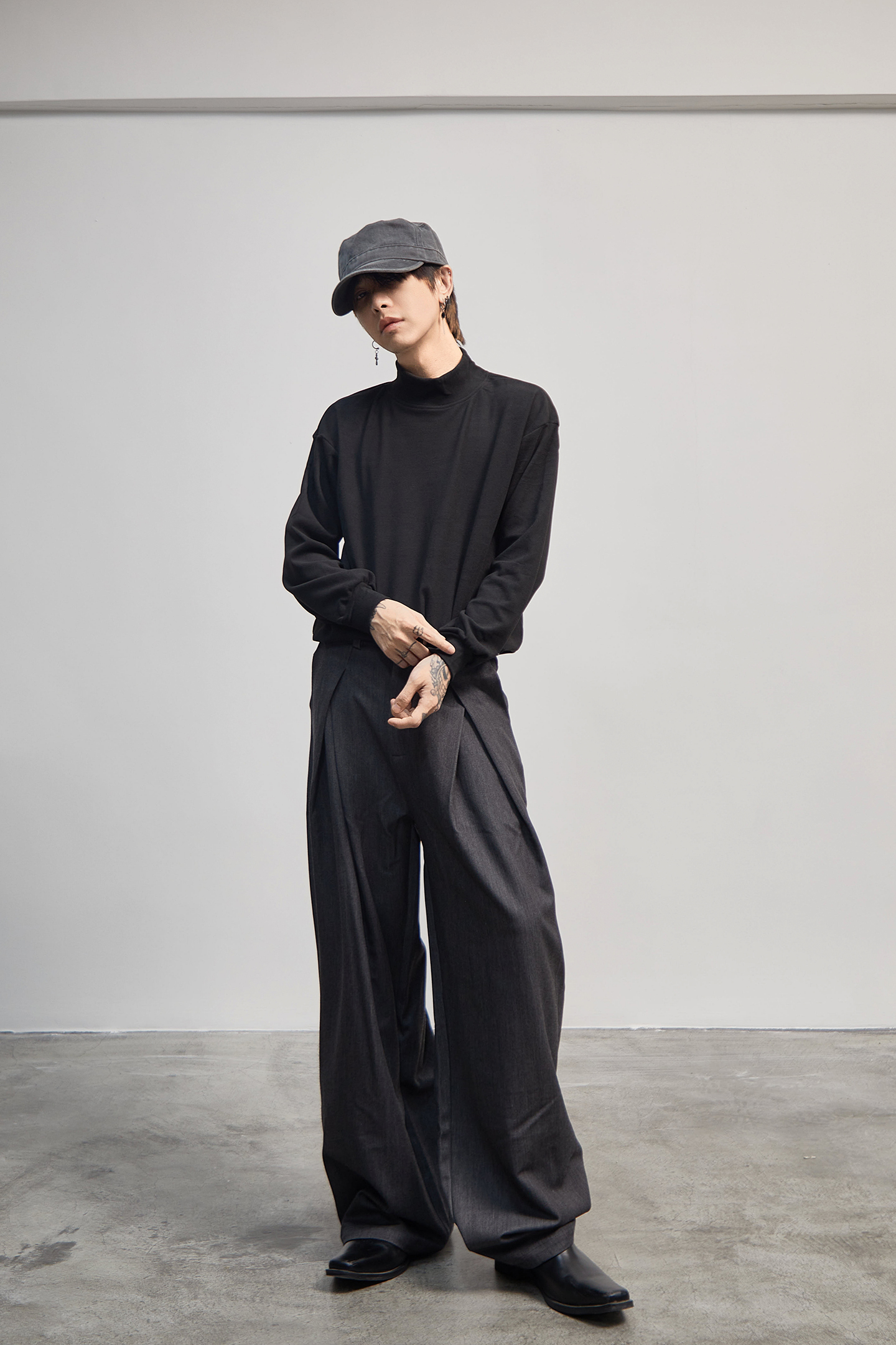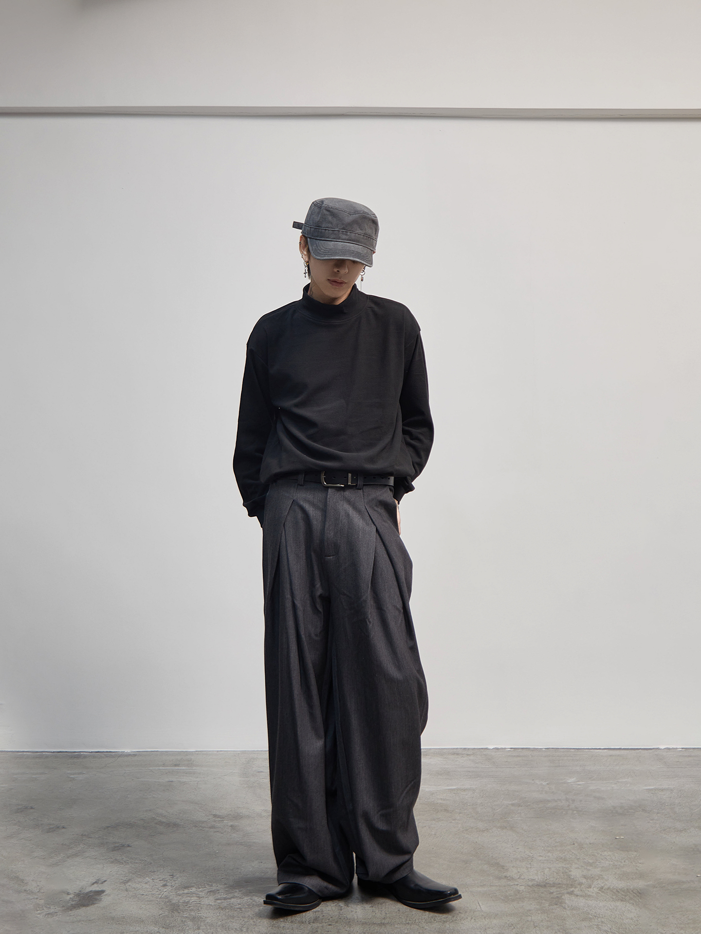 High-Neck Plain Long Sleeve T-Shirt WN21187