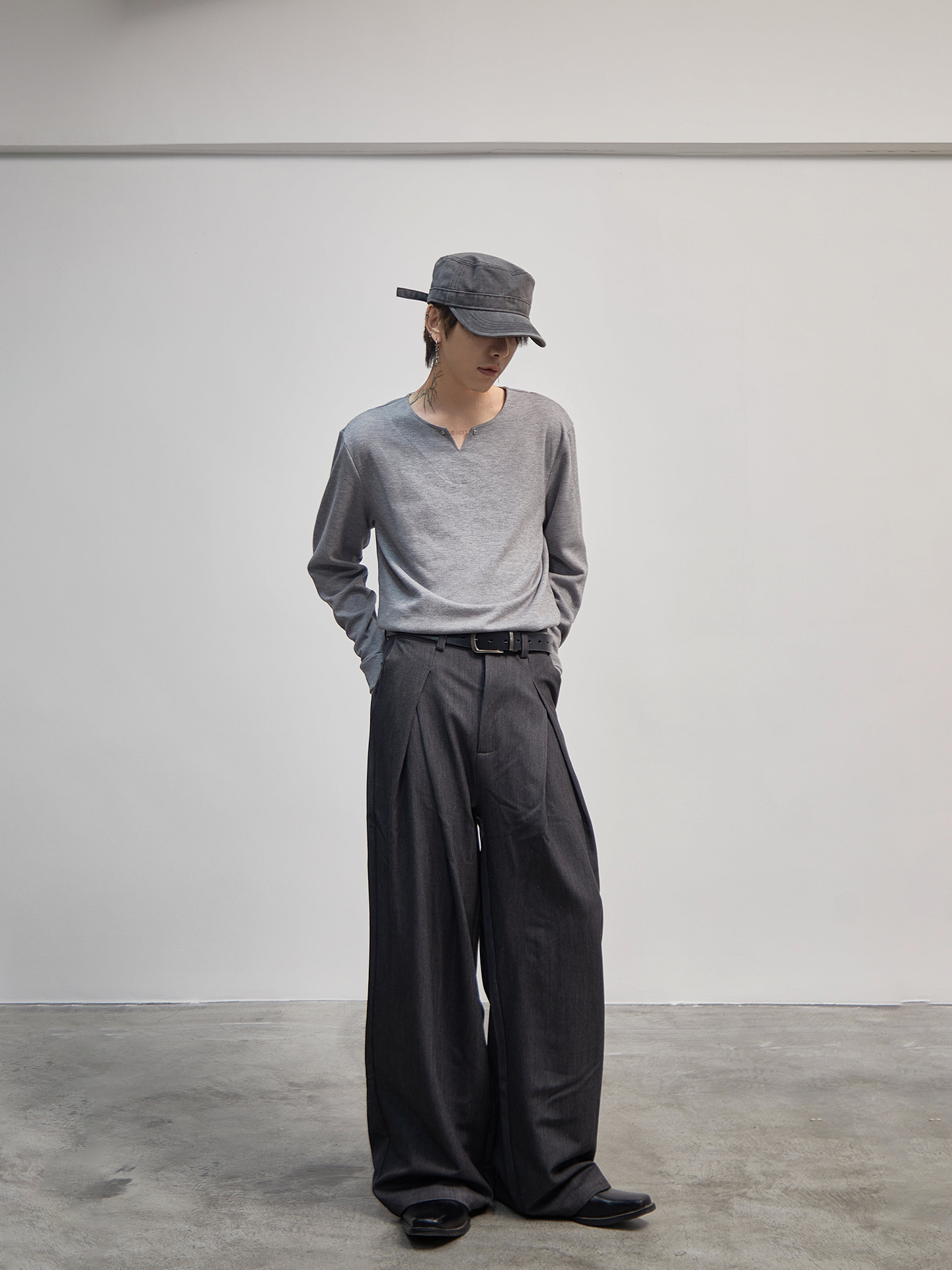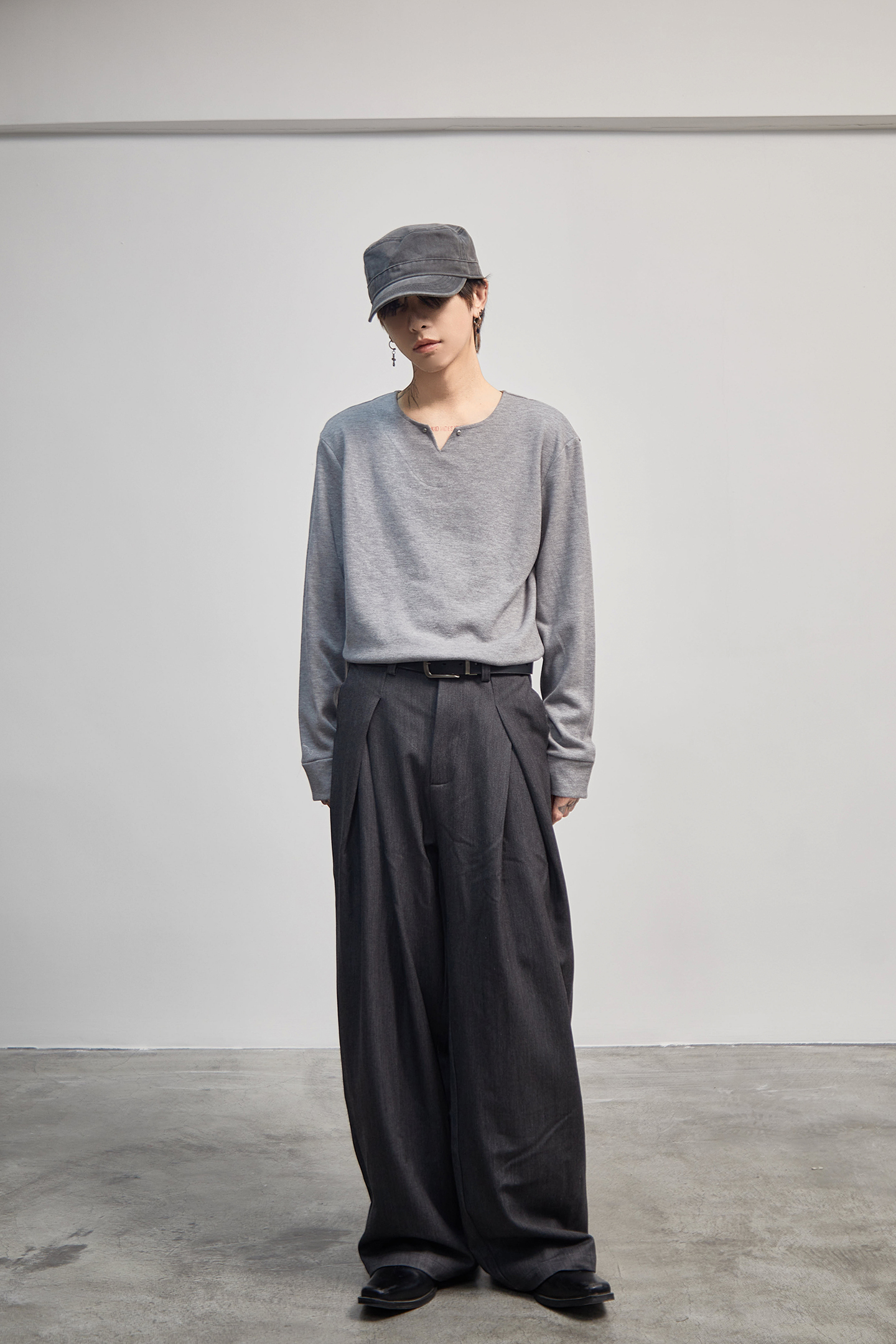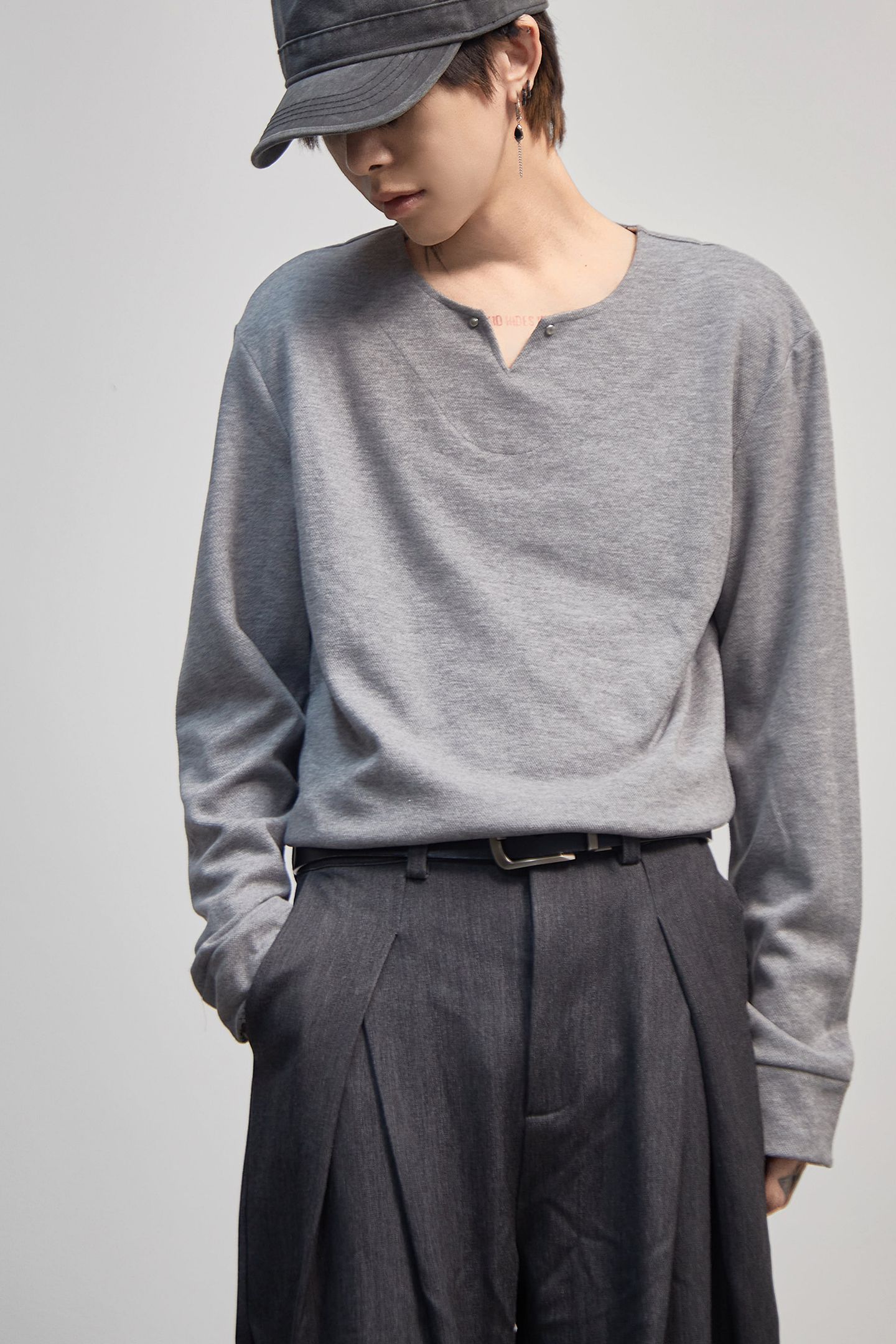 Plain Pullover Button Long Sleeve T-Shirt WN21188