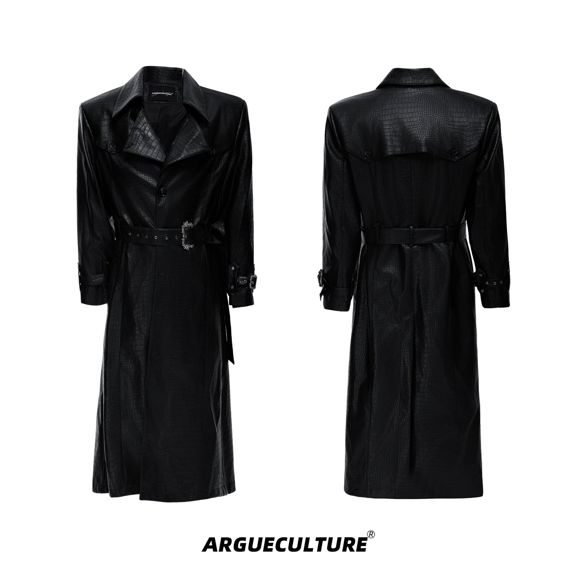 Deconstruction Crocodile-Pattern Metal Buckle Long Coat WN21230