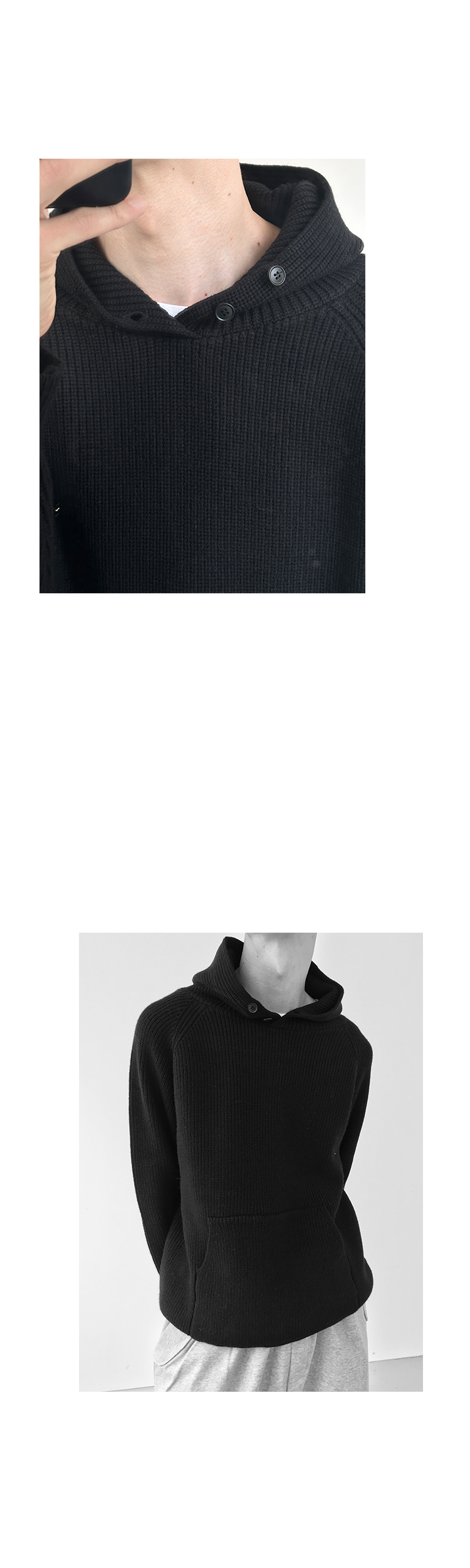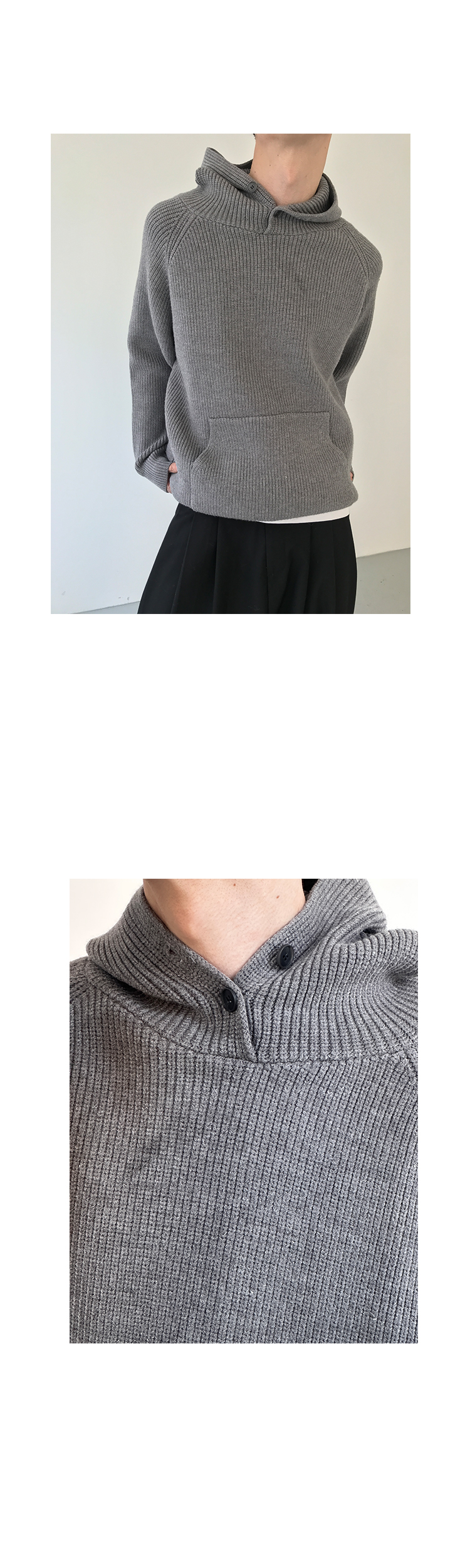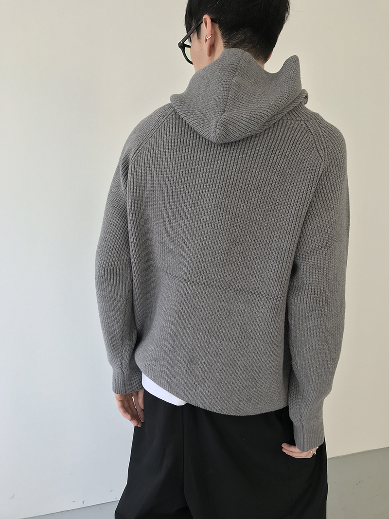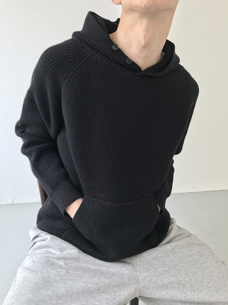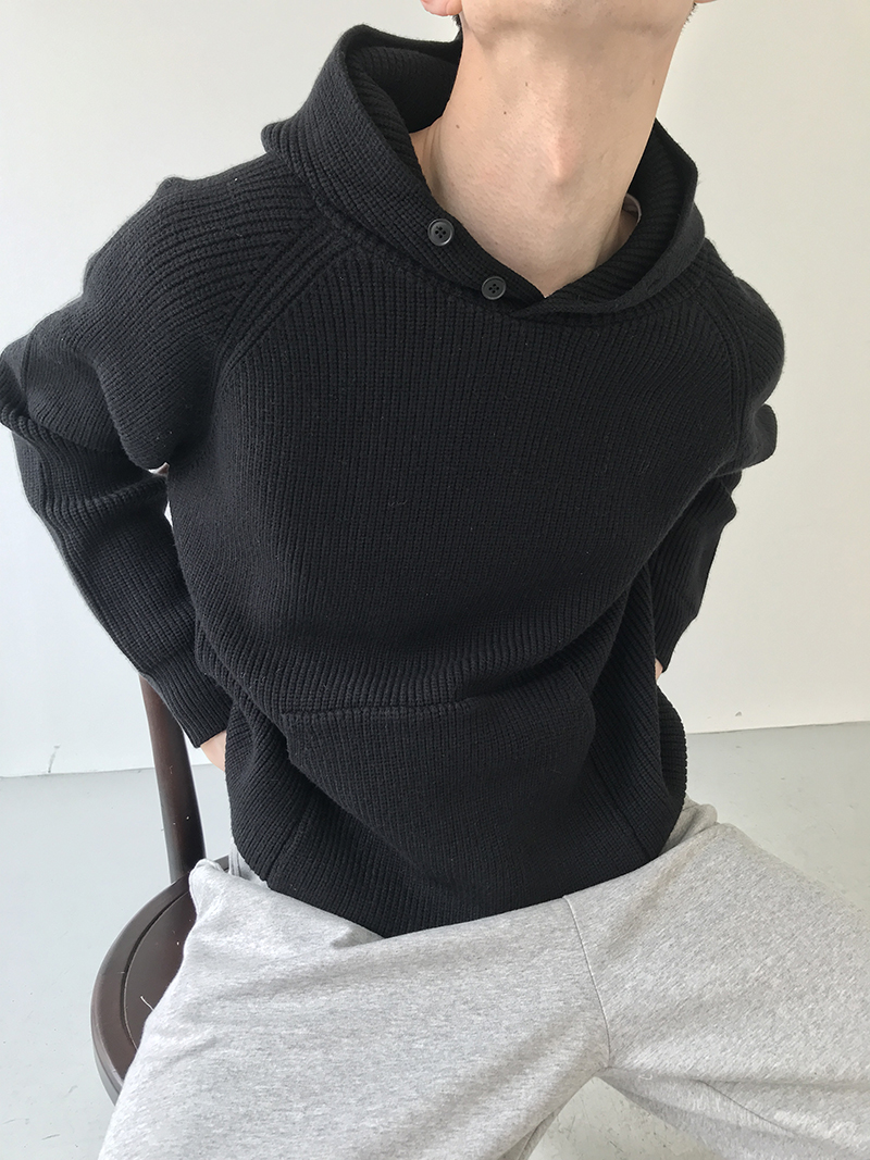 Button Design Knit Hoodie WN21628