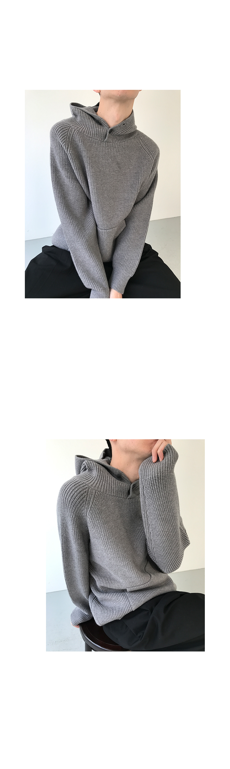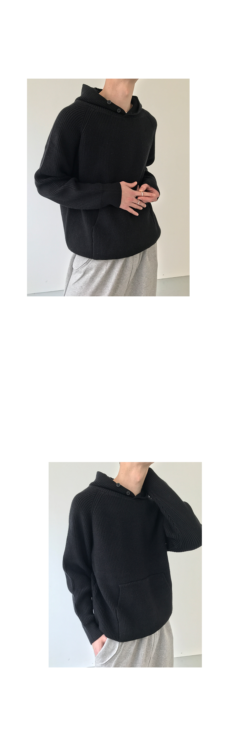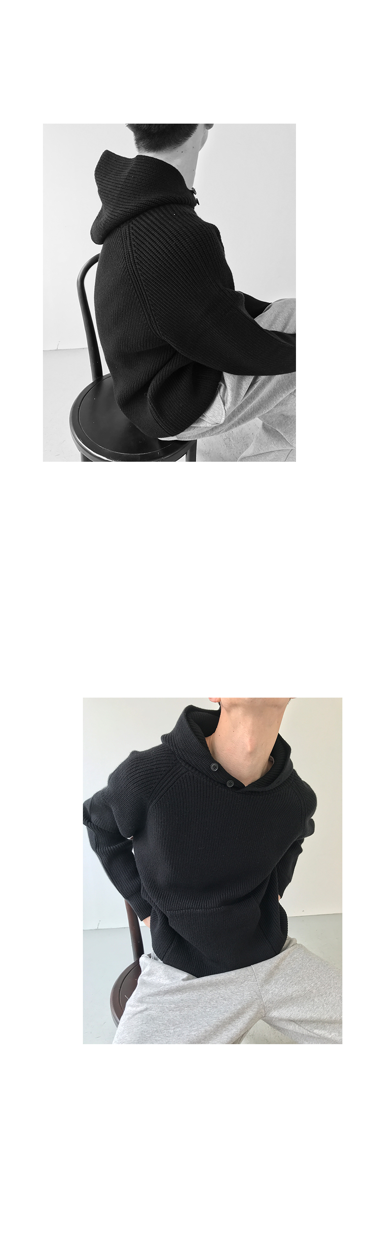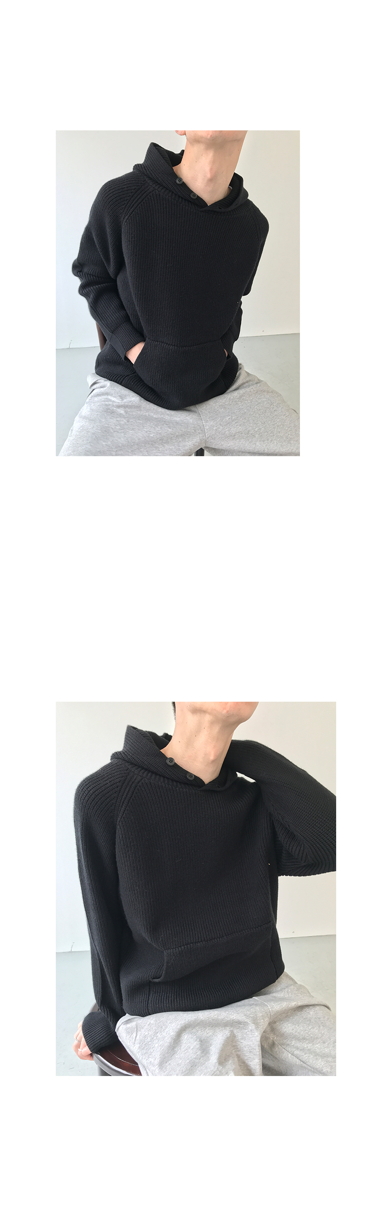 Button Design Knit Hoodie WN21628