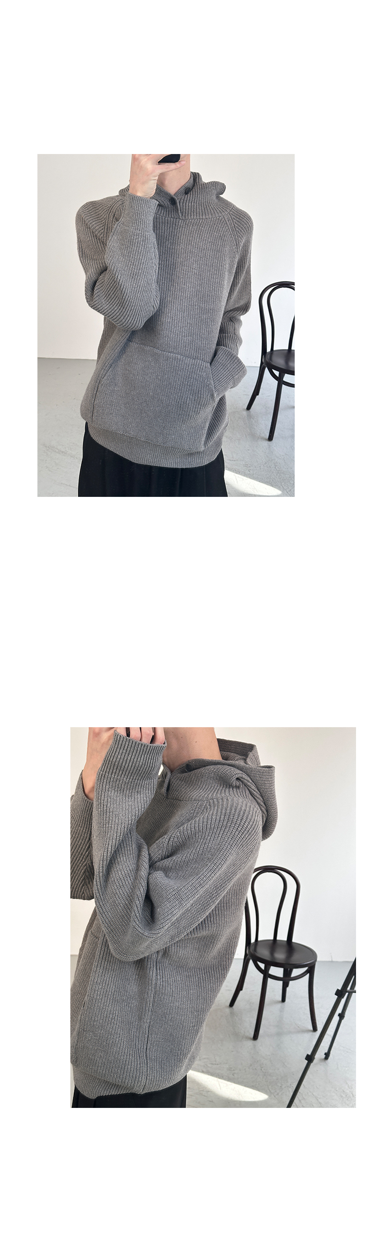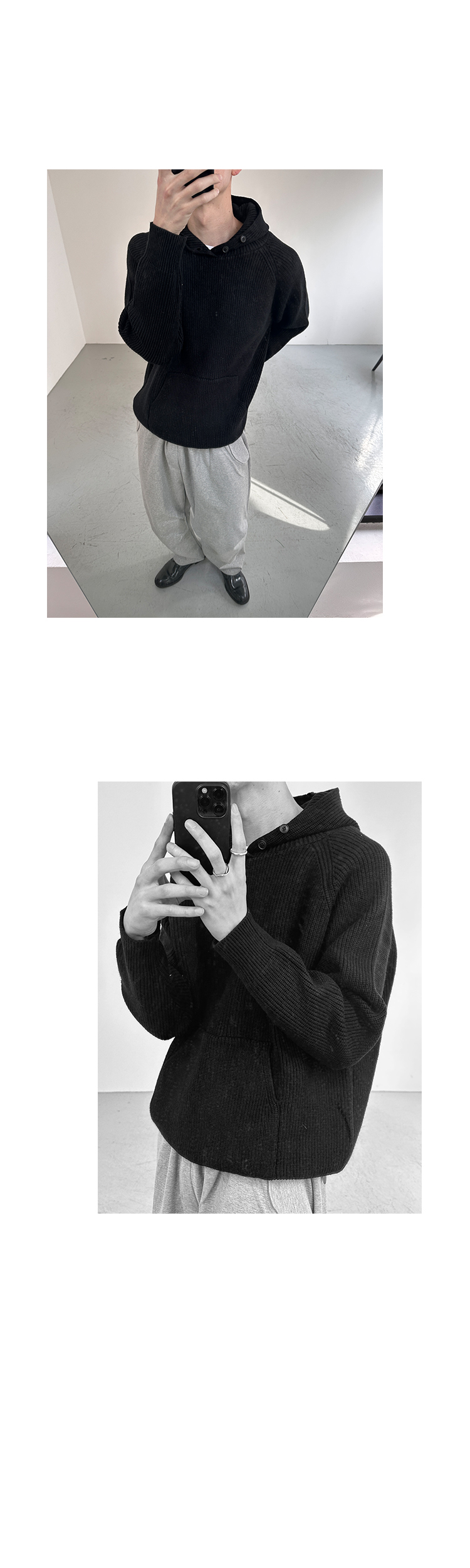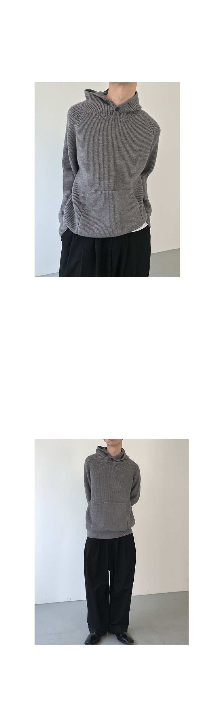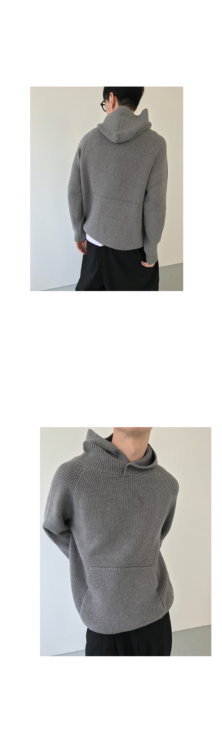 Button Design Knit Hoodie WN21628