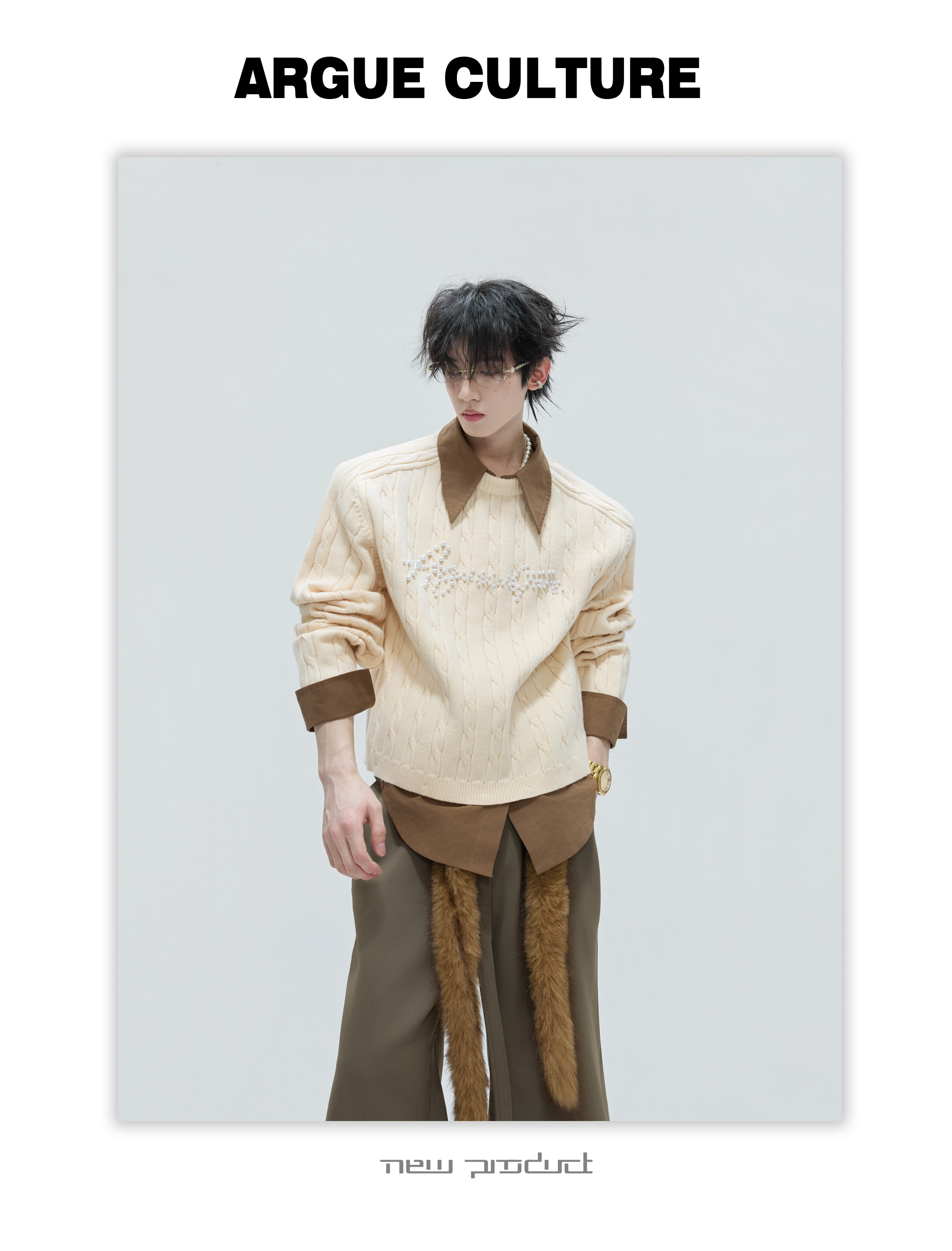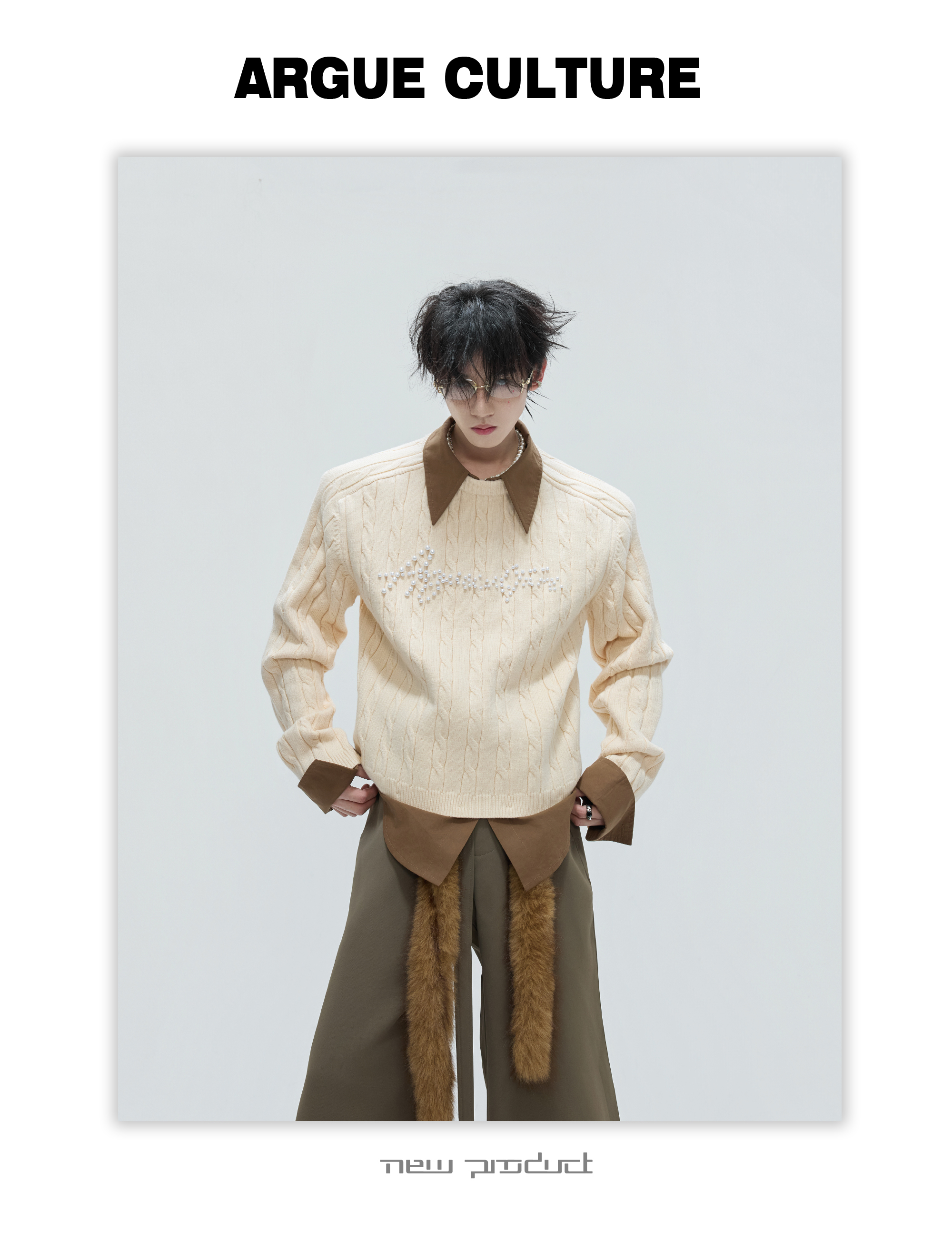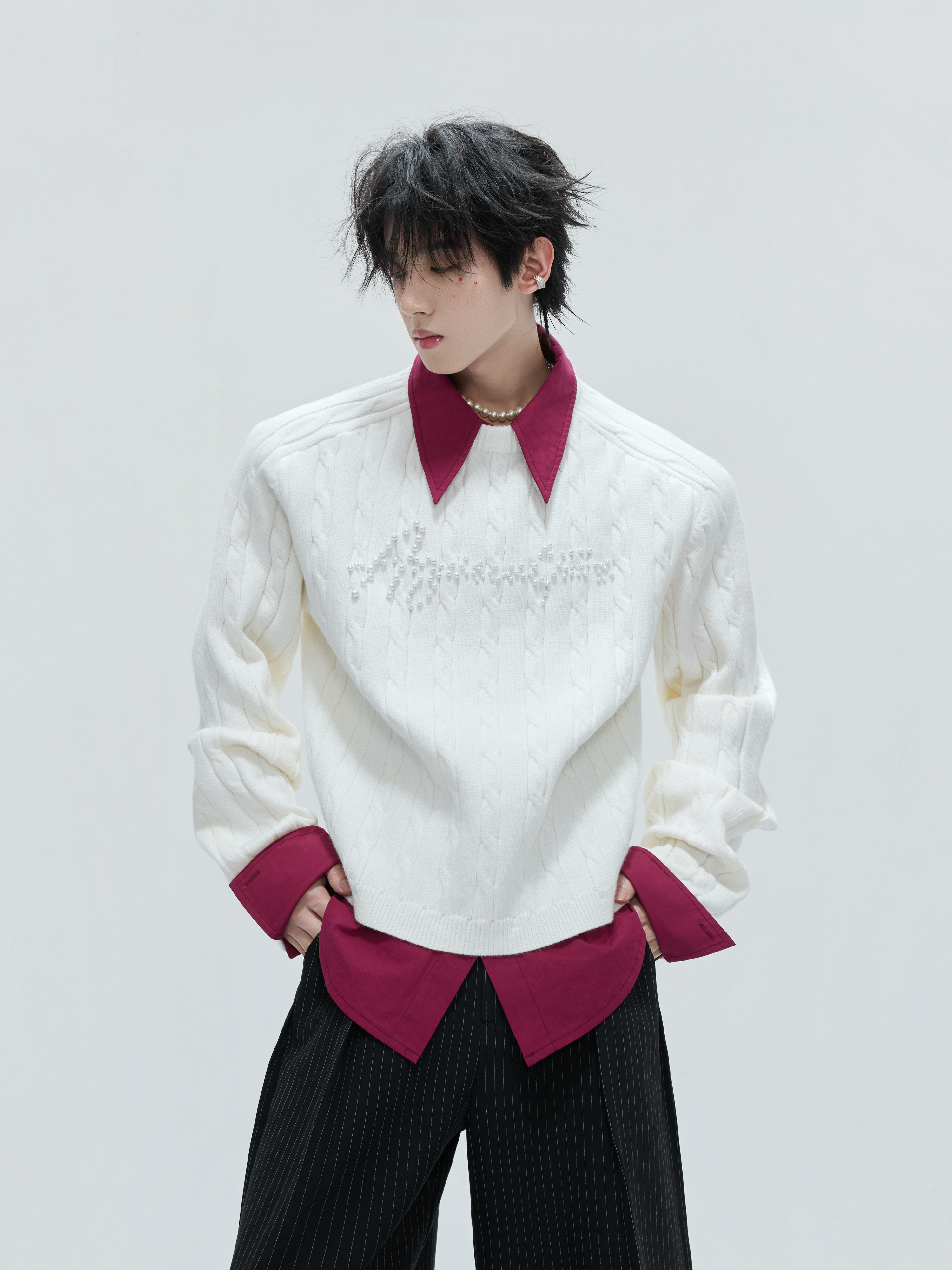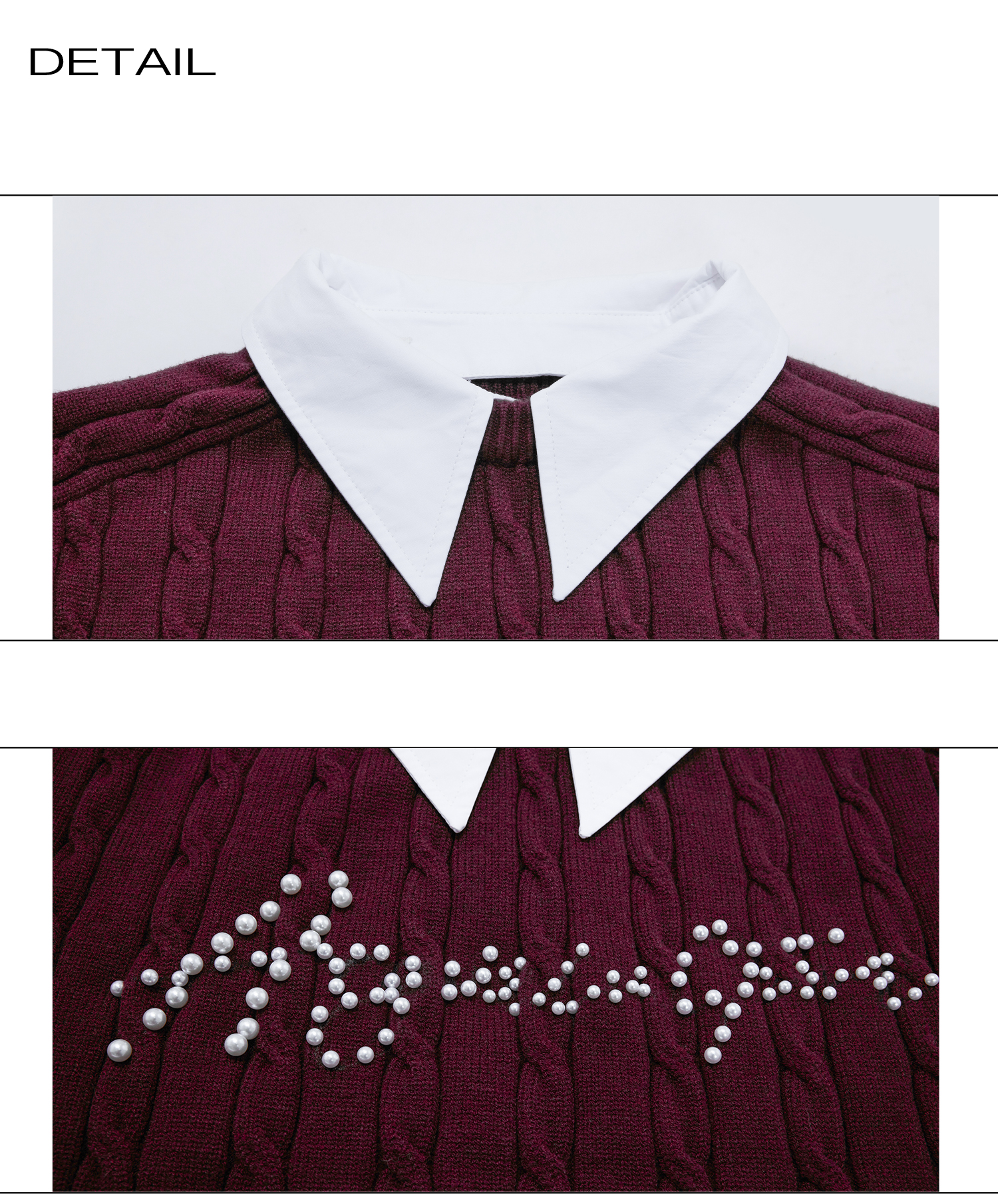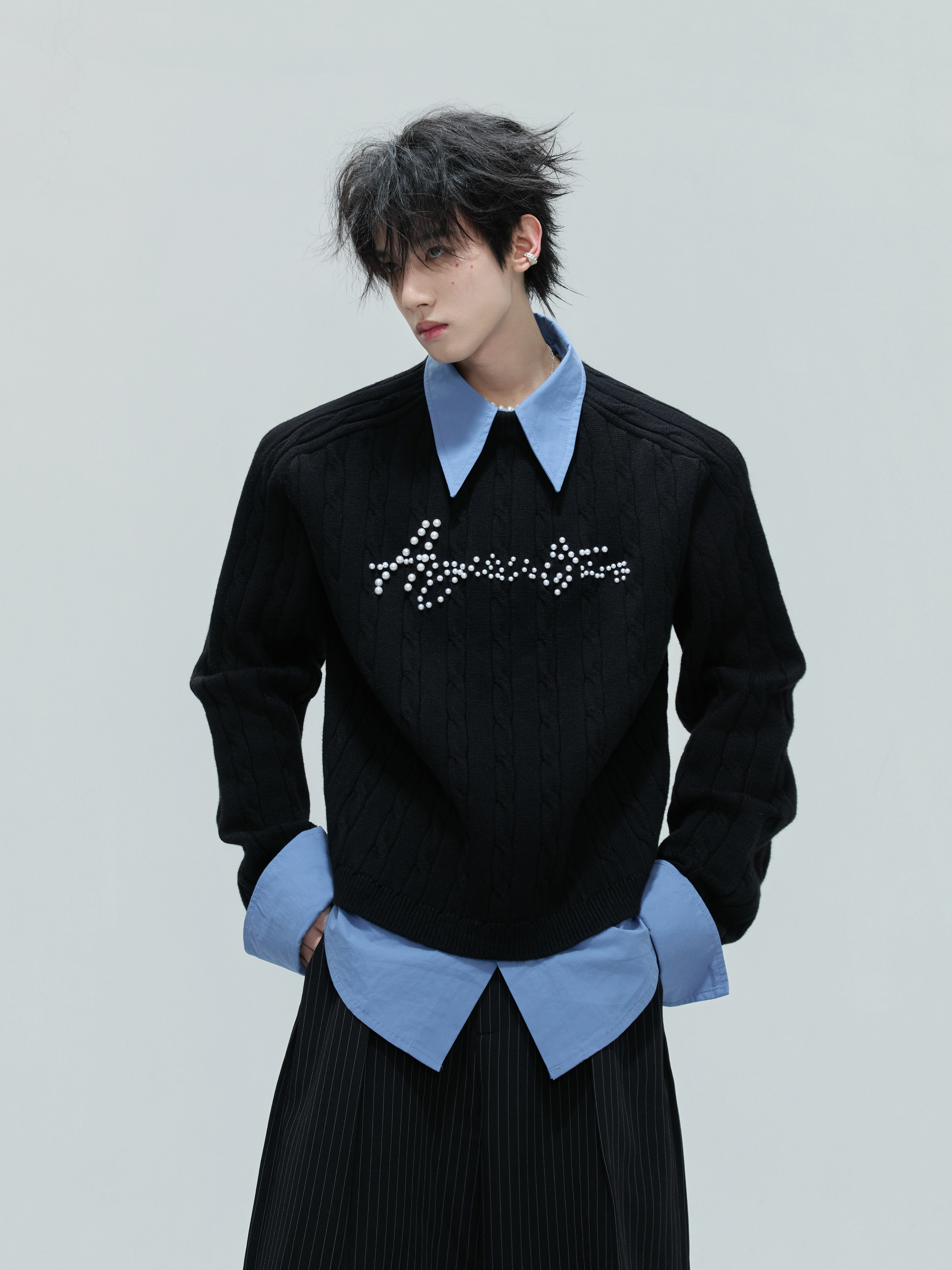 Fake Layered Pearl Embellished Thick Knit Sweater WN21721