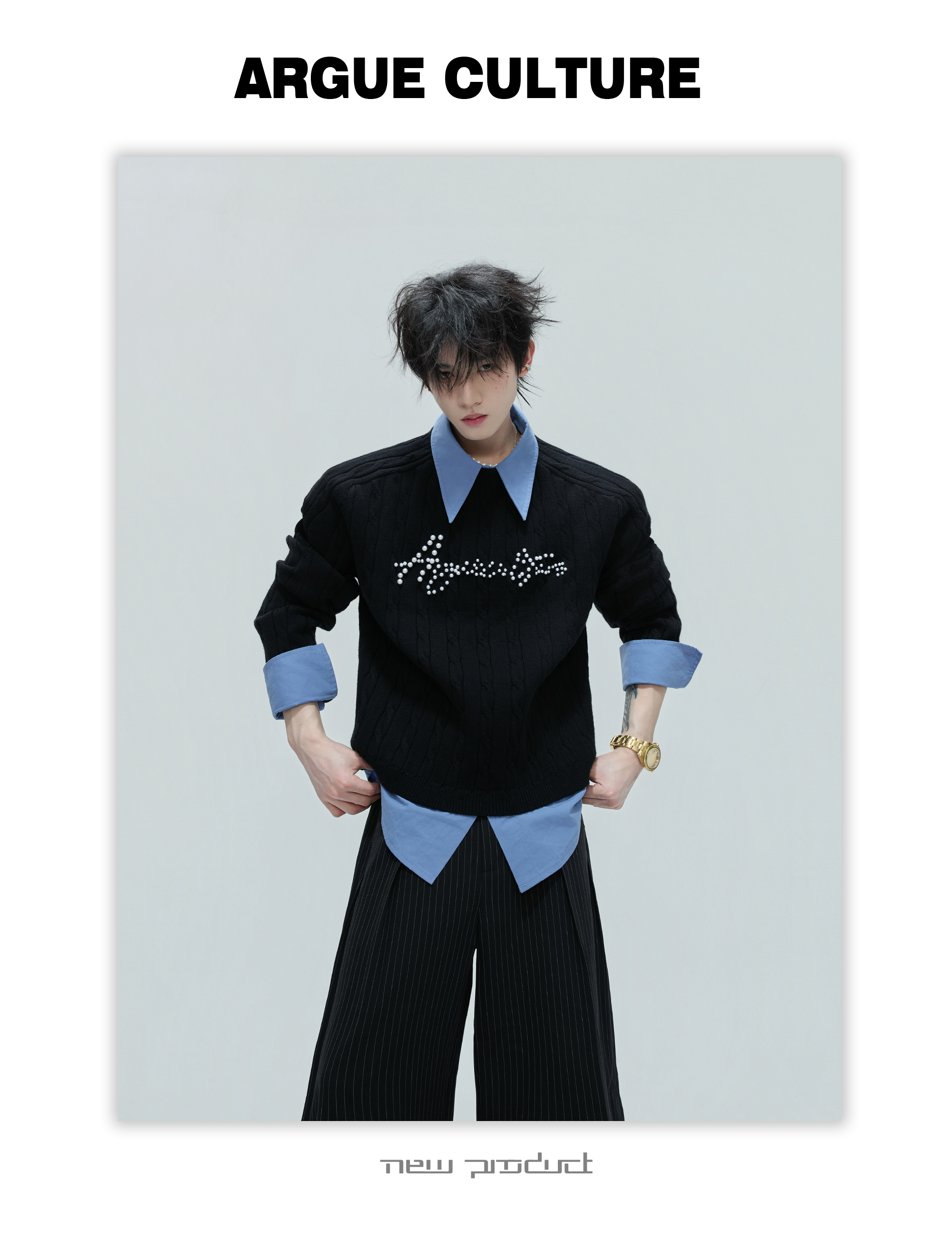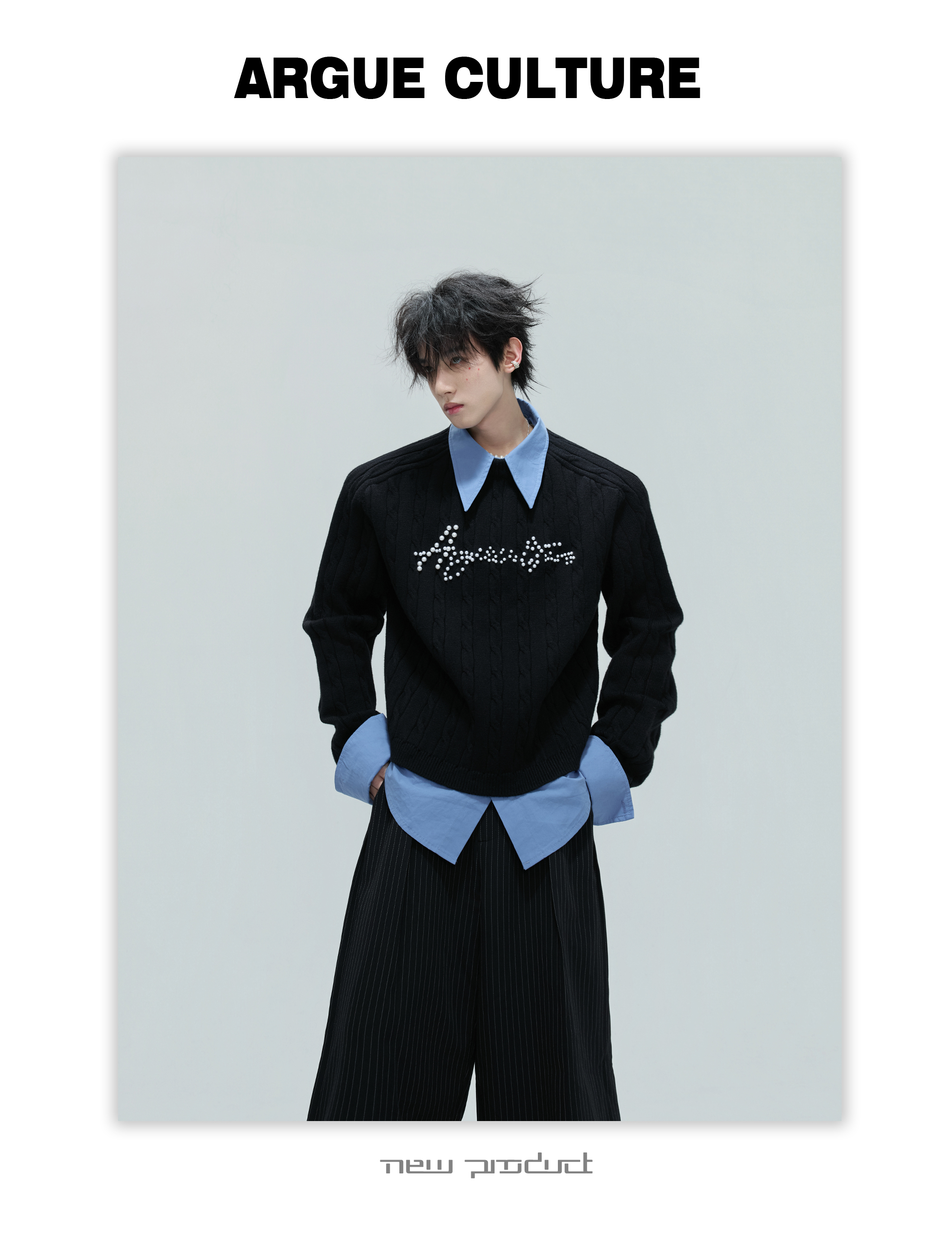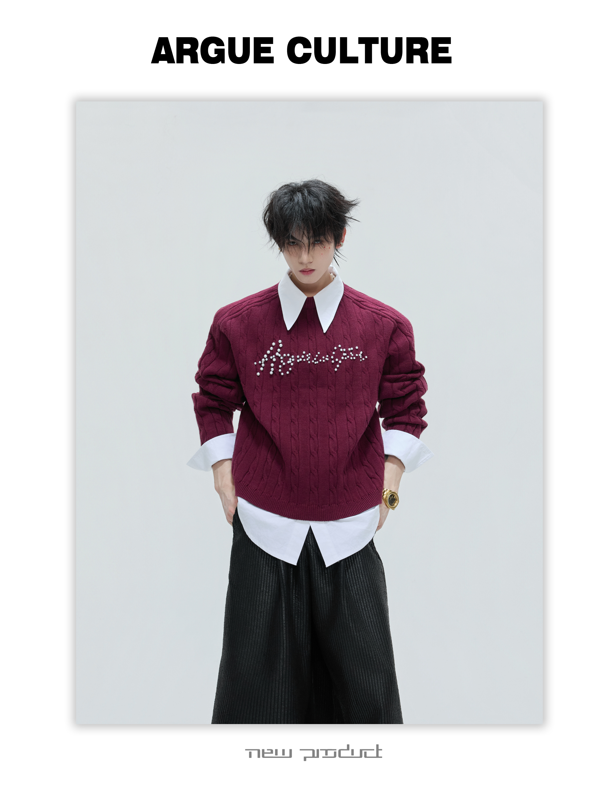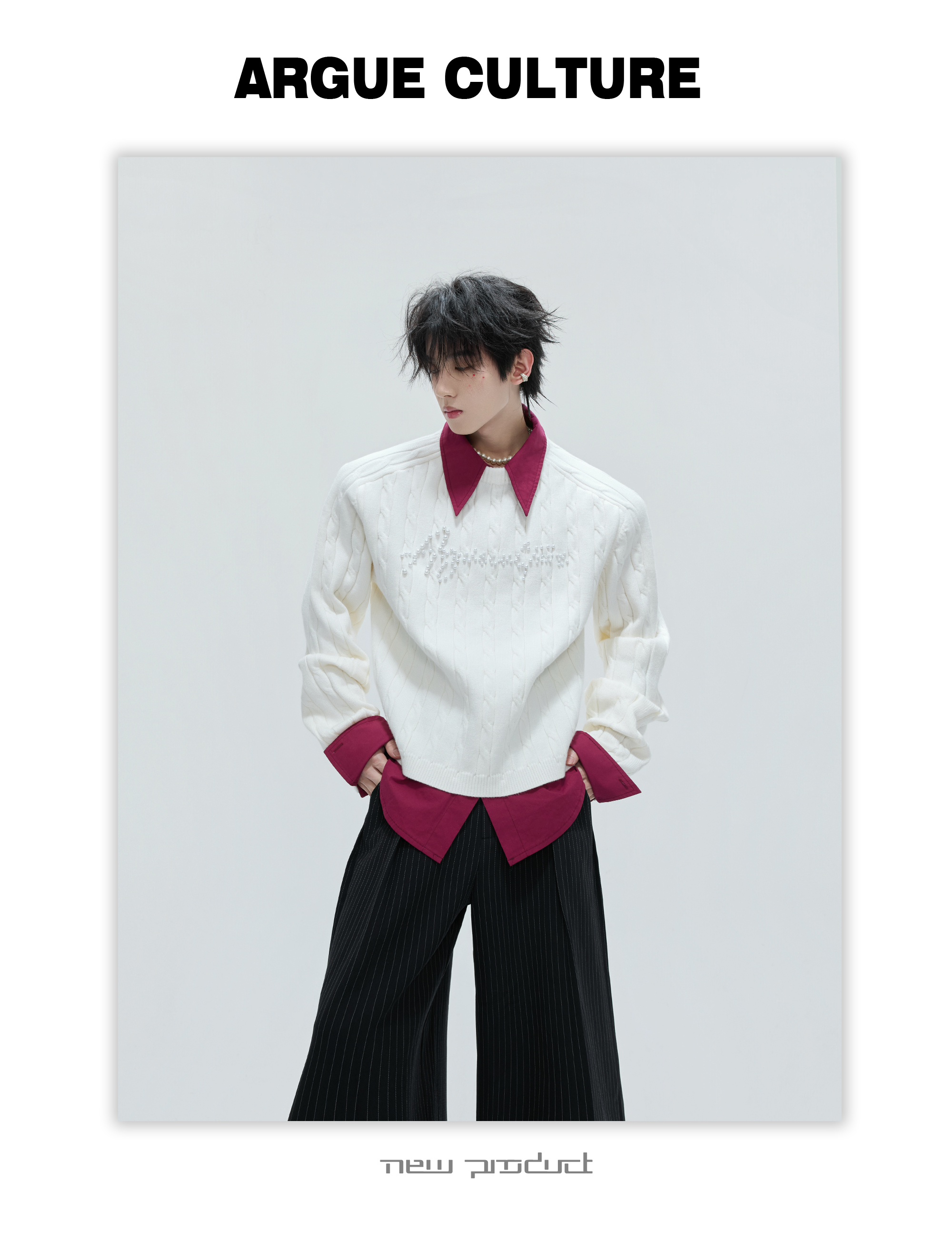 Fake Layered Pearl Embellished Thick Knit Sweater WN21721