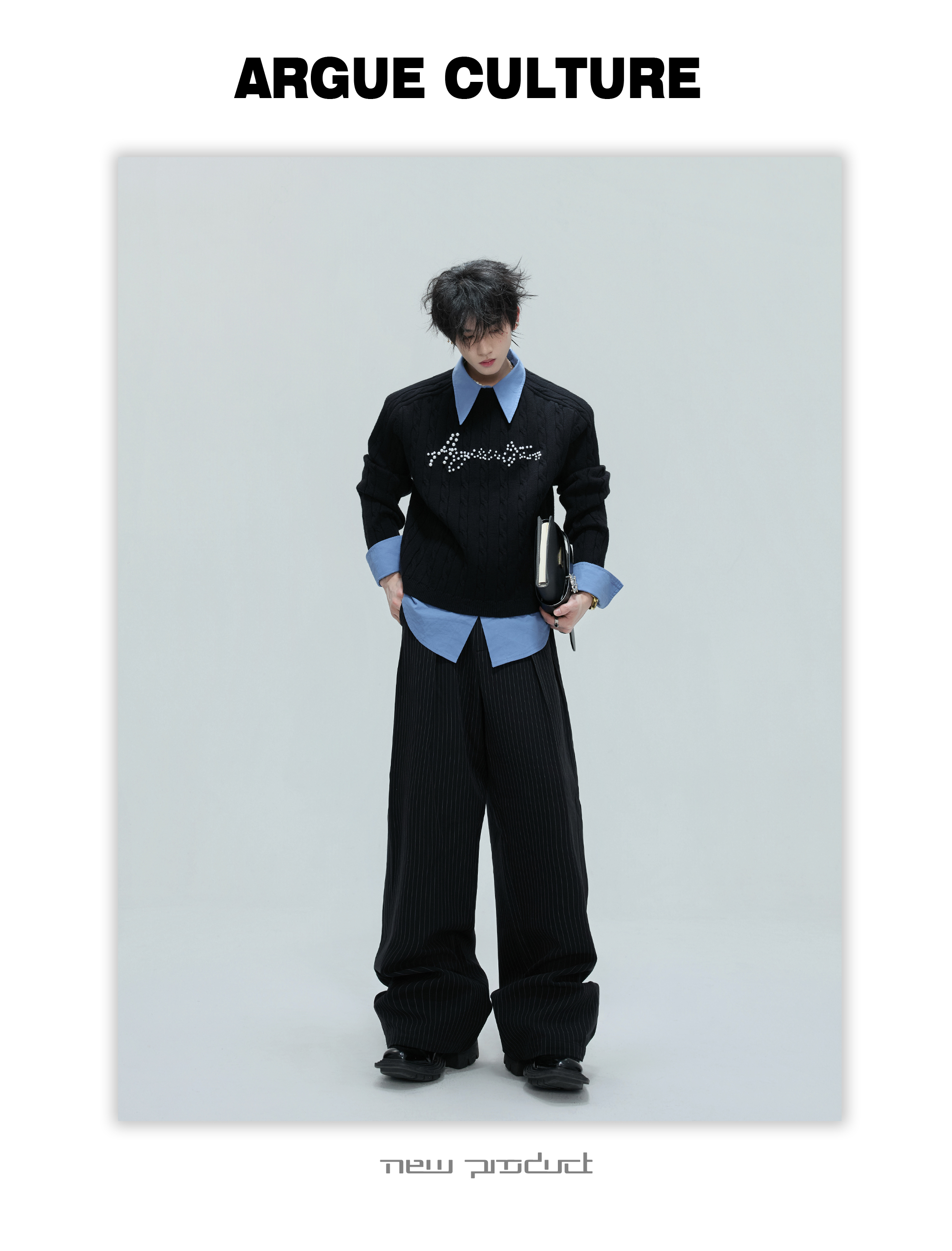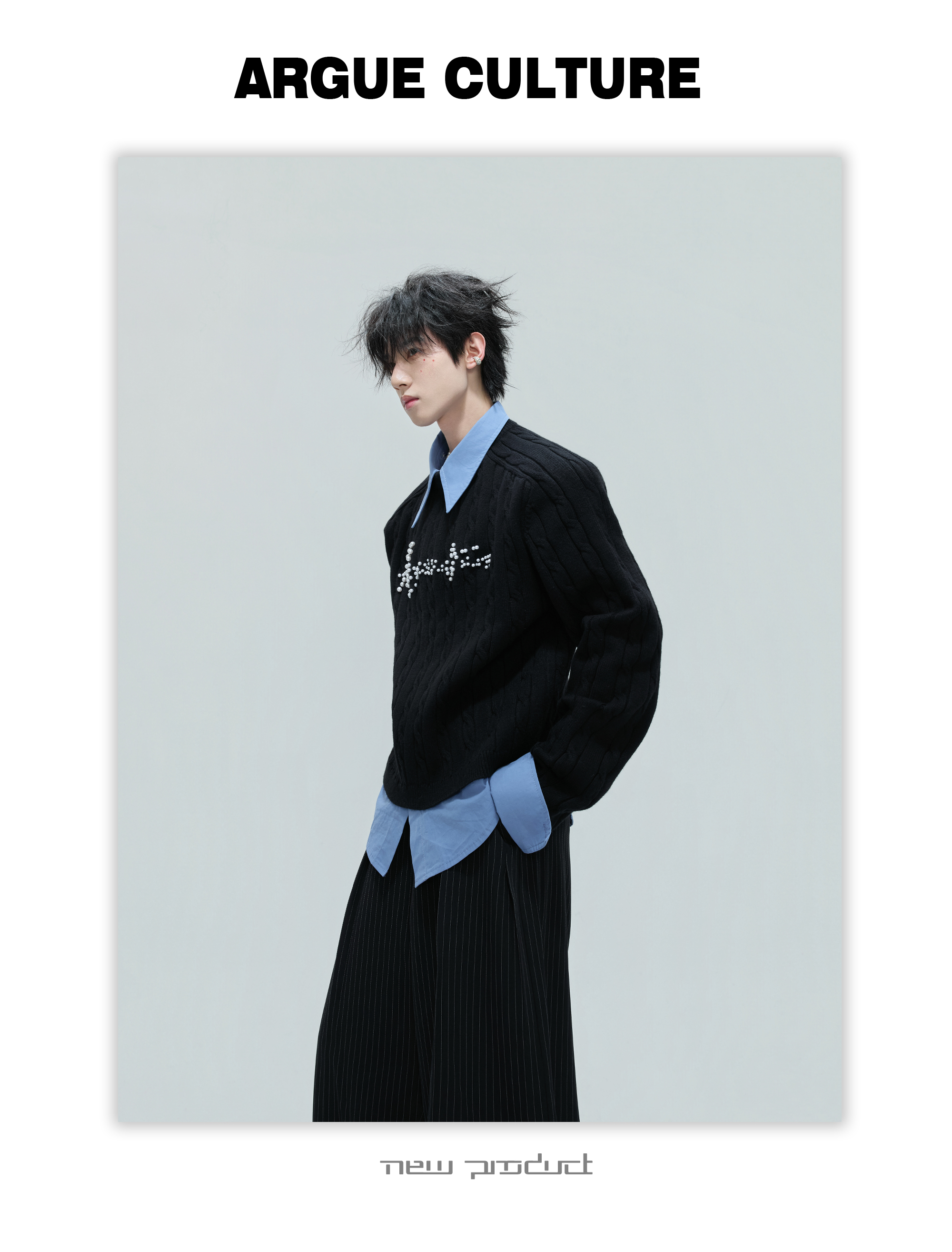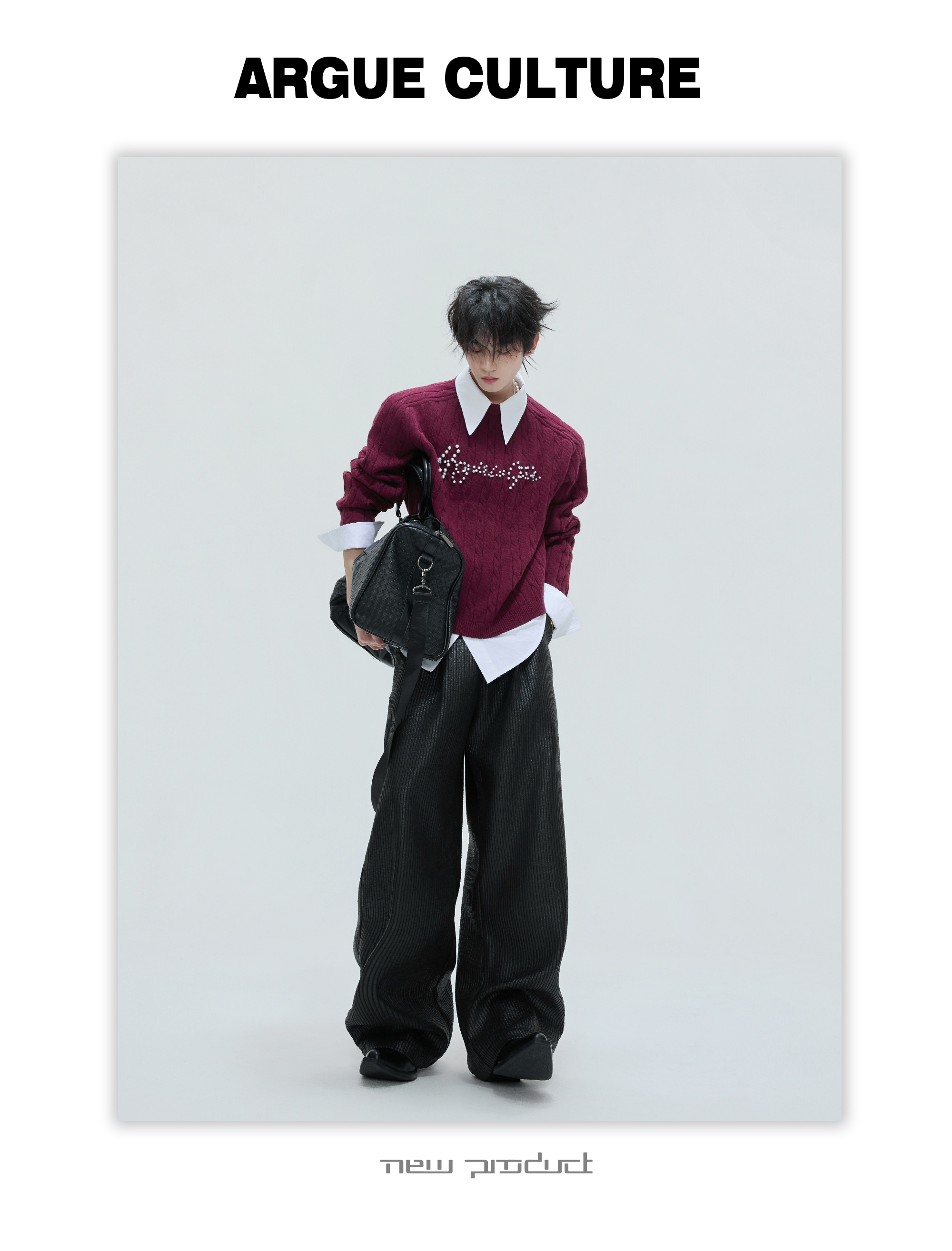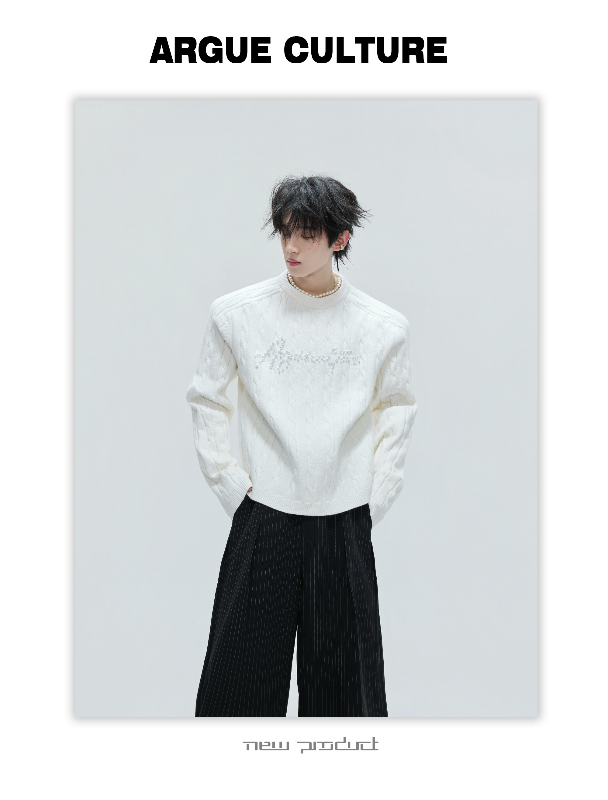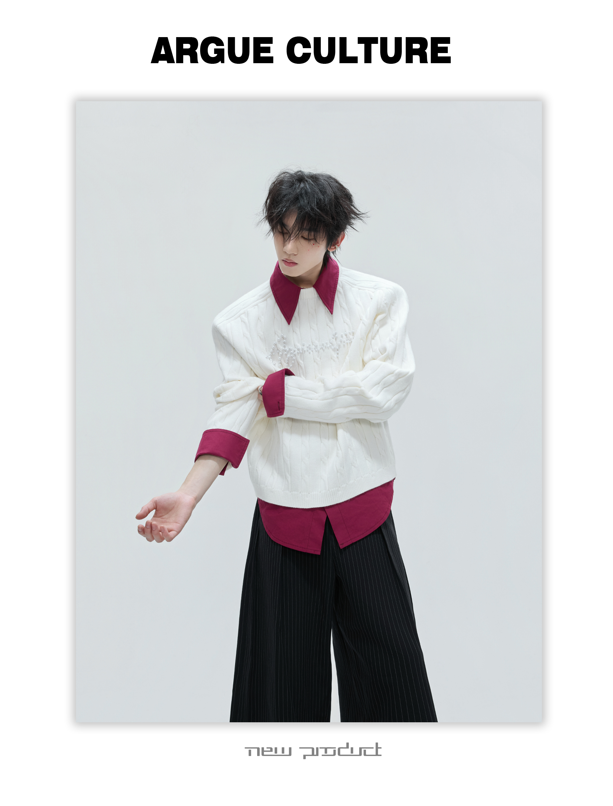 Fake Layered Pearl Embellished Thick Knit Sweater WN21721