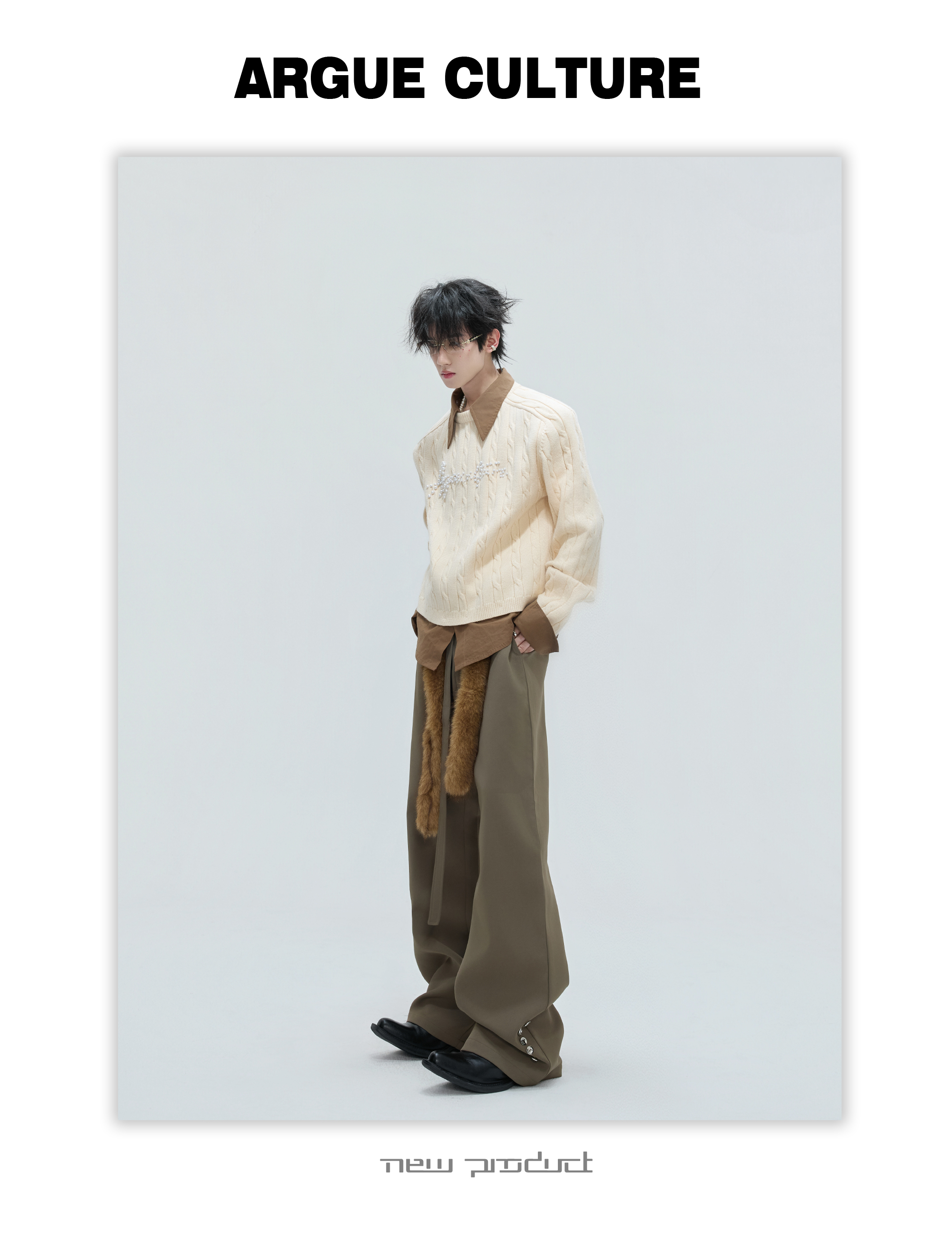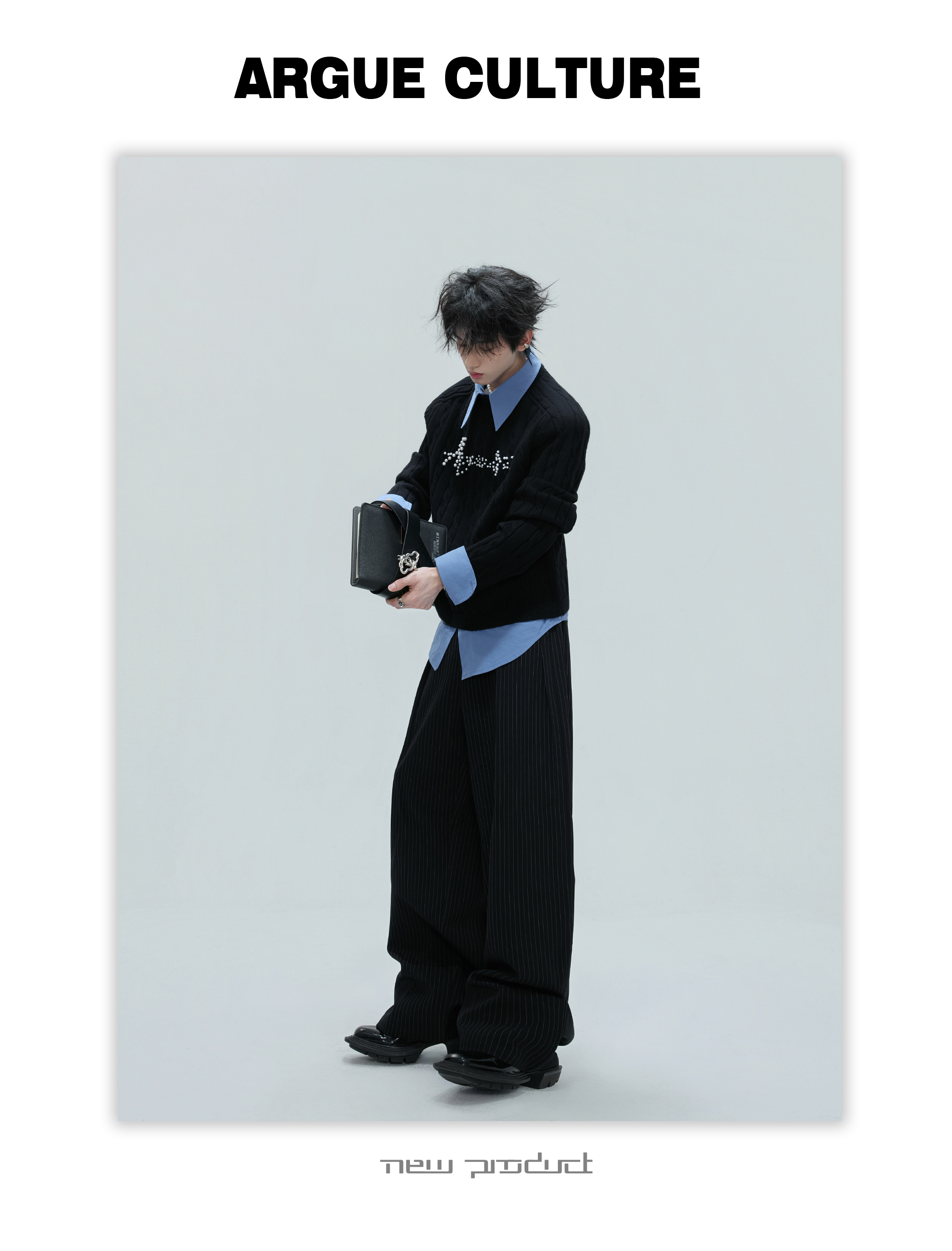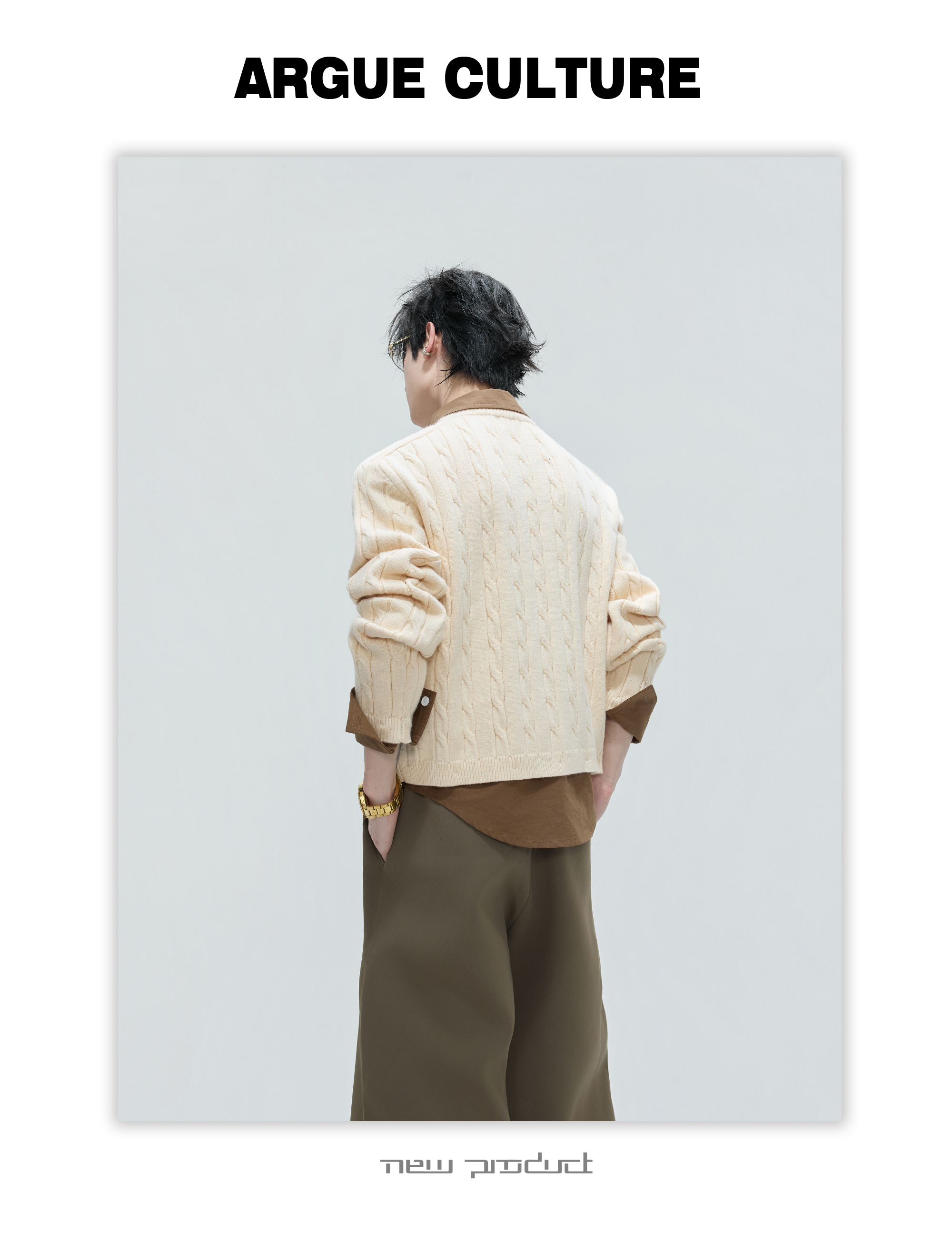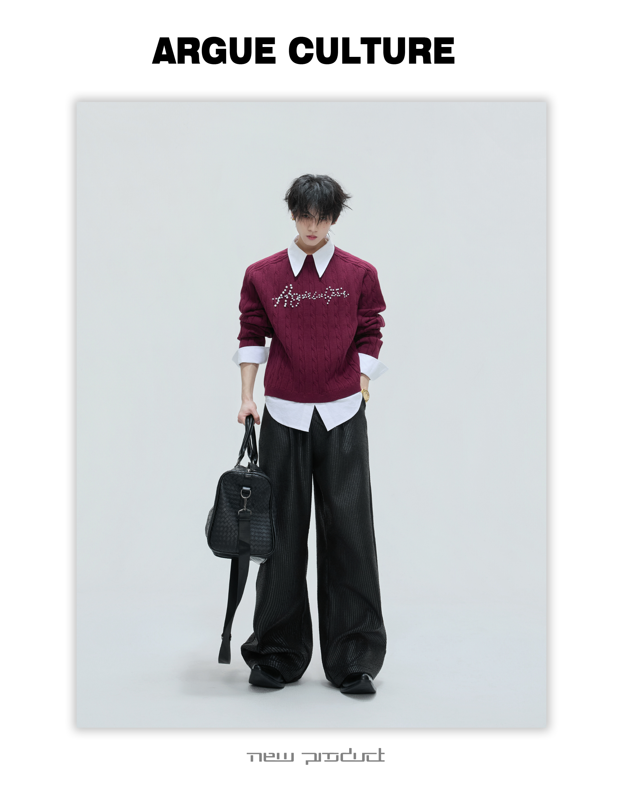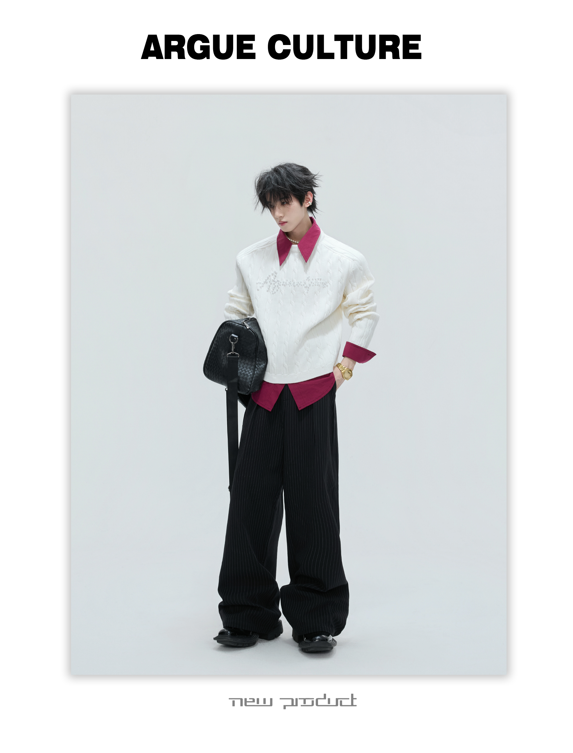 Fake Layered Pearl Embellished Thick Knit Sweater WN21721