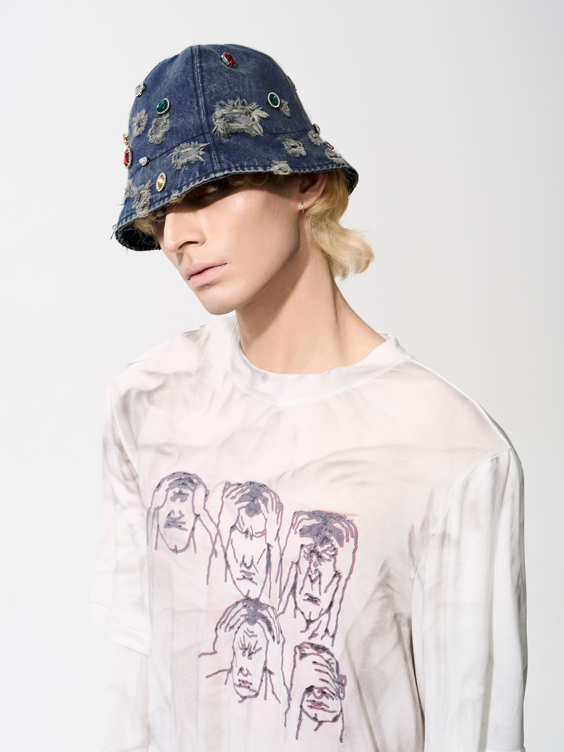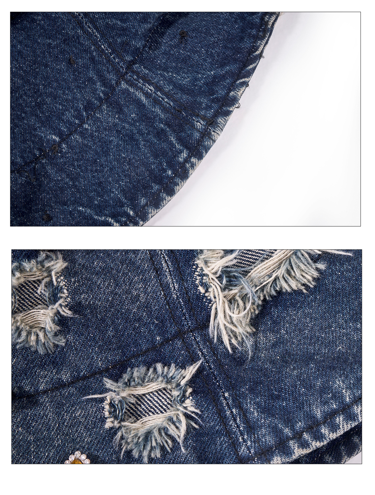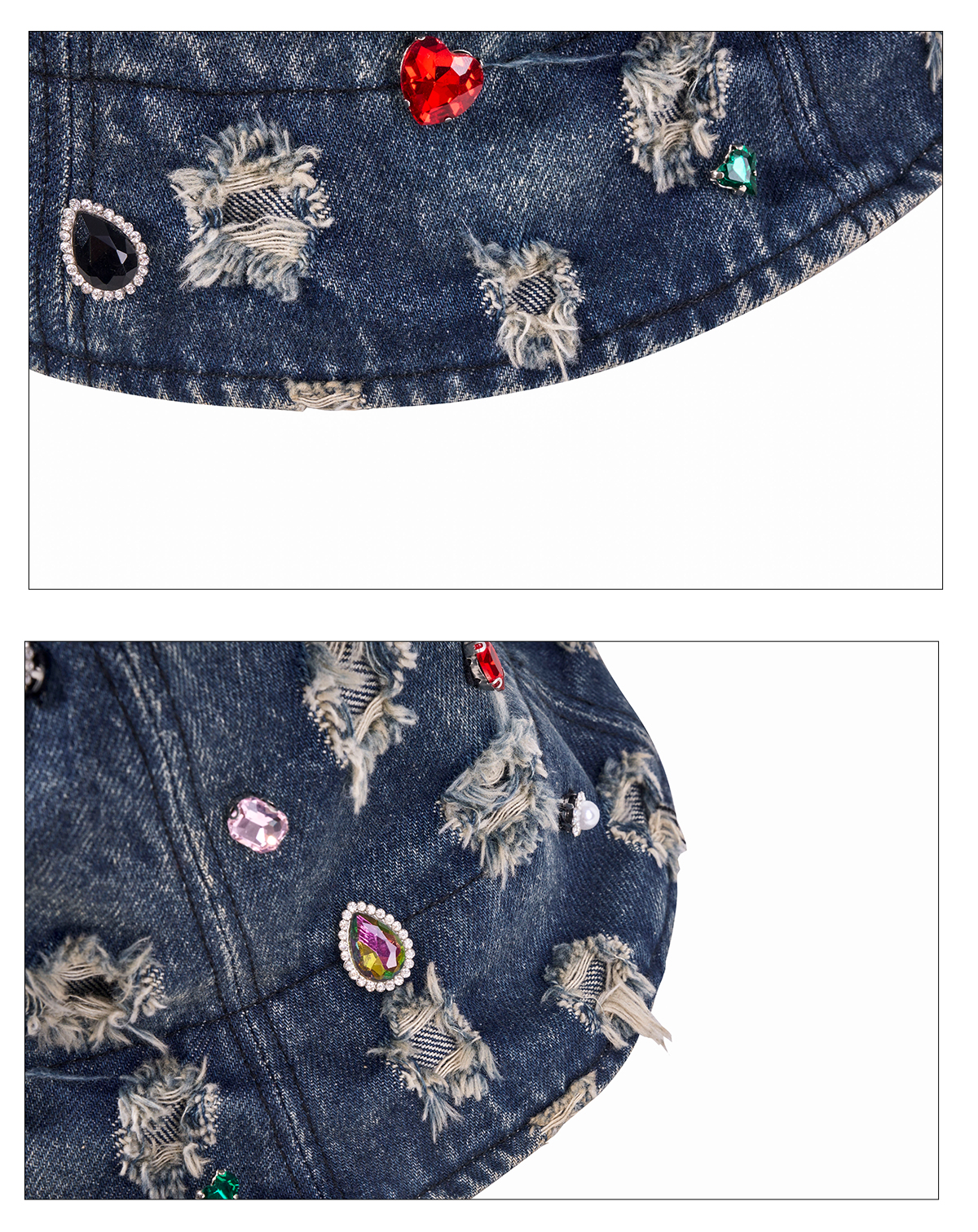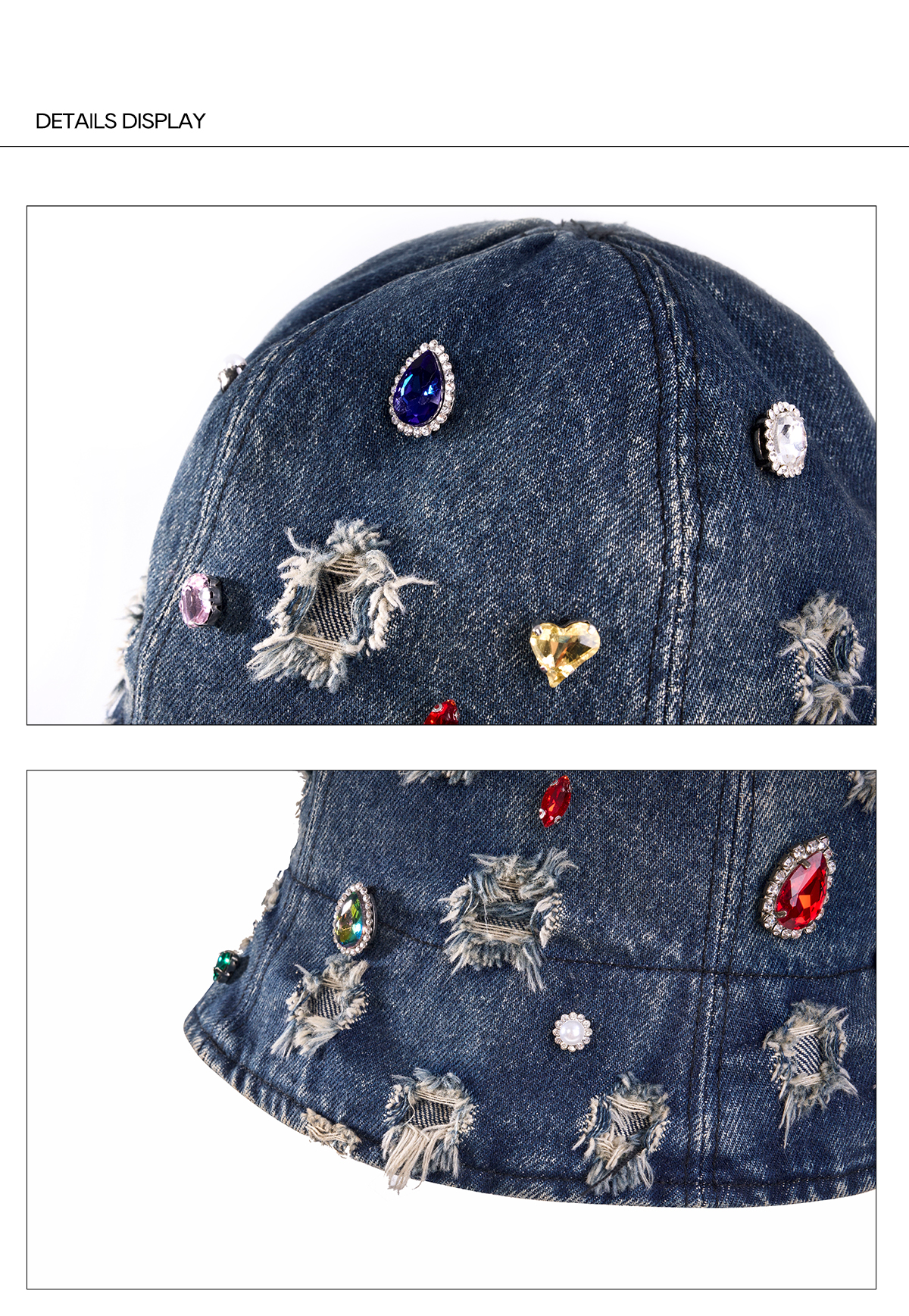 Rhinestone Washed Damage Denim Hat WN21776