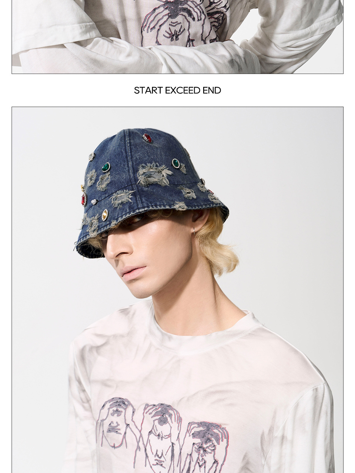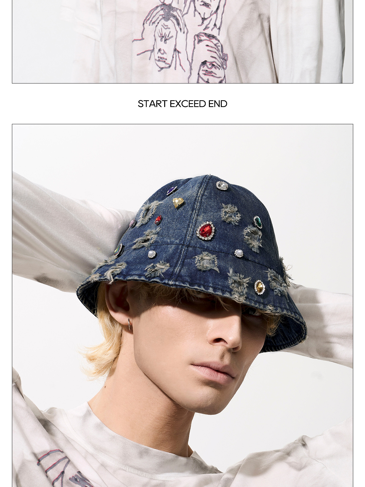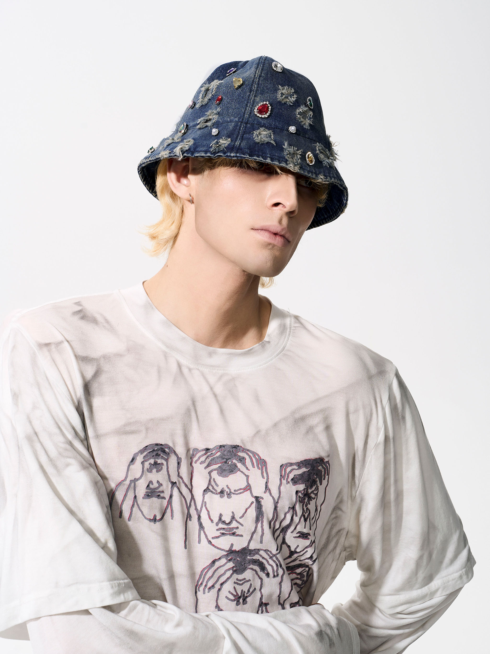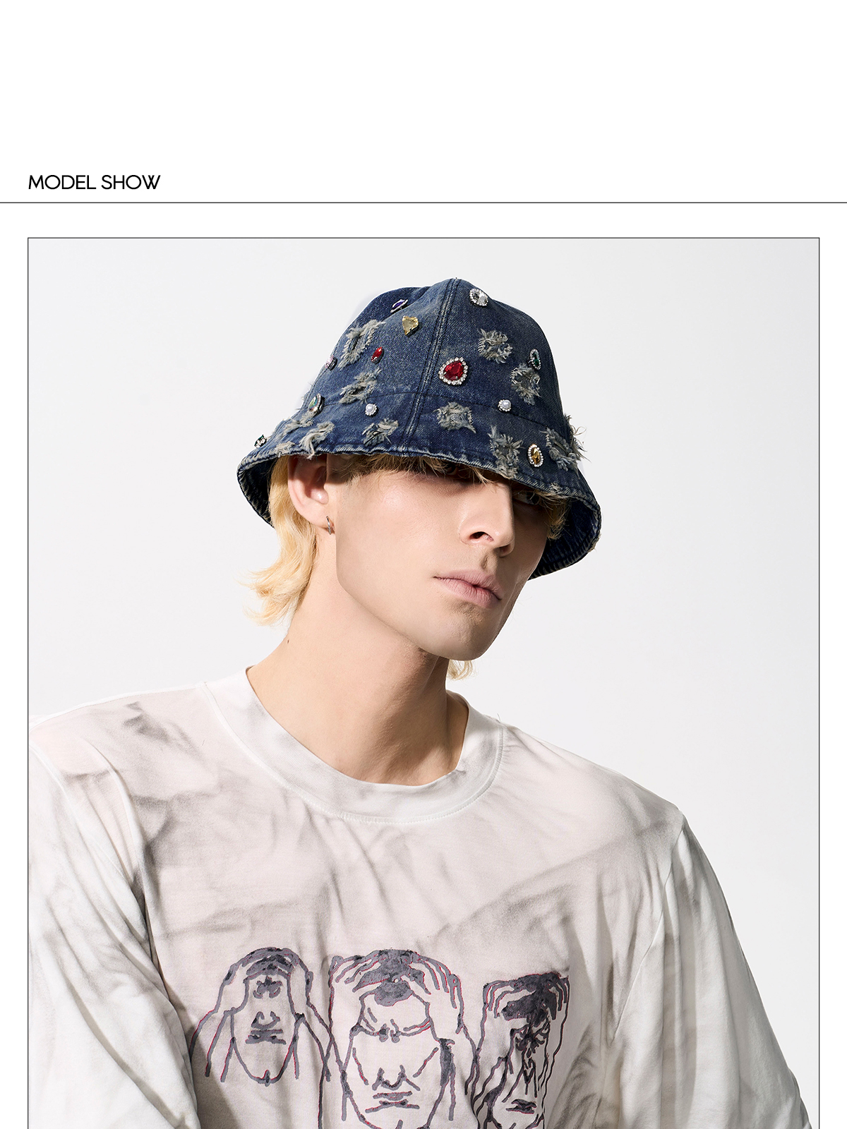Rhinestone Washed Damage Denim Hat WN21776