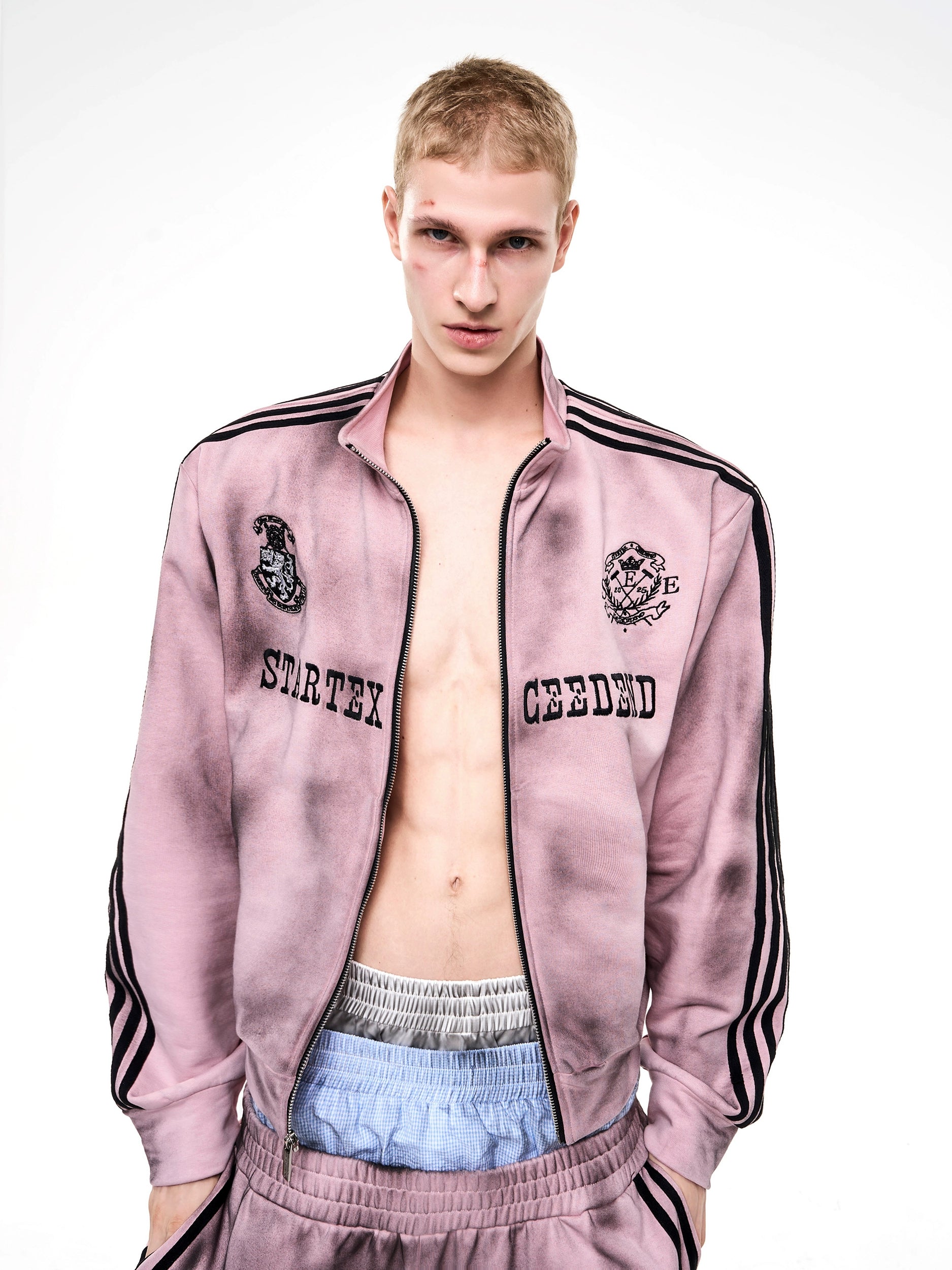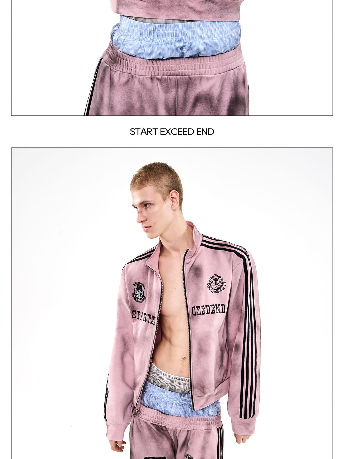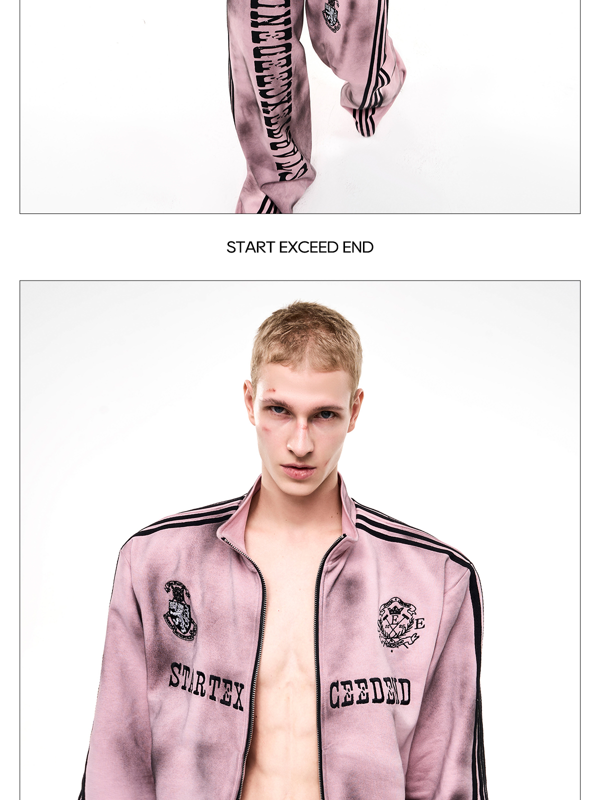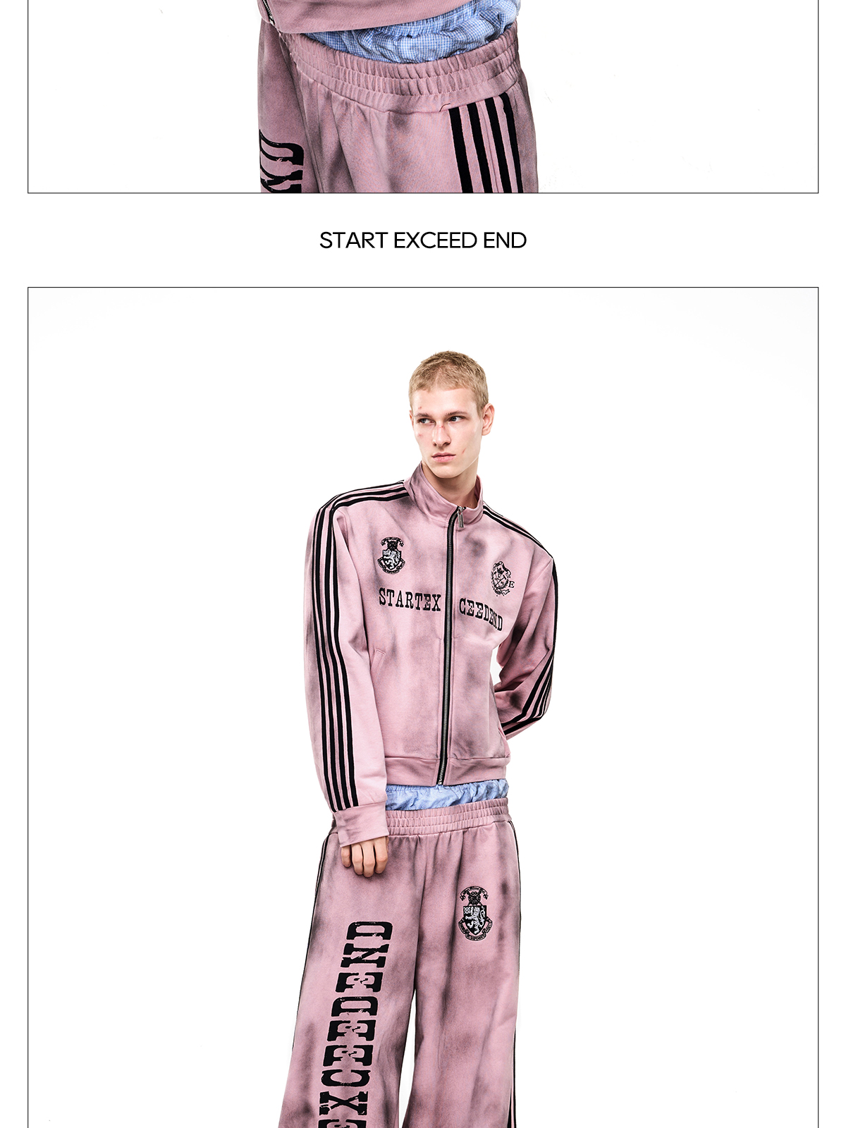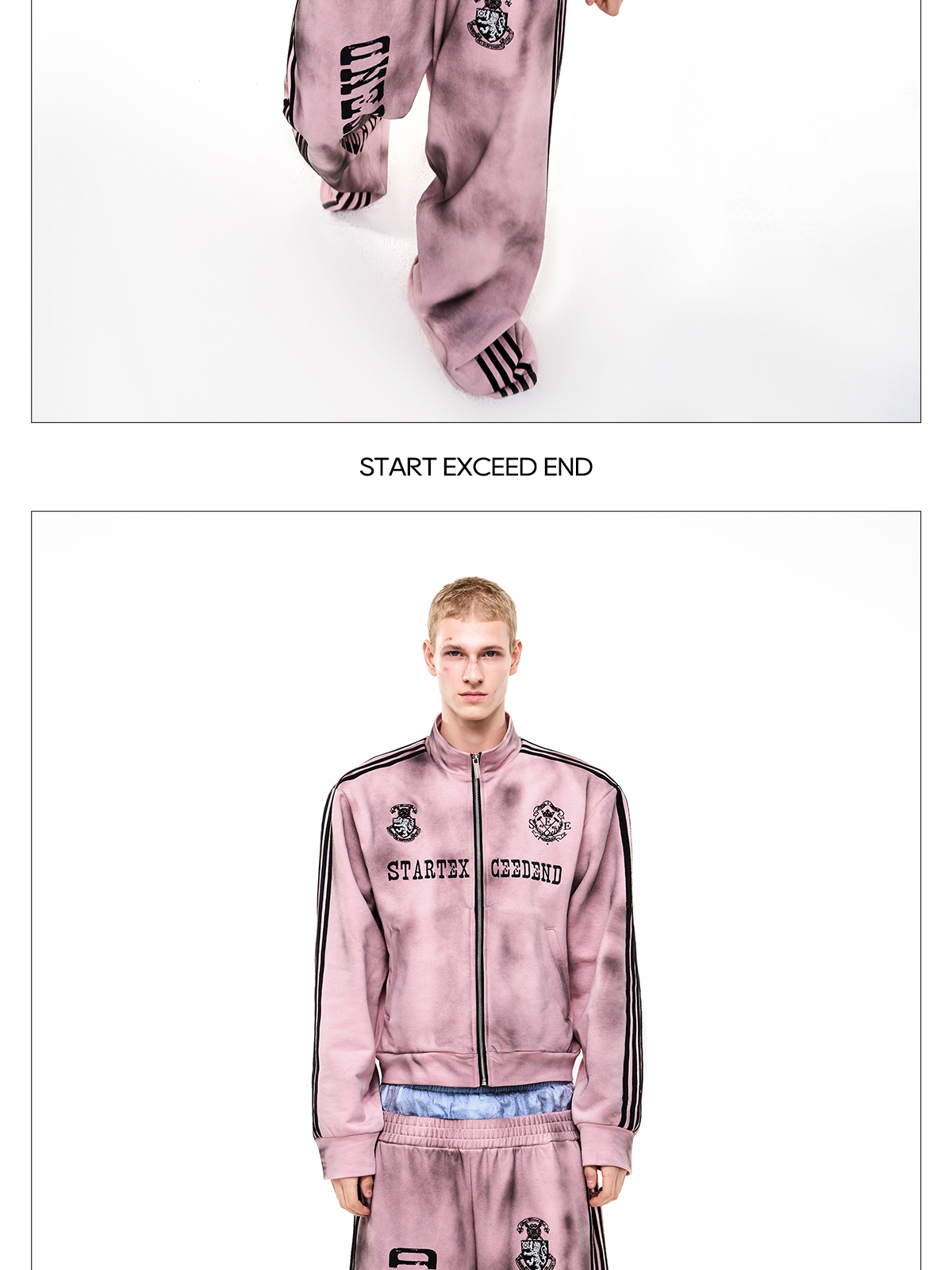 Four-Bar Spray Damage Stand Neck Zopper Jacket & Wide Leg Pants Set WN21811