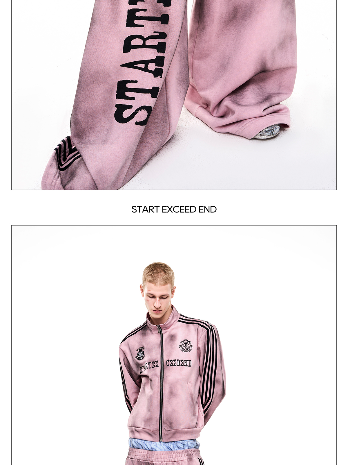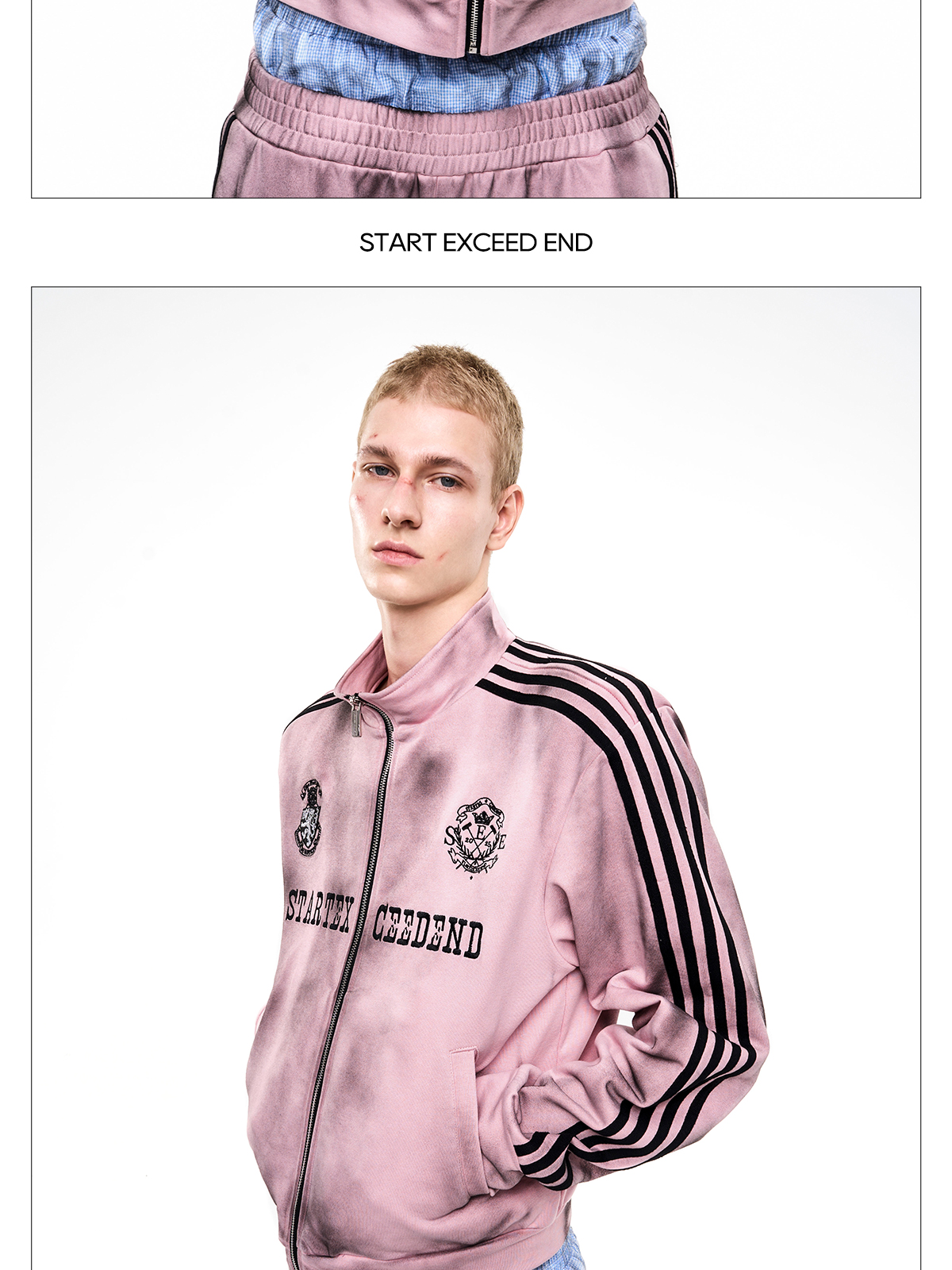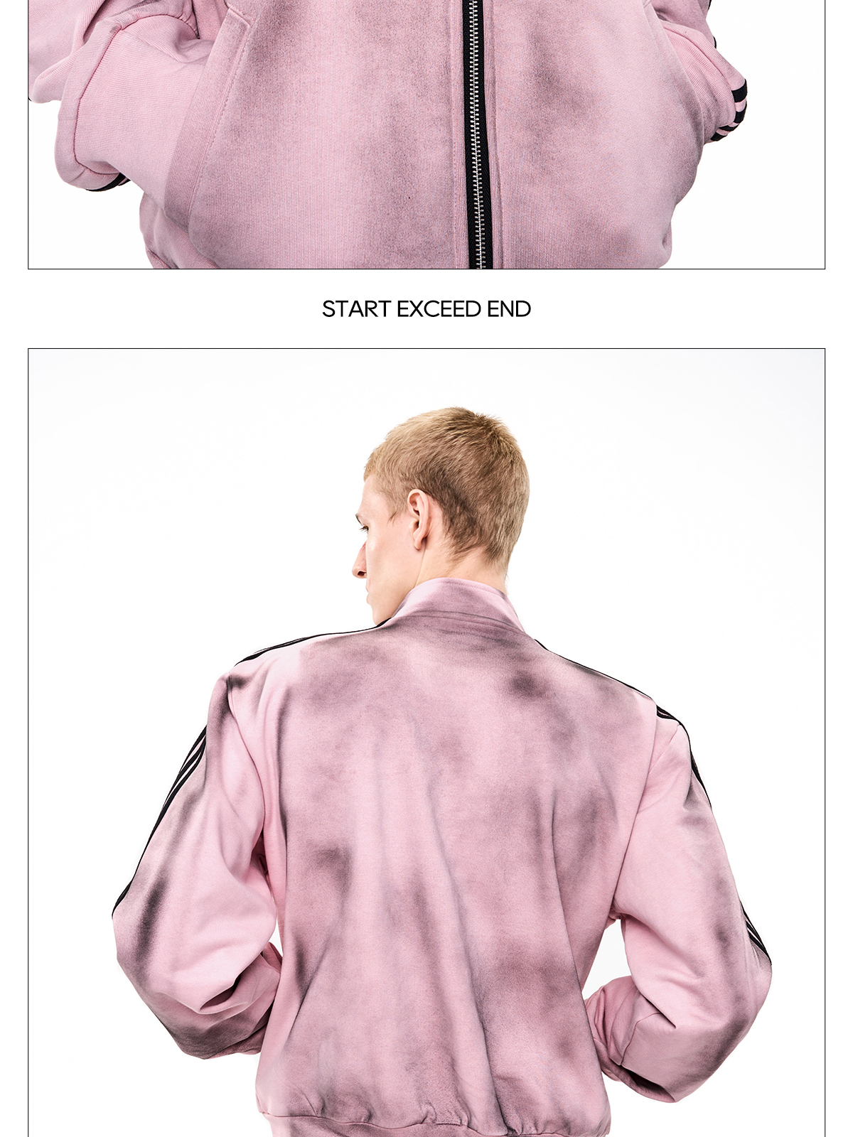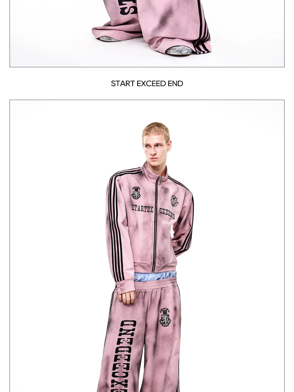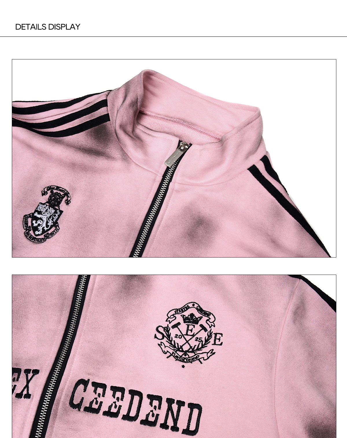 Four-Bar Spray Damage Stand Neck Zopper Jacket & Wide Leg Pants Set WN21811