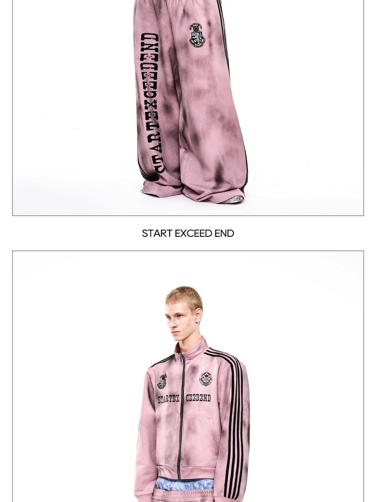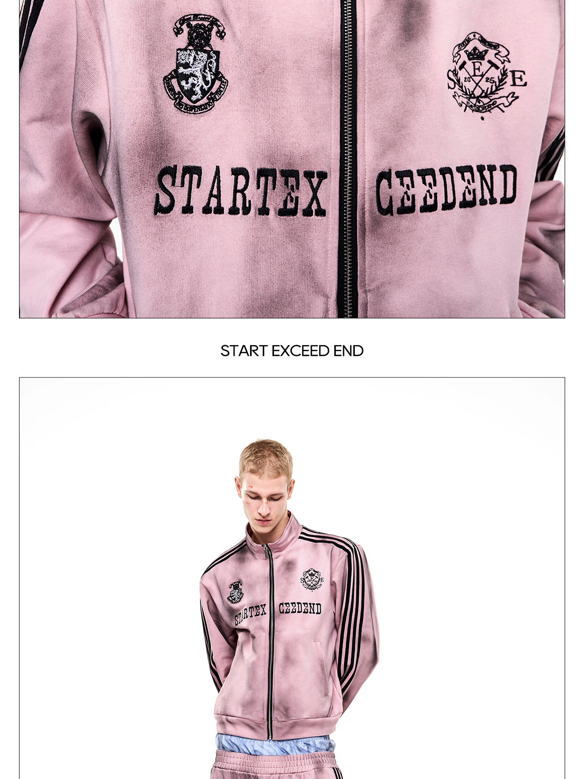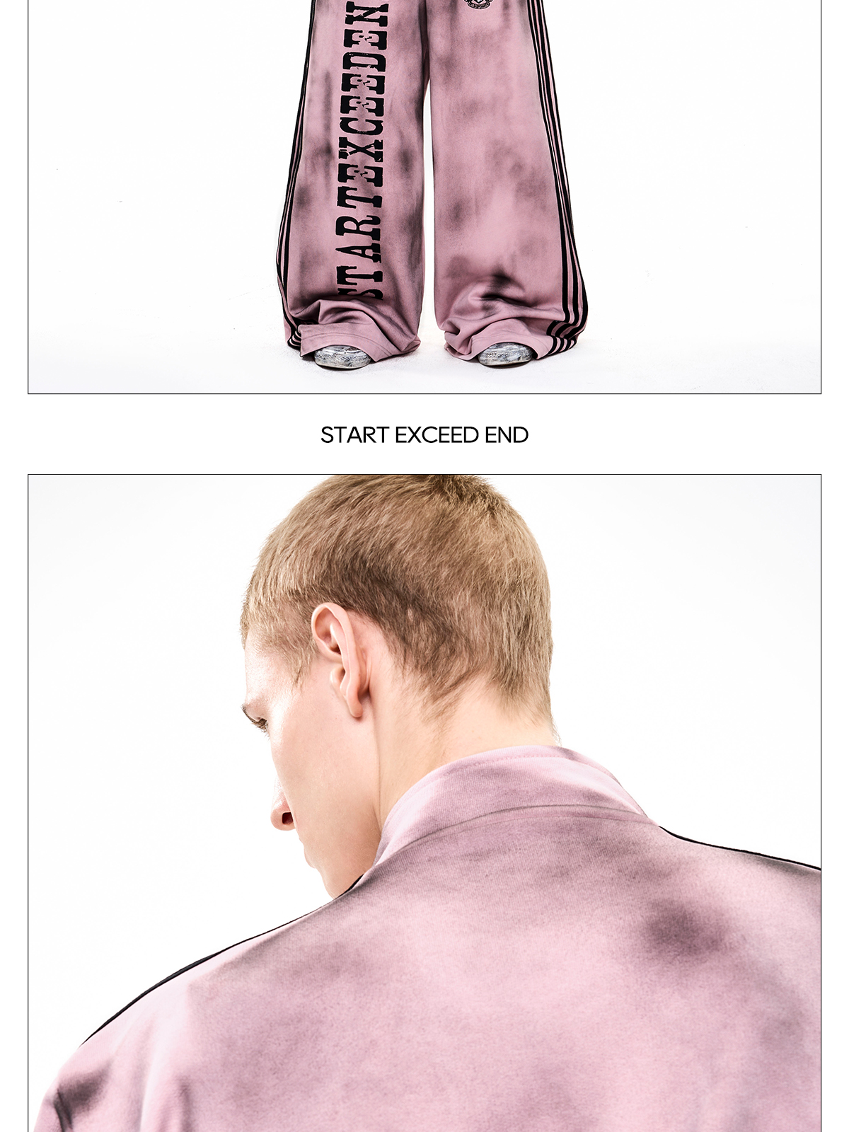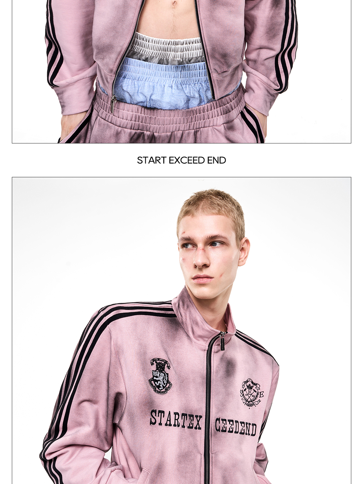 Four-Bar Spray Damage Stand Neck Zopper Jacket & Wide Leg Pants Set WN21811