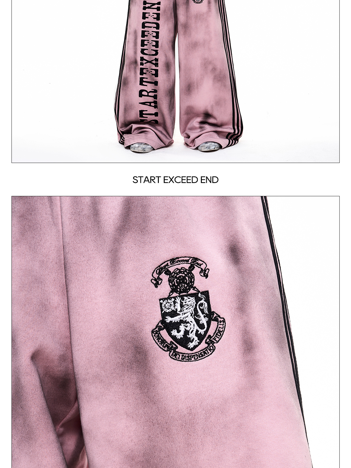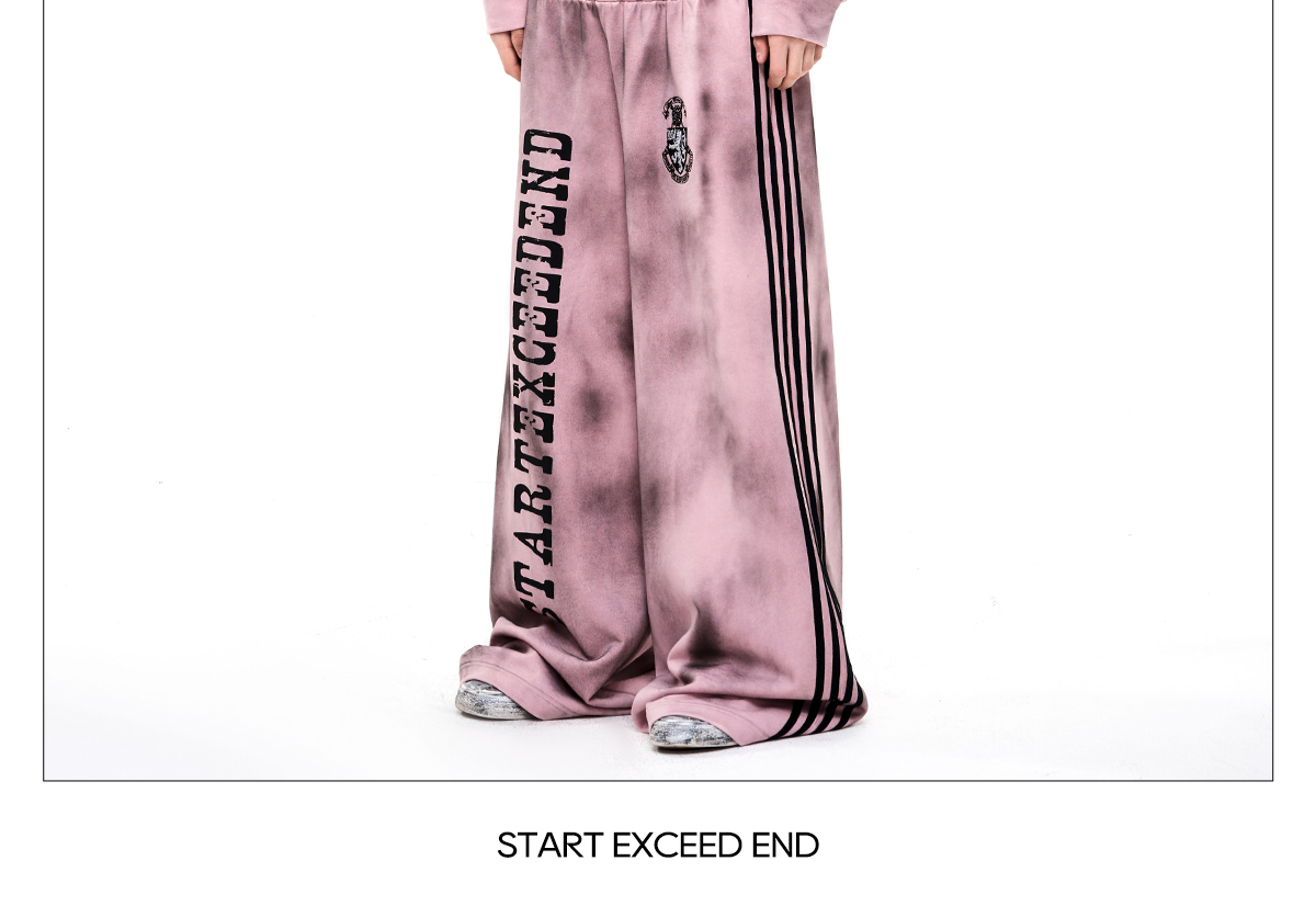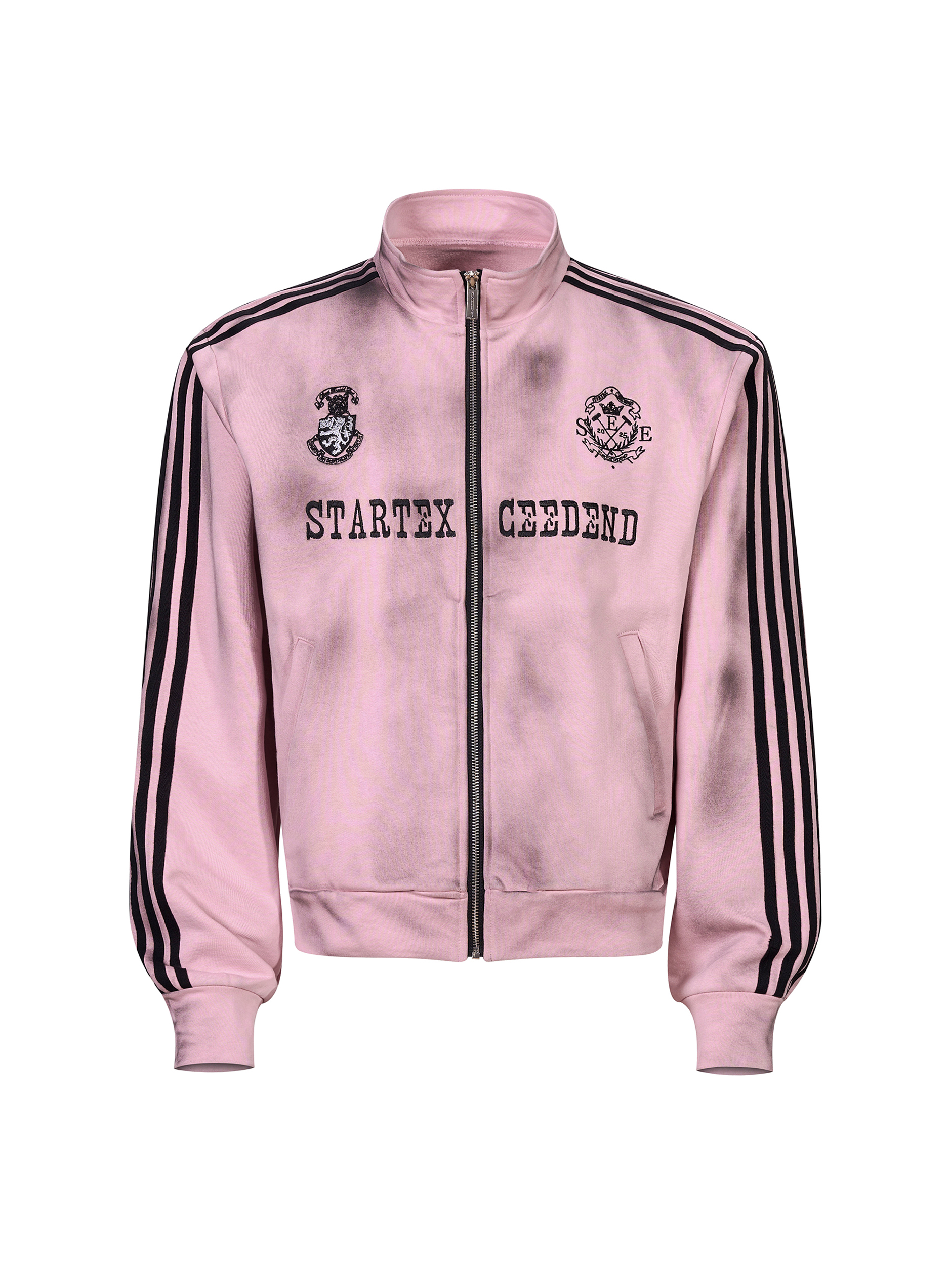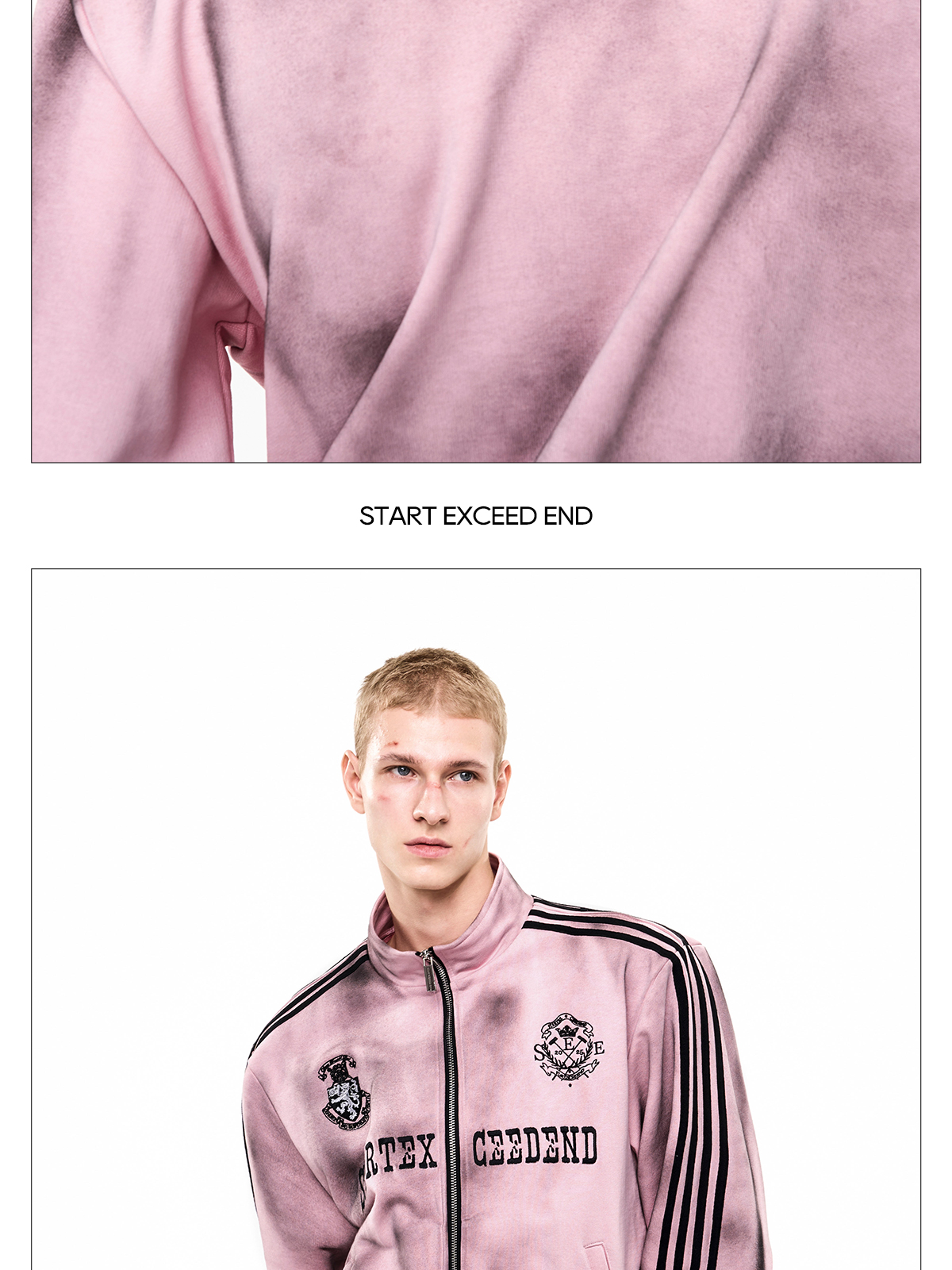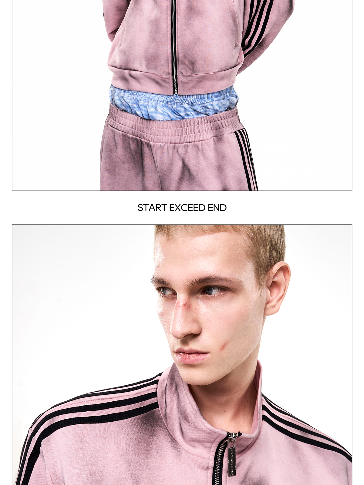 Four-Bar Spray Damage Stand Neck Zopper Jacket & Wide Leg Pants Set WN21811