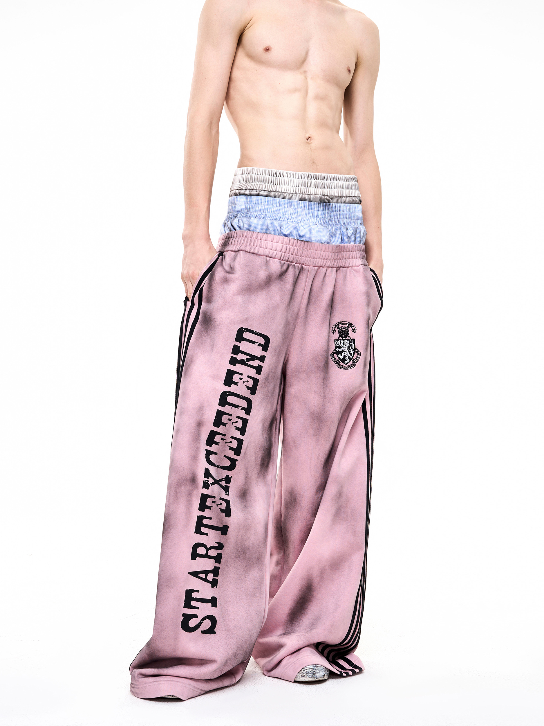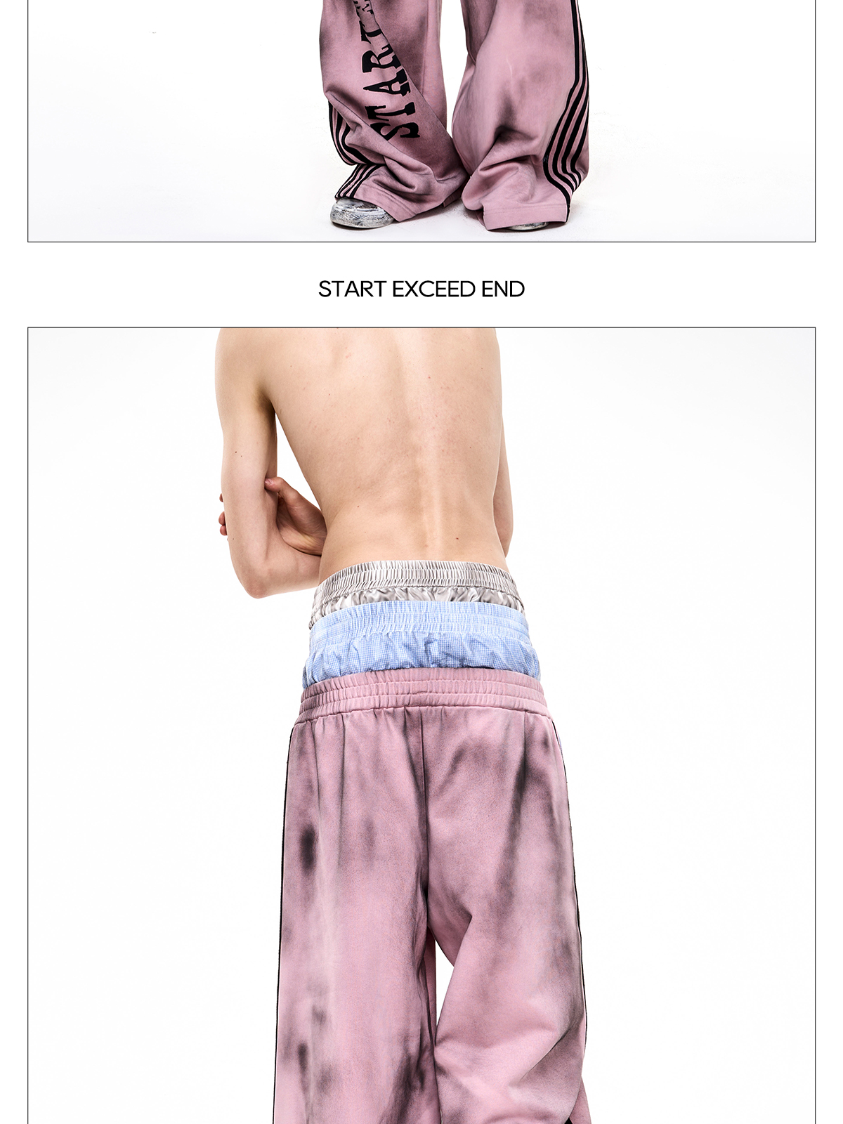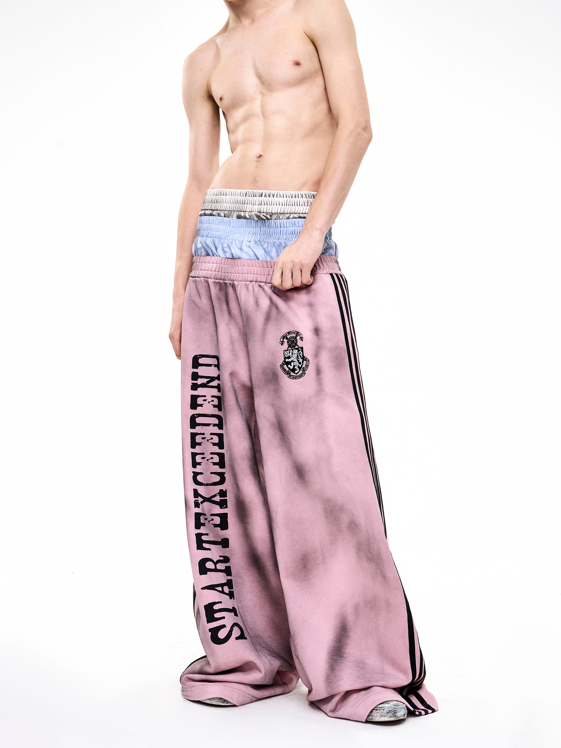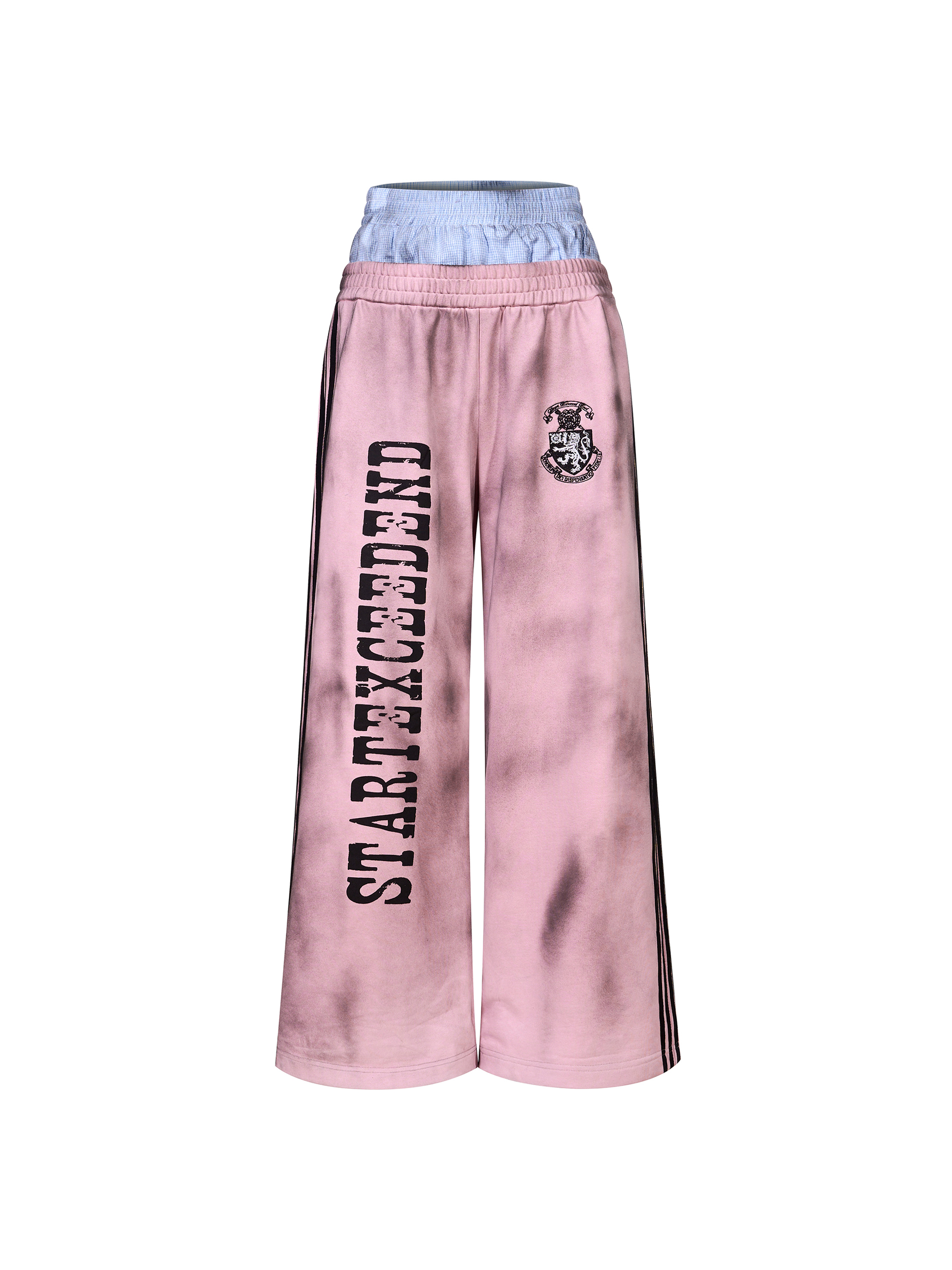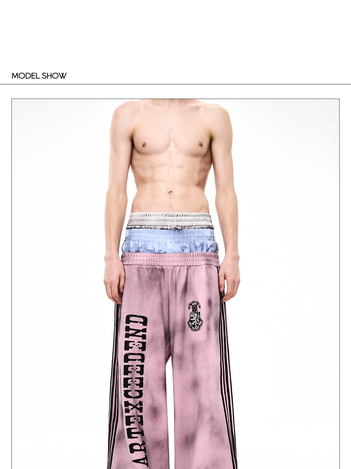Four-Bar Spray Damage Stand Neck Zopper Jacket & Wide Leg Pants Set WN21811