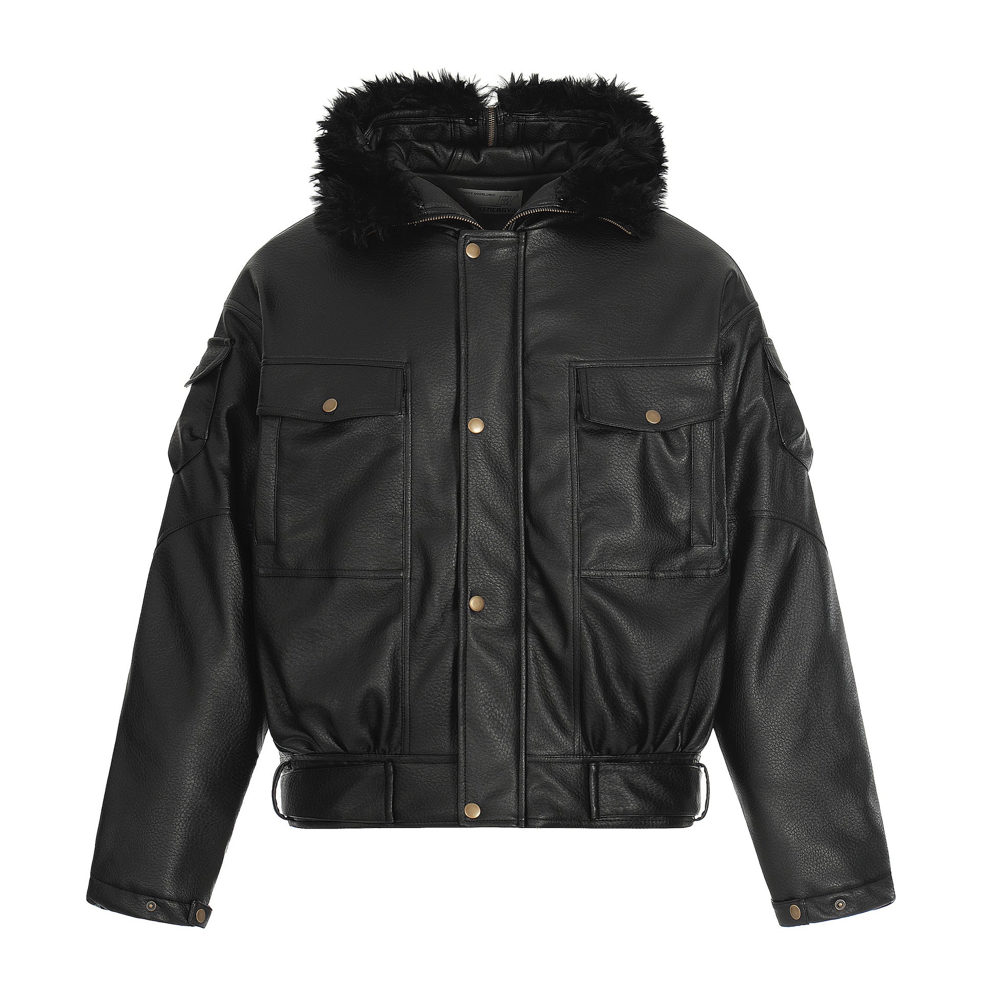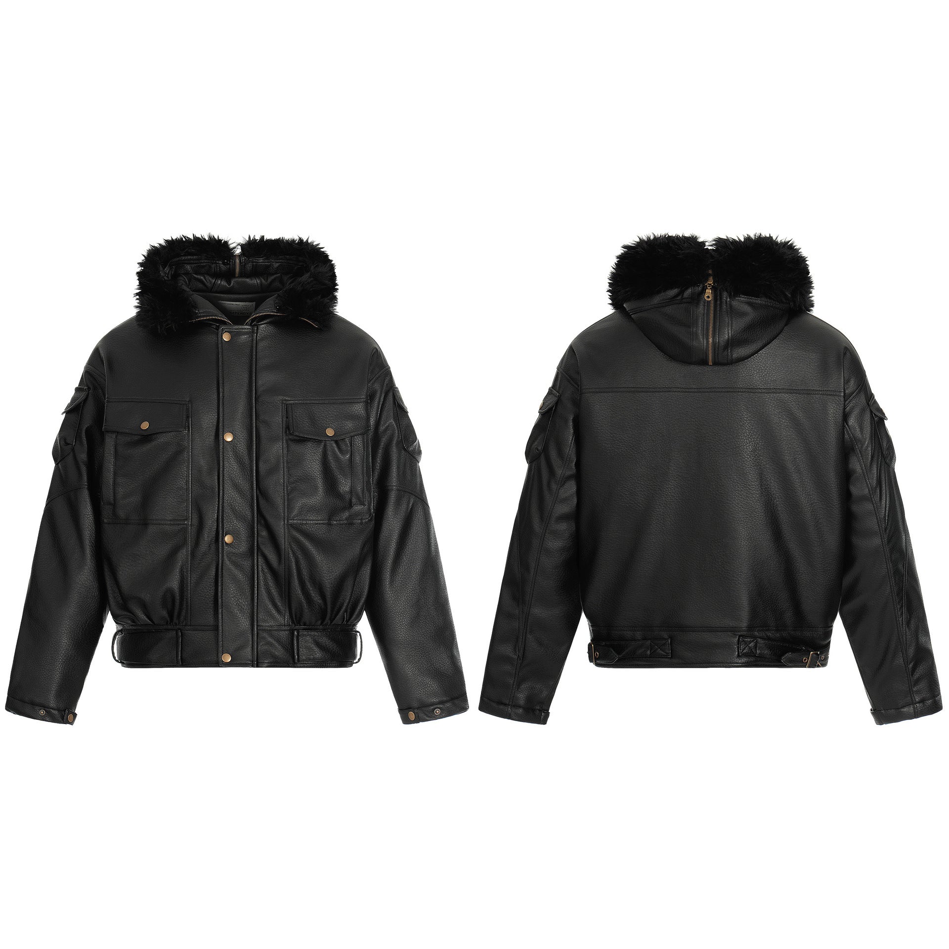 Hooded Fake Fur Collar PU Leather Jacket WN21885