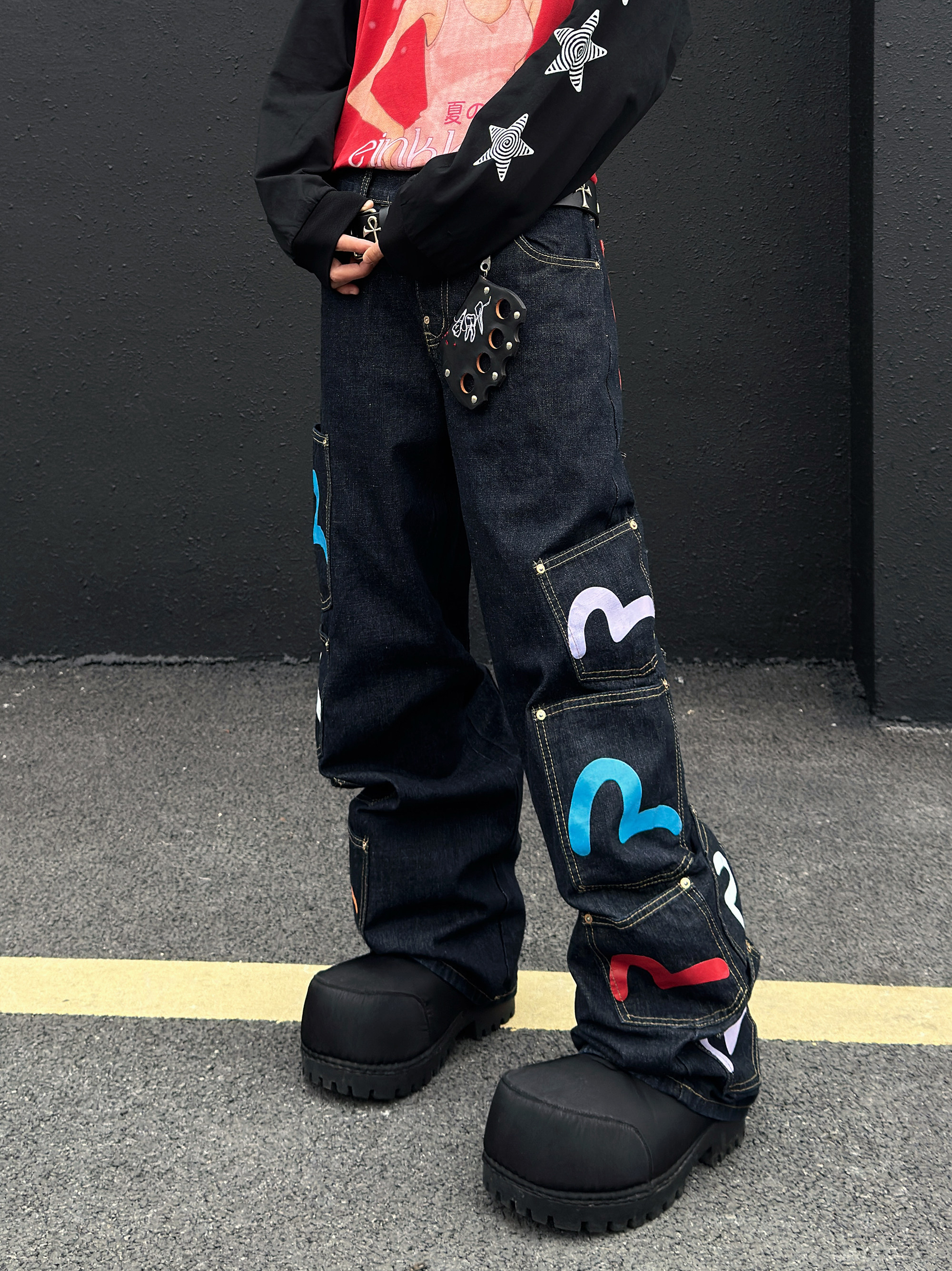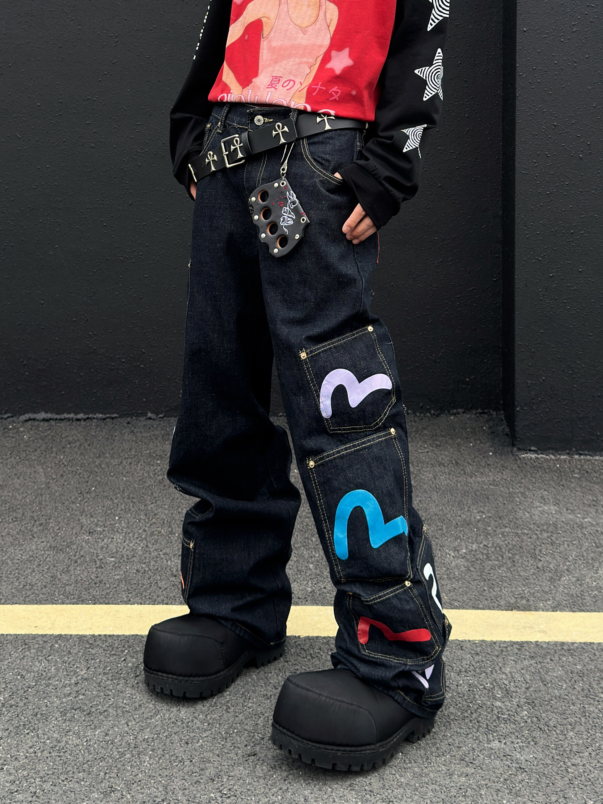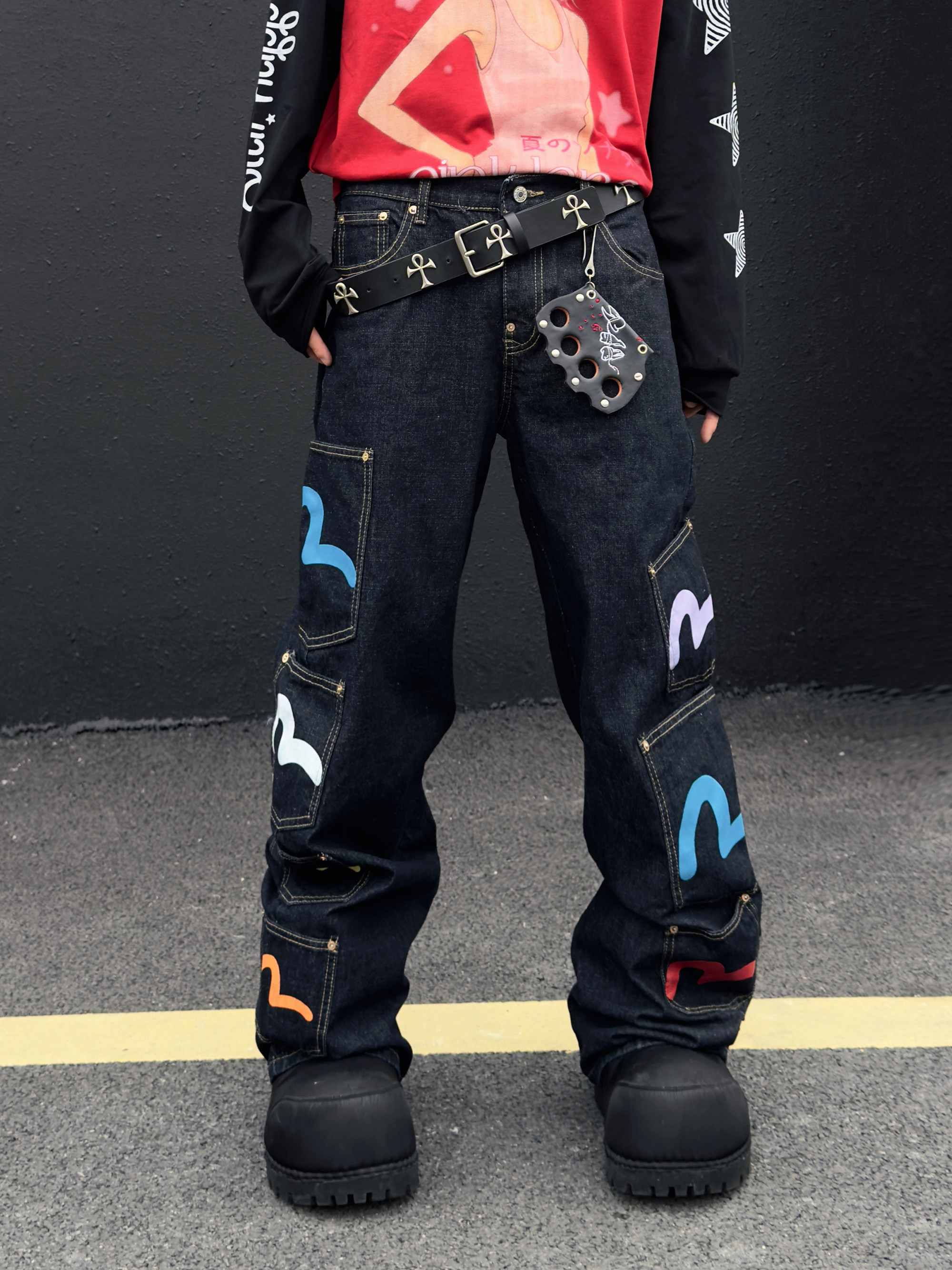 Heavyweight Multi Pocket Wide Leg Denim Jeans WN23025