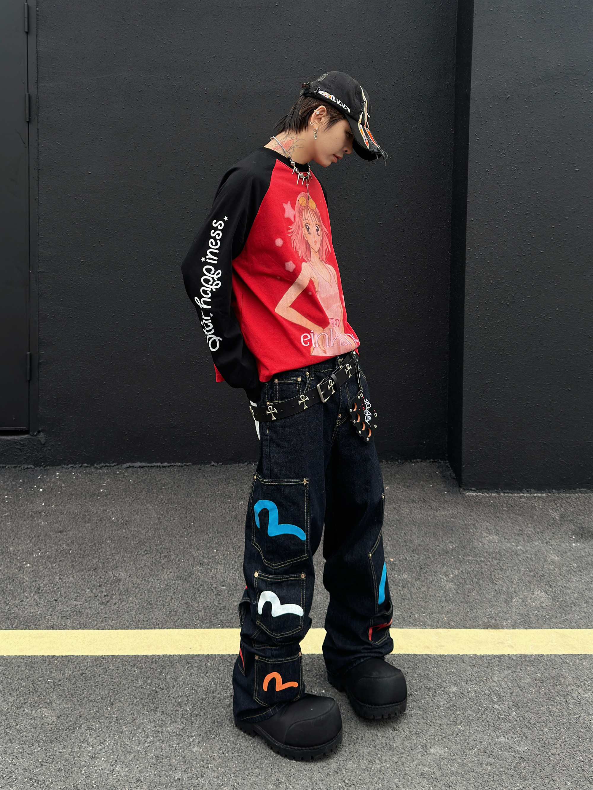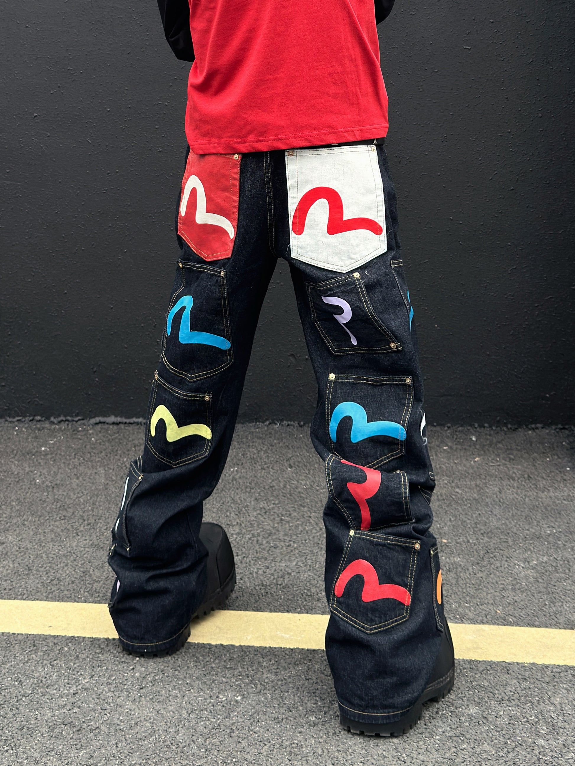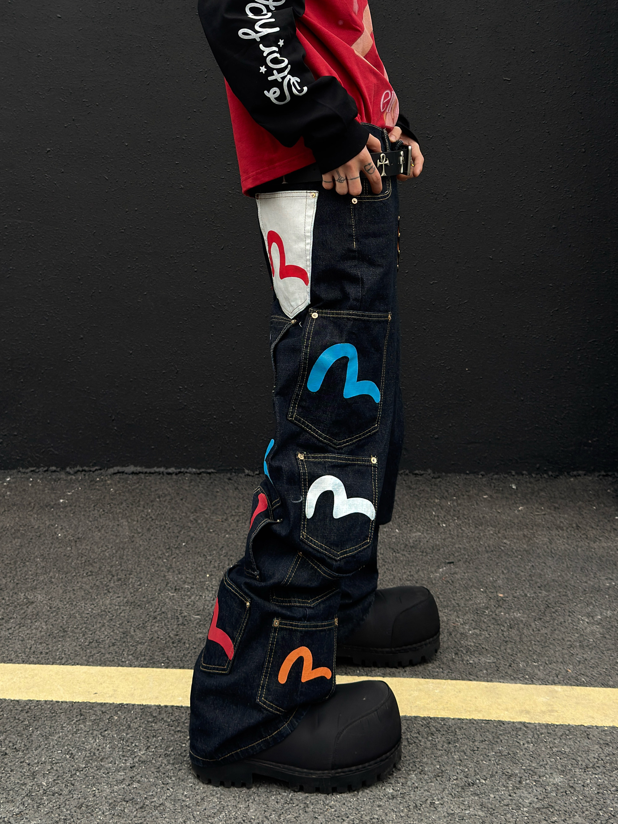 Heavyweight Multi Pocket Wide Leg Denim Jeans WN23025