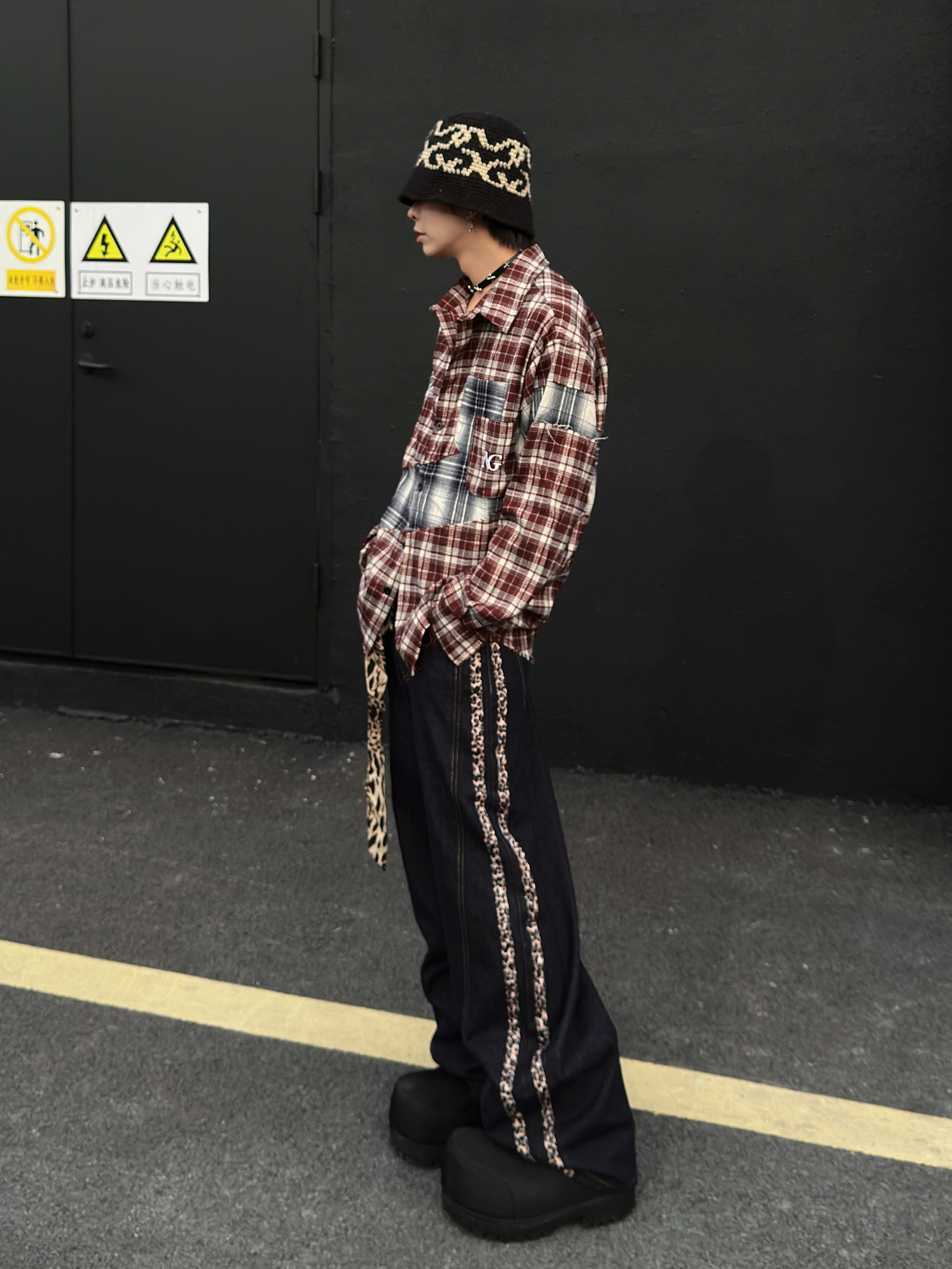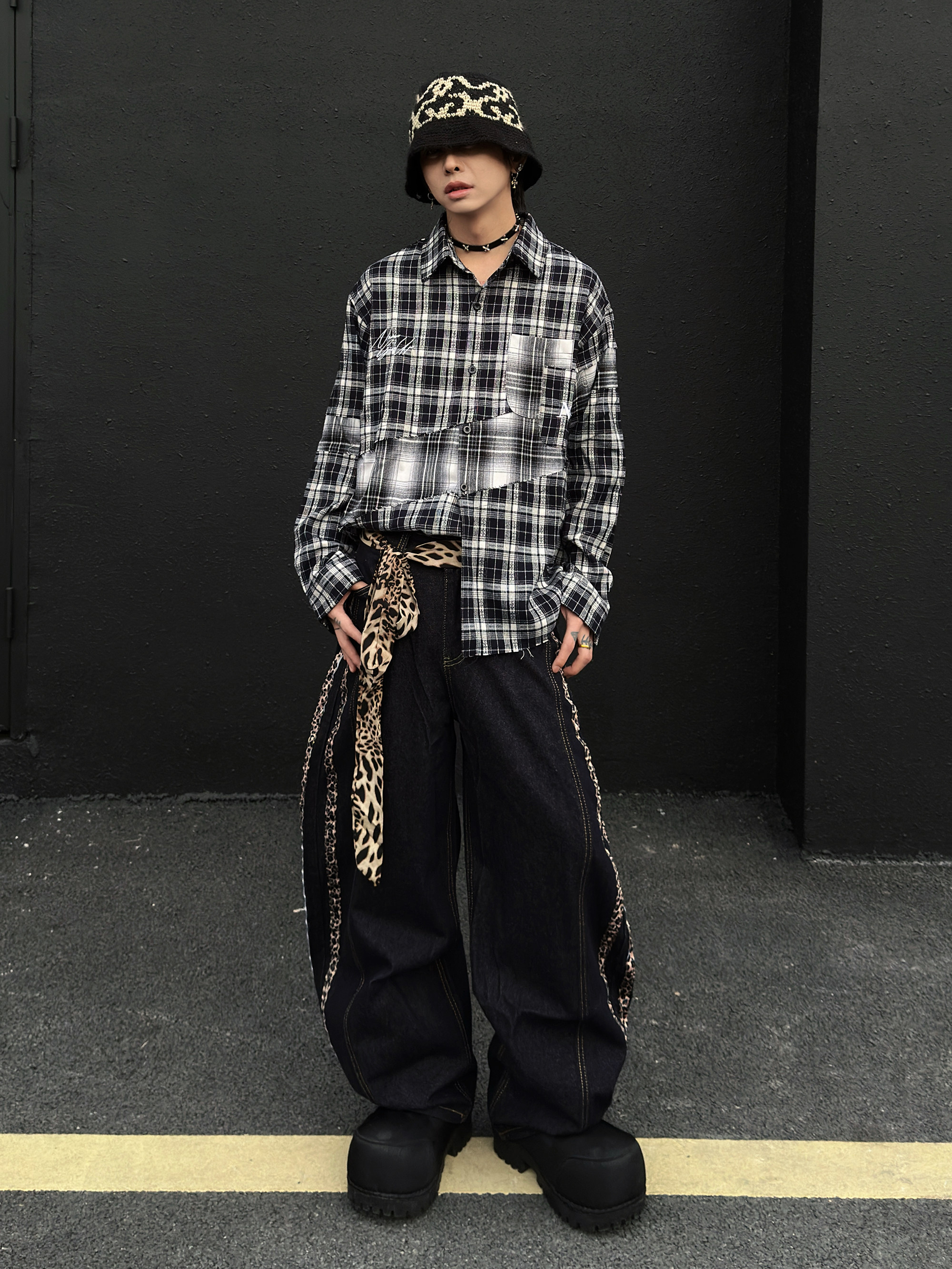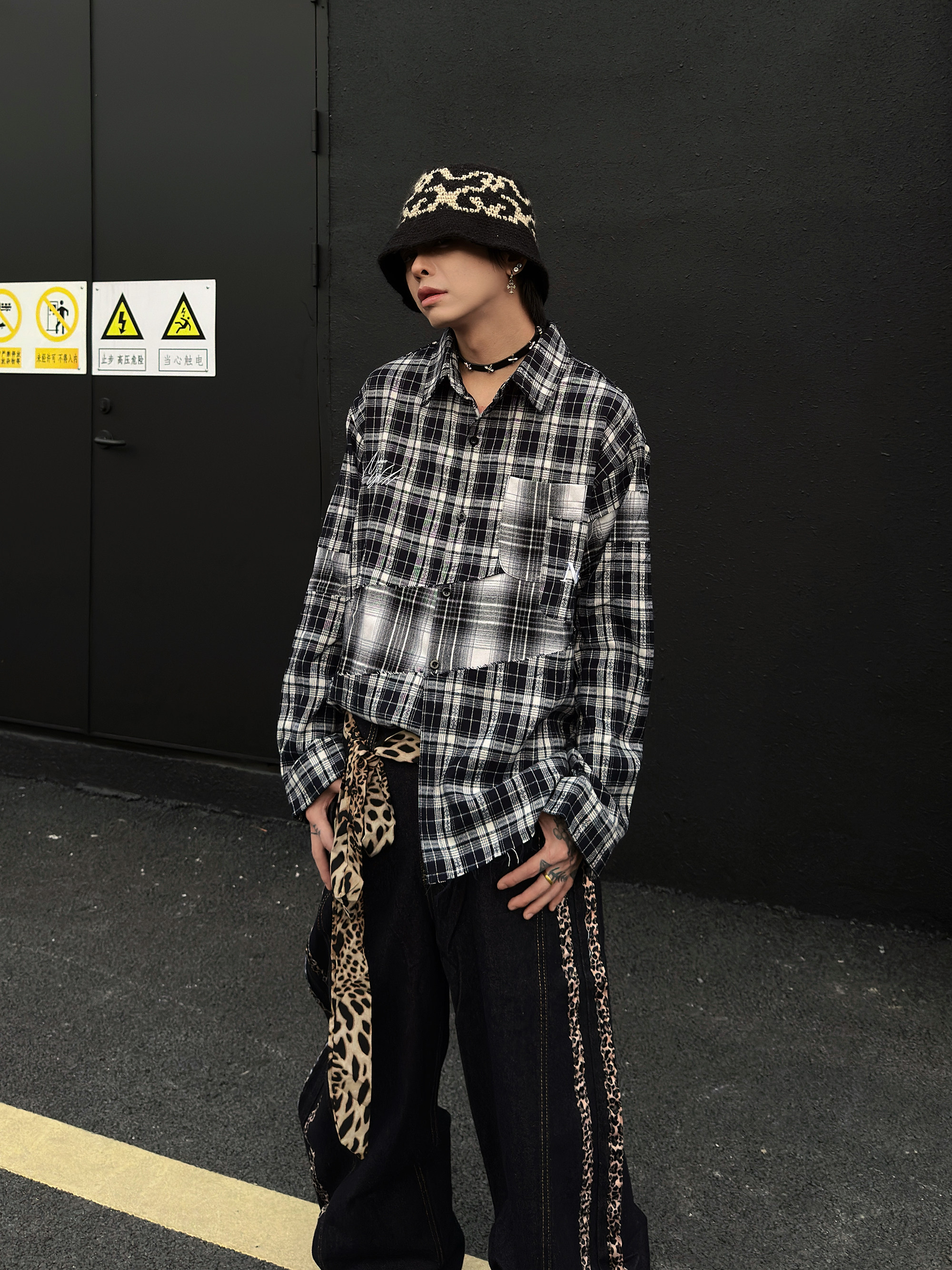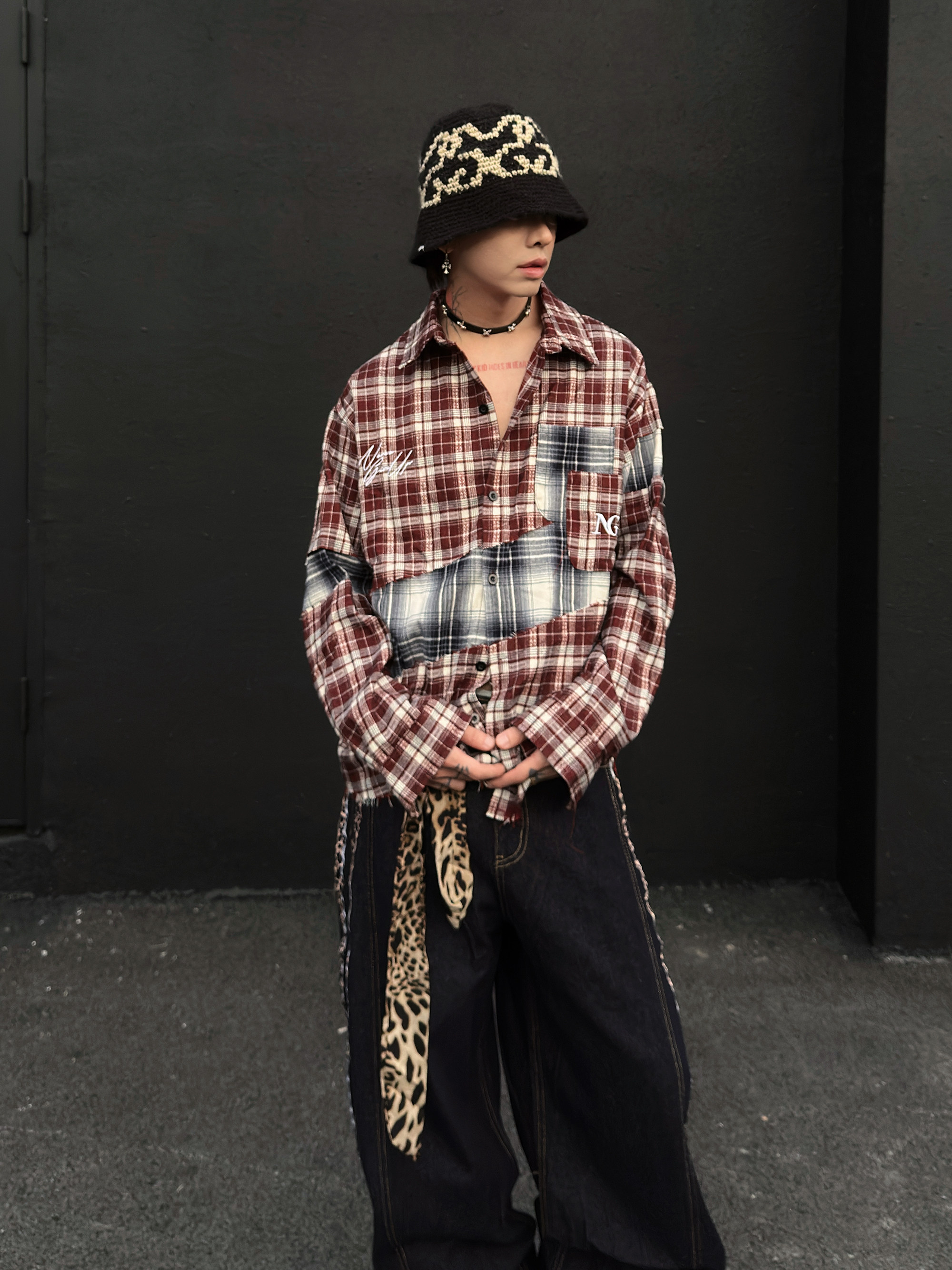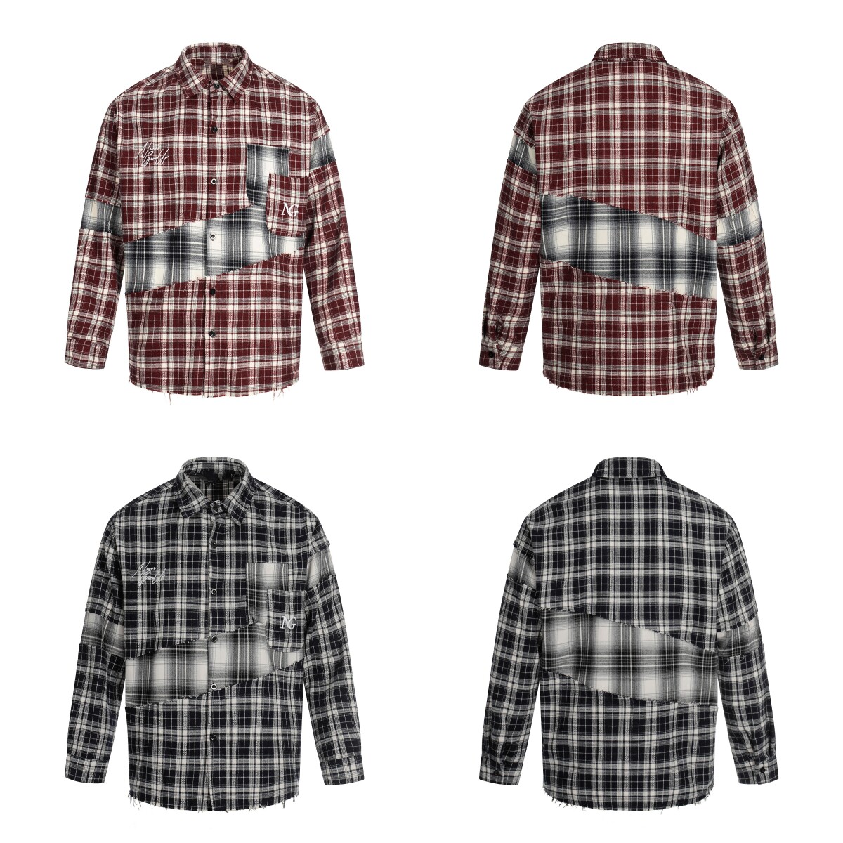 Patchwork Plaid Oversize Long Sleeve Shirt WN23026