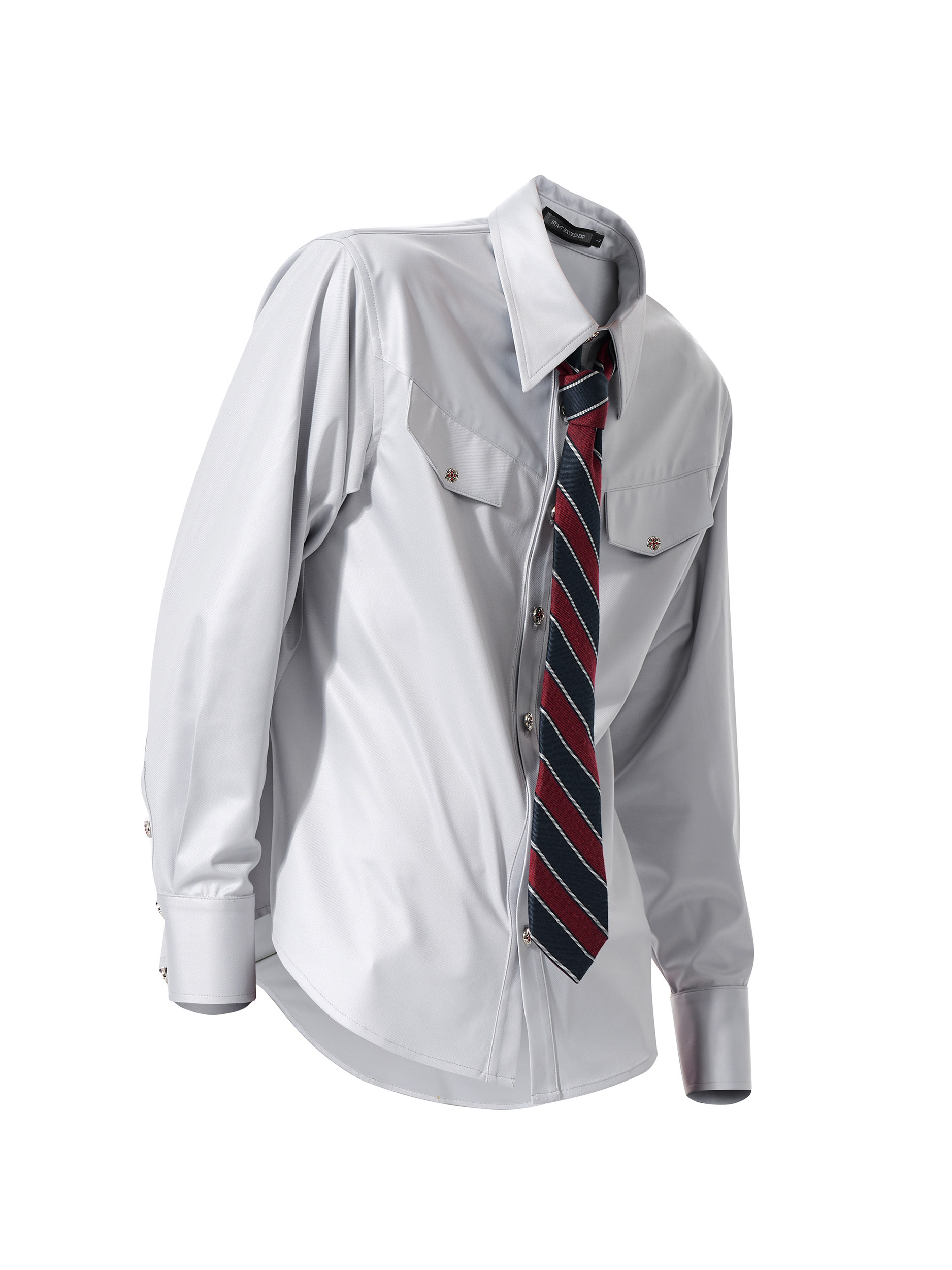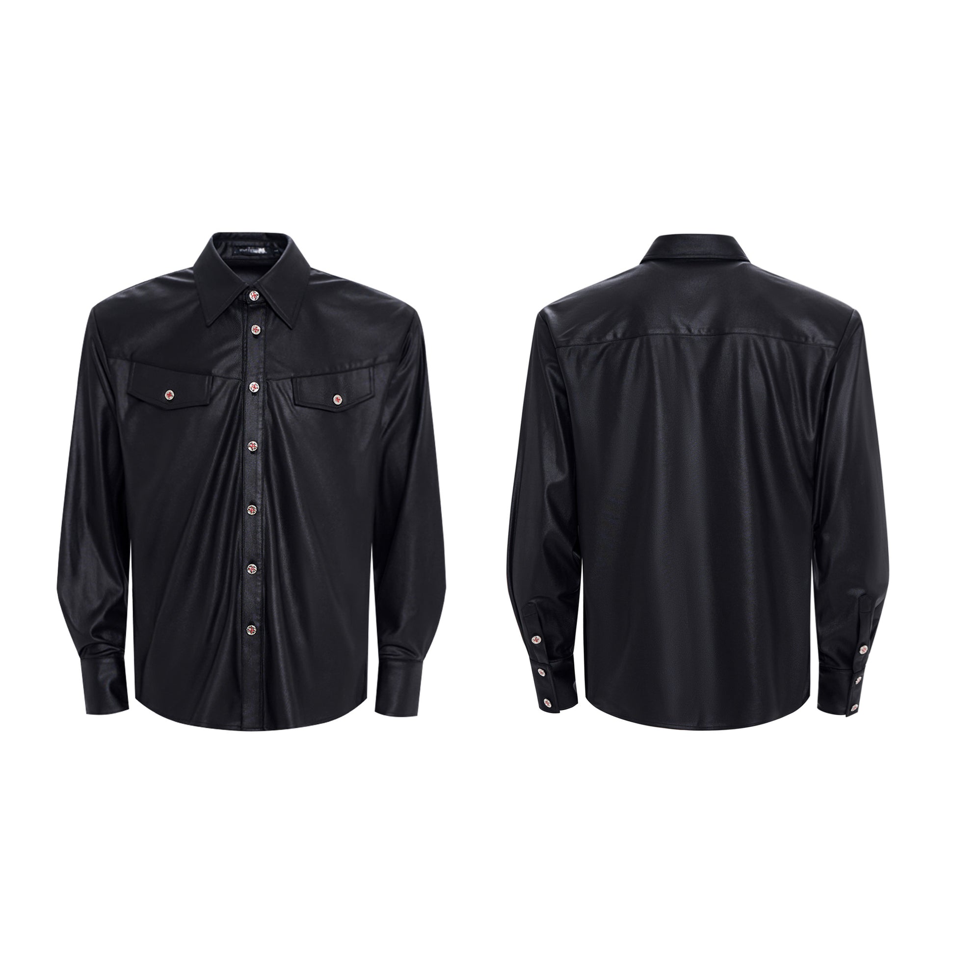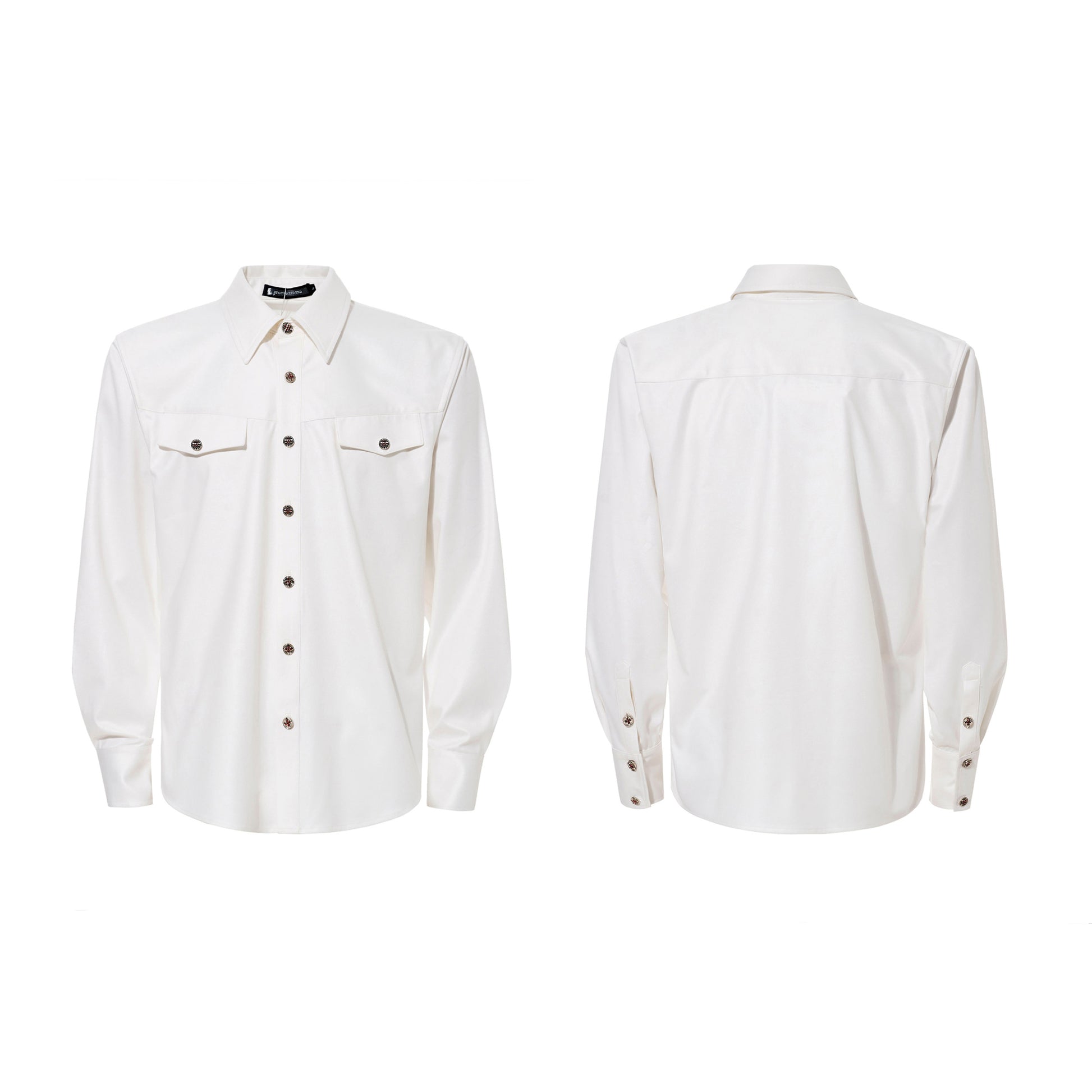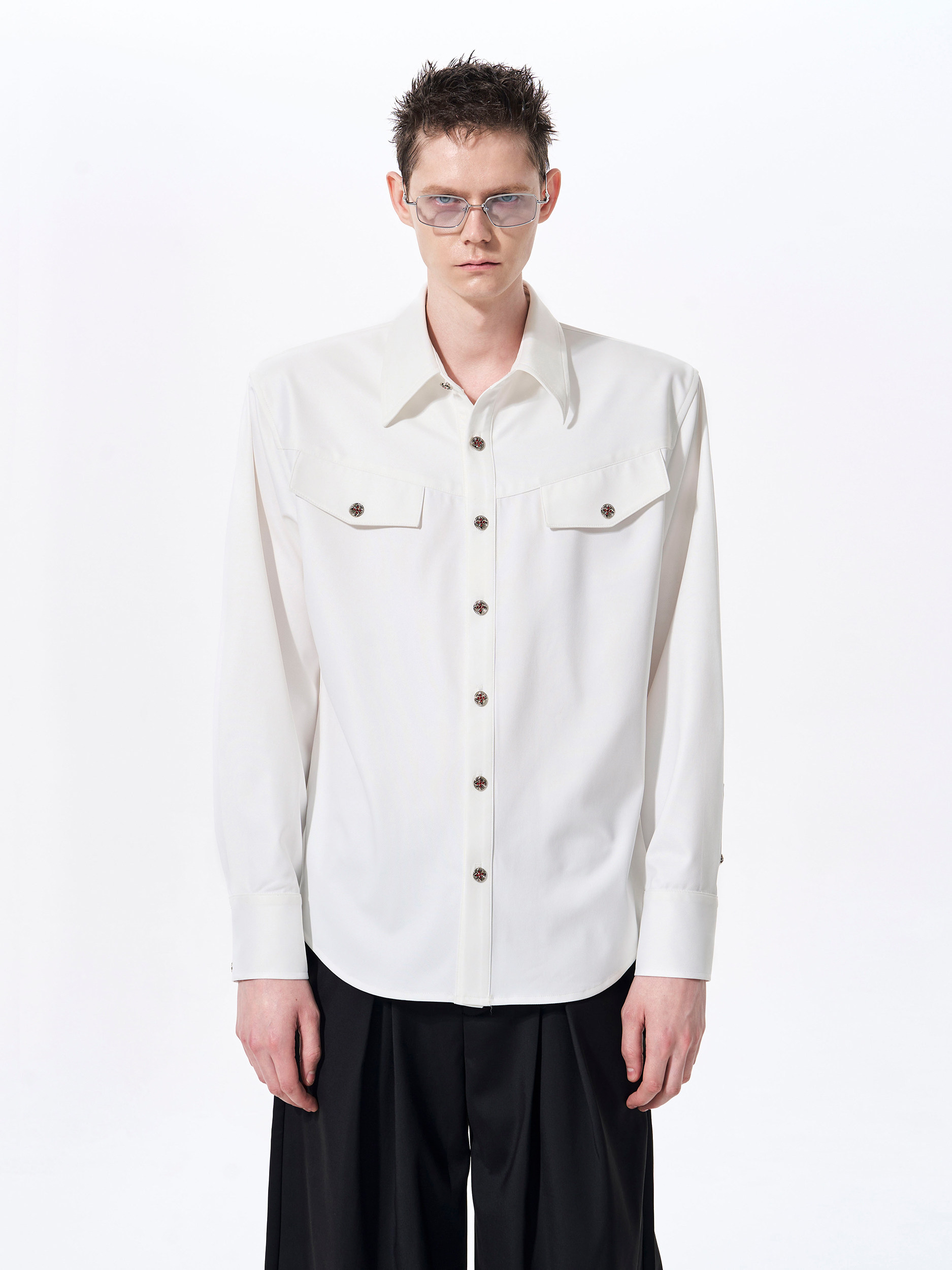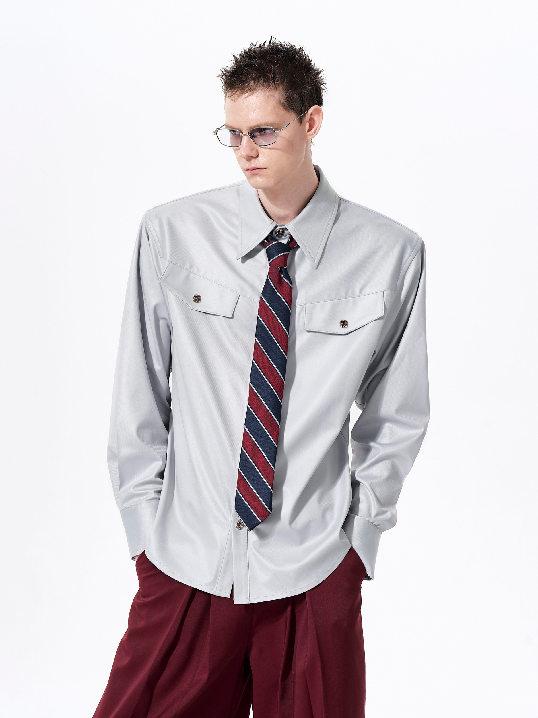 Acetate Texture Shoulder-Pad Long Sleeve Shirt WN23288