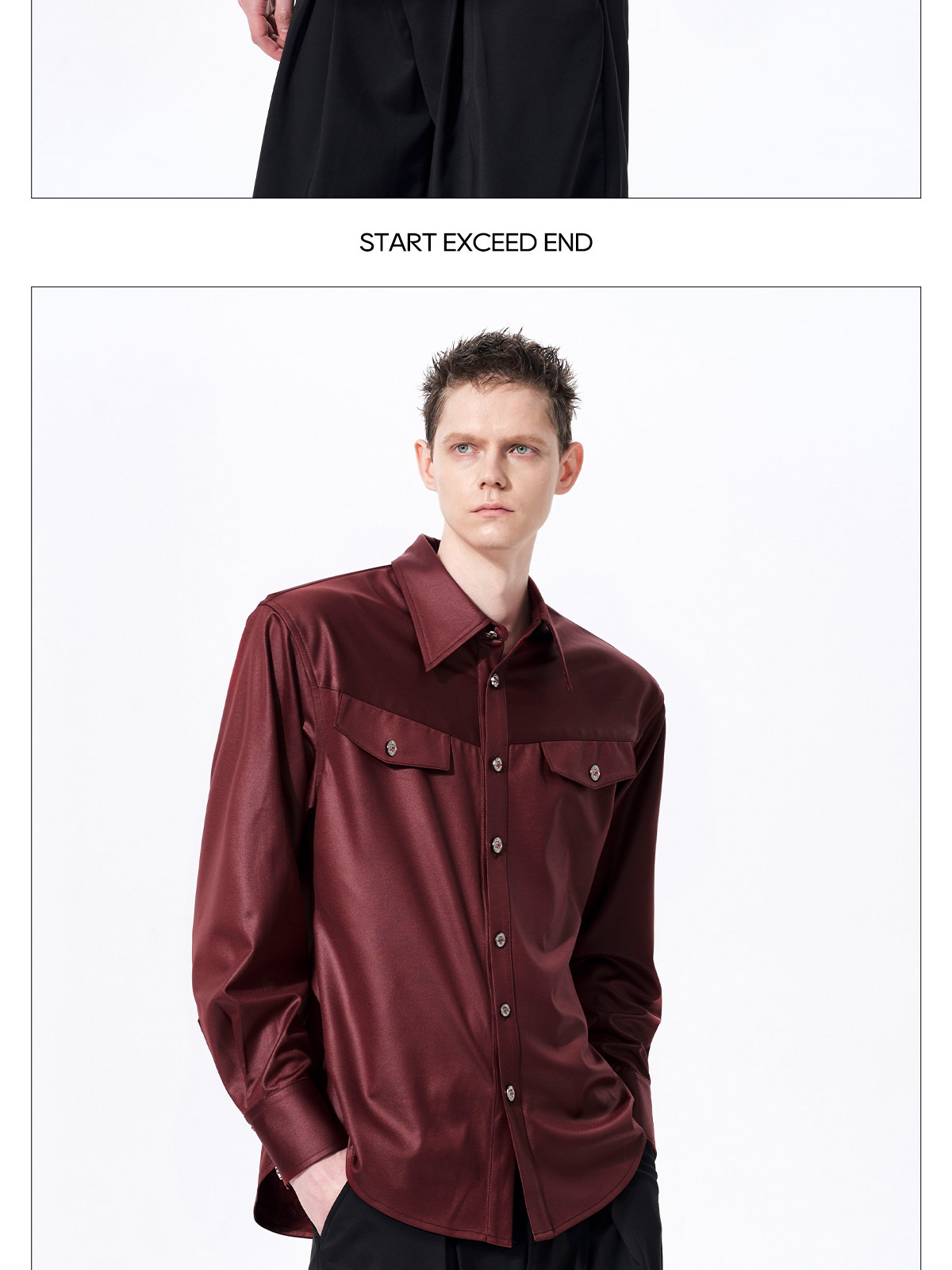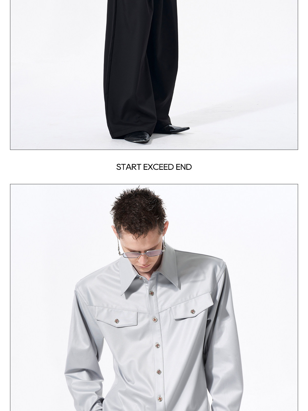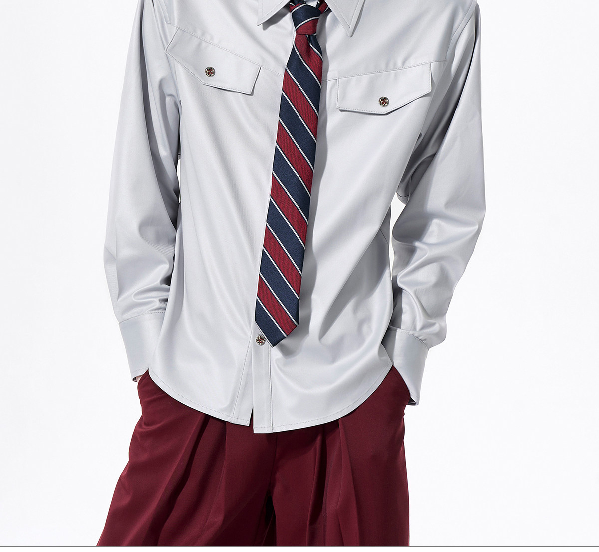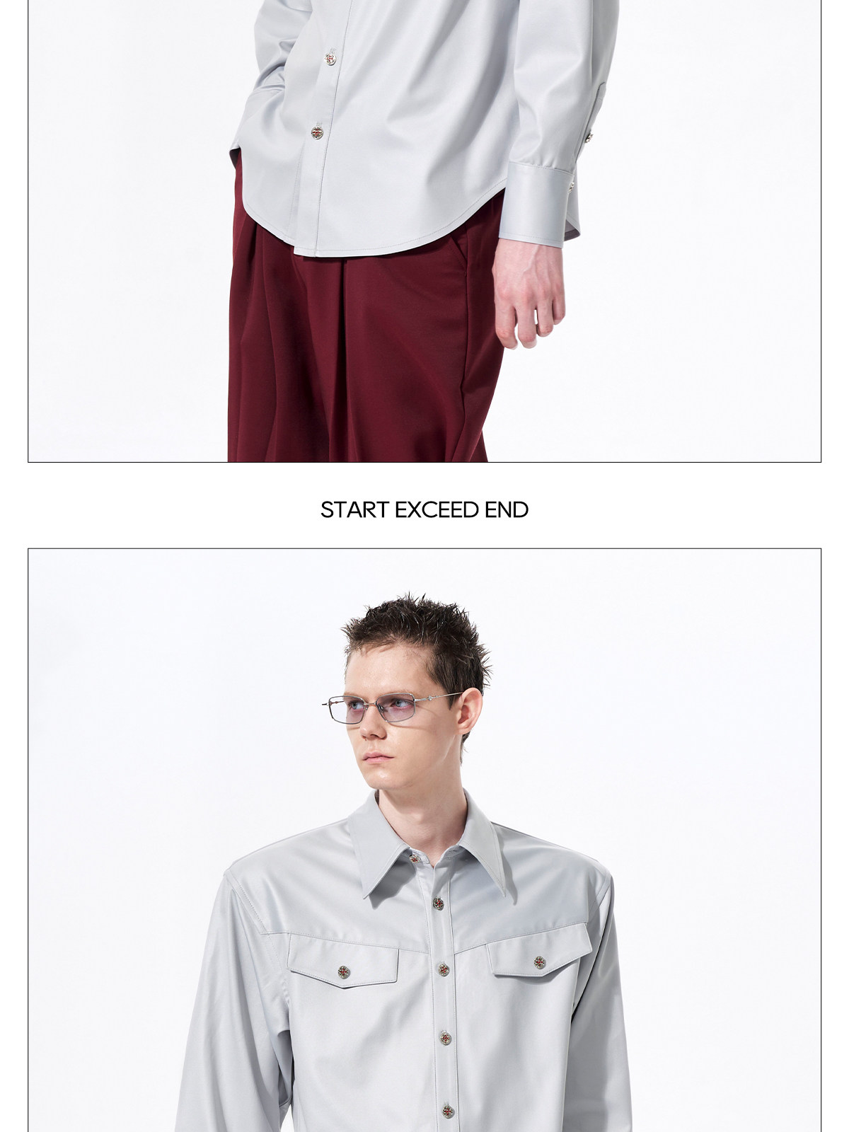 Acetate Texture Shoulder-Pad Long Sleeve Shirt WN23288