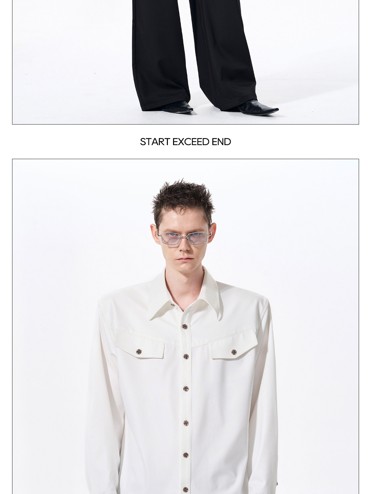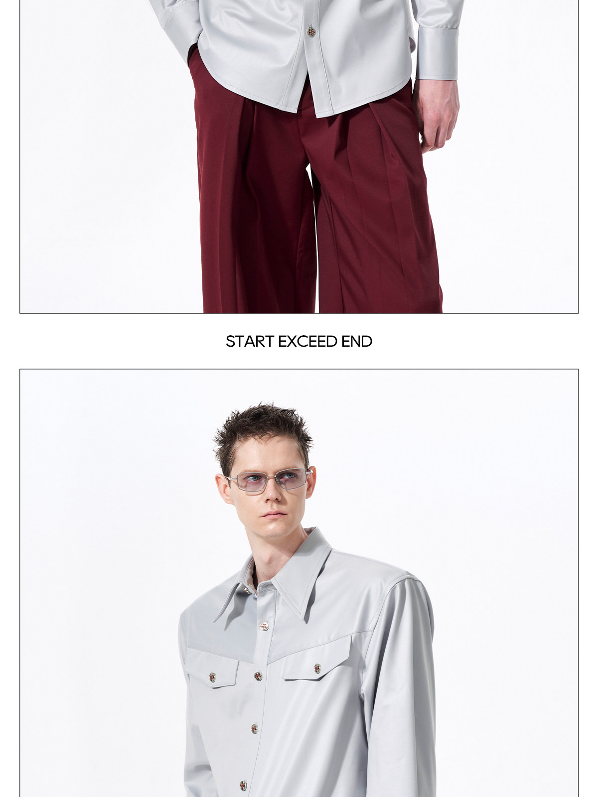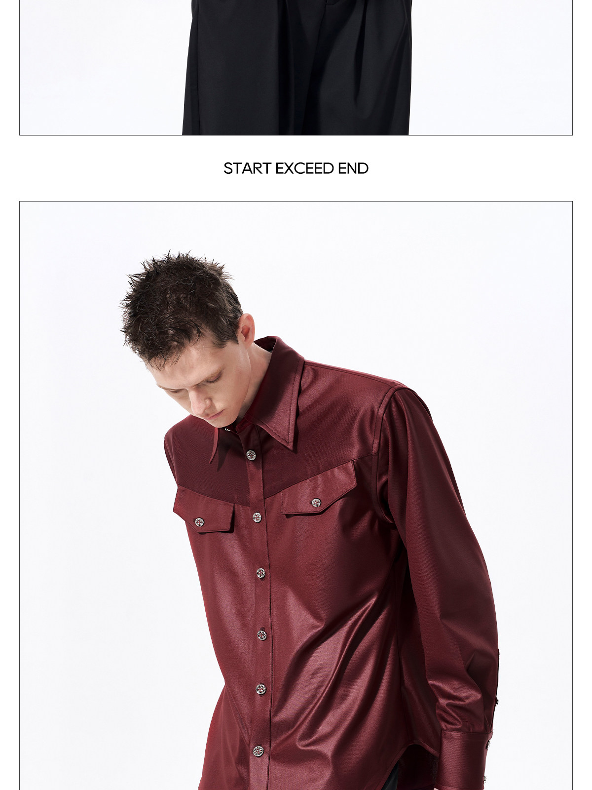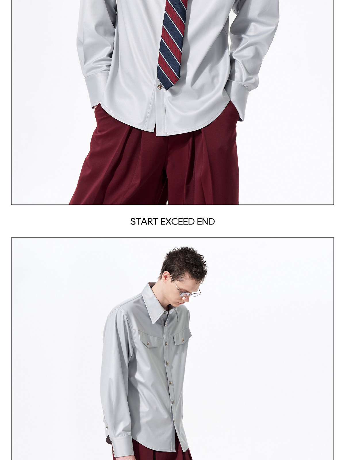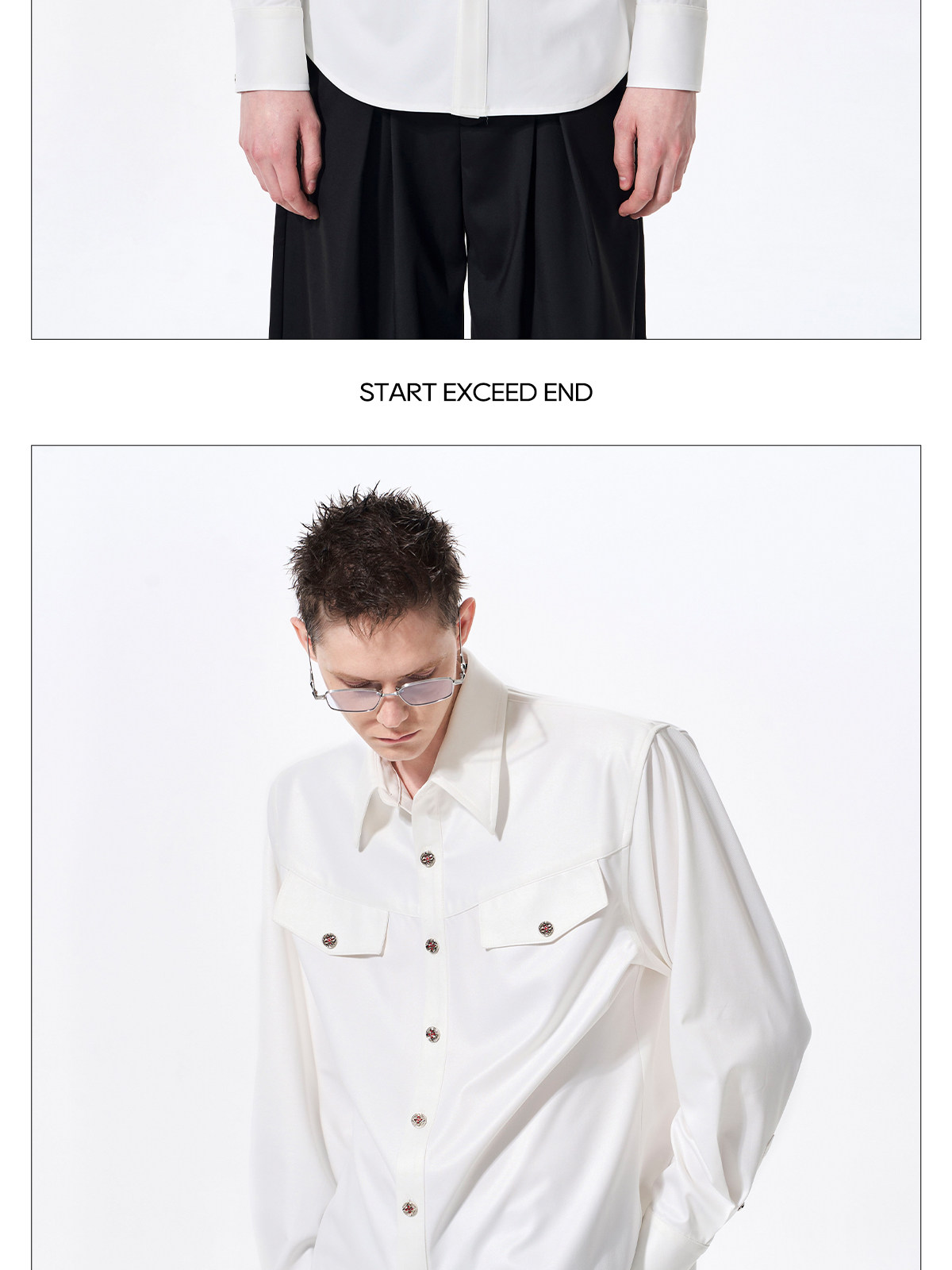 Acetate Texture Shoulder-Pad Long Sleeve Shirt WN23288
