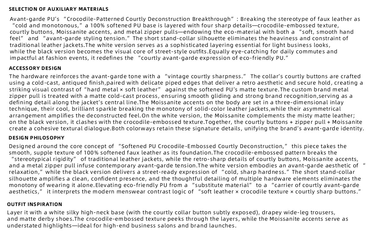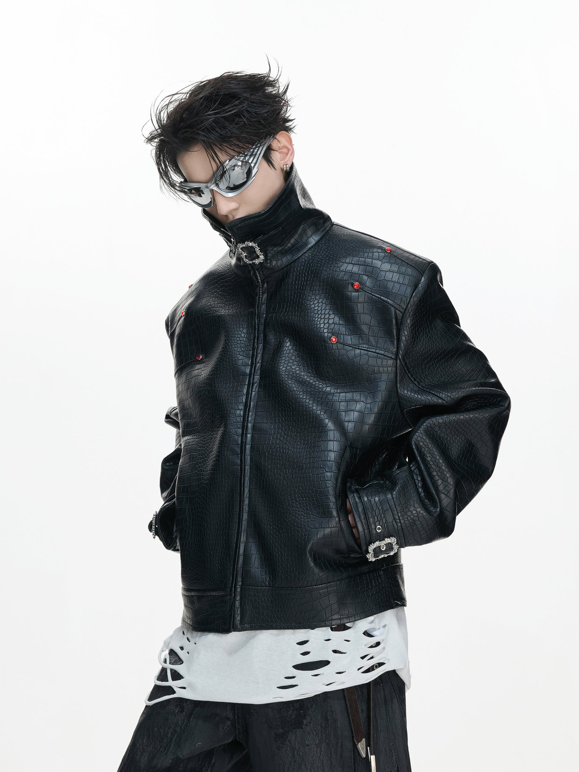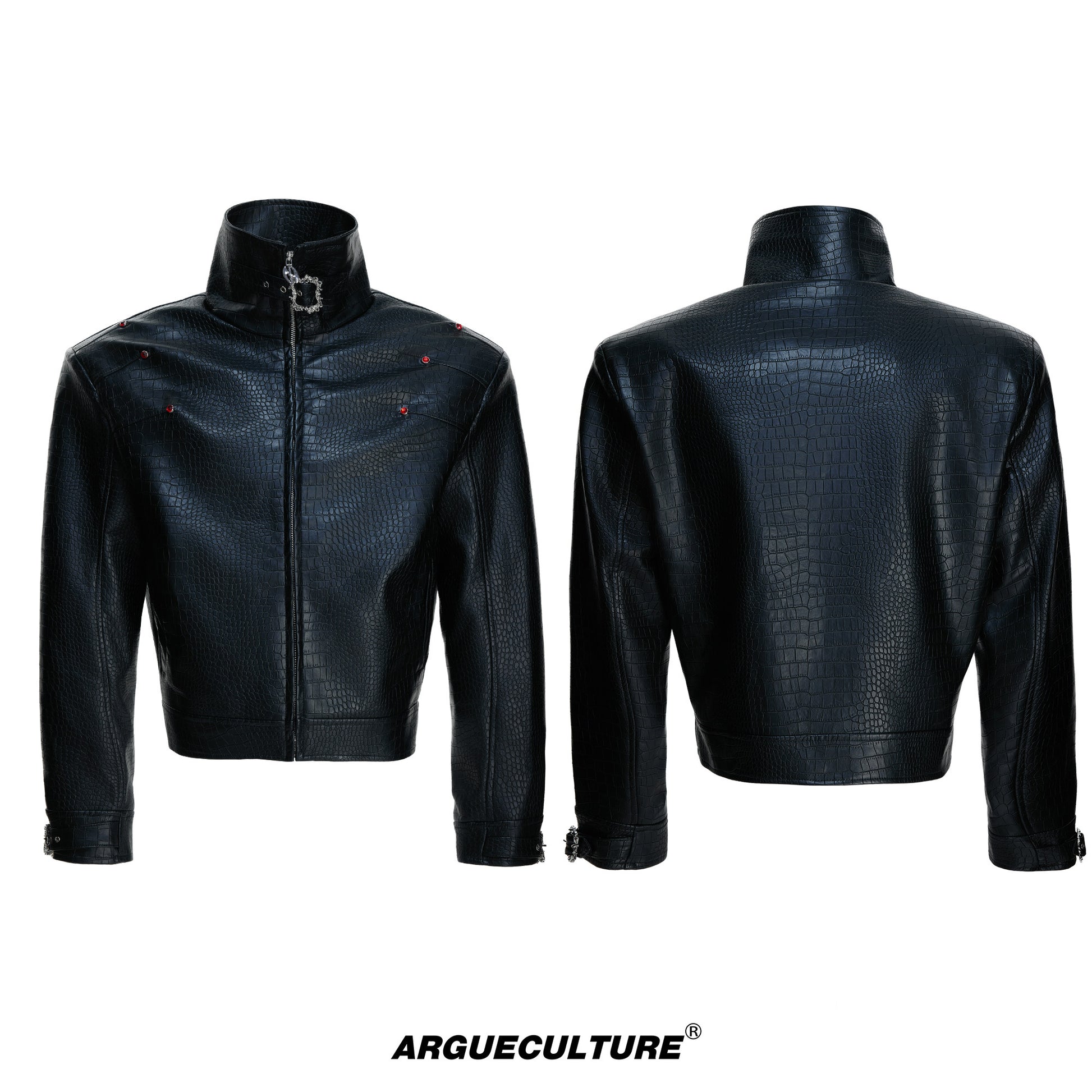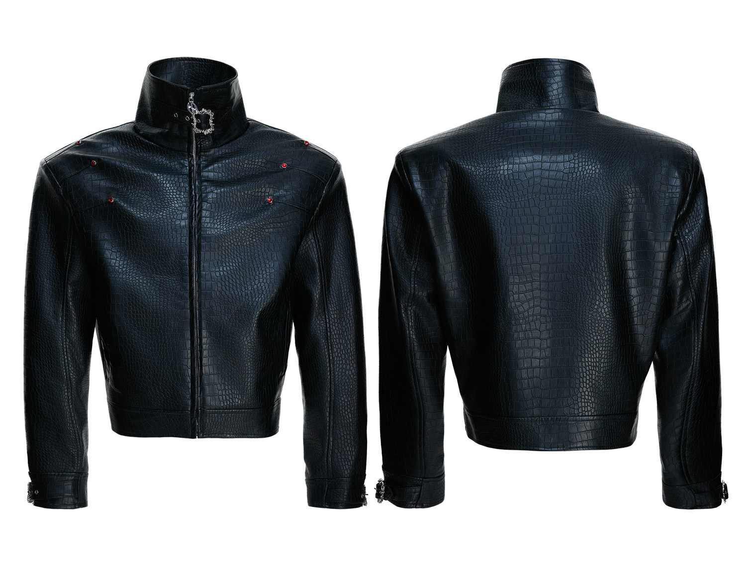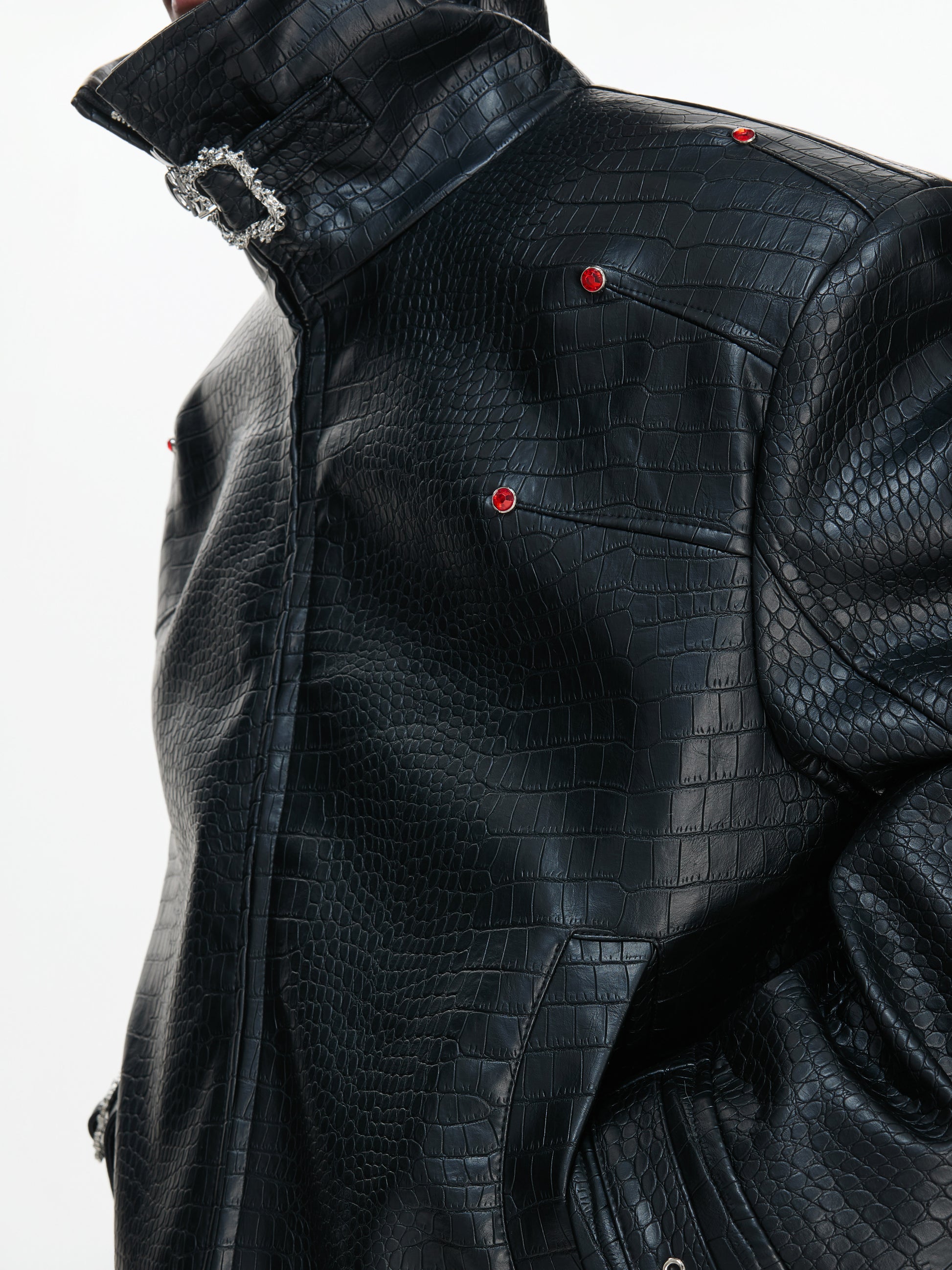 Crocodile Texture Stand Neck Palace Button Short Jacket WN23307