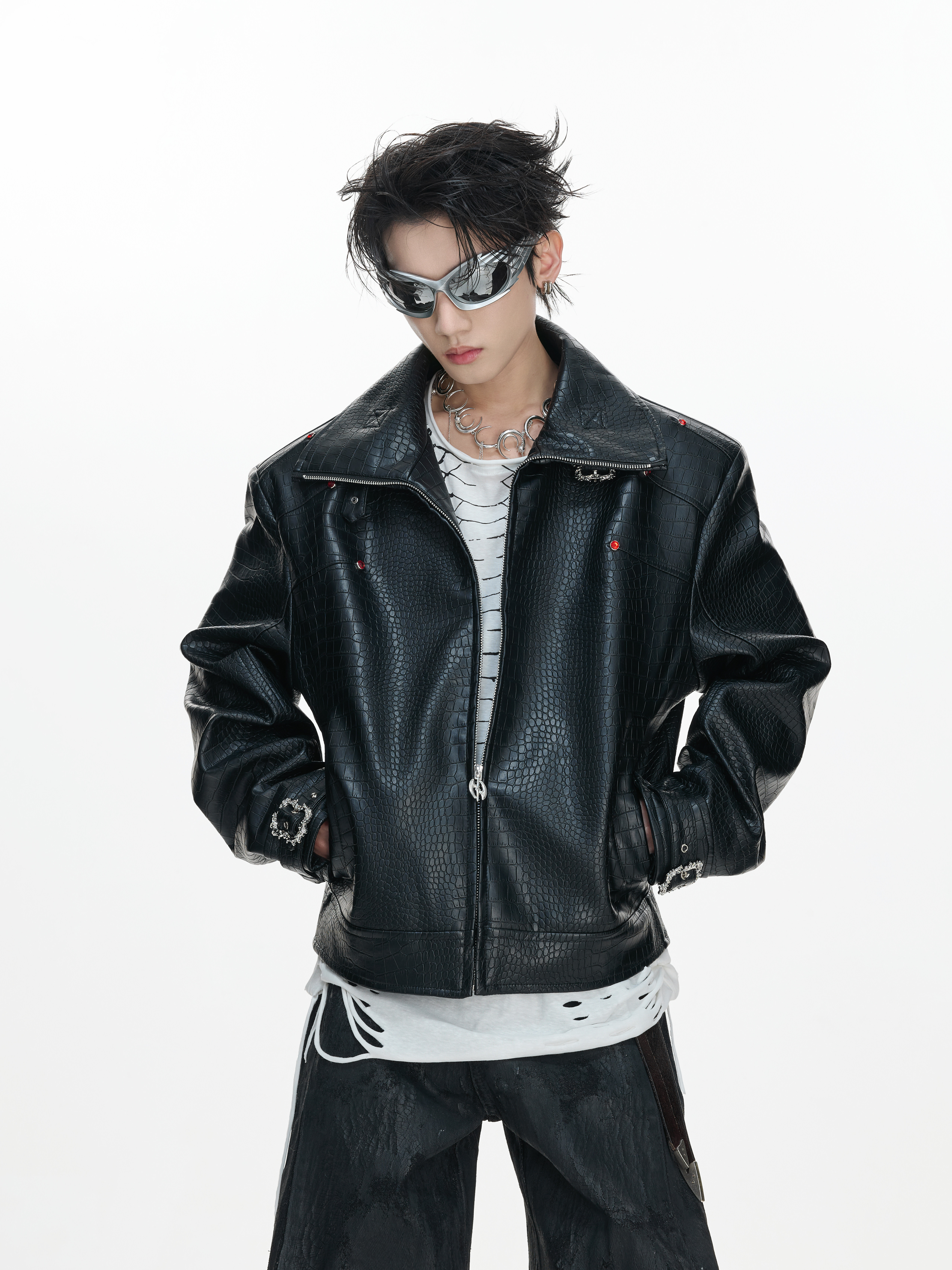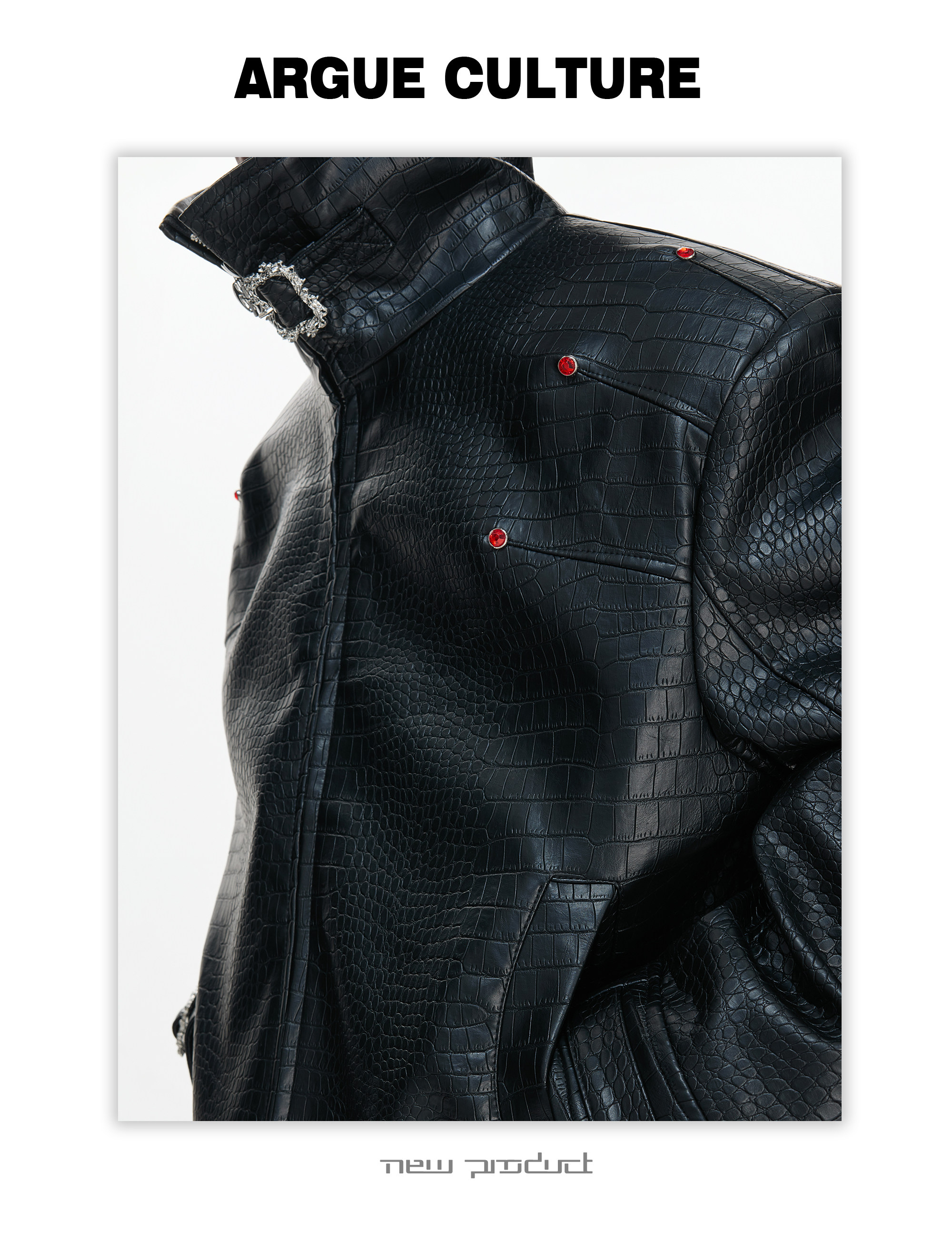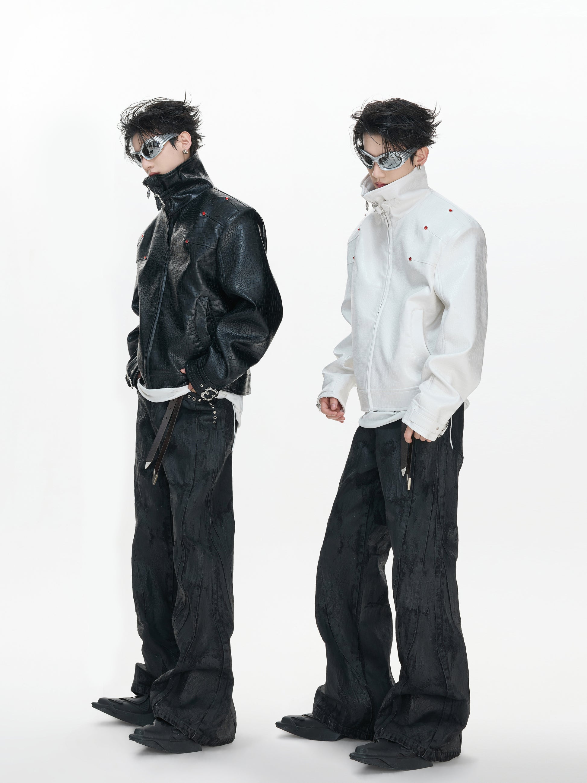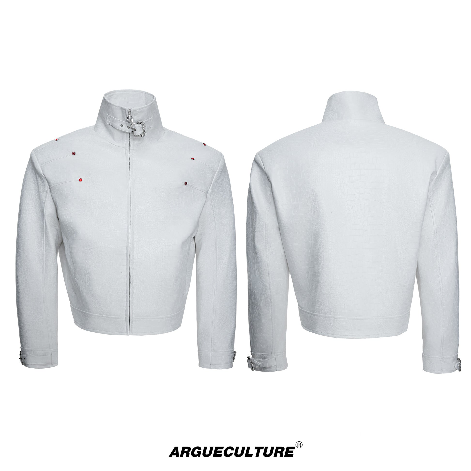 Crocodile Texture Stand Neck Palace Button Short Jacket WN23307