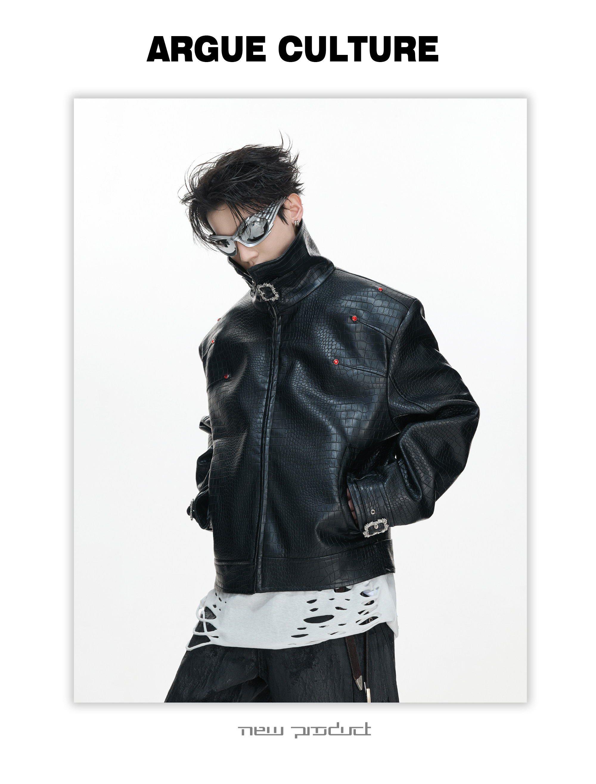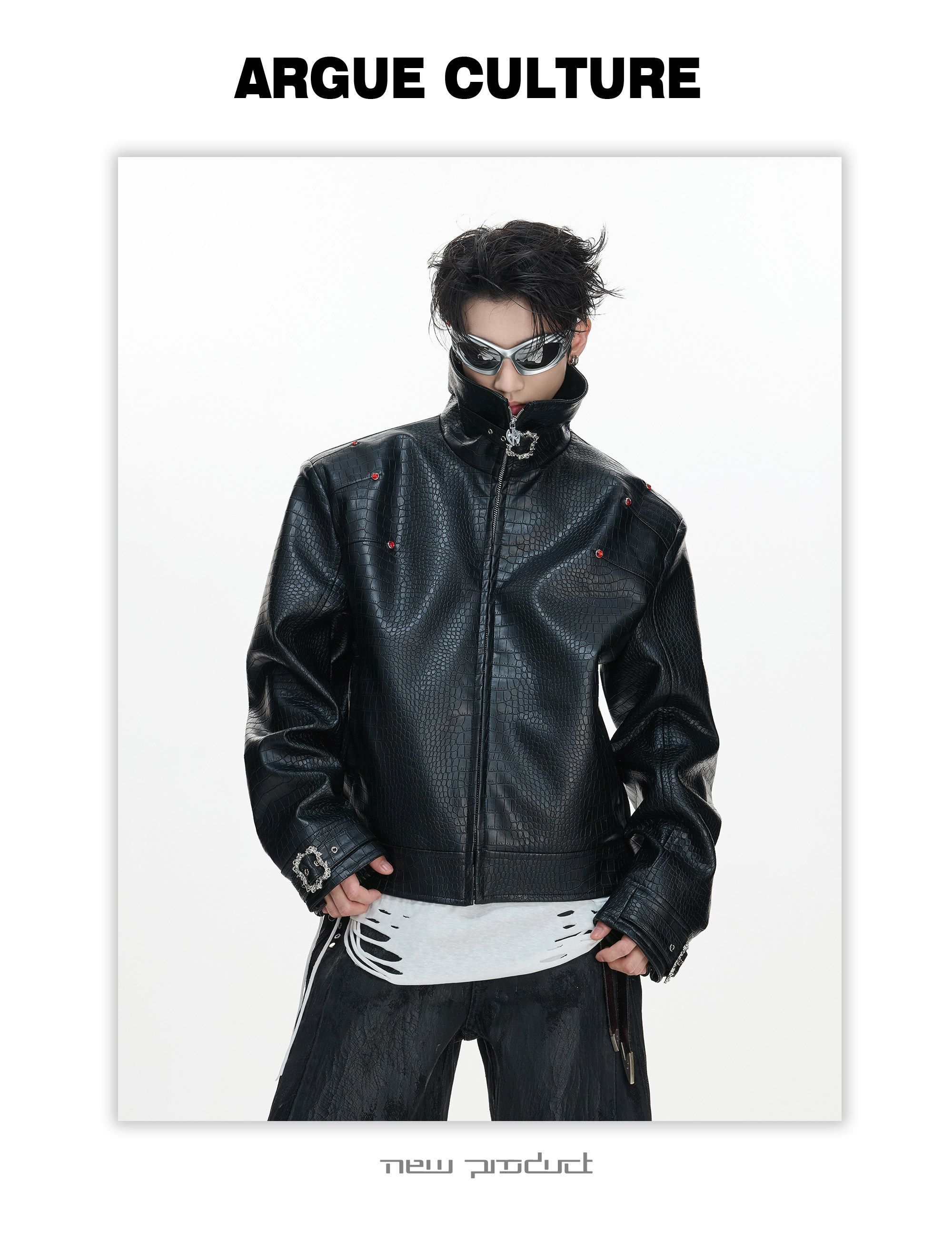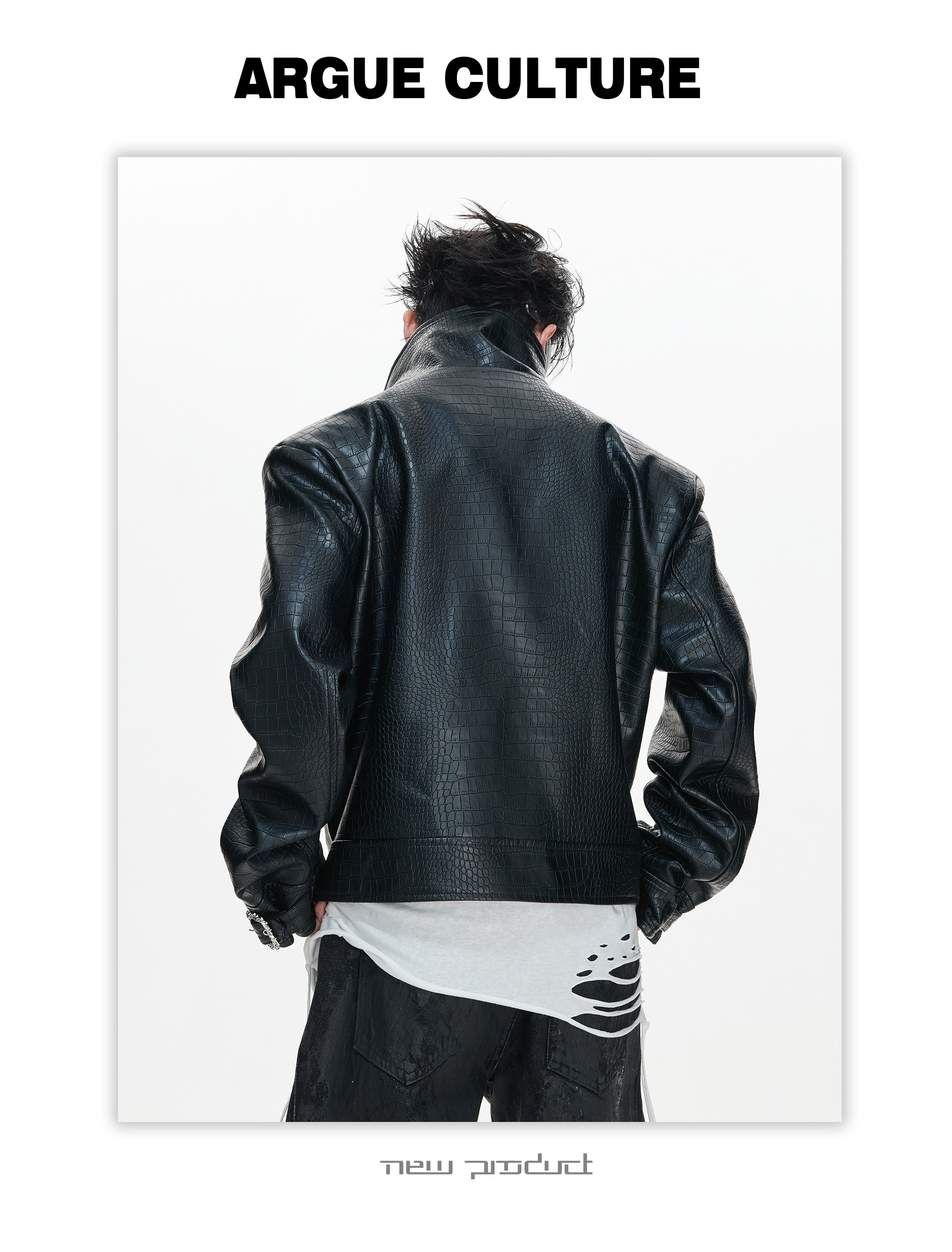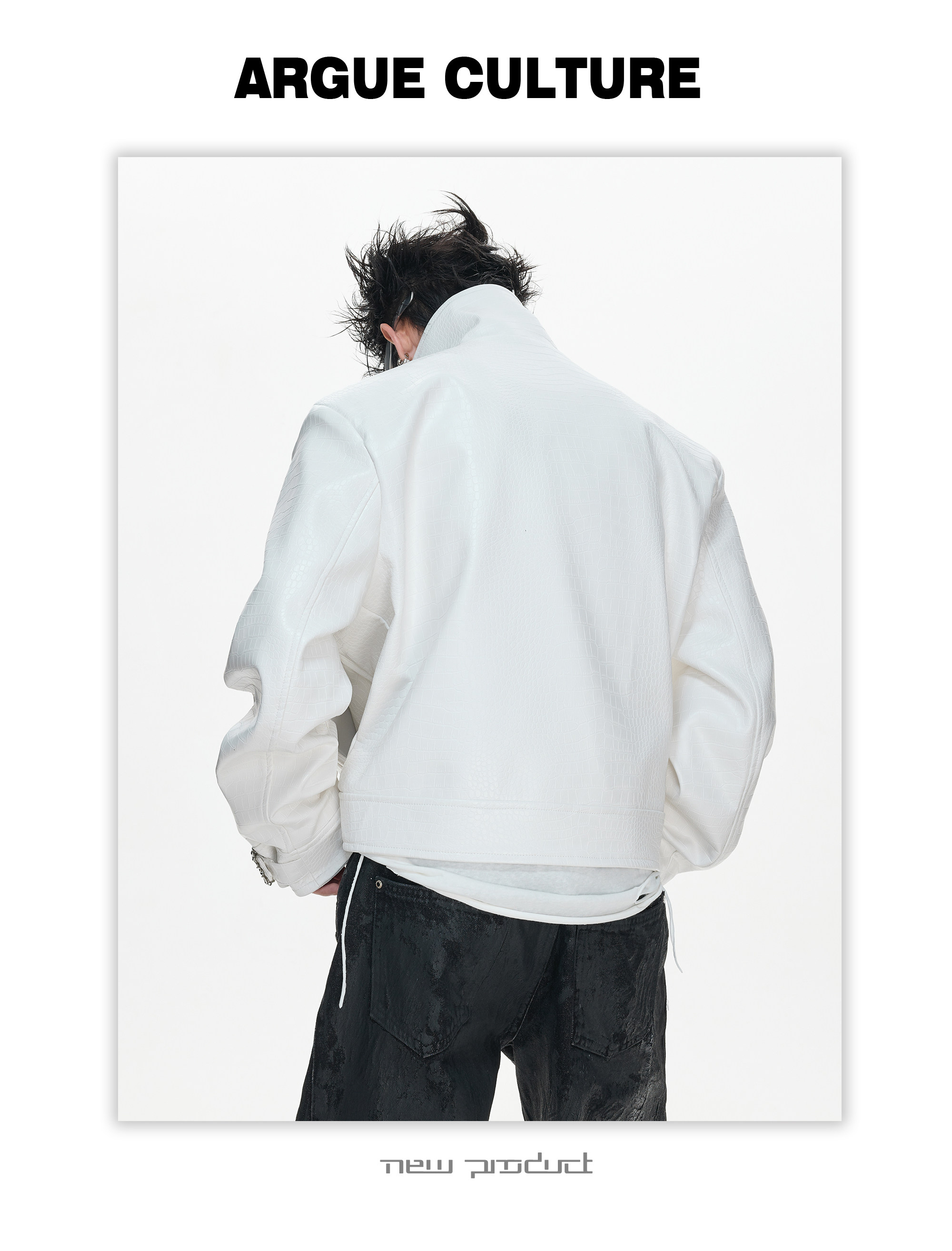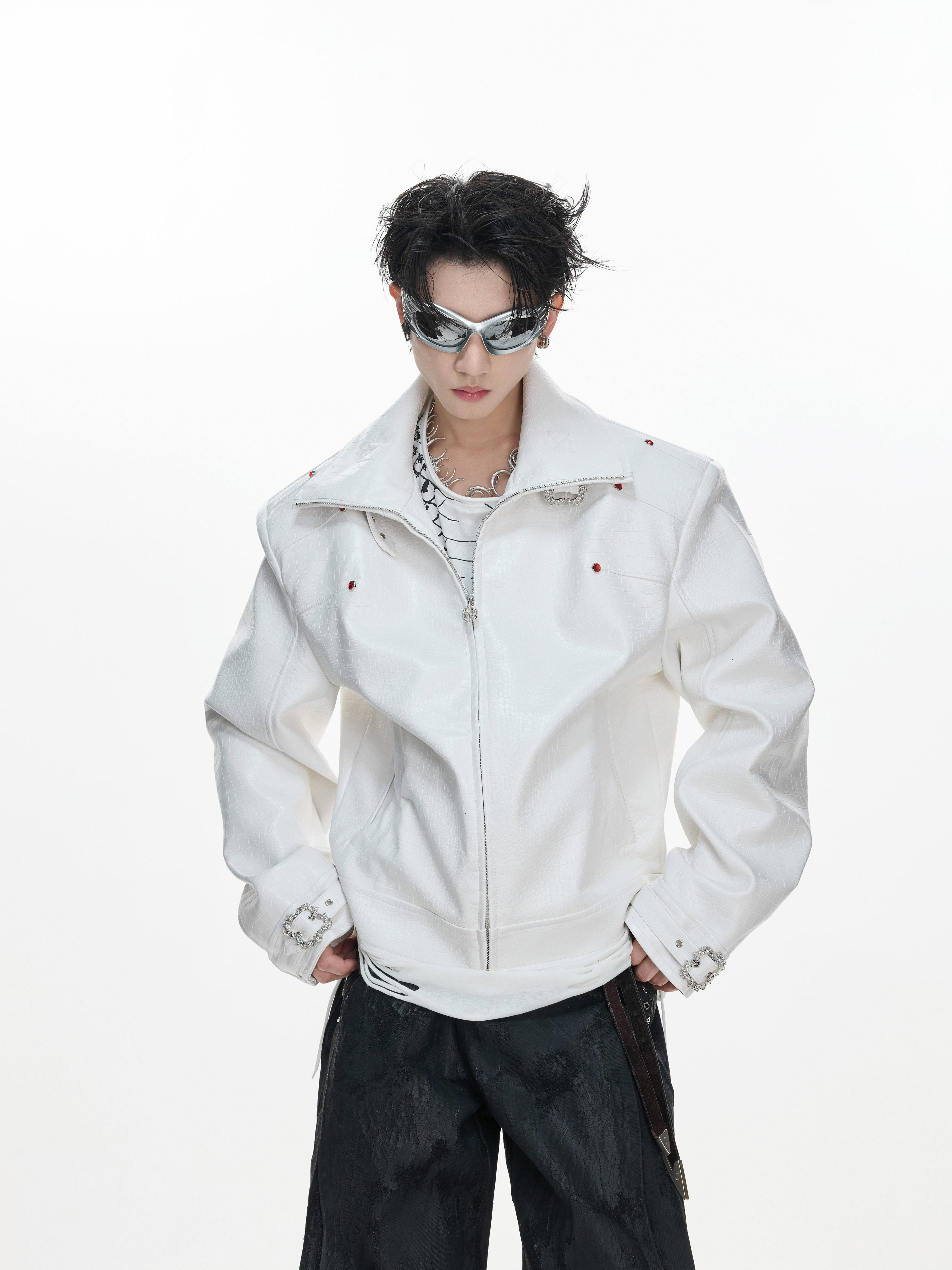 Crocodile Texture Stand Neck Palace Button Short Jacket WN23307