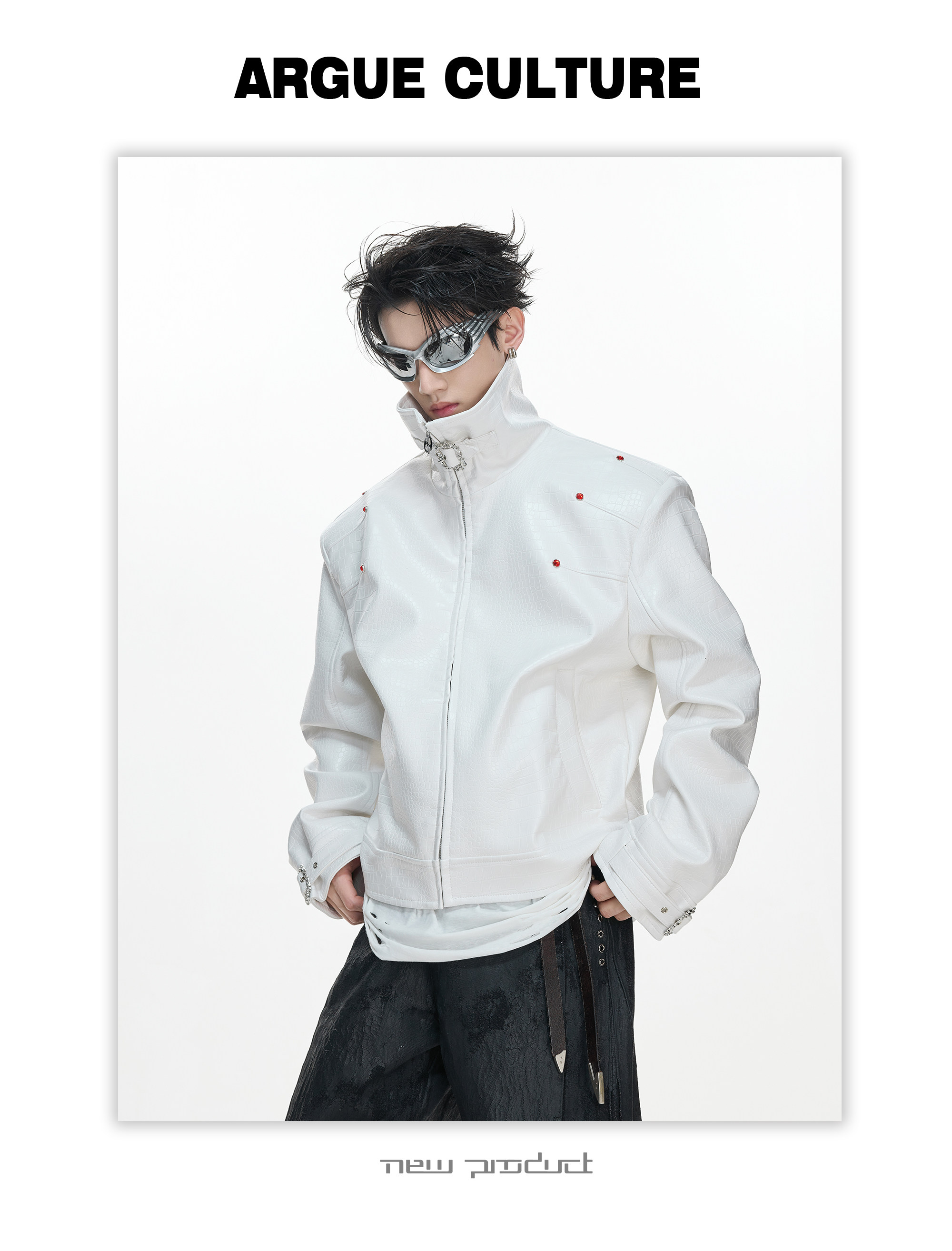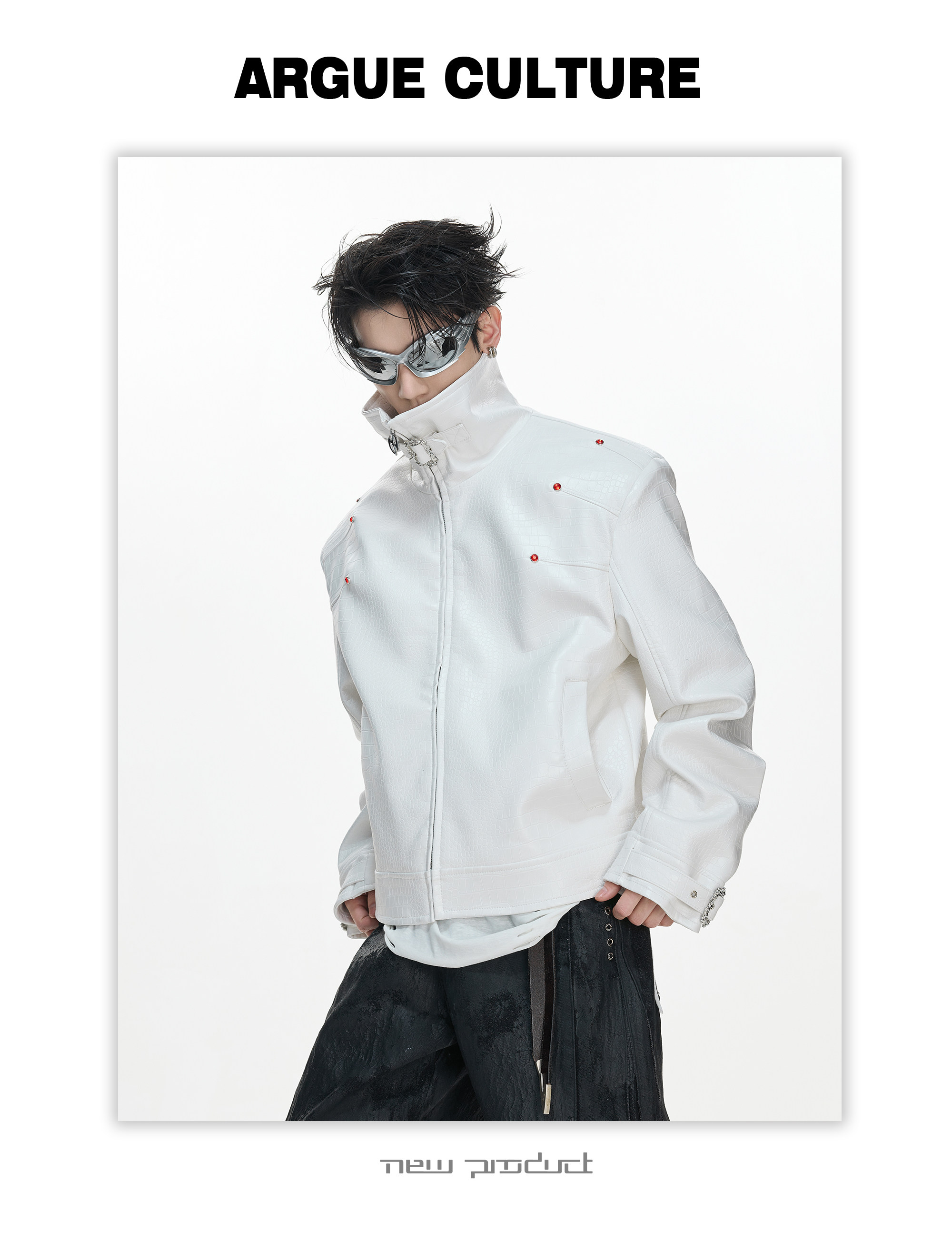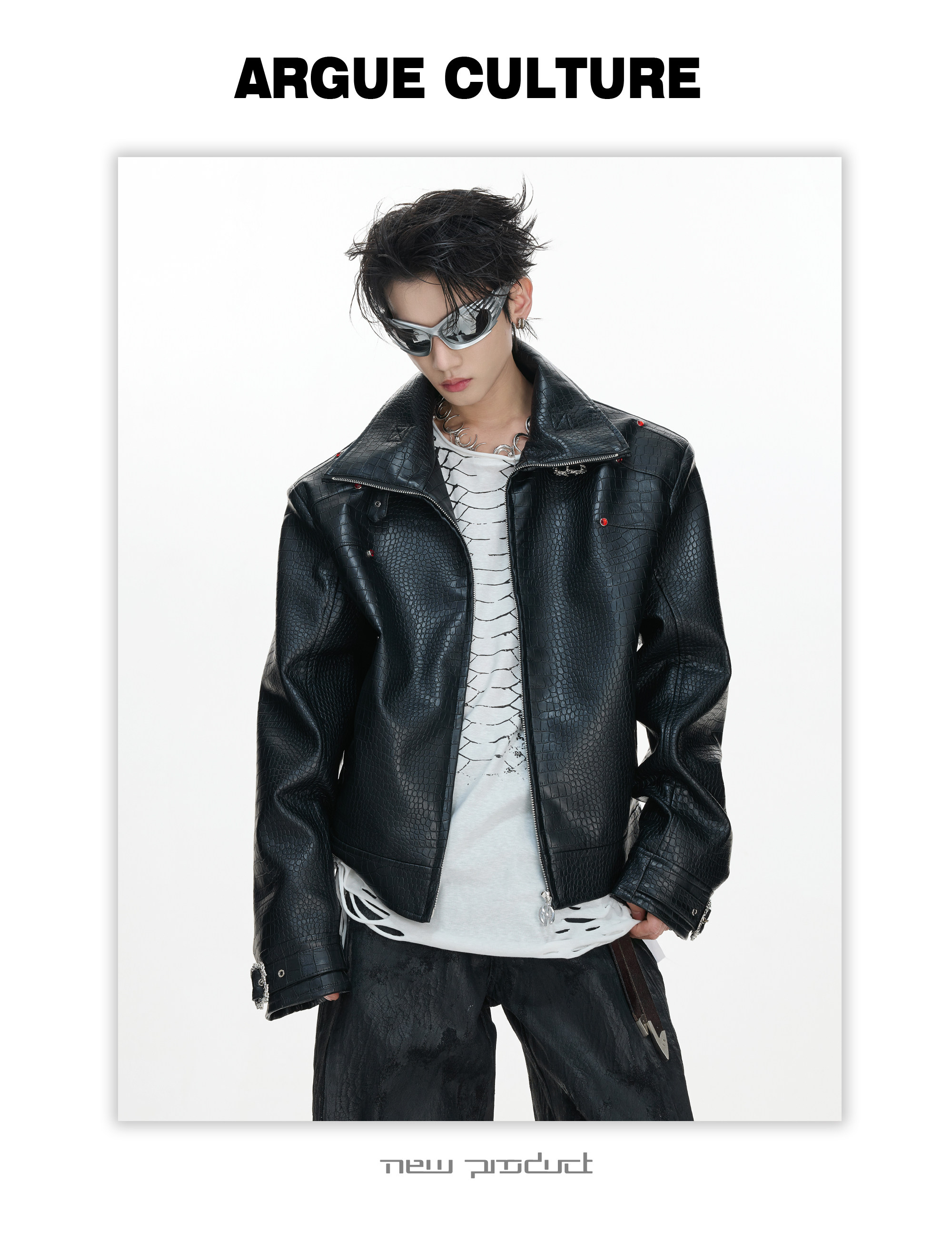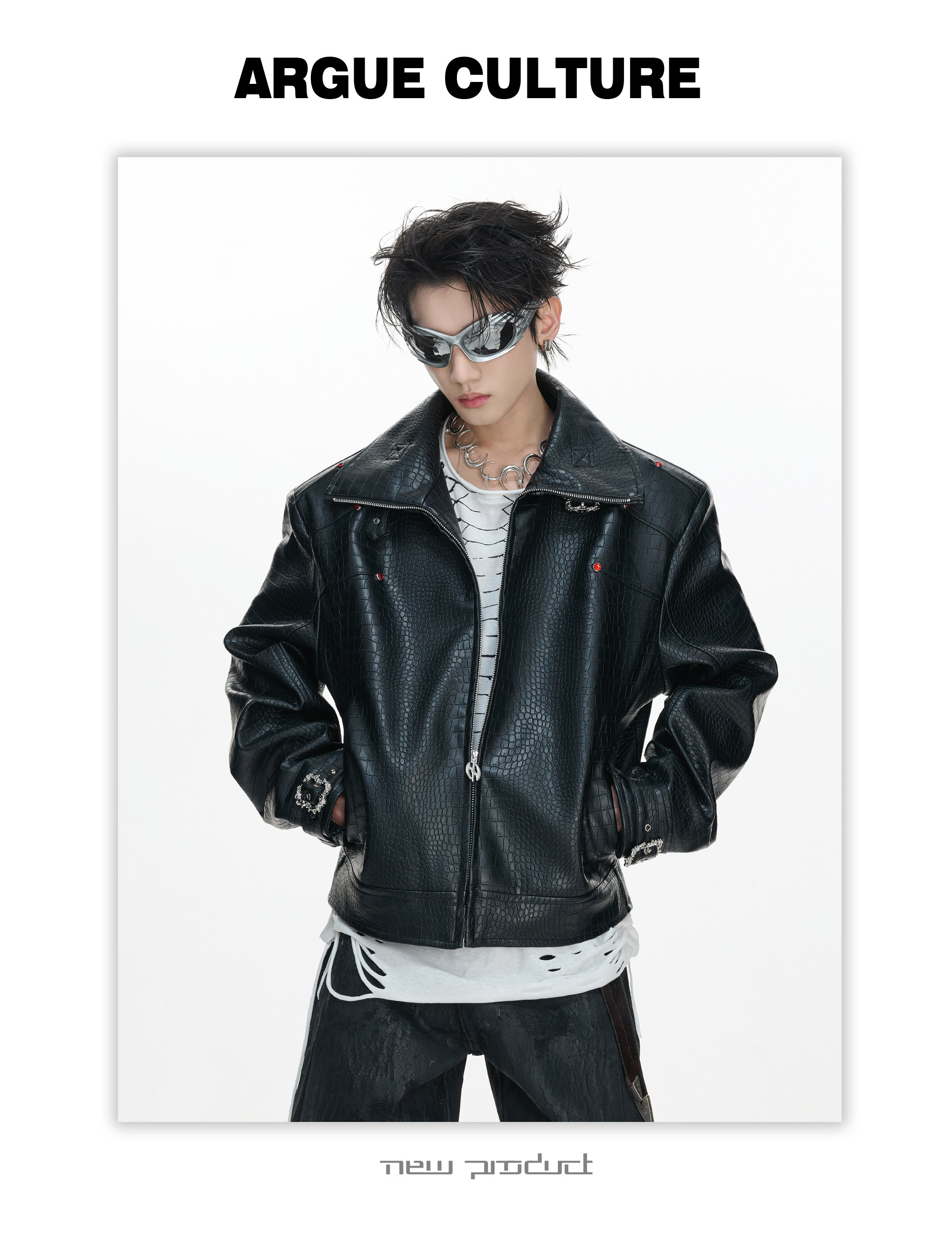 Crocodile Texture Stand Neck Palace Button Short Jacket WN23307