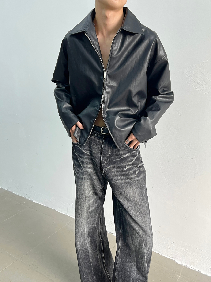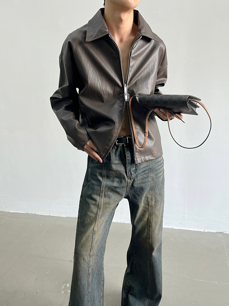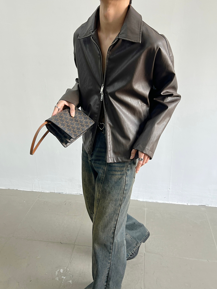 Retro Basic Style Zipper PU Leather Jacket WN5041