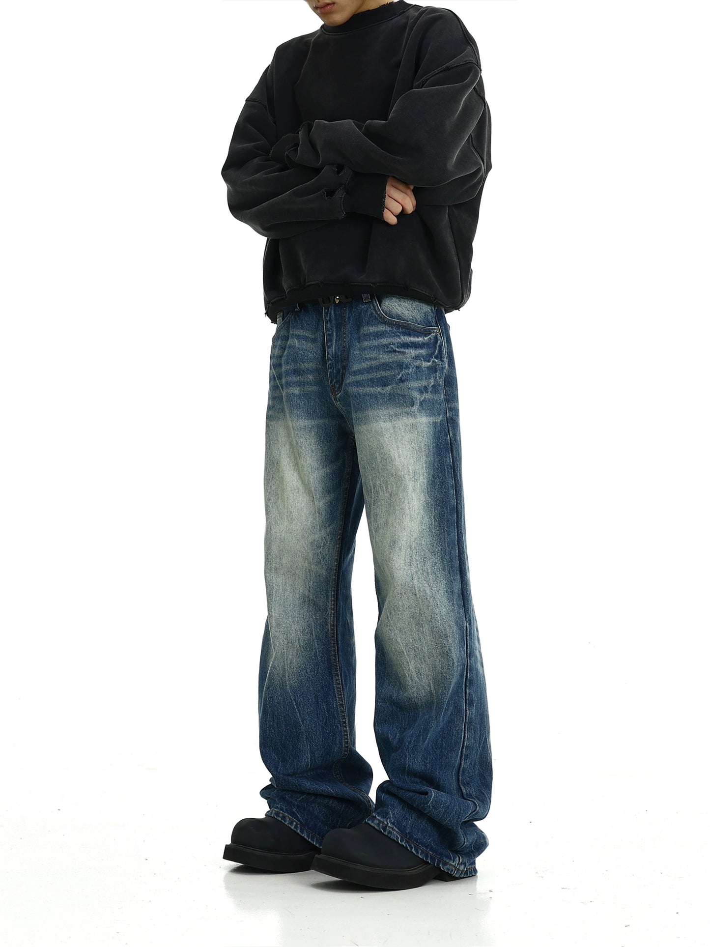 Washed Straight Denim Jeans WN5827