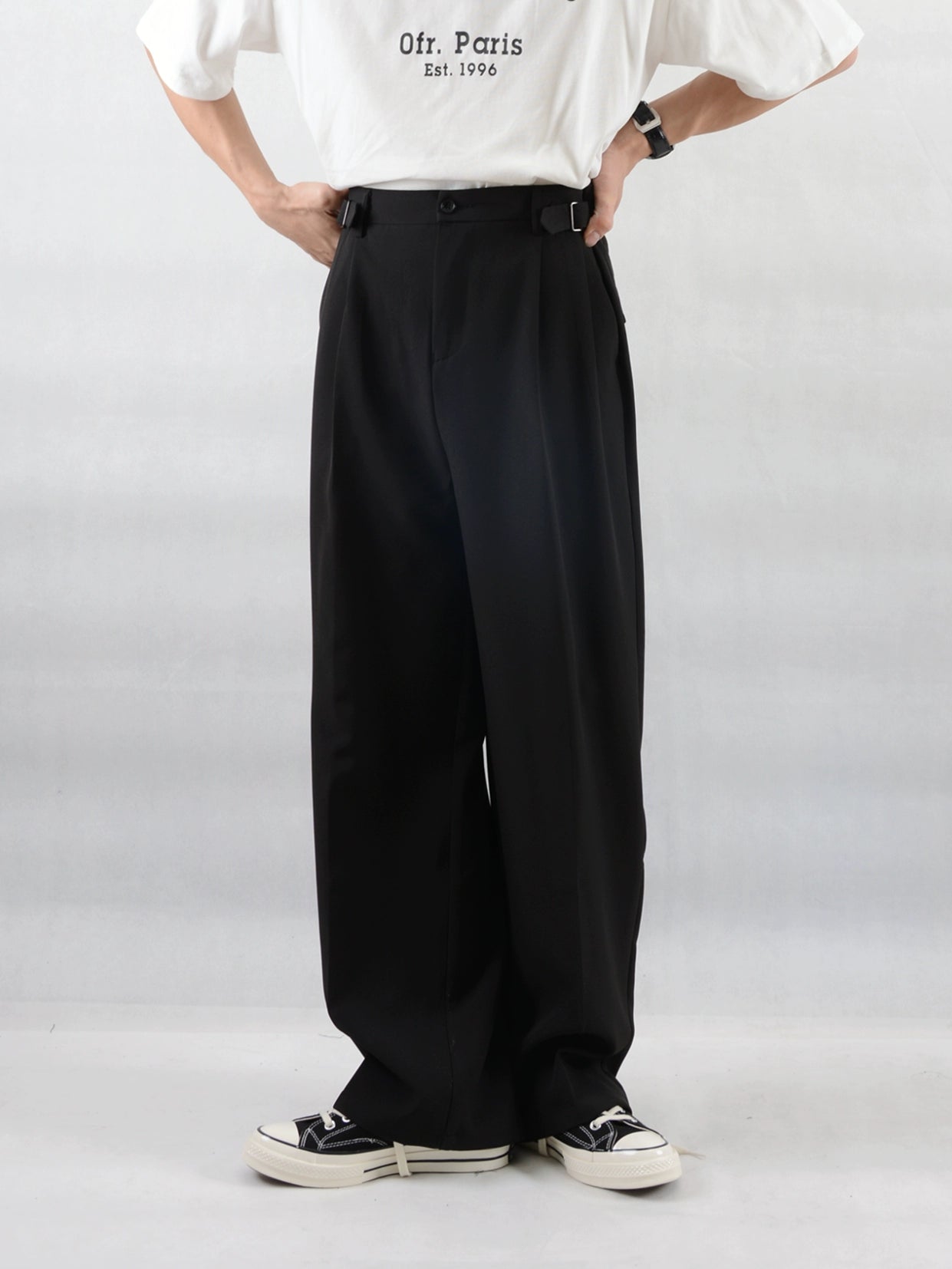 Belt Design Pleats Wide-Leg Trousers WN6140