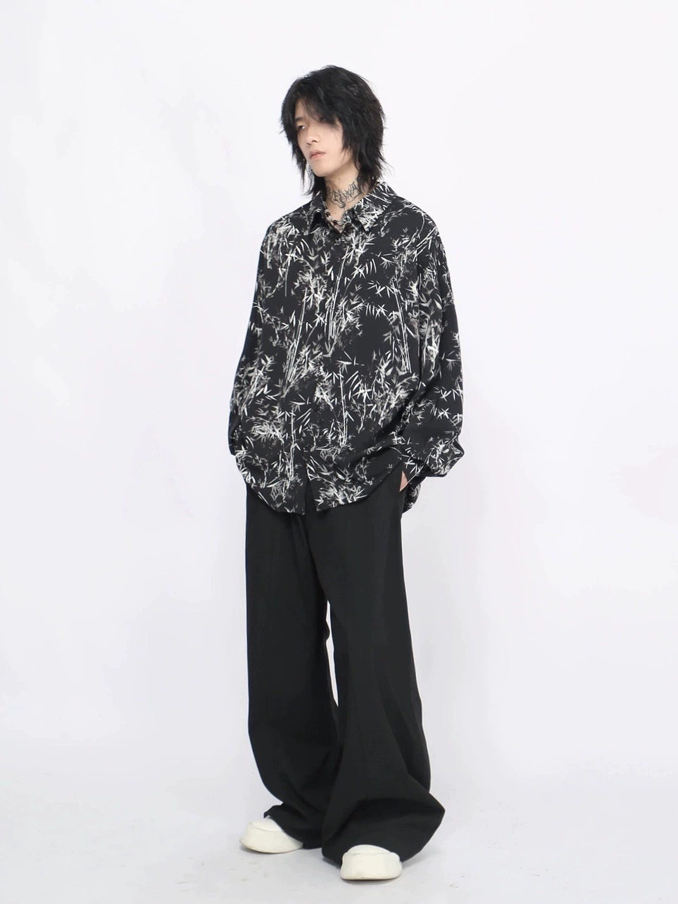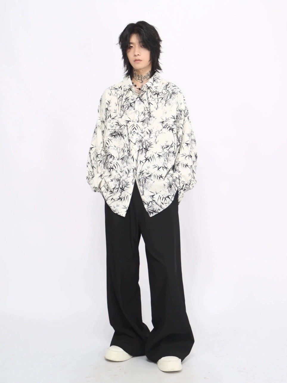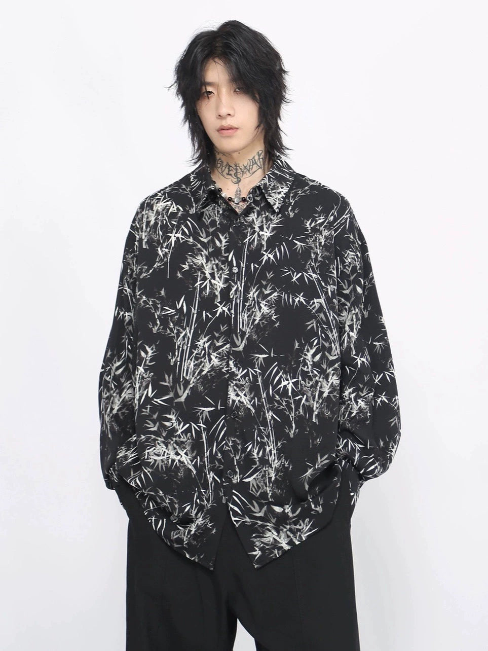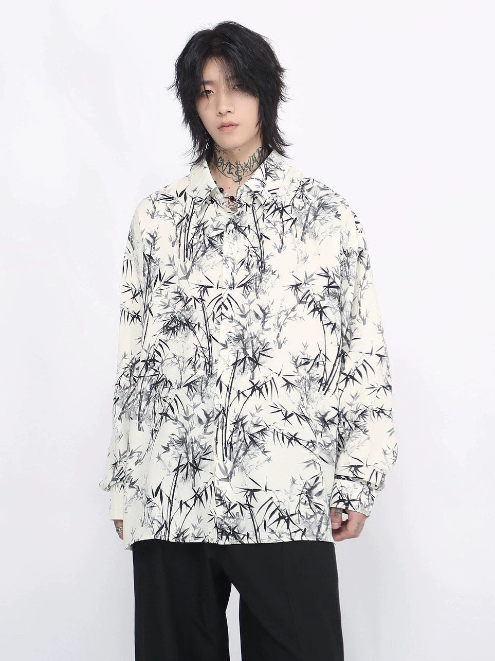 Bamboo Print Oversize Long Sleeve Shirt WN8711