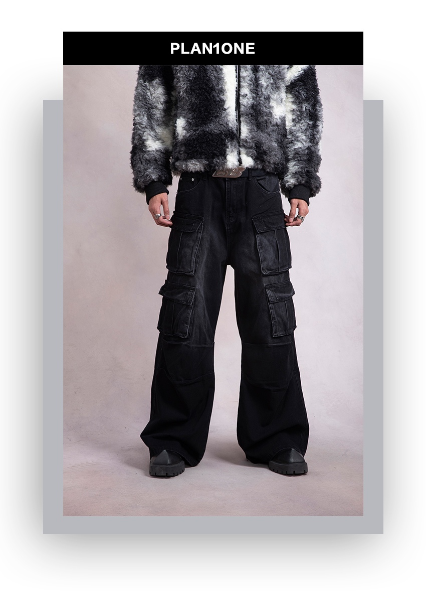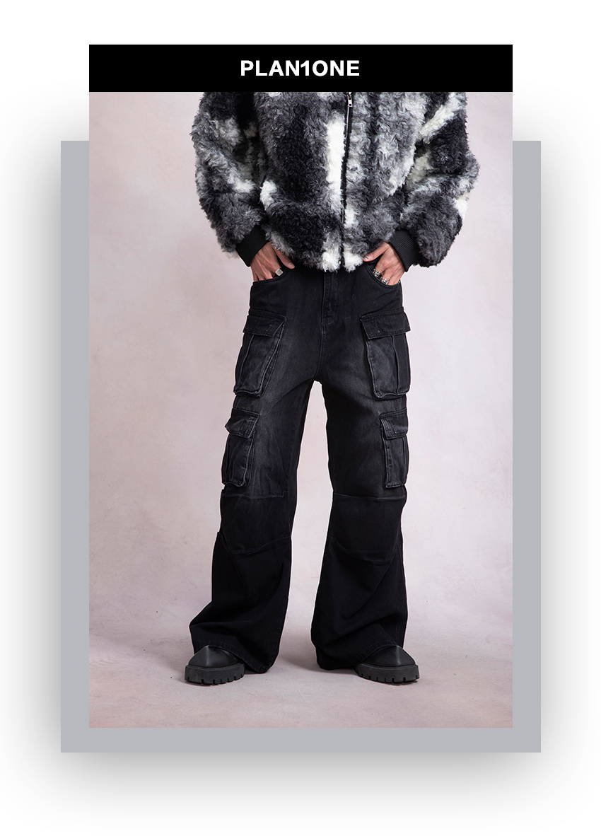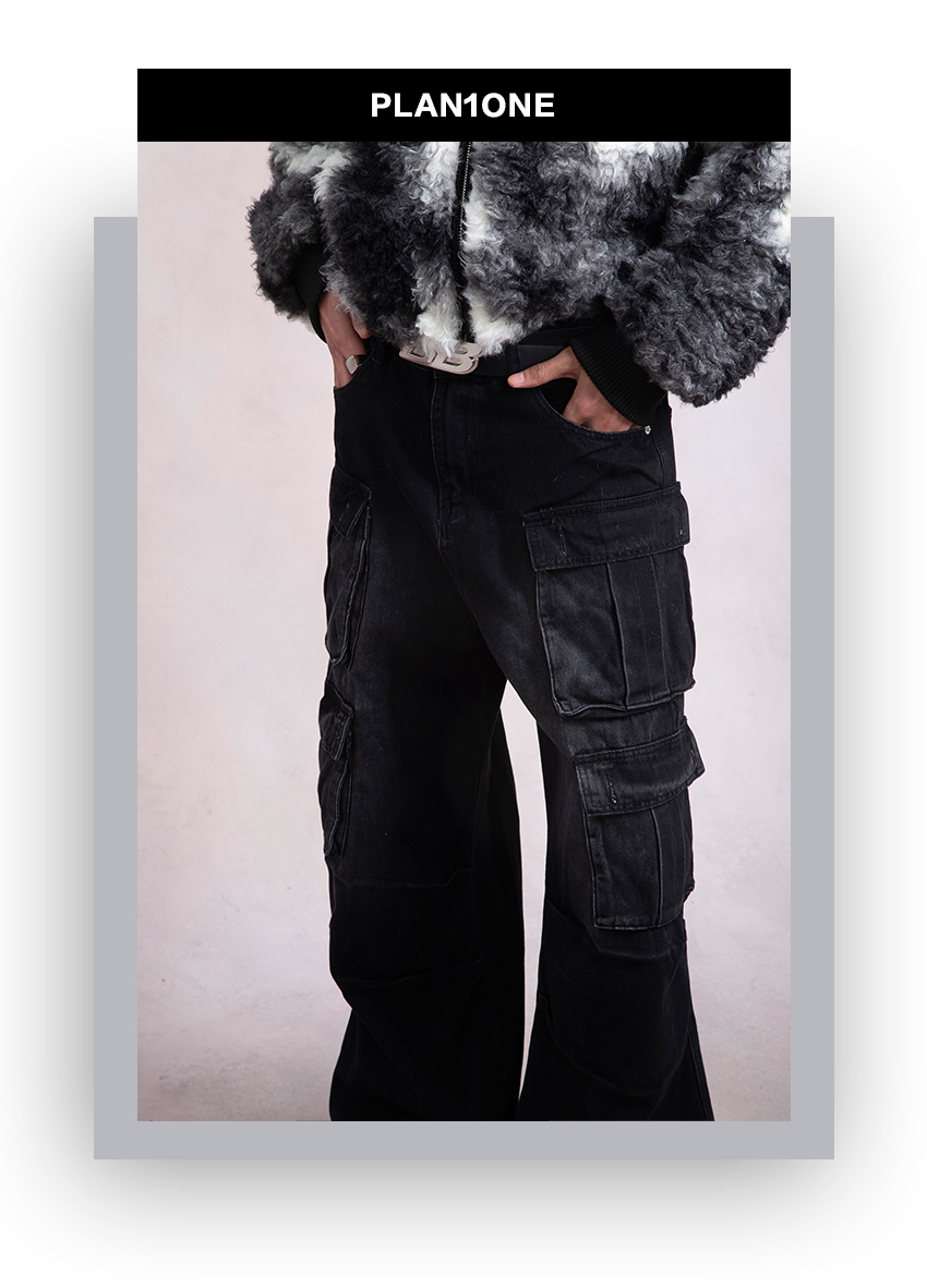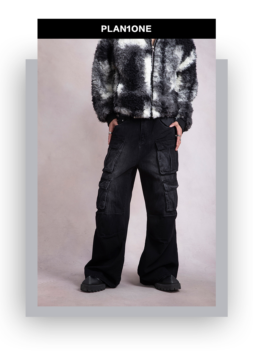 Washed Multi-Pocket Straight Cargo Denim Jeans WN9286